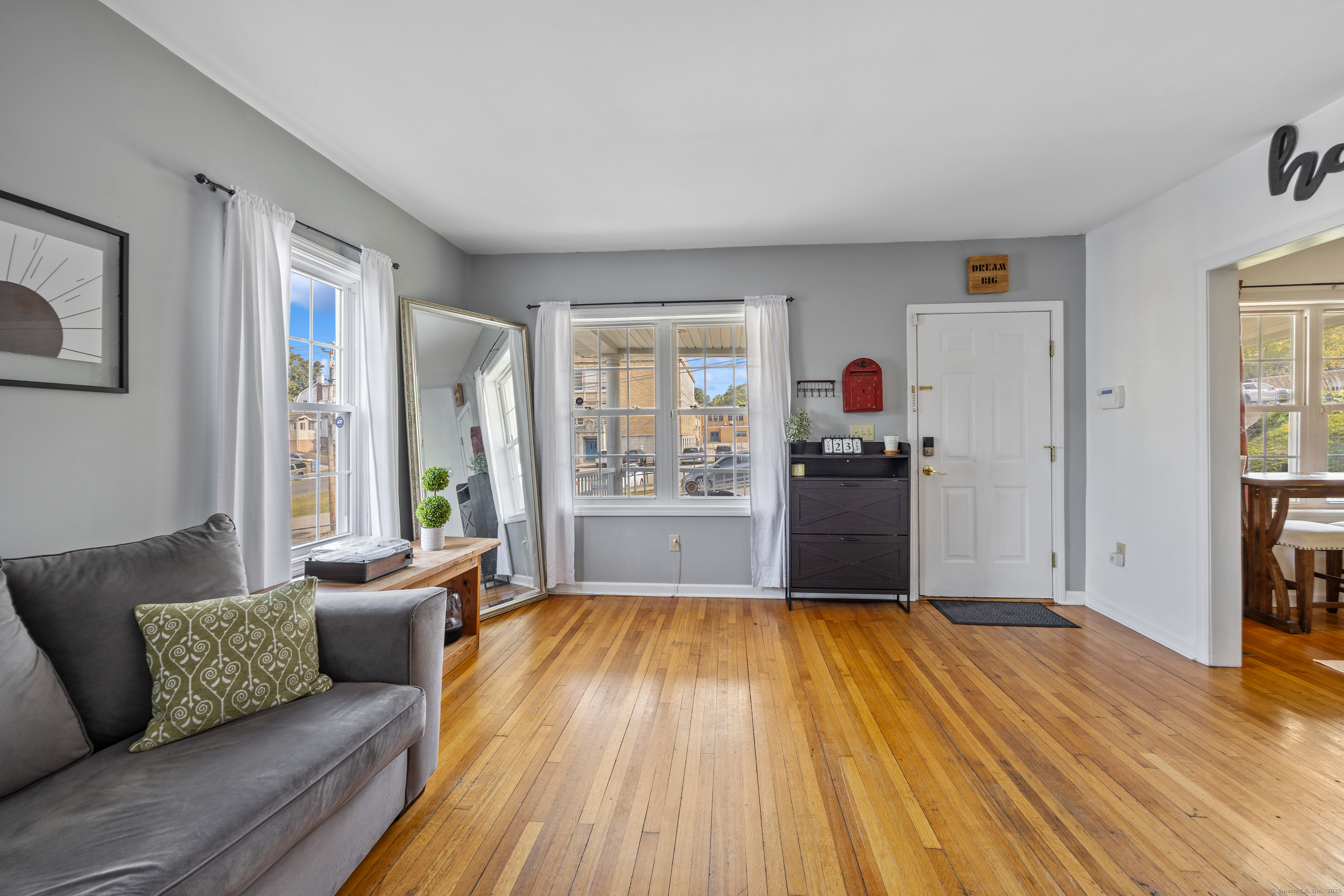 Welcome to 204 Elliott Avenue, a well-maintained colonial in Waterbury's East End. Enjoy the crisp fall air from your charming covered front porch or relax on the expansive back deck overlooking a private backyard, perfect for entertaining or unwinding. Inside, you'll find an expansive living room and eat in kitchen. There are 3 spacious bedrooms and 1.5 bathrooms, with gleaming hardwood floors throughout. The home is equipped with efficient natural gas heating and central air conditioning, keeping comfort affordable year-round. Many of the windows have been updated within the last 10 years, adding to the new owners peace of mind. The property features a large driveway with ample parking for both residents and guests. Conveniently located just minutes from restaurants, shopping, and major highways including Route 8 and I-84, this colonial offers both comfort and convenience. Don't miss your chance to own this fantastic home in a convenient location.
