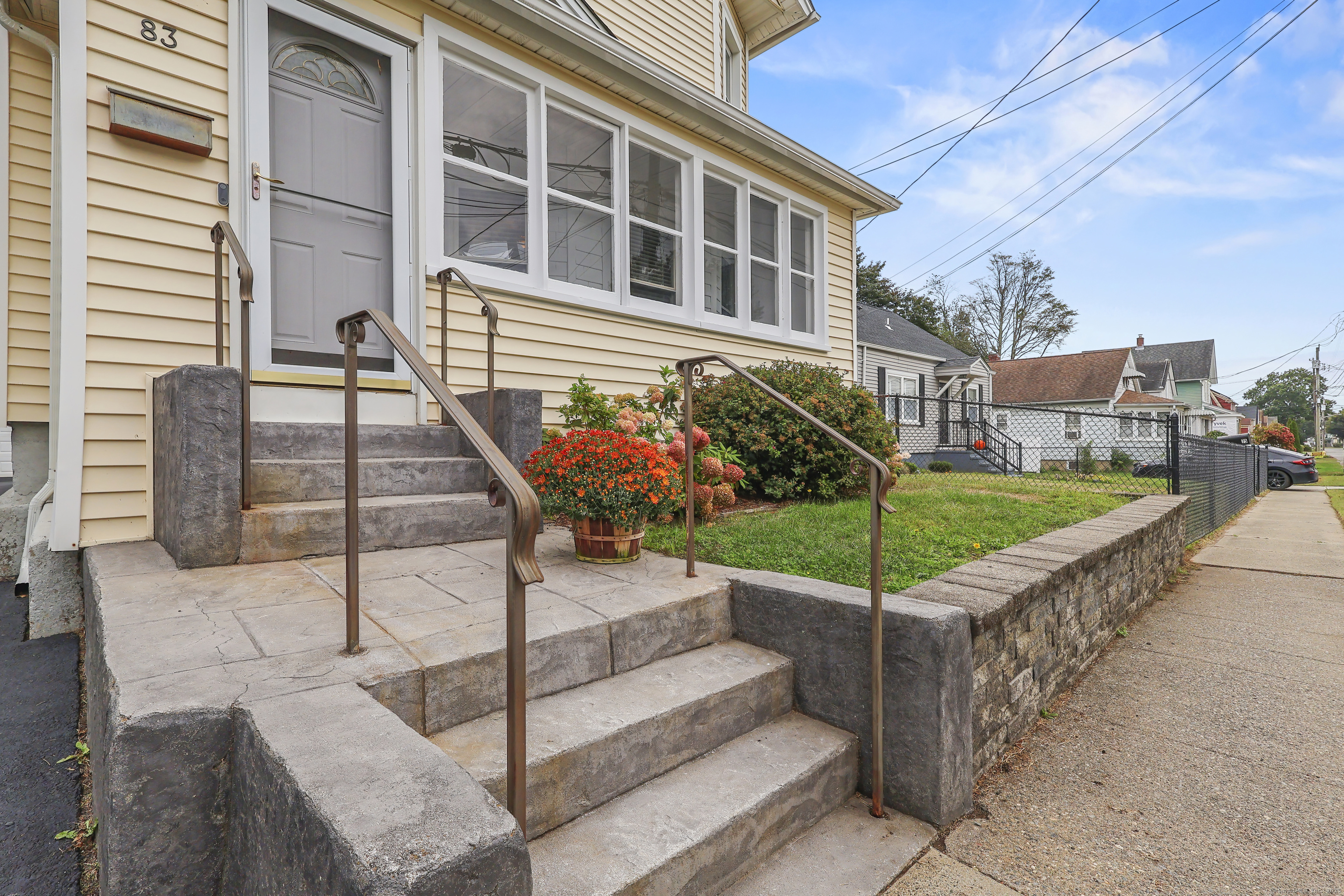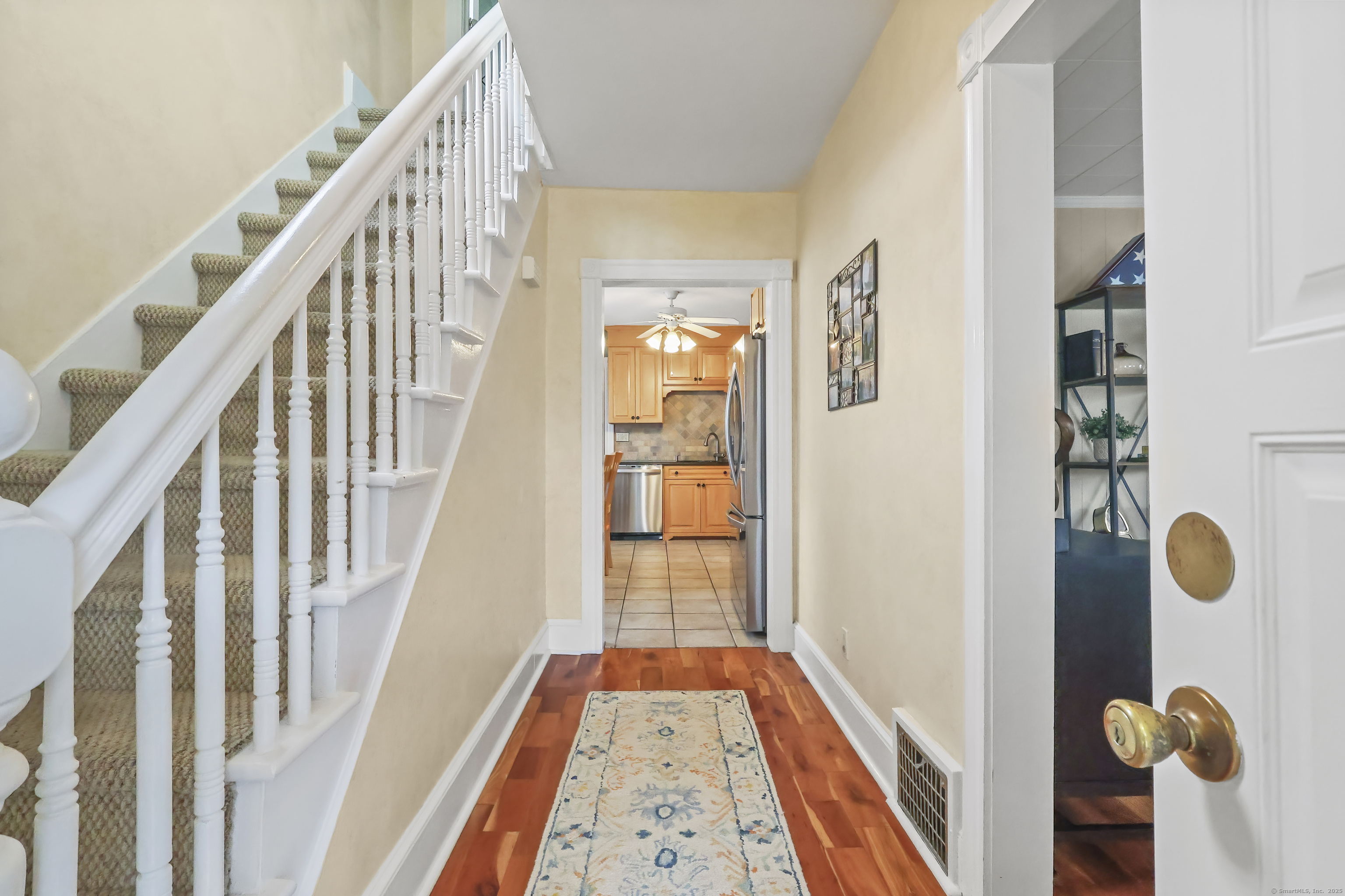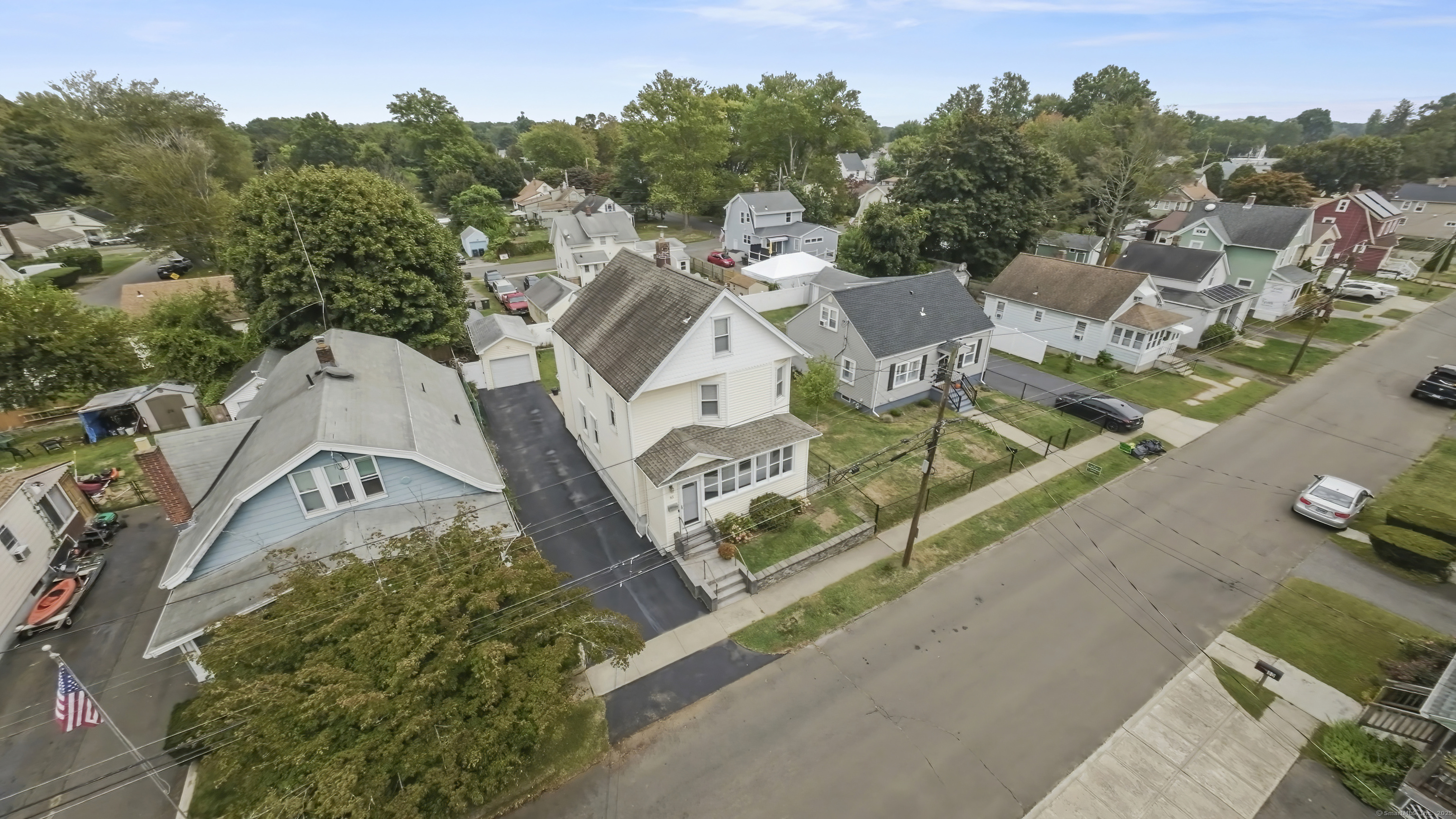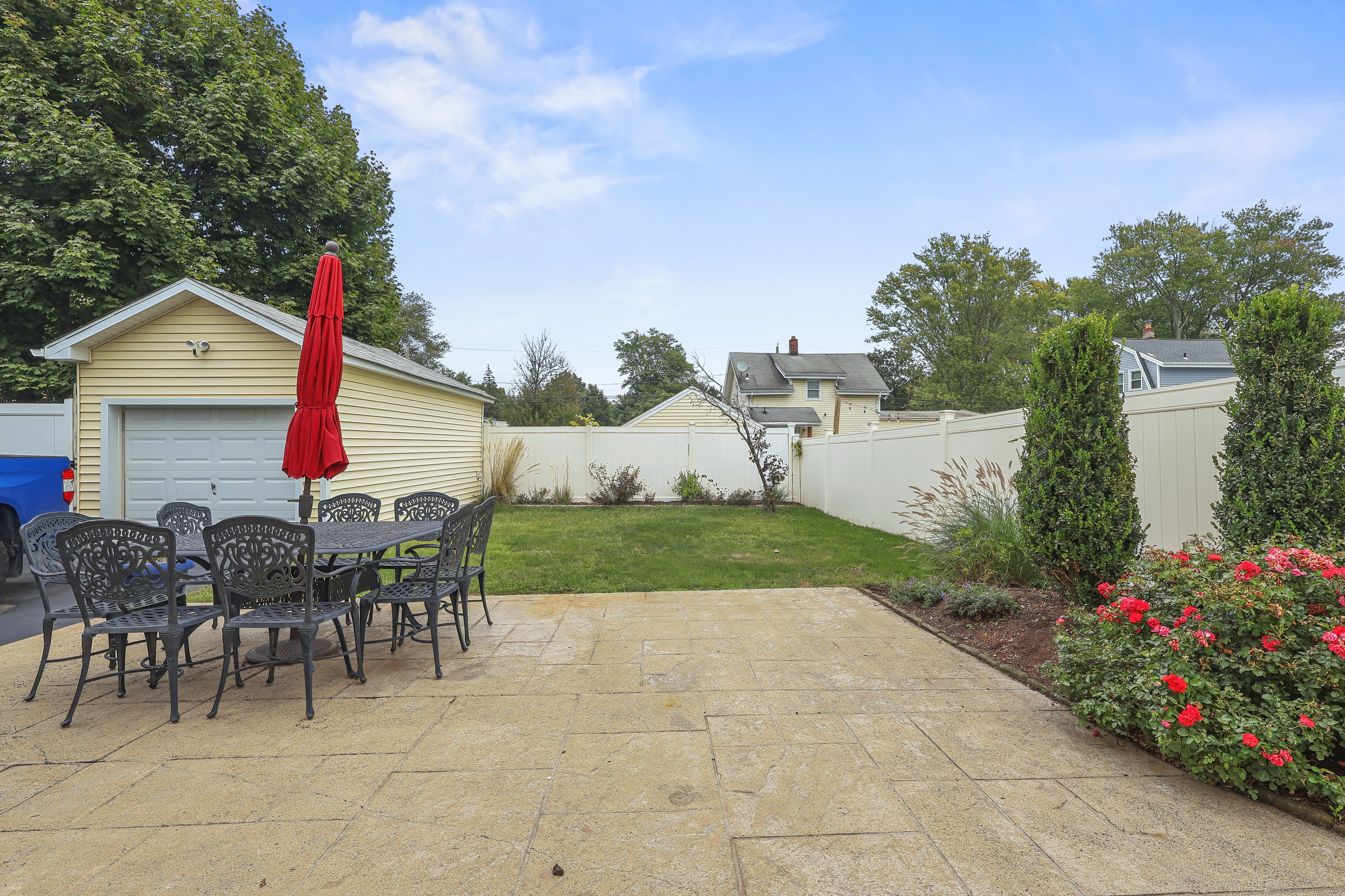 Conveniently located near all major highways, shopping centers, medical facilities, entertainment, and a wide array of restaurants, this beautifully maintained Milford Colonial offers the perfect blend of character, comfort, and convenience. Upon entering the front door, you're greeted by a large enclosed porch that fills with natural sunlight, perfect for morning coffee, reading, or showcasing your favorite plants. Inside, the updated kitchen features warm maple cabinetry, newer appliances, a ceiling fan, and a heated tile floor. It opens seamlessly into a spacious dining area and living room with ceiling fan, both highlighted by beautifully finished hardwood flooring. The second level offers a primary bedroom with hardwood floors and ceiling fan, two additional bedrooms with cozy wall-to-wall carpeting, and a fully updated bathroom with a newer shower and a heated towel warmer. The finished, carpeted, third level provides a versatile space ideal for a playroom, home office, or gym. The basement includes laundry and ample storage, with Bilco doors leading to a level backyard and a spacious patio perfect for entertaining. A detached one-car garage offers even more storage space. This well-maintained home blends classic charm with modern updates in a prime location. Don't miss your chance to make it yours. This immaculate home will go quickly!