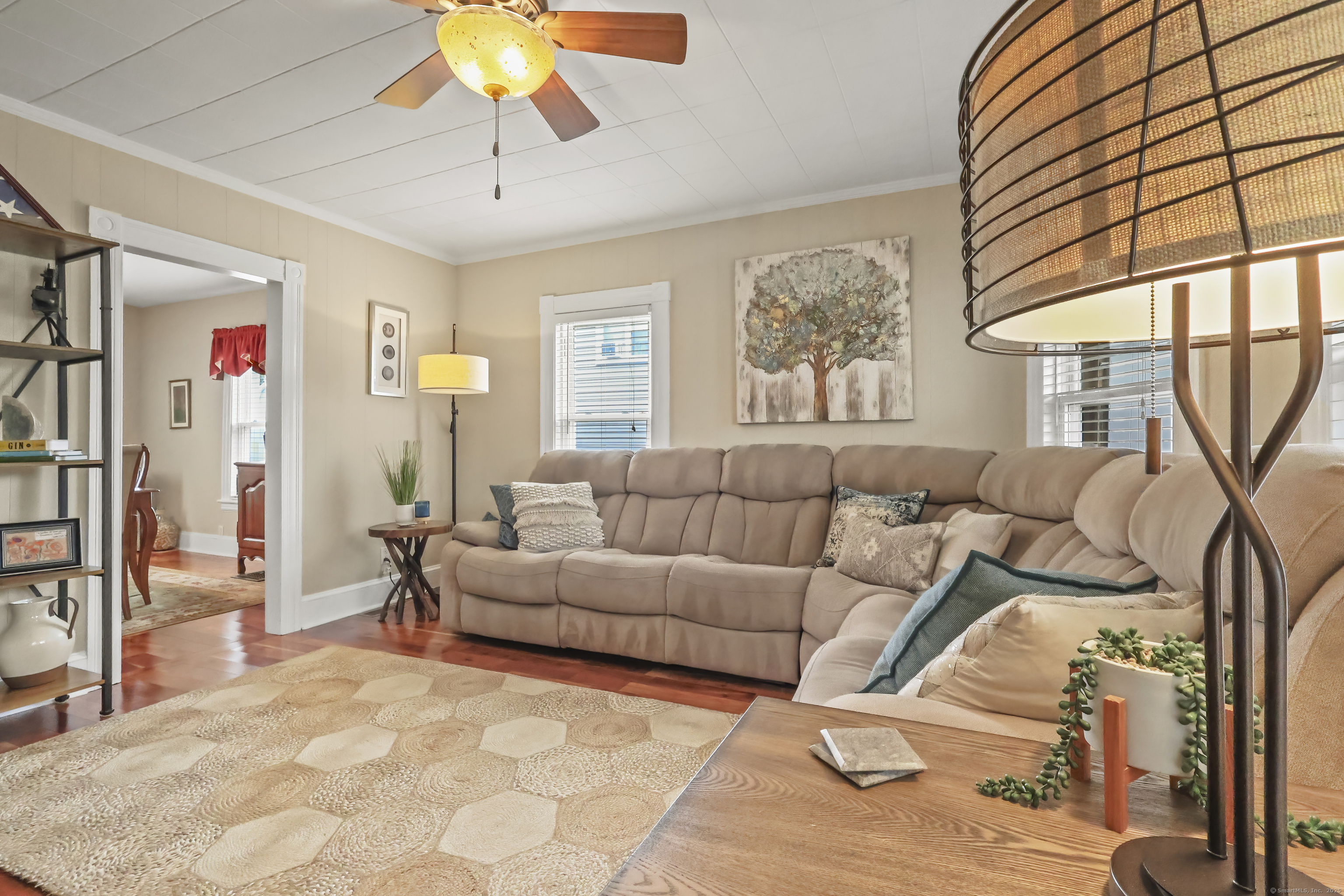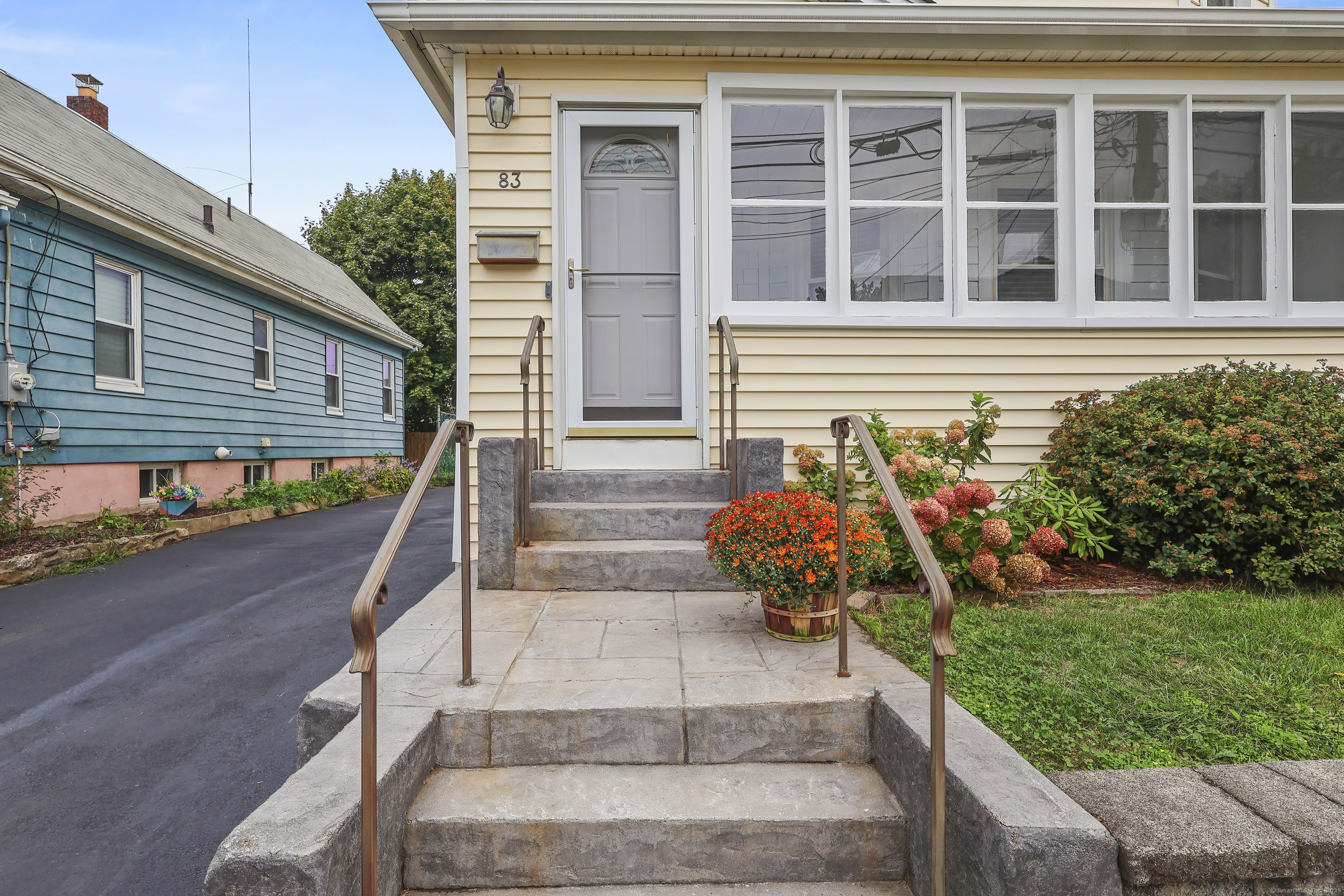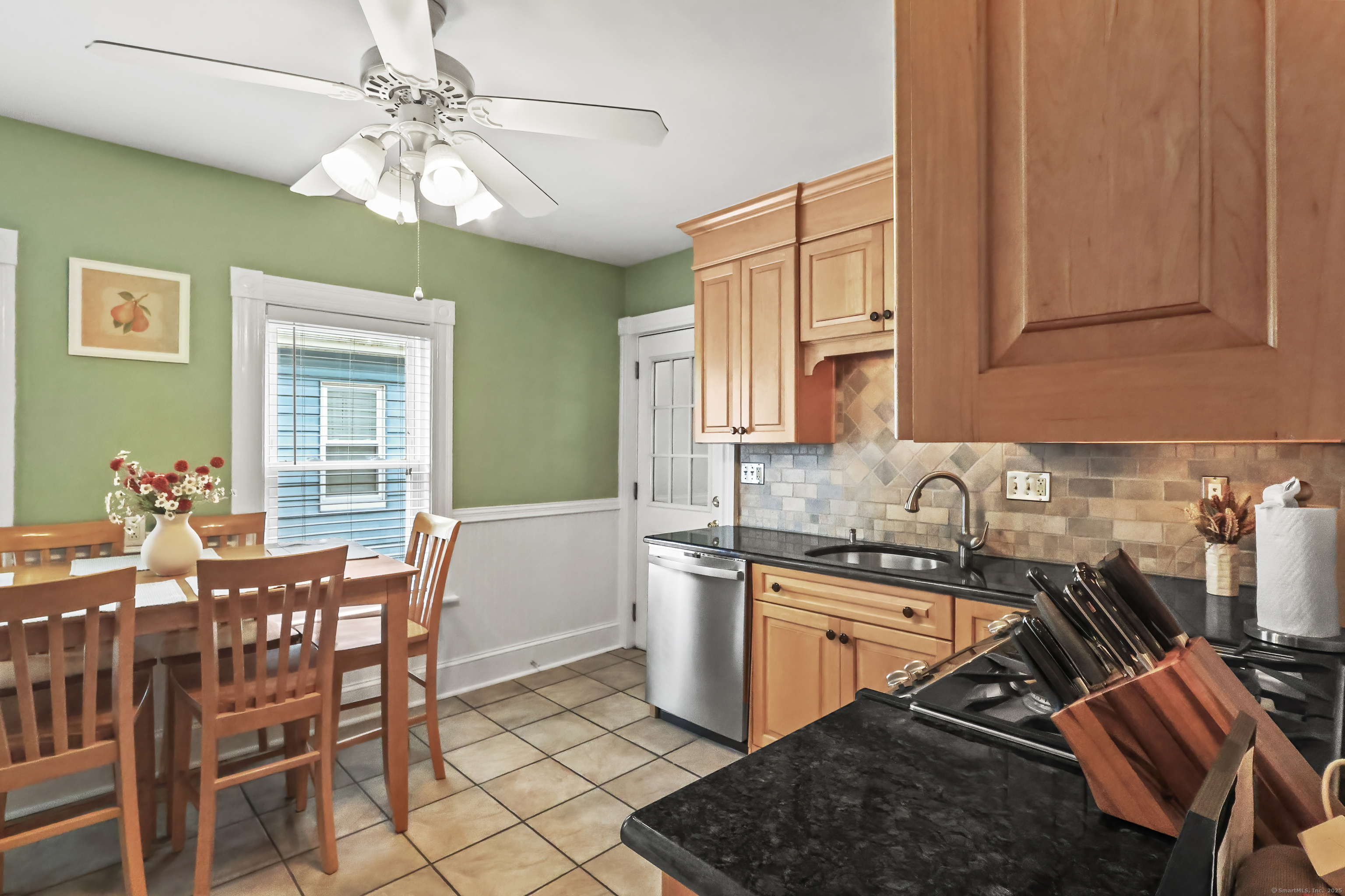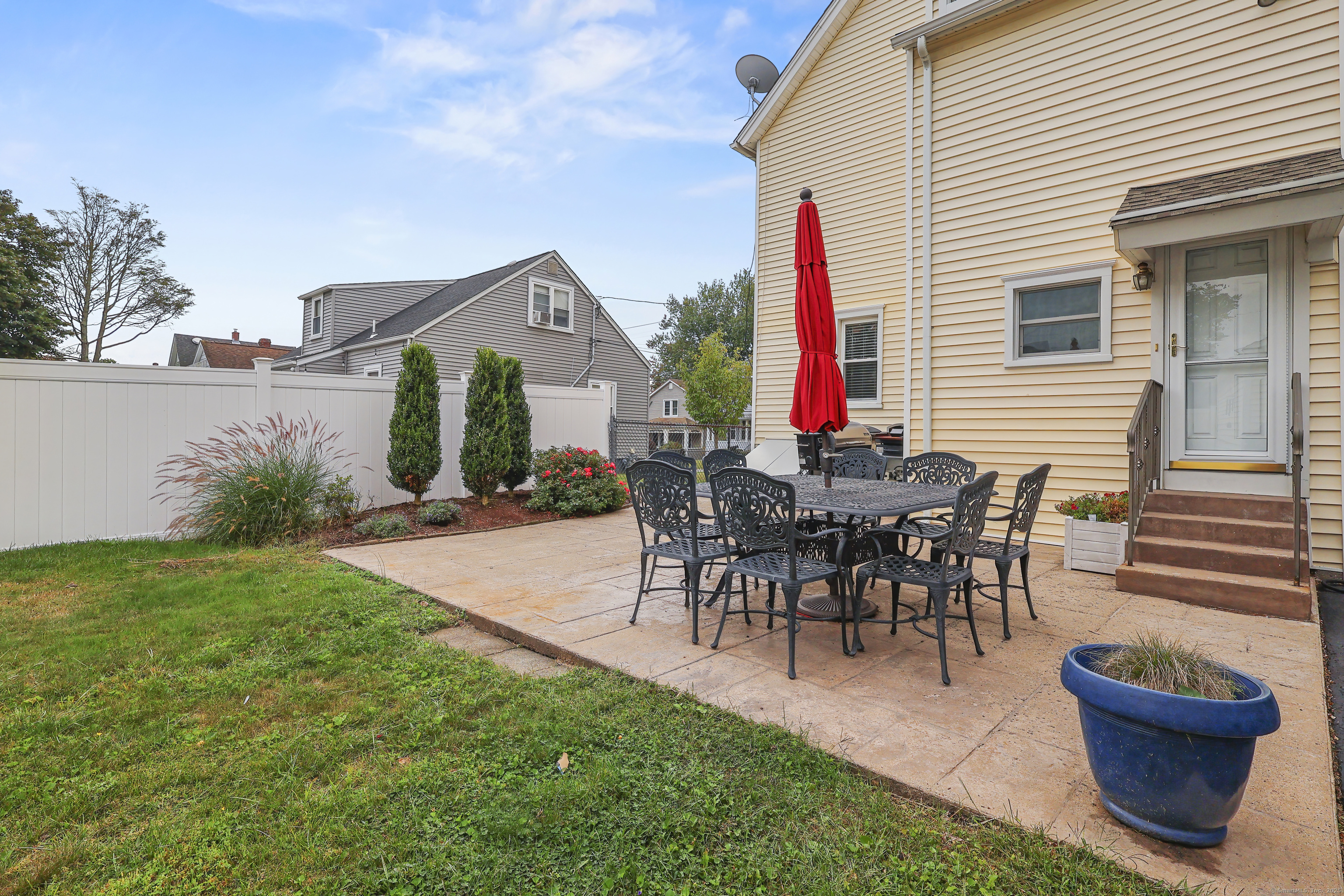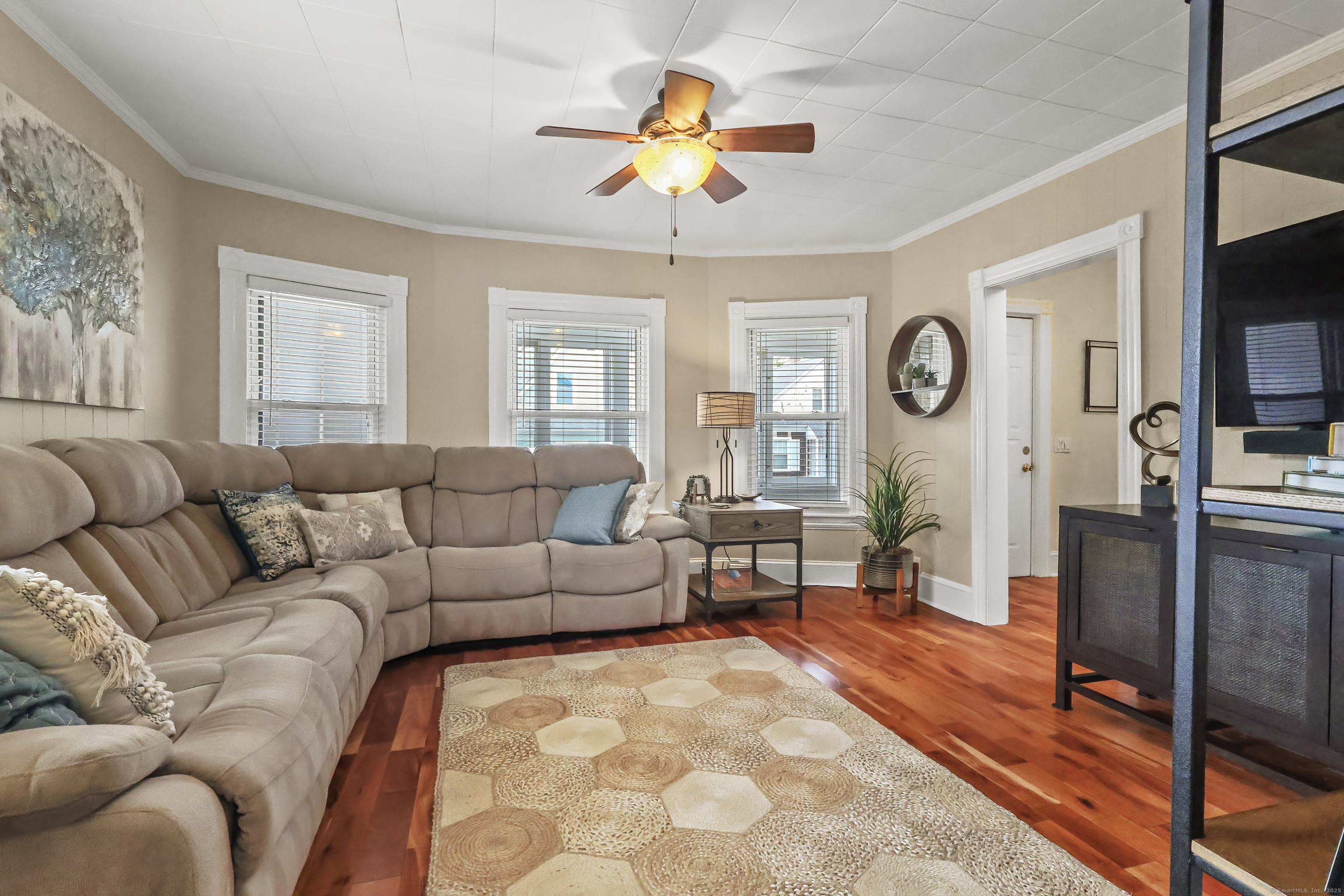 Conveniently located near all major highways, shopping centers, medical facilities, entertainment, and a wide array of restaurants, this beautifully maintained Milford Colonial offers the perfect blend of character, comfort, and convenience. Upon entering the front door, you're greeted by a large enclosed porch that fills with natural sunlight, perfect for morning coffee, reading, or showcasing your favorite plants. Inside, the updated kitchen features warm maple cabinetry, newer appliances, a ceiling fan, and a heated tile floor. It opens seamlessly into a spacious dining area and living room with ceiling fan, both highlighted by beautifully finished hardwood flooring. The second level offers a primary bedroom with hardwood floors and ceiling fan, two additional bedrooms with cozy wall-to-wall carpeting, and a fully updated bathroom with a newer shower and a heated towel warmer. The finished, carpeted, third level provides a versatile space ideal for a playroom, home office, or gym. The basement includes laundry and ample storage, with Bilco doors leading to a level backyard and a spacious patio perfect for entertaining. A detached one-car garage offers even more storage space. This well-maintained home blends classic charm with modern updates in a prime location. Don't miss your chance to make it yours. This immaculate home will go quickly!