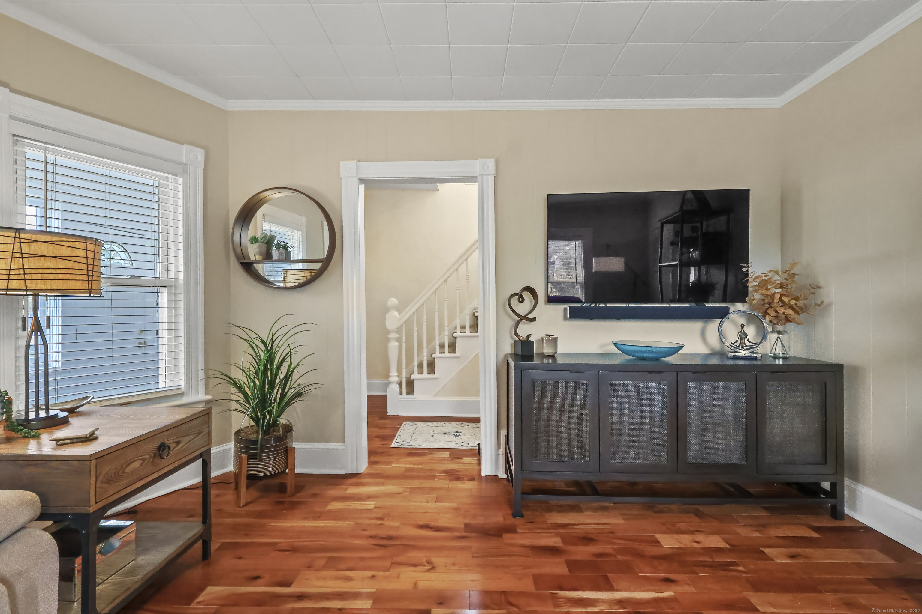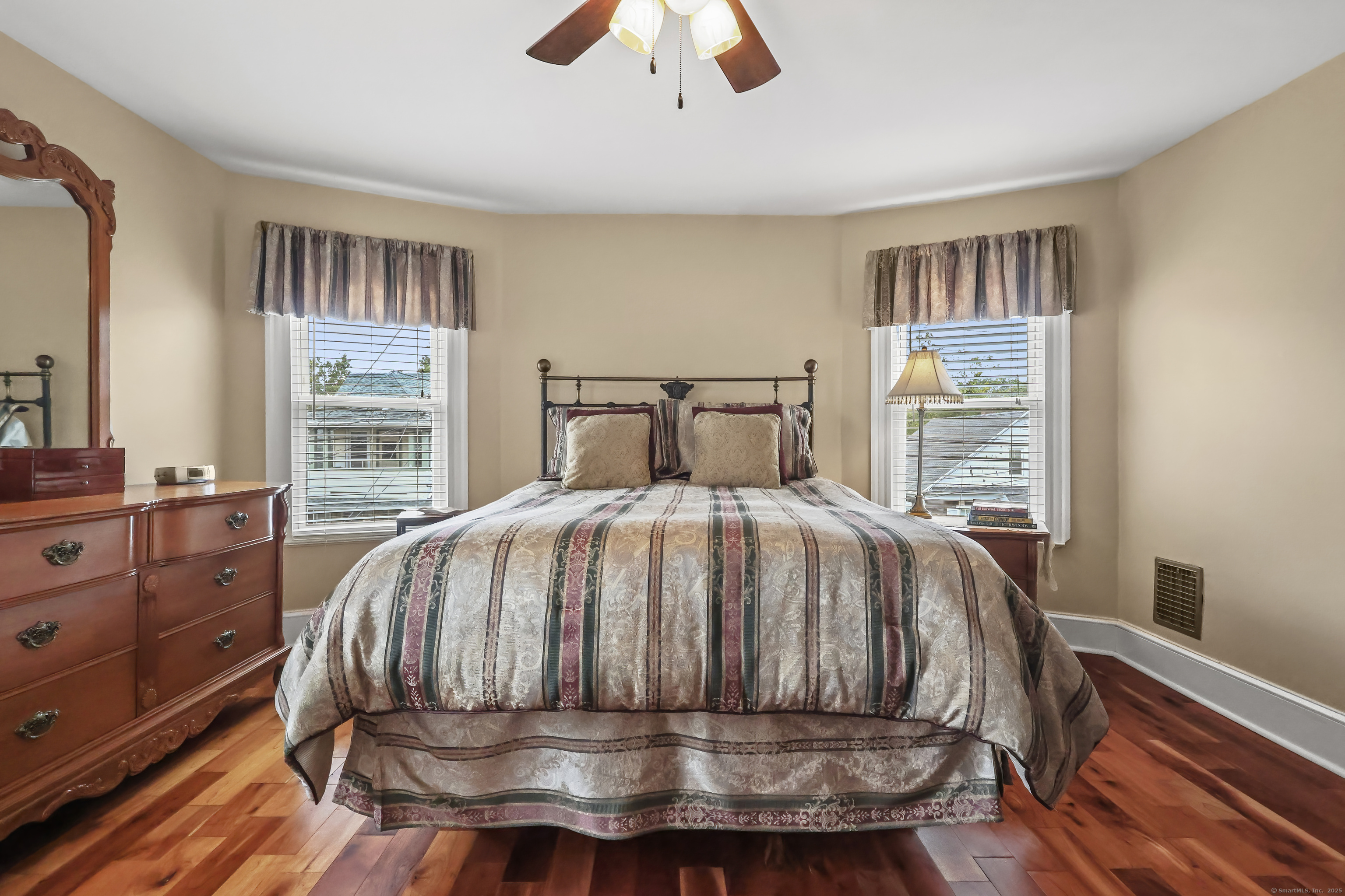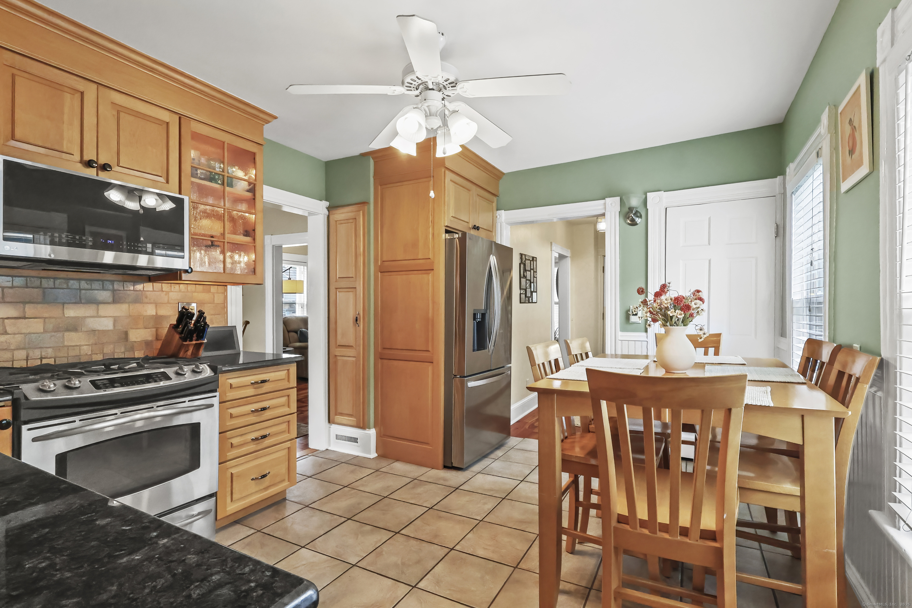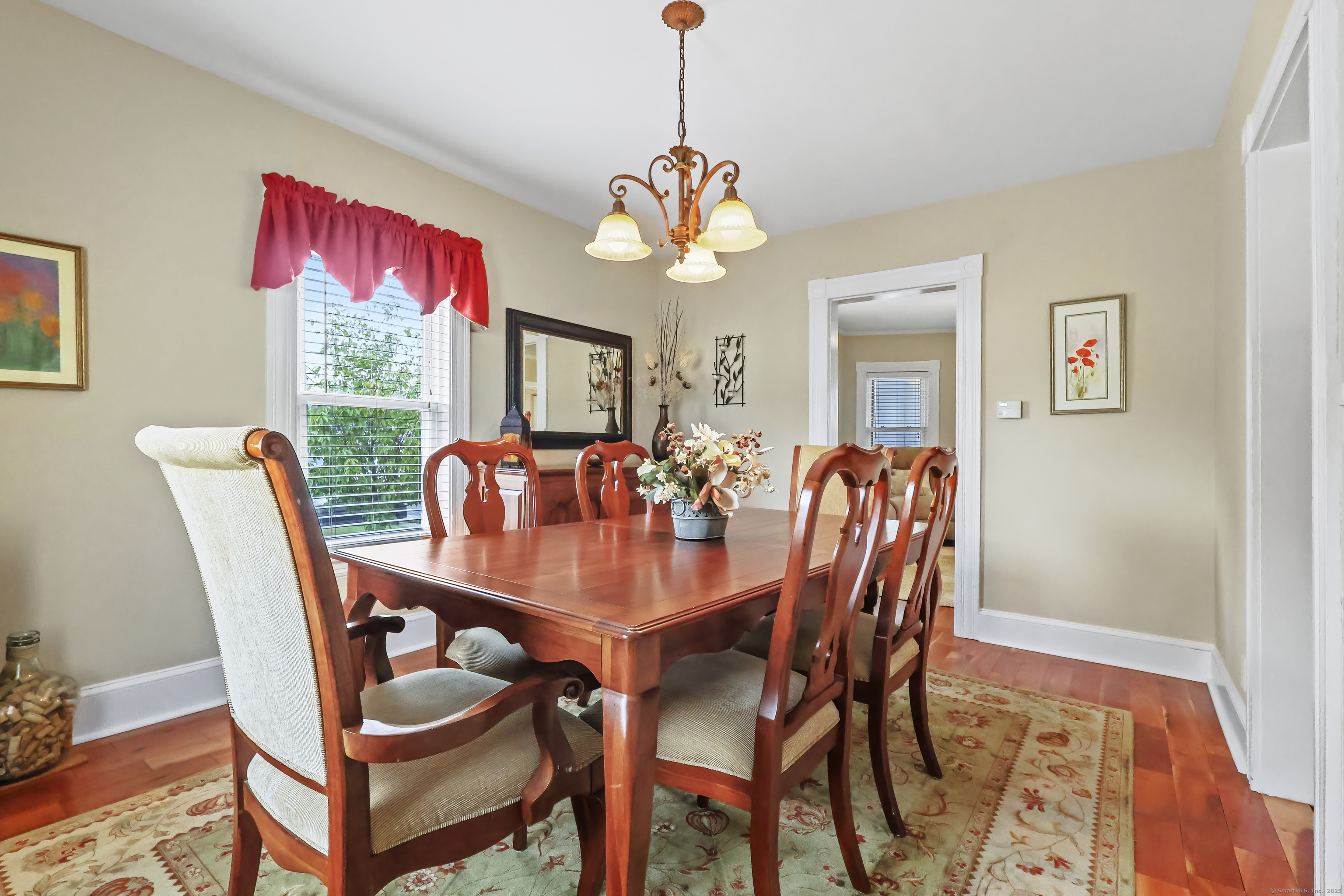 Conveniently located near all major highways, shopping centers, medical facilities, entertainment, and a wide array of restaurants, this beautifully maintained Milford Colonial offers the perfect blend of character, comfort, and convenience. Upon entering the front door, you're greeted by a large enclosed porch that fills with natural sunlight, perfect for morning coffee, reading, or showcasing your favorite plants. Inside, the updated kitchen features warm maple cabinetry, newer appliances, a ceiling fan, and a heated tile floor. It opens seamlessly into a spacious dining area and living room with ceiling fan, both highlighted by beautifully finished hardwood flooring. The second level offers a primary bedroom with hardwood floors and ceiling fan, two additional bedrooms with cozy wall-to-wall carpeting, and a fully updated bathroom with a newer shower and a heated towel warmer. The finished, carpeted, third level provides a versatile space ideal for a playroom, home office, or gym. The basement includes laundry and ample storage, with Bilco doors leading to a level backyard and a spacious patio perfect for entertaining. A detached one-car garage offers even more storage space. This well-maintained home blends classic charm with modern updates in a prime location. Don't miss your chance to make it yours. This immaculate home will go quickly!