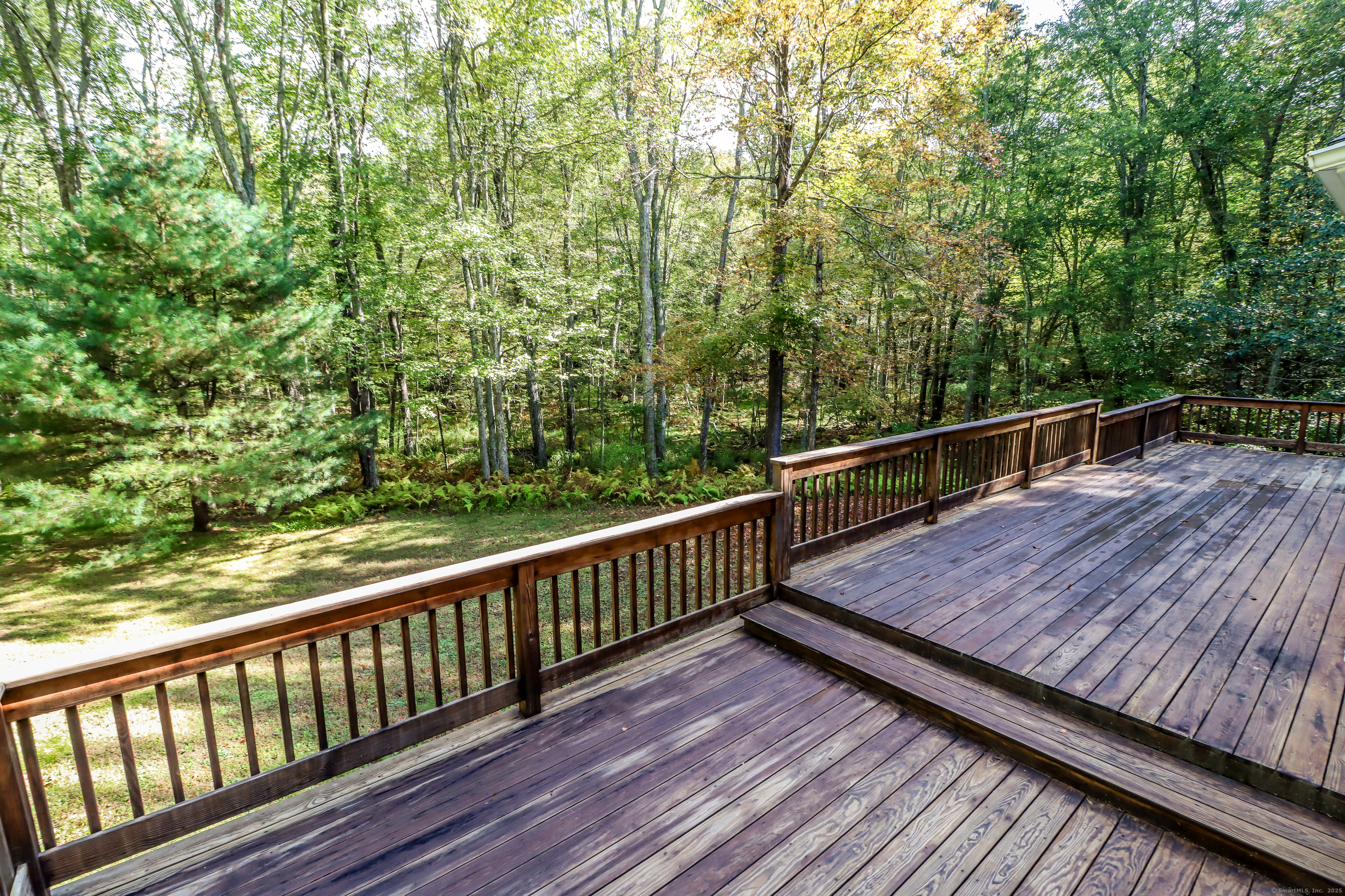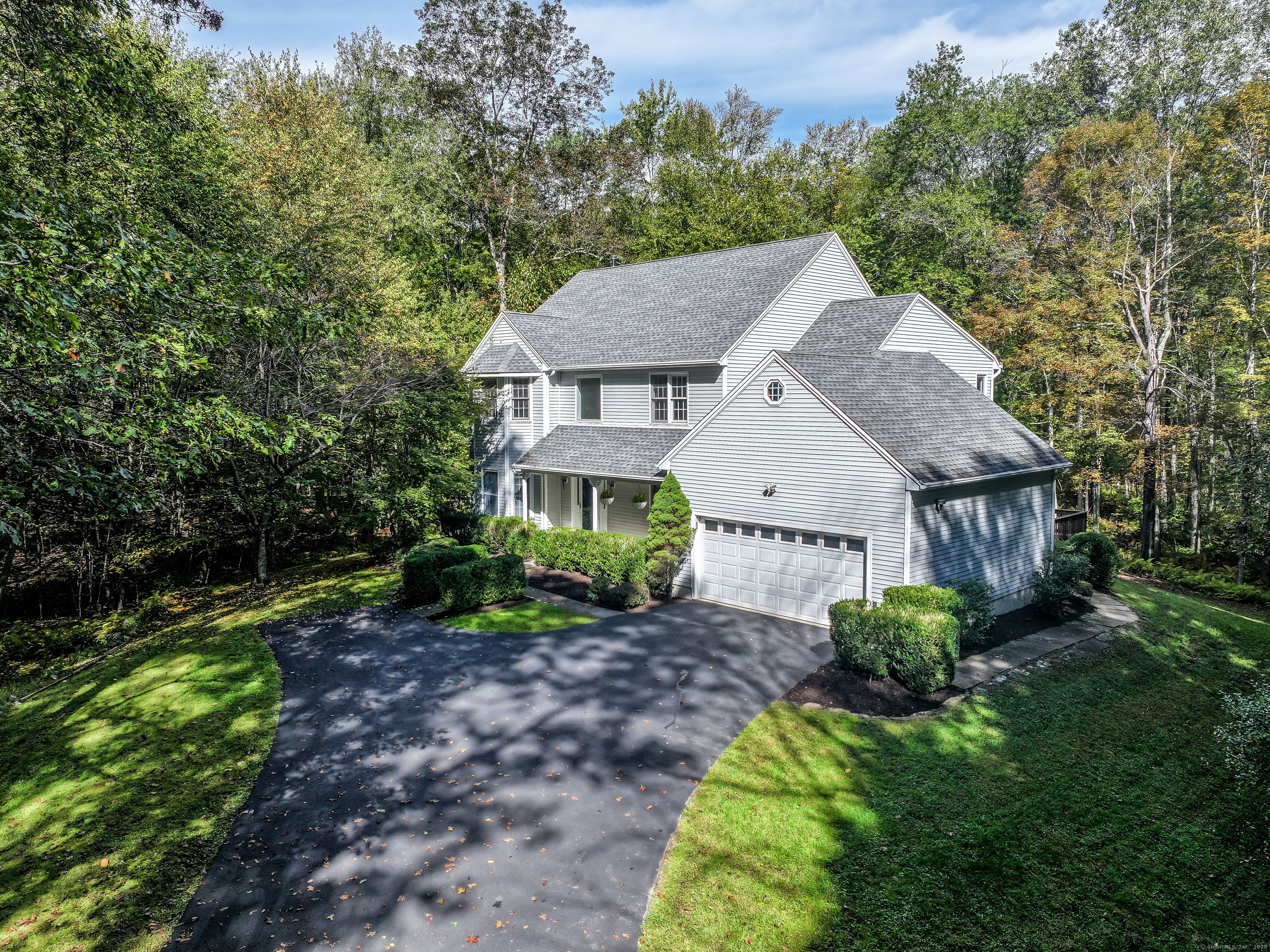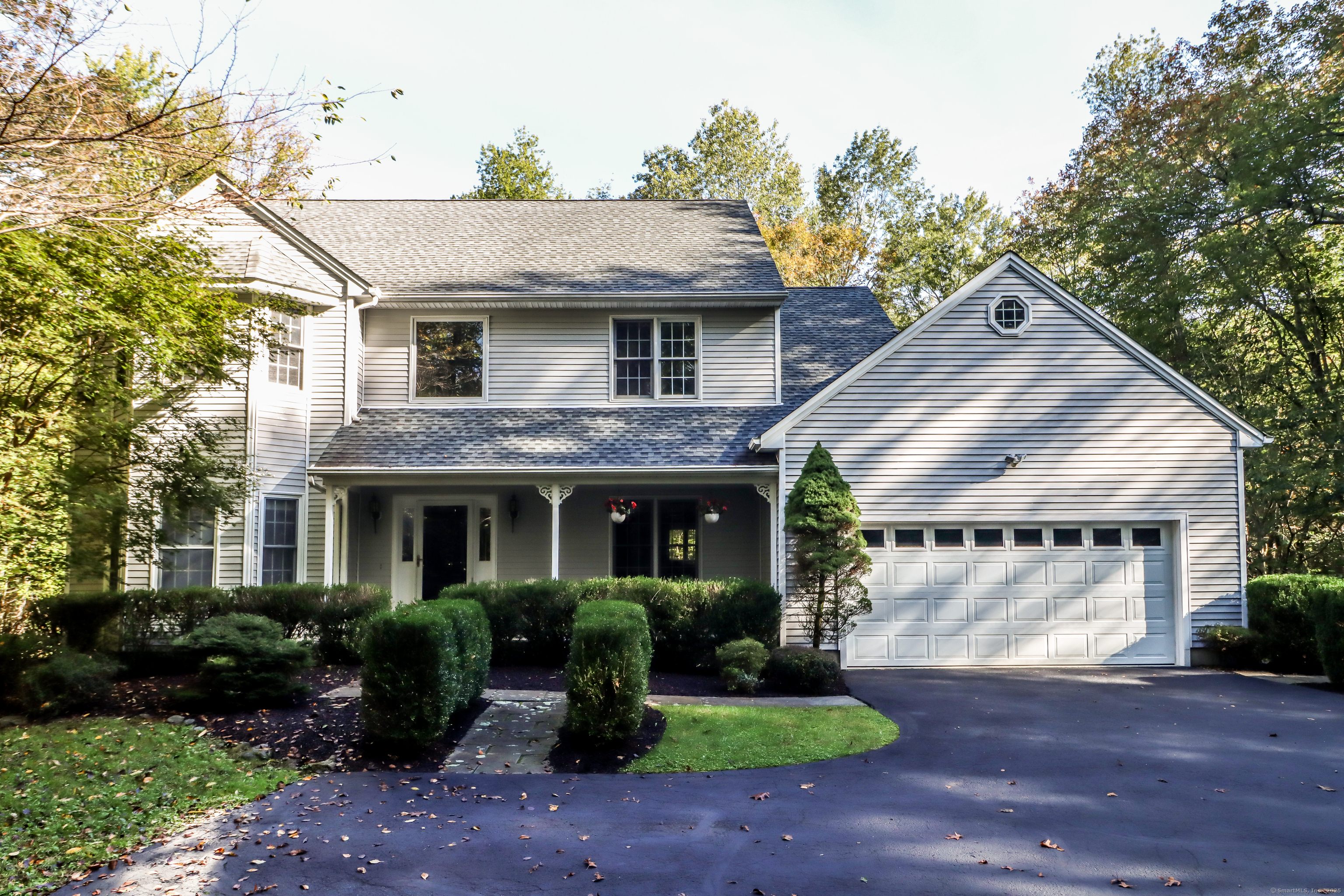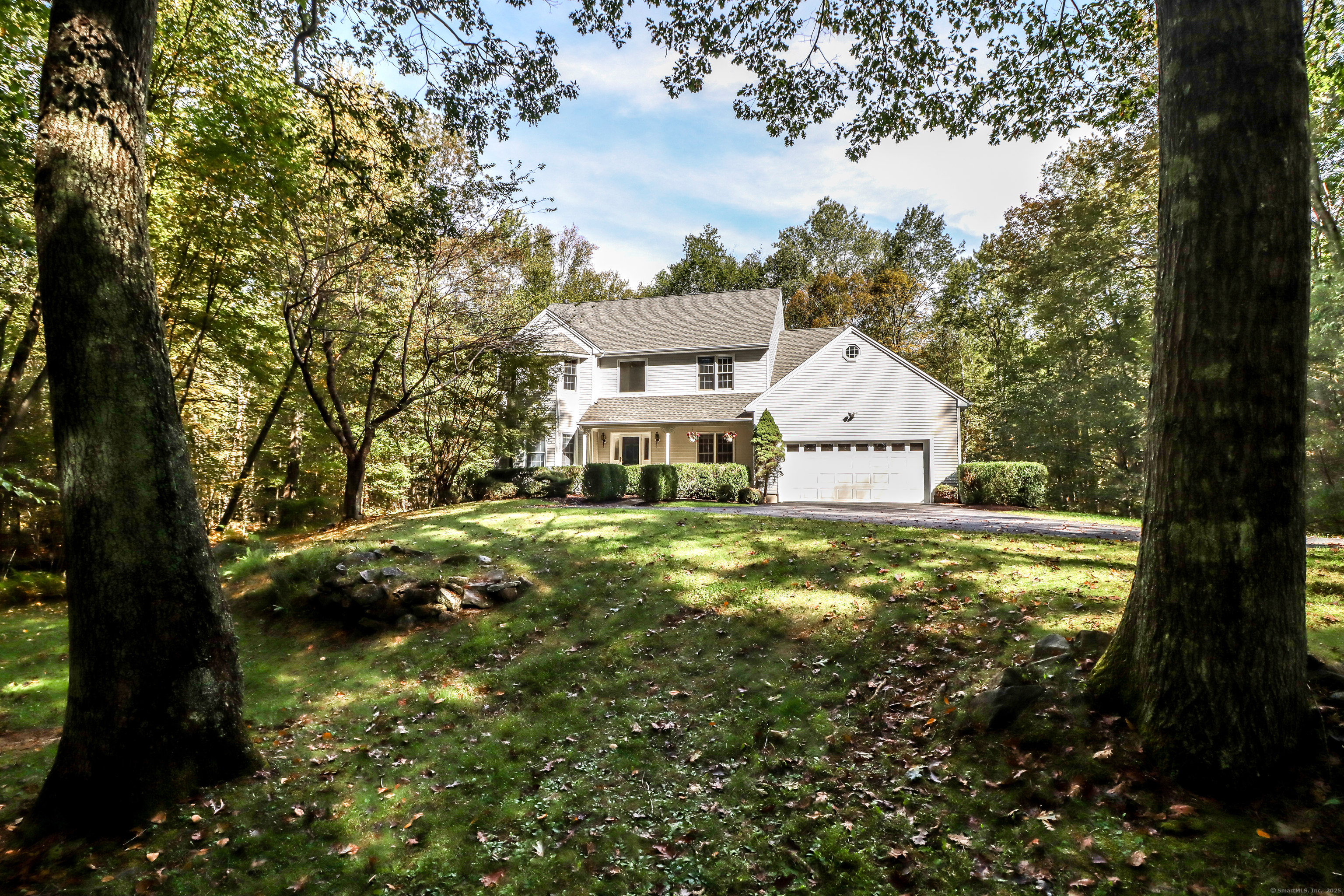 Set on 8+ private, wooded acres in one of Brookfield's most coveted neighborhoods, this refined Colonial offers a perfect blend of timeless elegance and modern comfort. A welcoming covered porch leads inside to a dramatic two-story foyer, gleaming hardwood floors, and custom millwork. The main level includes a home office, formal dining room, and a butler's pantry, all freshly painted and beautifully appointed. At the rear of the home, an open concept kitchen and family room create an inviting space for everyday living. The kitchen features custom cabinetry, granite counters, tile backsplash, a built-in desk, and generous storage and prep space. Sliders open to an expansive deck overlooking the private yard-ideal for seamless indoor-outdoor entertaining. The spacious family room showcases oversized windows, a fireplace, and new carpeting. A powder room and laundry complete the first floor. Upstairs, the serene primary suite boasts hardwood flooring, a vaulted ceiling, walk-in closet, and spa-like bath. Three additional bedrooms (two with walk-in closets) and a second full bath complete the upper level. The walk-out lower level offers outstanding potential for future expansion. Enjoy the peace of a private setting with easy access to shopping, dining, and recreation on Lake Lillinonah and Candlewood Lake, plus convenient proximity to I-84, 684, and Routes 7, 25 & 202.