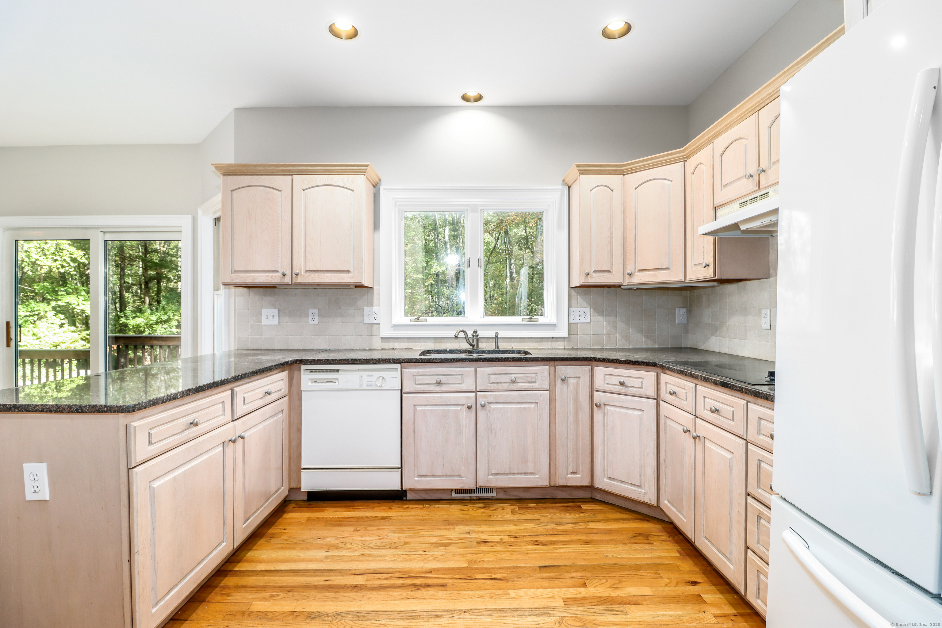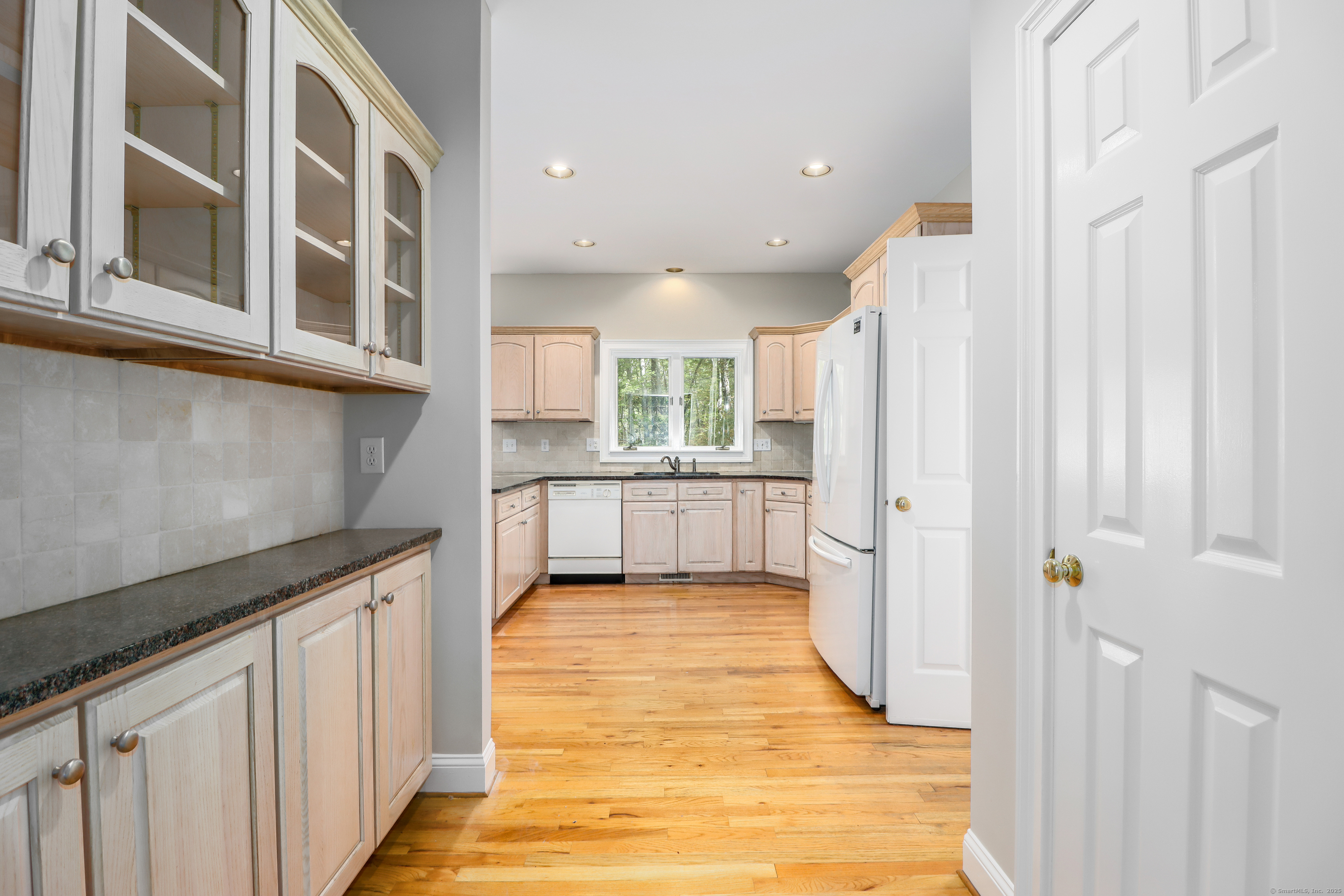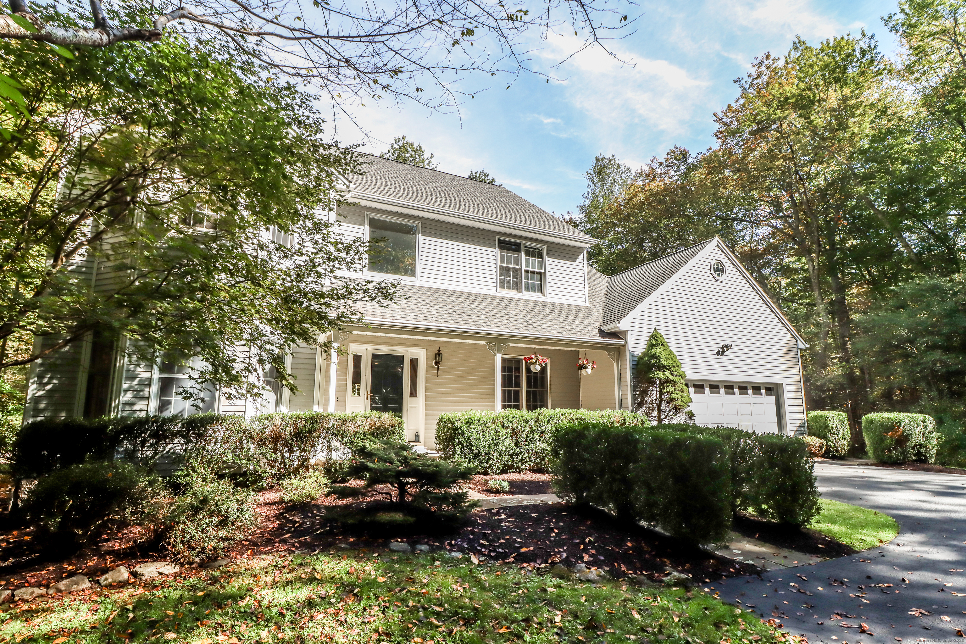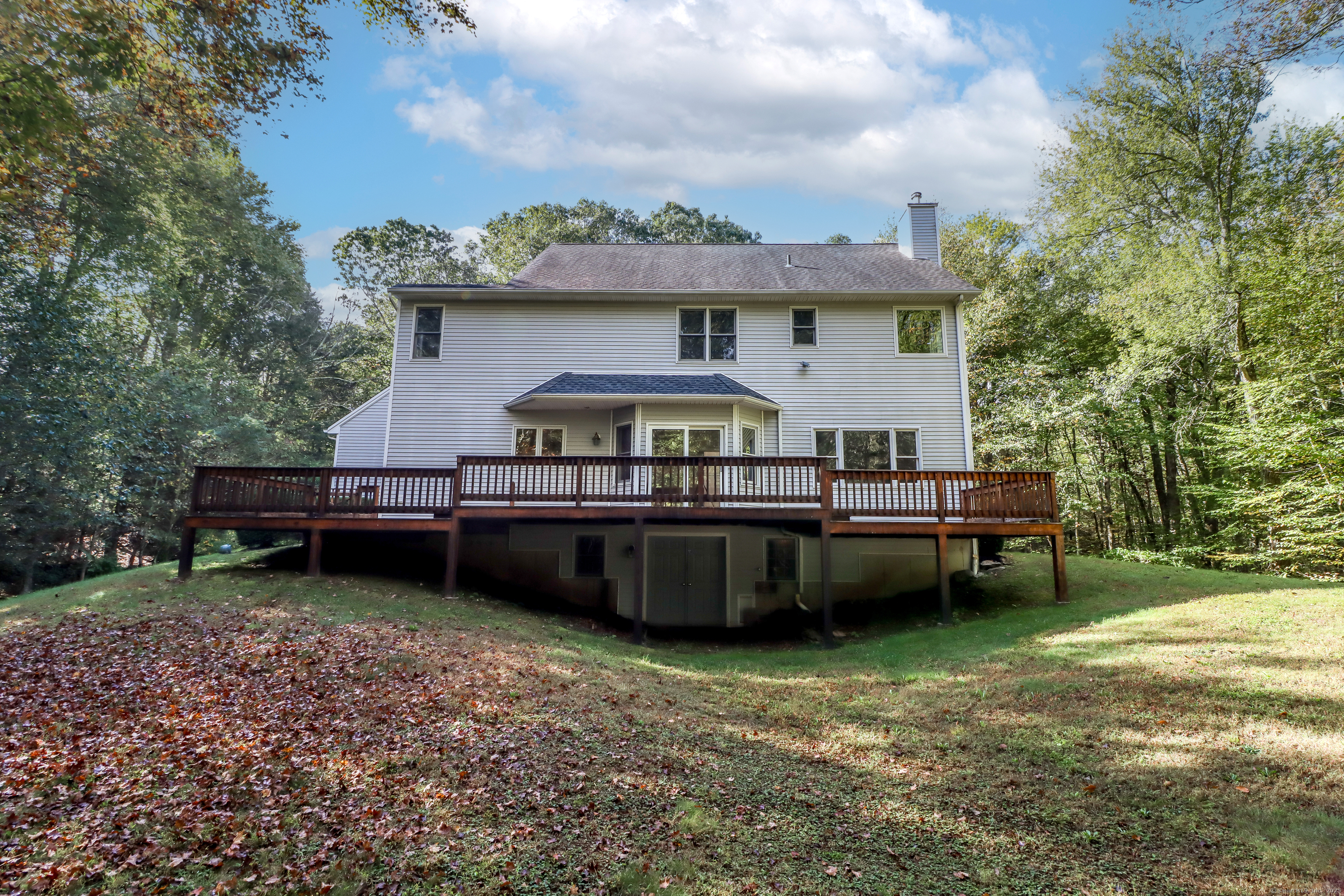 Set on 8+ private, wooded acres in one of Brookfield's most coveted neighborhoods, this refined Colonial offers a perfect blend of timeless elegance and modern comfort. A welcoming covered porch leads inside to a dramatic two-story foyer, gleaming hardwood floors, and custom millwork. The main level includes a home office, formal dining room, and a butler's pantry, all freshly painted and beautifully appointed. At the rear of the home, an open concept kitchen and family room create an inviting space for everyday living. The kitchen features custom cabinetry, granite counters, tile backsplash, a built-in desk, and generous storage and prep space. Sliders open to an expansive deck overlooking the private yard-ideal for seamless indoor-outdoor entertaining. The spacious family room showcases oversized windows, a fireplace, and new carpeting. A powder room and laundry complete the first floor. Upstairs, the serene primary suite boasts hardwood flooring, a vaulted ceiling, walk-in closet, and spa-like bath. Three additional bedrooms (two with walk-in closets) and a second full bath complete the upper level. The walk-out lower level offers outstanding potential for future expansion. Enjoy the peace of a private setting with easy access to shopping, dining, and recreation on Lake Lillinonah and Candlewood Lake, plus convenient proximity to I-84, 684, and Routes 7, 25 & 202.