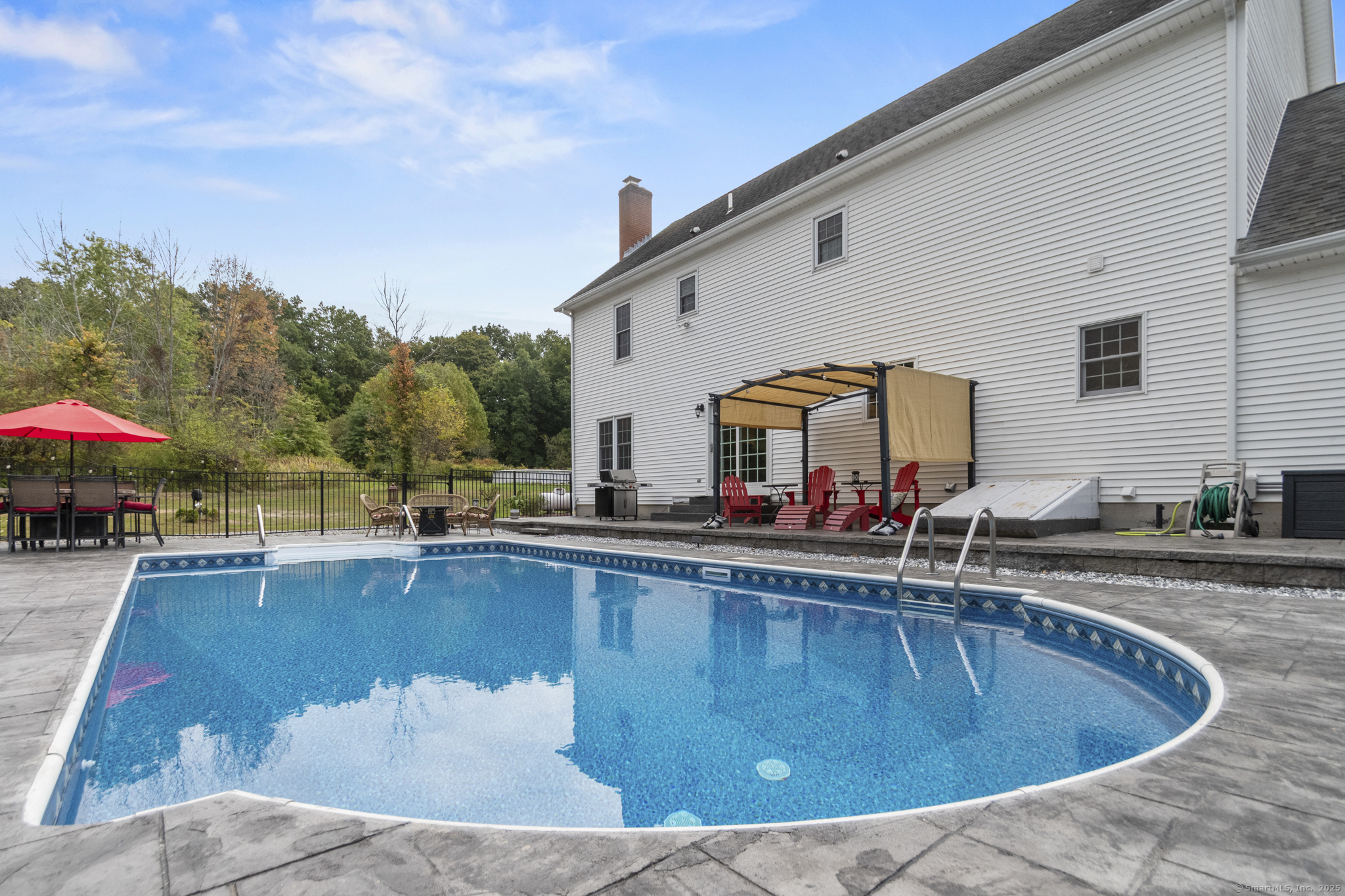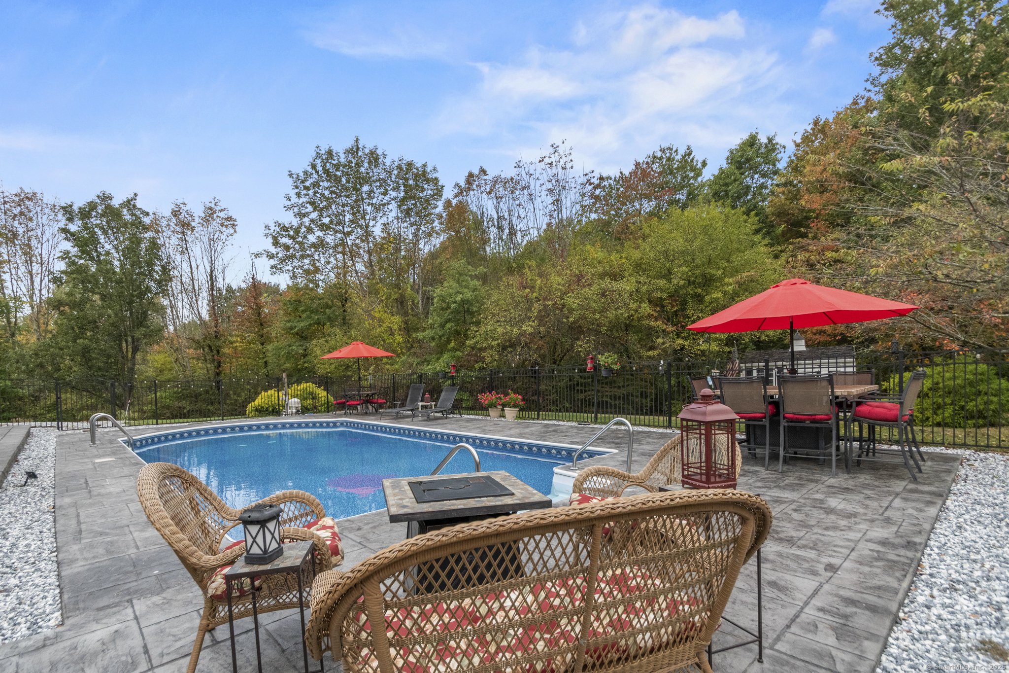 Welcome to this spacious 4-bedroom, 3.5-bath Colonial at the end of a quiet cul-de-sac in the heart of Middlefield. Set on private grounds with extensive landscaping, this home is designed for both comfort and entertaining. Enjoy summers by the in-ground pool featuring a brand-new liner and beautiful patio. Inside, hardwood floors flow throughout the first floor, complemented by crown molding and French doors in the living room.The spacious kitchen is perfect for gatherings, while the family room features a propane fireplace insert for cozy evenings, and sliders showcasing lovely views of the pool and backyard. Upstairs, the primary suite offers 2 walk-in closets and a private bath with built-in cabinetry and additional luxuries. Three additional bedrooms complete the second floor, plus a walk-up attic ready for future finishing. A freshly painted interior, central air, and a finished basement with a full bath add even more comfort and versatility. With a garage wired for EV charging, an outdoor shed, and many updates throughout, this home is move-in ready. Nearby attractions include Lyman Orchards, voted the #1 apple orchard in the nation by USA Today with 45 holes of championship golf, along with Lake Beseck, Powder Ridge Mountain Park & Resort, and Wadsworth Falls Park. Wesleyan University is just 7 miles away. Middlefield offers the best of both worlds: farms, golf, lakes, and nature for a peaceful lifestyle, with restaurants, shopping, and amenities just minutes away.