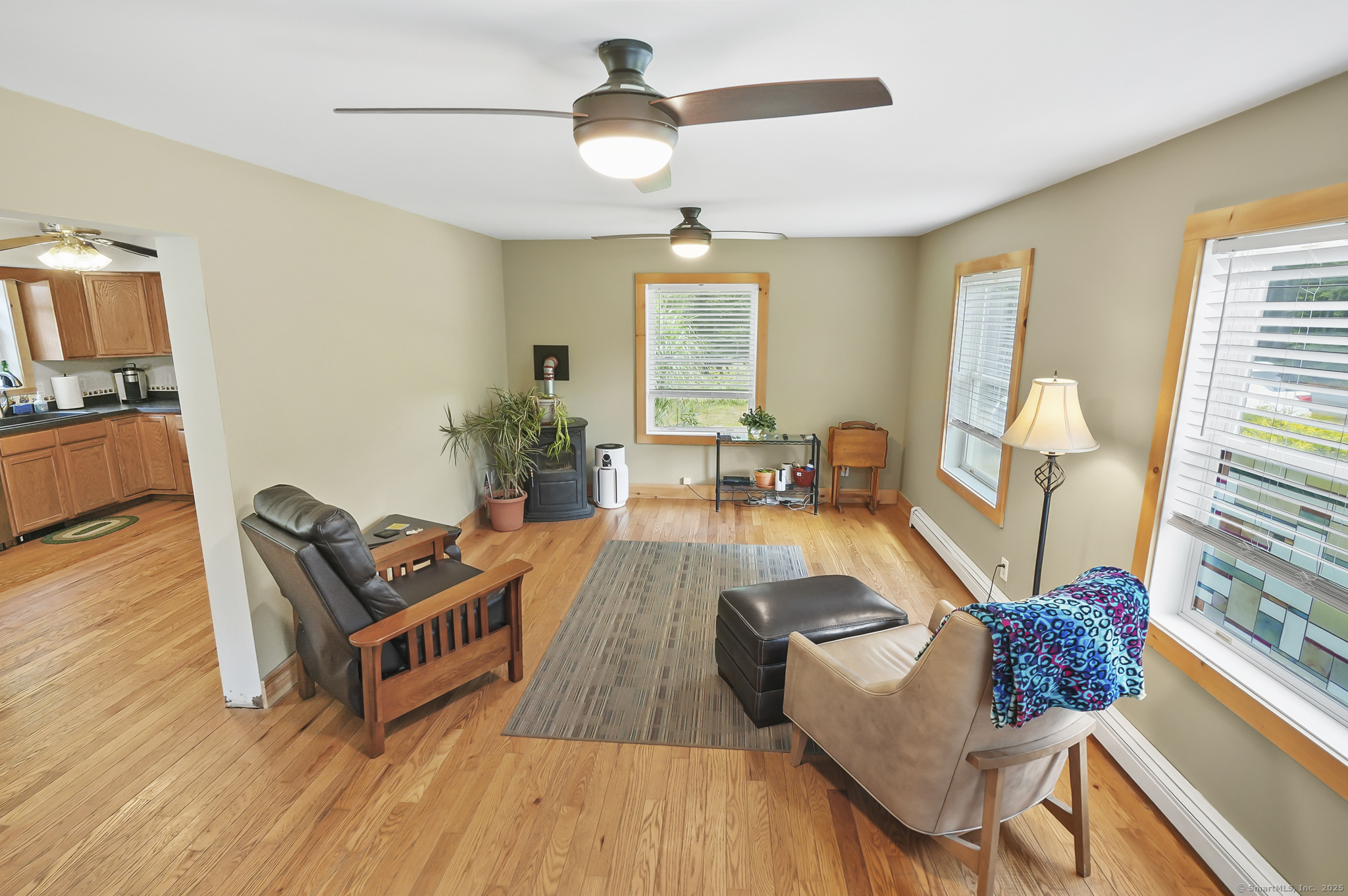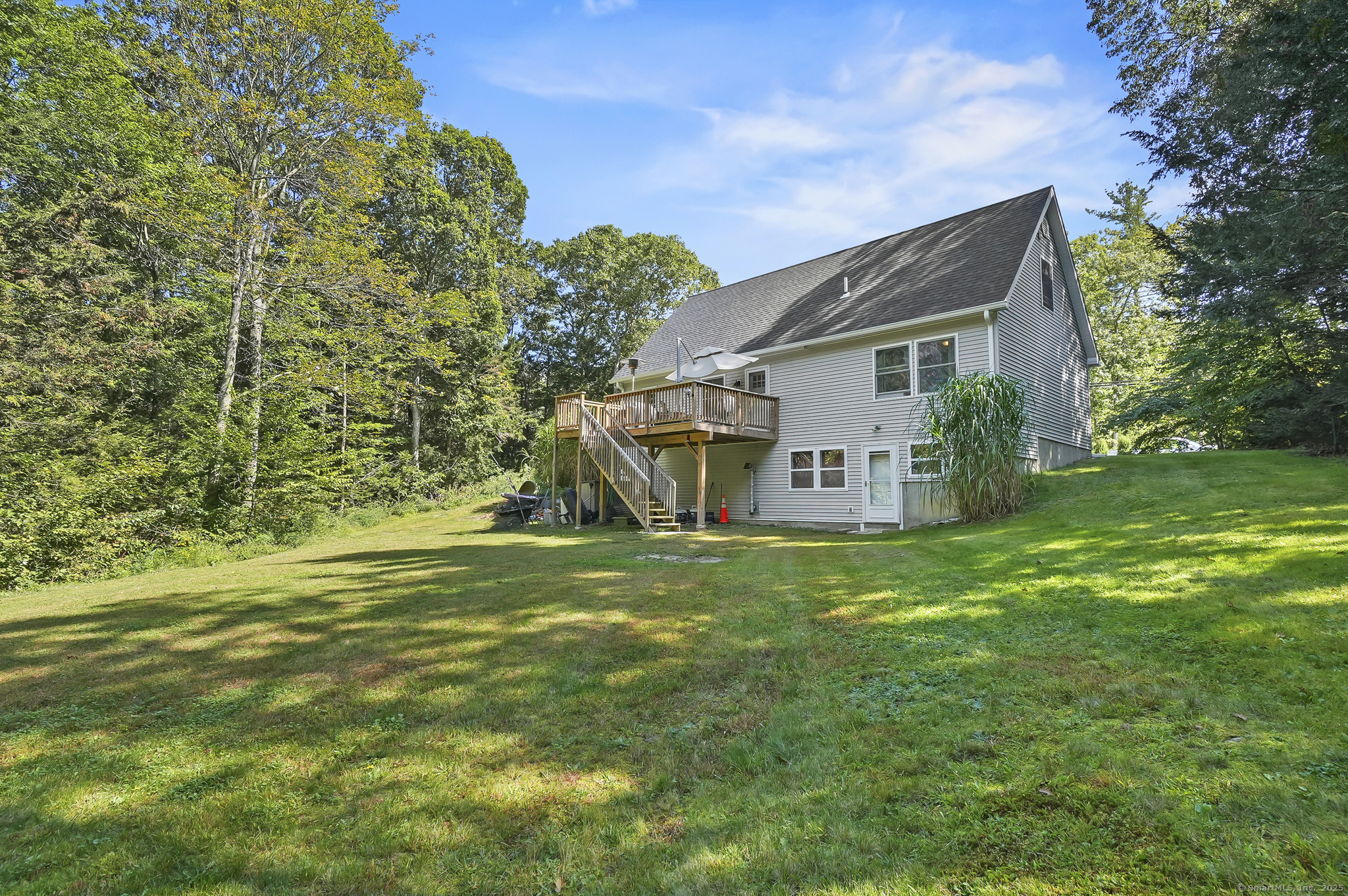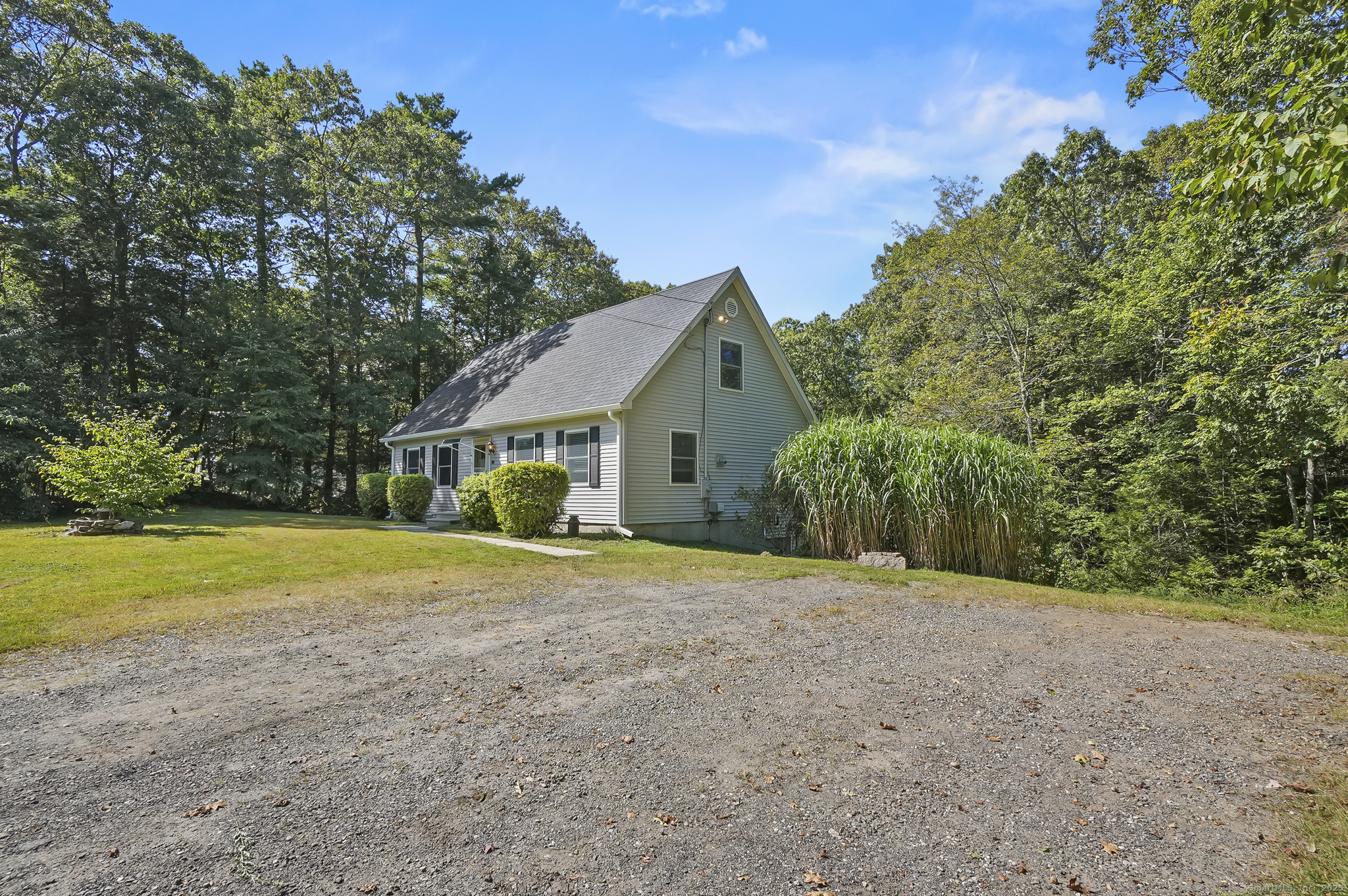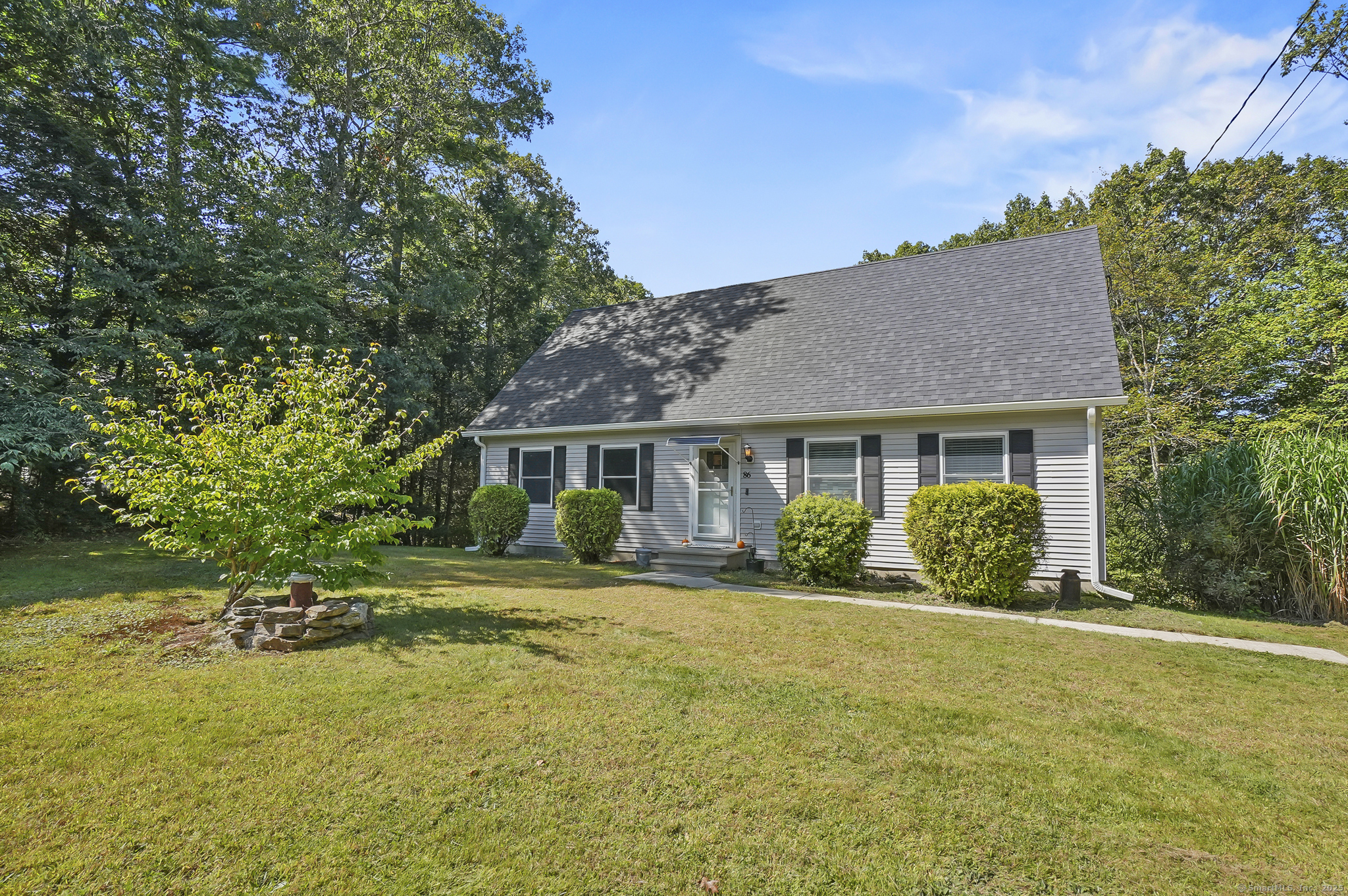 Embrace the quintessential New England lifestyle in this charming 4-bedroom, 2-bathroom Cape nestled on over 4 private, wooded acres in Woodstock. Enter inside and be greeted by hardwood floors that flow throughout the home. The main level offers a bright, sunny living room that leads into the well-appointed kitchen, featuring stainless steel appliances, an electric range, and a dining area with access to the back deck - perfect for enjoying your peaceful surroundings. This floor also includes the convenience of a first-floor primary bedroom and a second bedroom, along with a full bathroom. Upstairs, you'll find two additional spacious bedrooms and a second full bathroom located right off the hallway. With a private back deck overlooking your extensive acreage, this home offers the perfect blend of classic charm, convenience, and seclusion. Additional upgrades include 40 year Architectural shingles installed 2020. Located within 40 minutes to an hour from four major cities: Worcester, Springfield, Providence, and Hartford, making it a commuters dream! Don't miss the chance to own a true piece of Woodstock!