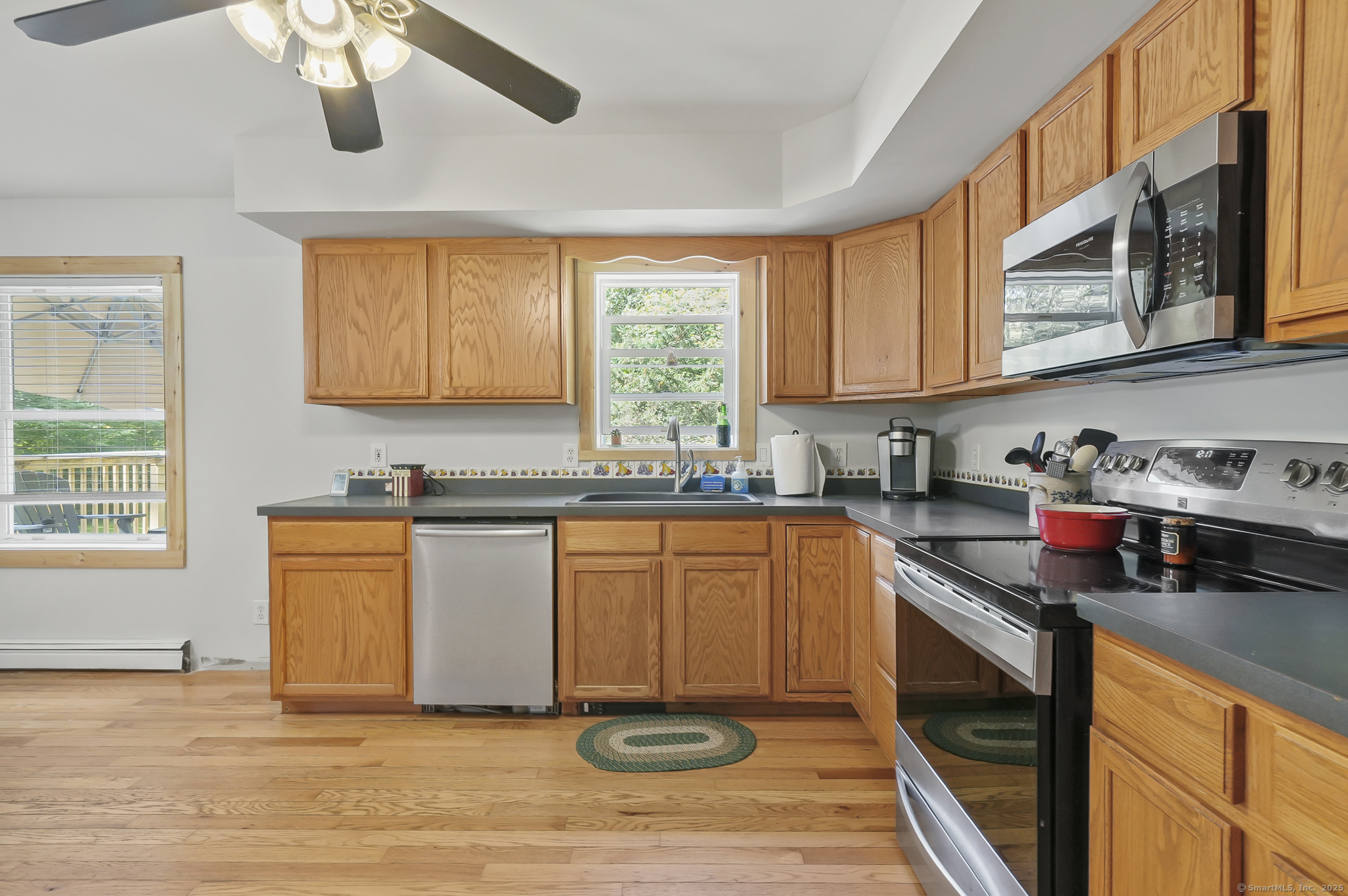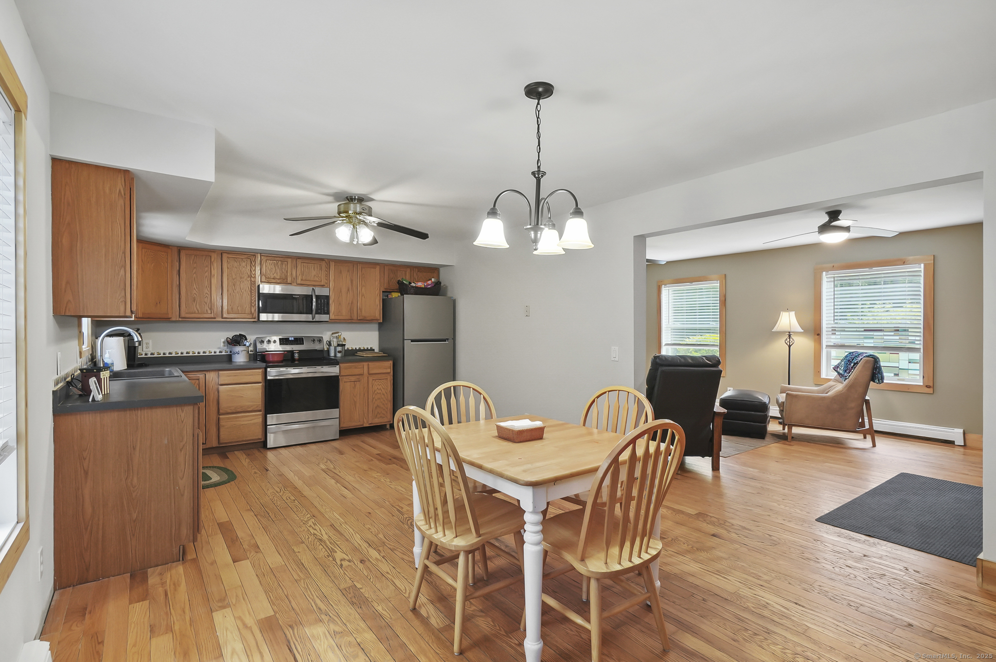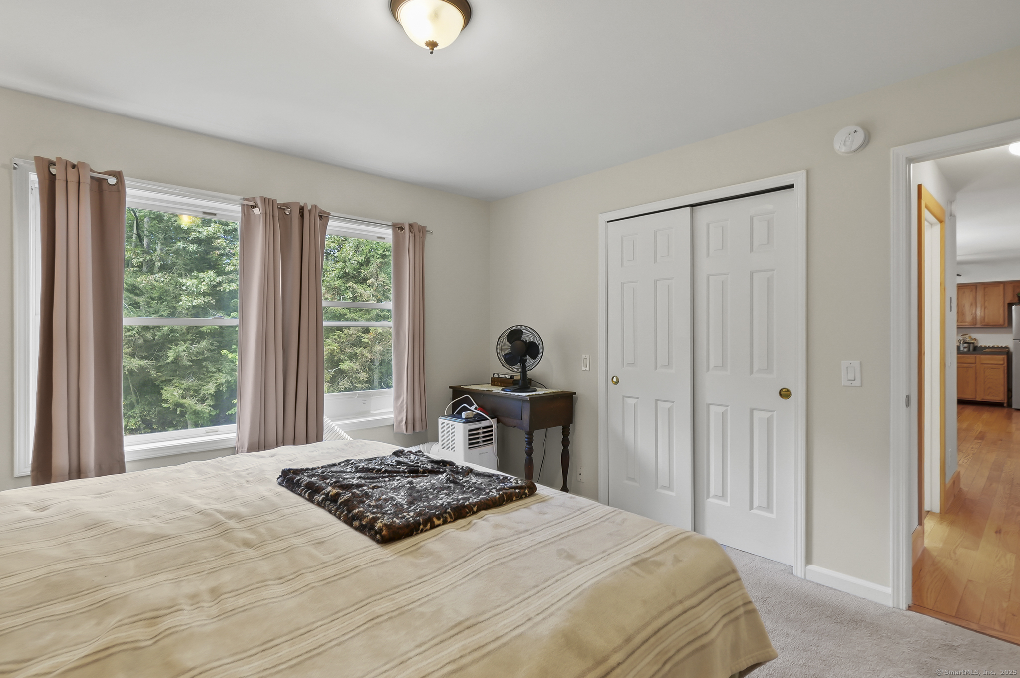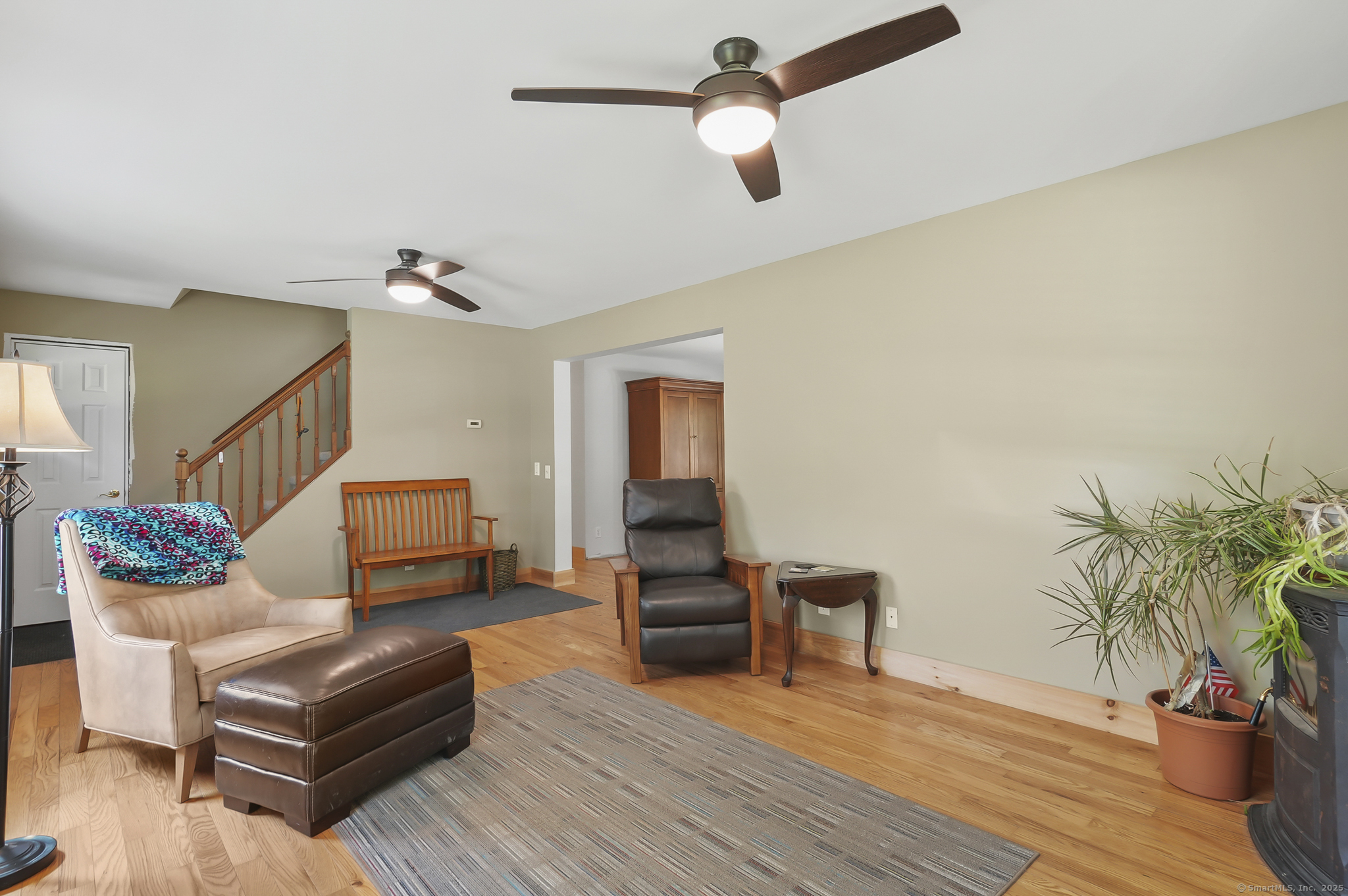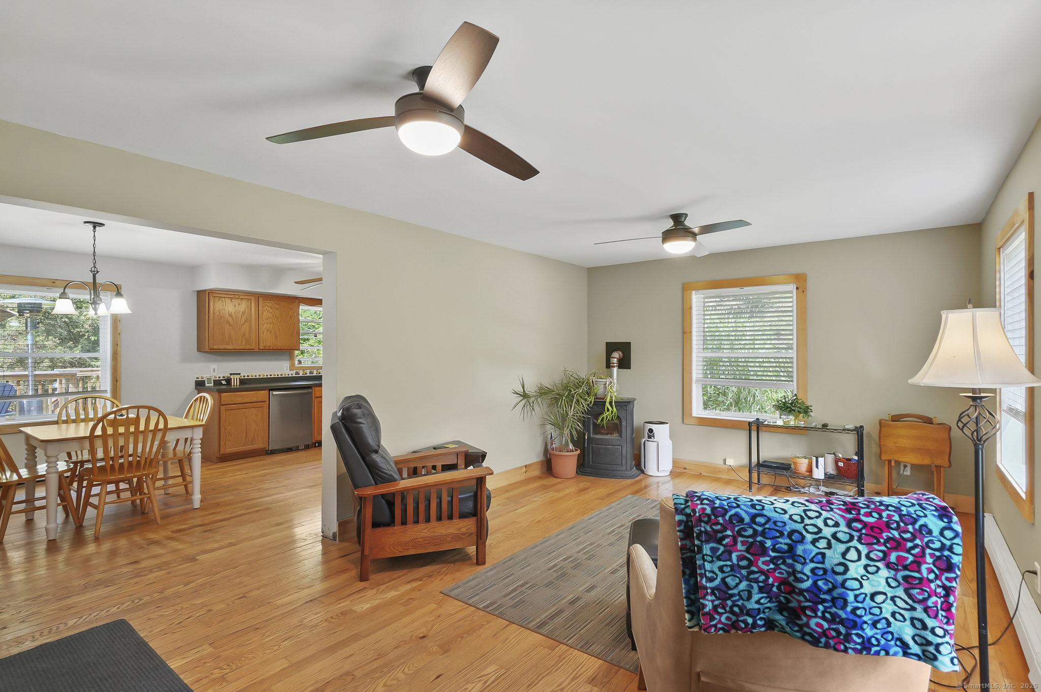 Embrace the quintessential New England lifestyle in this charming 4-bedroom, 2-bathroom Cape nestled on over 4 private, wooded acres in Woodstock. Enter inside and be greeted by hardwood floors that flow throughout the home. The main level offers a bright, sunny living room that leads into the well-appointed kitchen, featuring stainless steel appliances, an electric range, and a dining area with access to the back deck - perfect for enjoying your peaceful surroundings. This floor also includes the convenience of a first-floor primary bedroom and a second bedroom, along with a full bathroom. Upstairs, you'll find two additional spacious bedrooms and a second full bathroom located right off the hallway. With a private back deck overlooking your extensive acreage, this home offers the perfect blend of classic charm, convenience, and seclusion. Additional upgrades include 40 year Architectural shingles installed 2020. Located within 40 minutes to an hour from four major cities: Worcester, Springfield, Providence, and Hartford, making it a commuters dream! Don't miss the chance to own a true piece of Woodstock!
