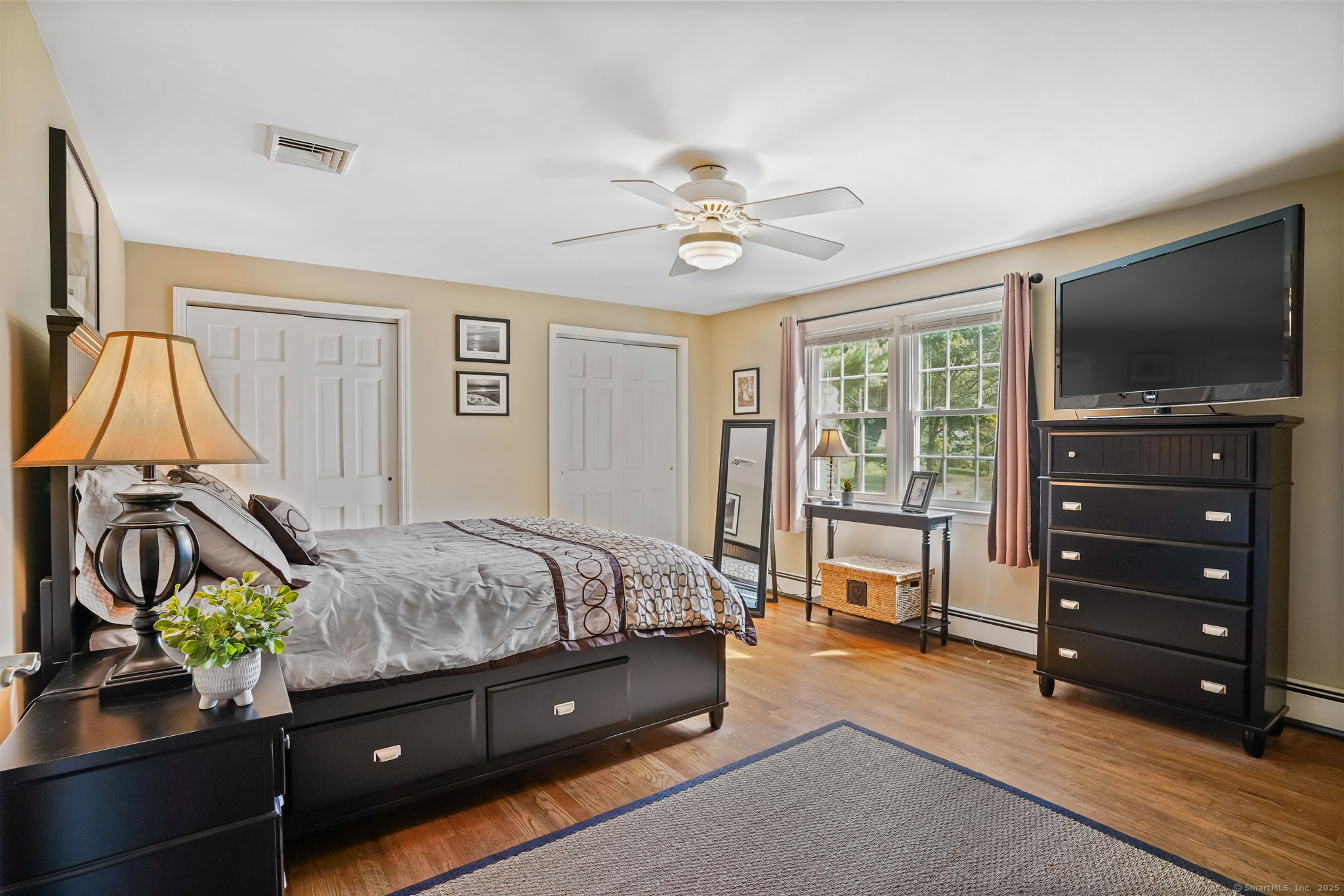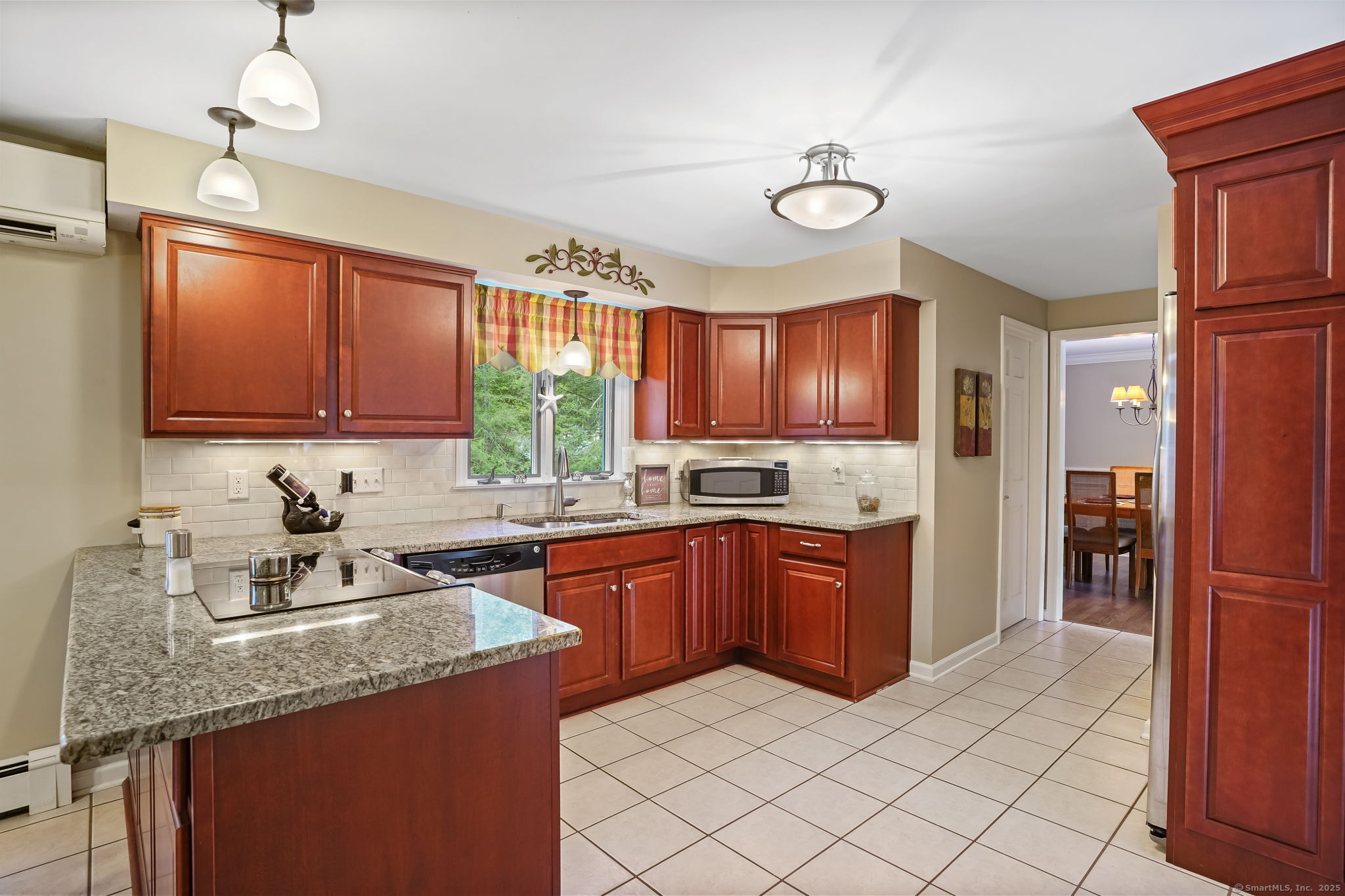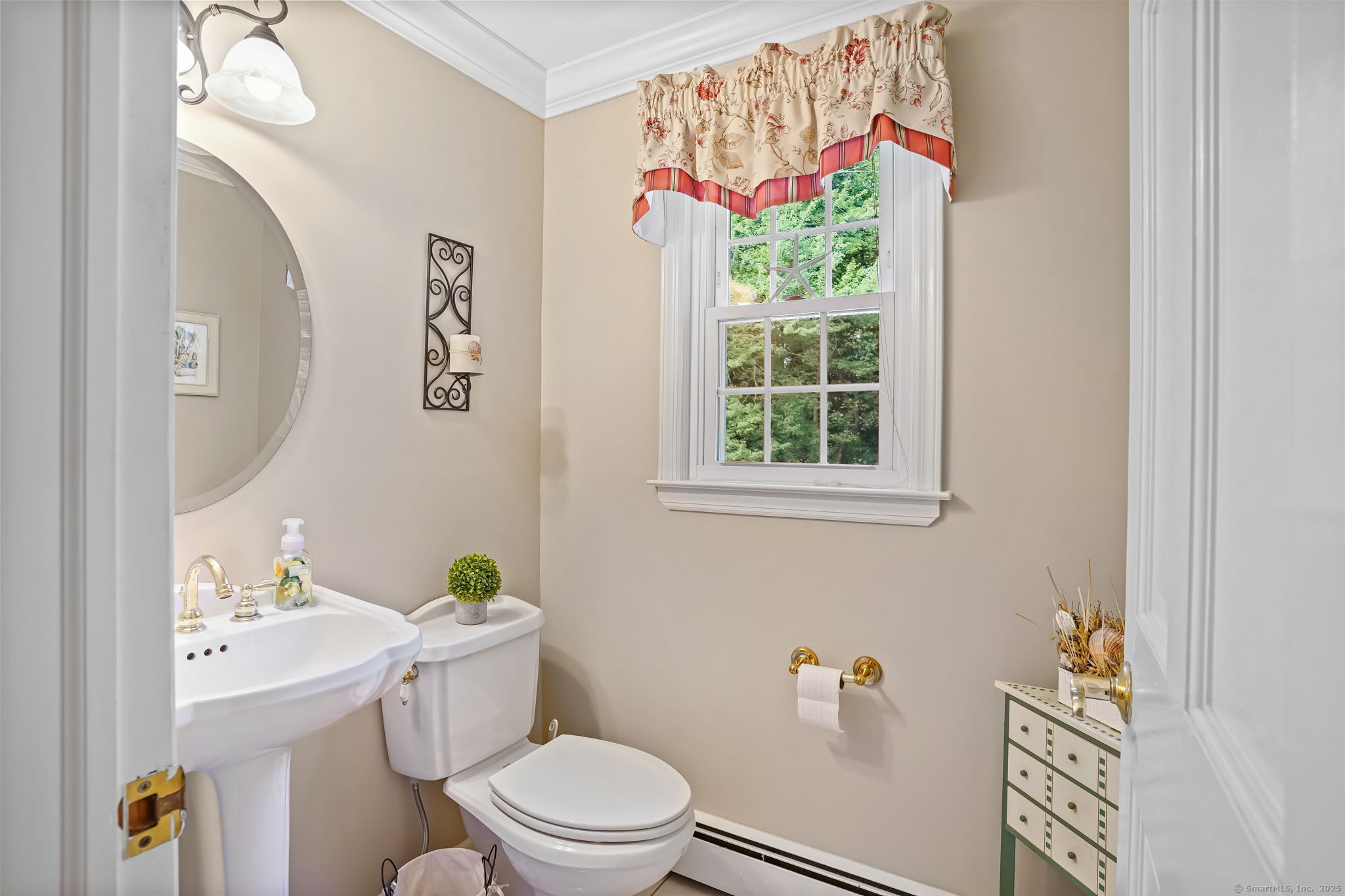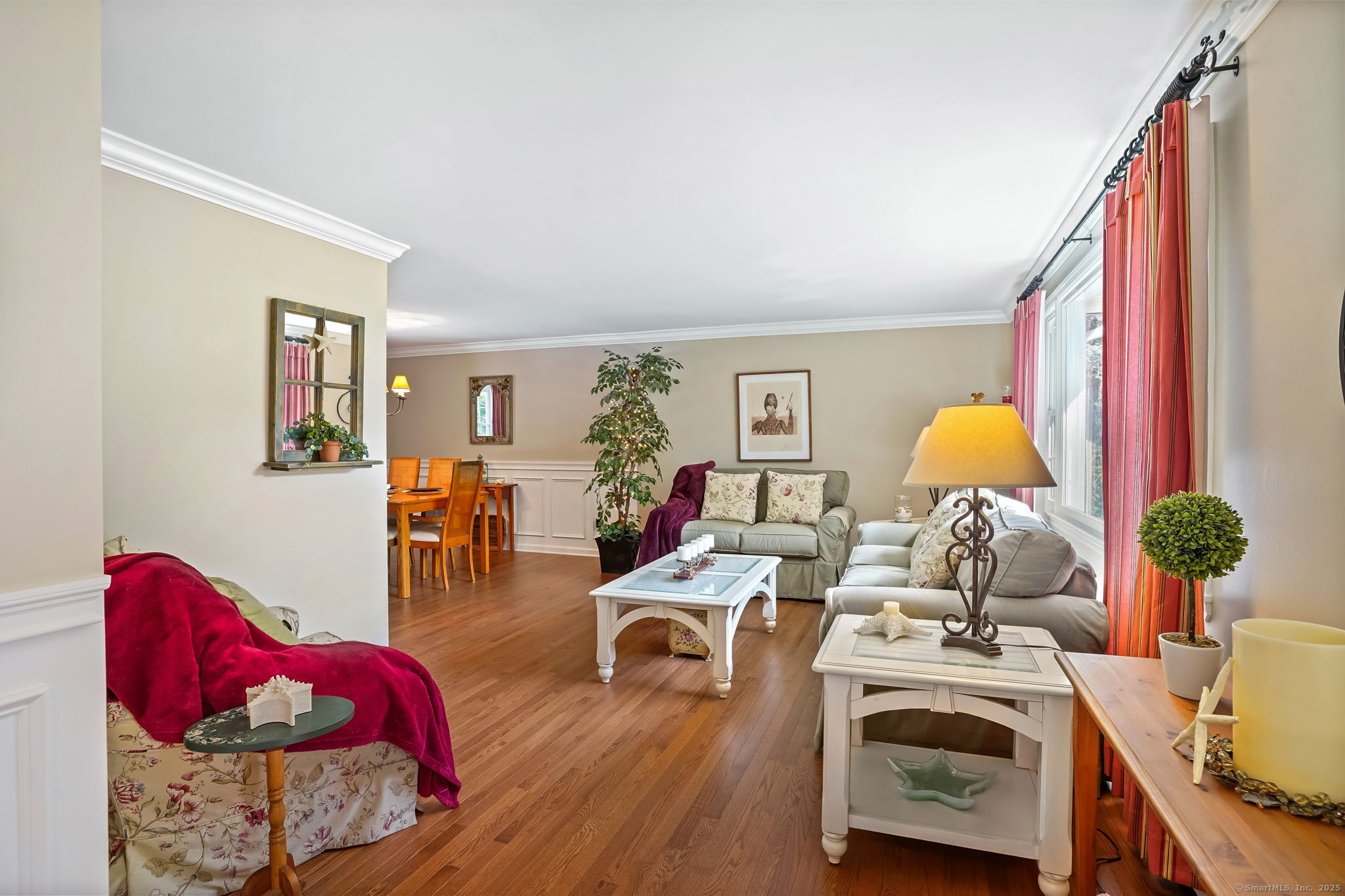This classic colonial is set on a quaint street in one of Trumbull's most desirable neighborhoods. Offering over 2,300 square feet above grade with 4 bedrooms and 2.5 baths, this home blends comfort, space, and convenience. The exterior features timeless vinyl clapboard siding accented with a brick facade, while the flat one-acre backyard provides a private retreat with a refinished deck and above-ground pool. Inside, the first floor is filled with natural light and hardwood floors that run through most rooms. The living and dining rooms connect seamlessly, creating an ideal flow for gatherings. The eat-in kitchen is finished with granite countertops, ample cabinet storage, and additional built-in pantry space, perfectly situated next to the step-down family room with vaulted ceilings, skylights, a fireplace, and sliders to the deck. A powder room, laundry area, and a versatile room currently serving as a home office complete the main level. Upstairs, the spacious primary suite features abundant closet space and a private full bathroom. Three additional well-sized bedrooms share a separate full hall bathroom, offering comfort and convenience. The finished lower level adds approximately 500 square feet of living space, featuring high ceilings and durable vinyl flooring, ideal for a recreation room, gym, or media space. With its serene setting, thoughtful layout, and central location close to all Trumbull amenities, this home is ready to welcome a new owner.