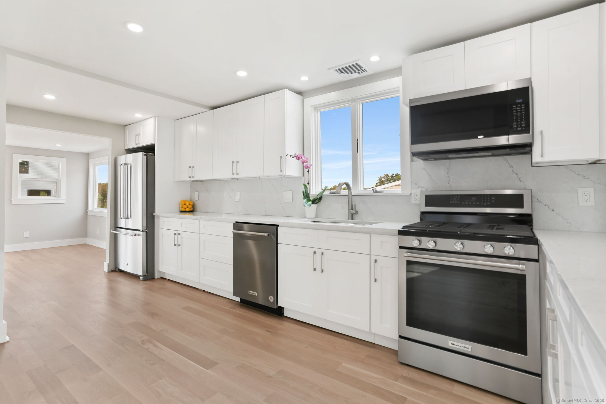 Welcome to 44 Beachland Avenue in Milford, CT, awarded Zillow's #1 Most Popular Coastal City! Renovated from top to bottom in 2025, this 3BR, 3BA shoreline retreat blends timeless character with modern elegance, showcasing water views from nearly every room. The open-concept main level boasts a sun-drenched kitchen with quartz counters, stainless steel appliances, and crisp white cabinetry, flowing seamlessly into dining, family, and living areas that open to a full-length Trex deck. Upstairs offers 2 full baths and 3 bedrooms, highlighted by a luxurious primary suite with spa-like ensuite bathroom and private balcony overlooking Long Island Sound, perfect for sunrise coffee or sunset wine. Exceptional outdoor space awaits with a patio and inviting fire pit that create the perfect setting for summer entertaining or quiet nights under the stars. Every detail has been upgraded: 4" white oak floors, all new plumbing/electric/HVAC, Navien tankless, Nest thermostat, architectural shingles and oversized garage. With city water/sewer/natural gas and lifted to meet FEMA compliance, this home delivers turnkey peace of mind. Just steps to the beach and surrounded by multi-million dollar homes, this is where every day feels like vacation. Seize this rare opportunity to own your slice of coastal luxury!