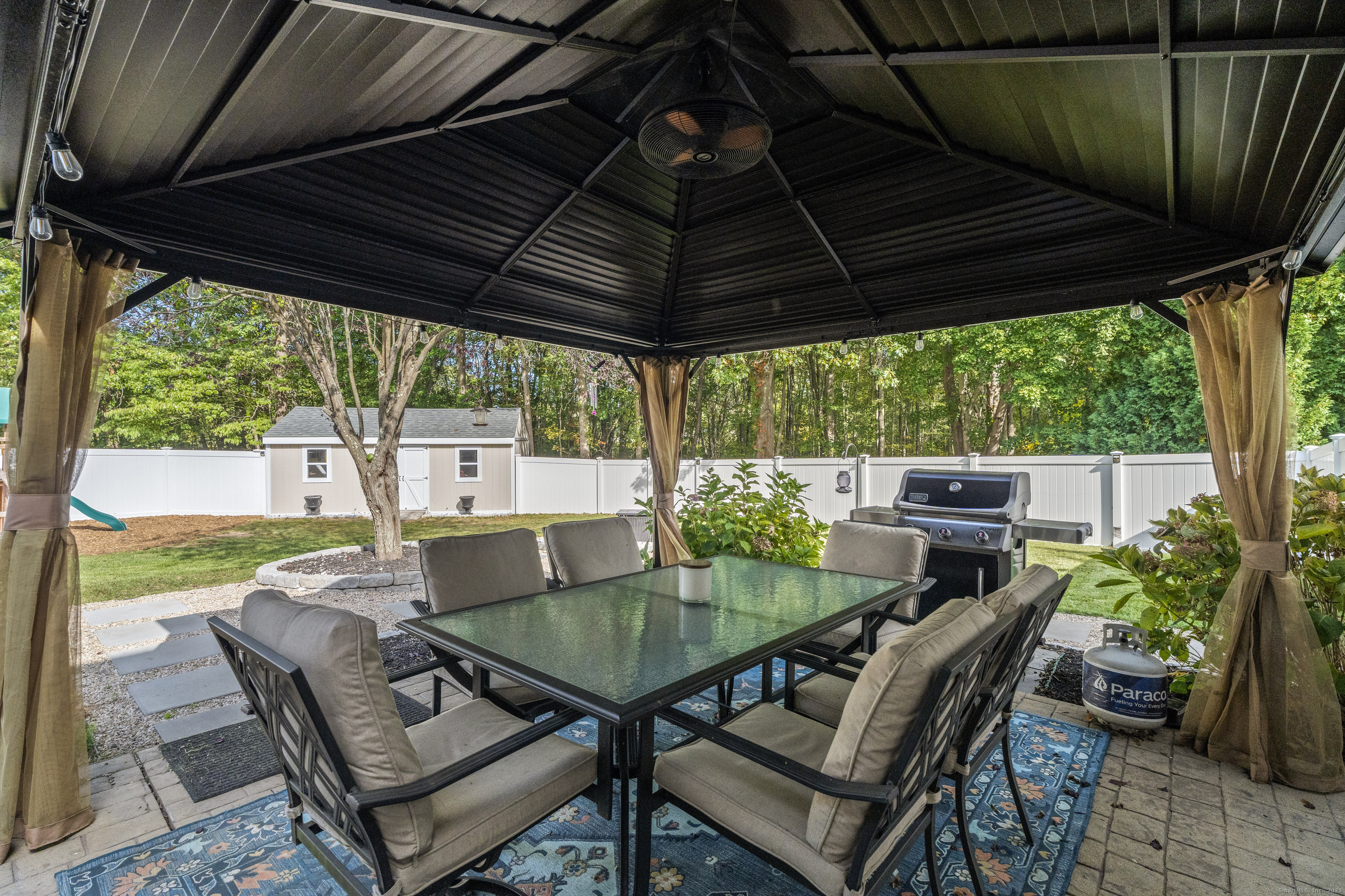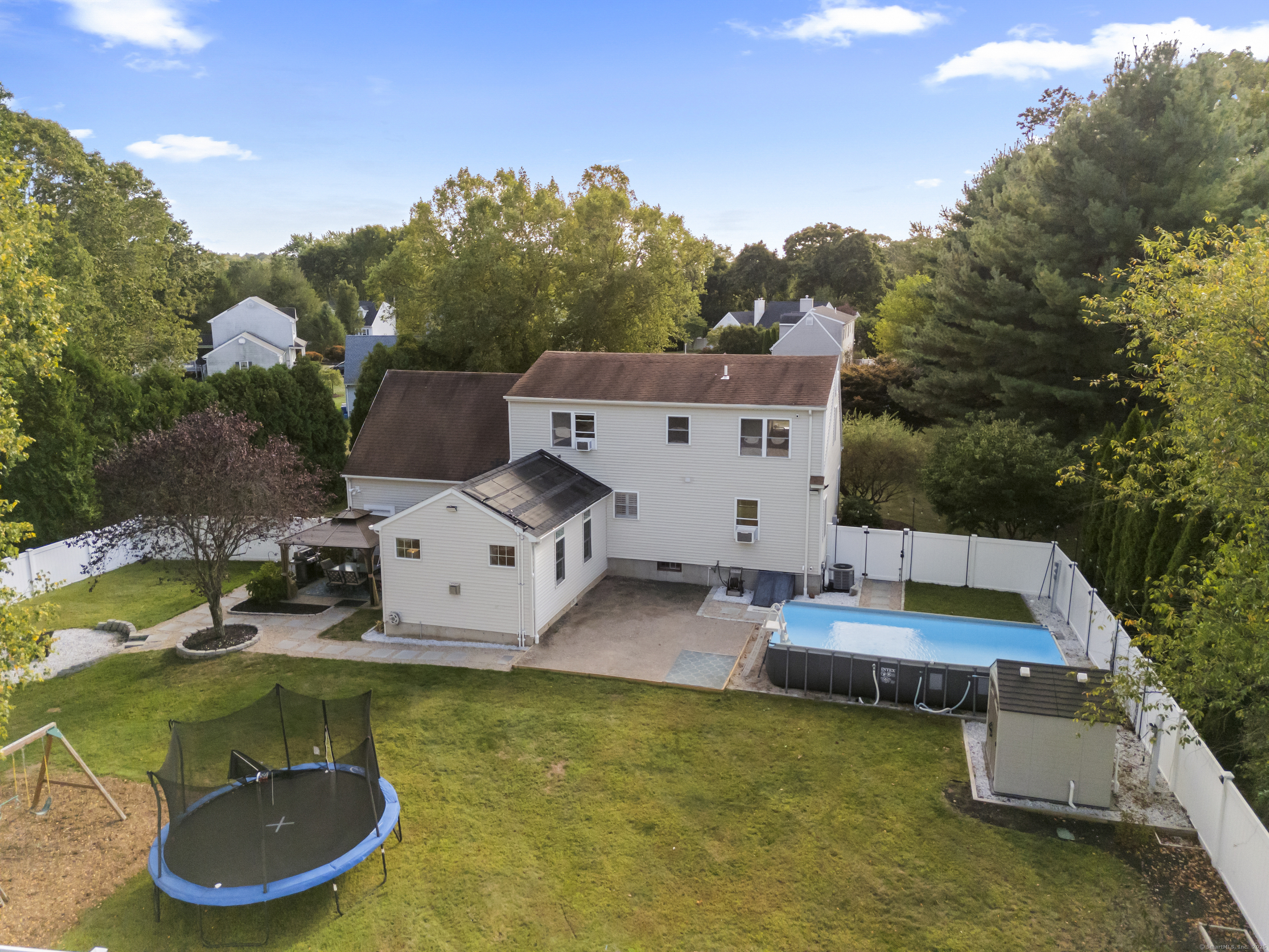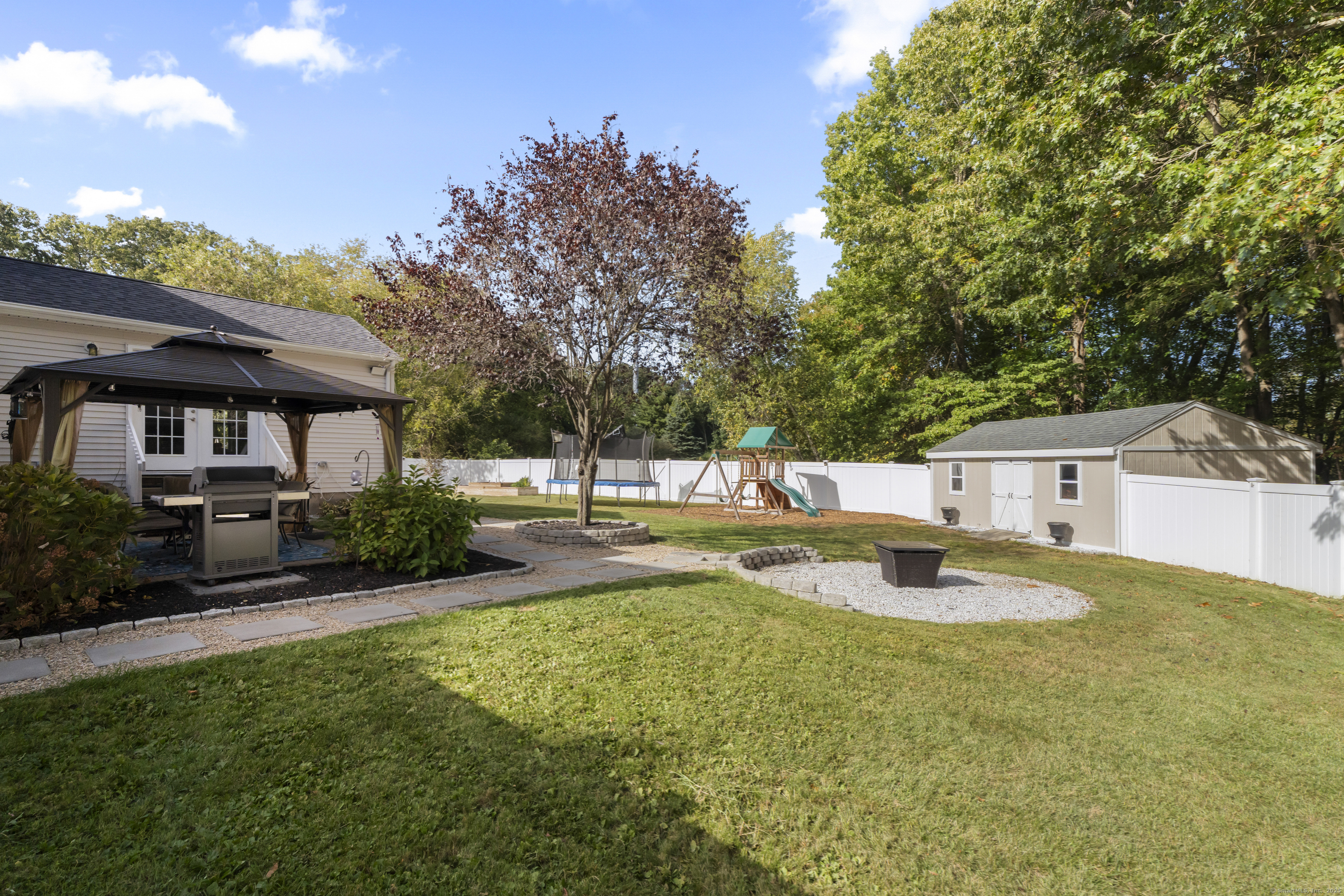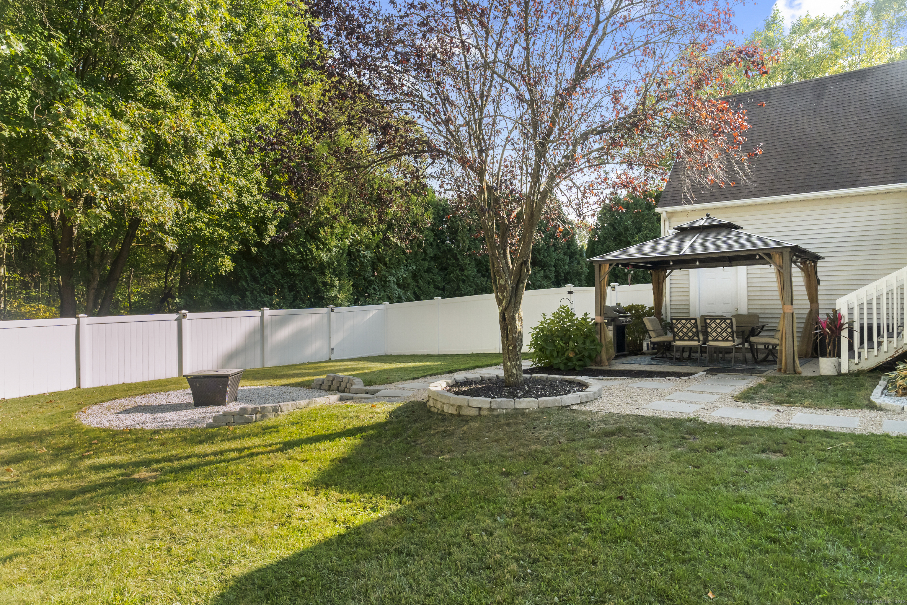An Experience in Privacy & Beauty - Gracefully placed at the end of a quiet cul-de-sac and set back from the road, this home feels like a true sanctuary. Surrounded by nature and designed with privacy in mind, it offers the kind of setting that makes life feel calmer, slower, and more connected. Step outside and you'll find spaces meant to be enjoyed: a shaded patio with a gazebo, fire pit, vegetable gardens, a pool for summer afternoons, and open land stretching beyond the property. Every corner of the grounds feels cared for and inviting, ready for quiet moments or time shared with others. Inside, the home welcomes you with a beautifully updated kitchen and a walk-in pantry that makes daily living effortless. A spacious family room with sliders brings the outdoors in, creating a natural flow for gatherings or simple evenings at home. The primary suite is a retreat of its own, complete with an incredible walk-in closet and dressing room that truly redefine what it means to get ready in style. Three additional bedrooms and two full baths ensure there's room and comfort for everyone. The finished lower level is the ultimate bonus space-flexible enough to become a home office, gym, playroom, or all three. Endless possibilities allow the home to evolve with your needs. This is a place you'll look forward to coming home to-and a place that naturally draws people in. With space to grow, relax, and enjoy, it's not just a house, but a setting for the life you want to live