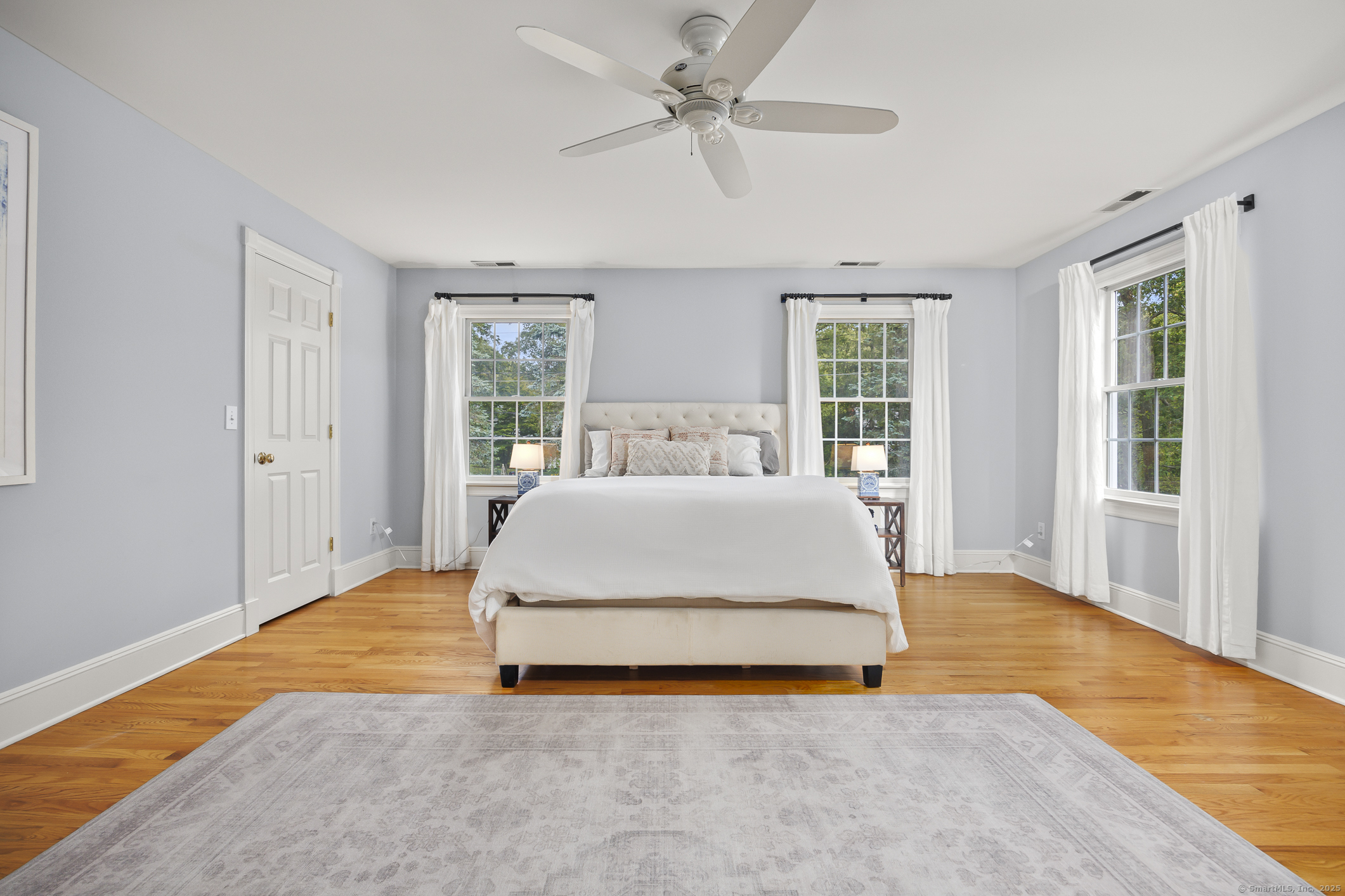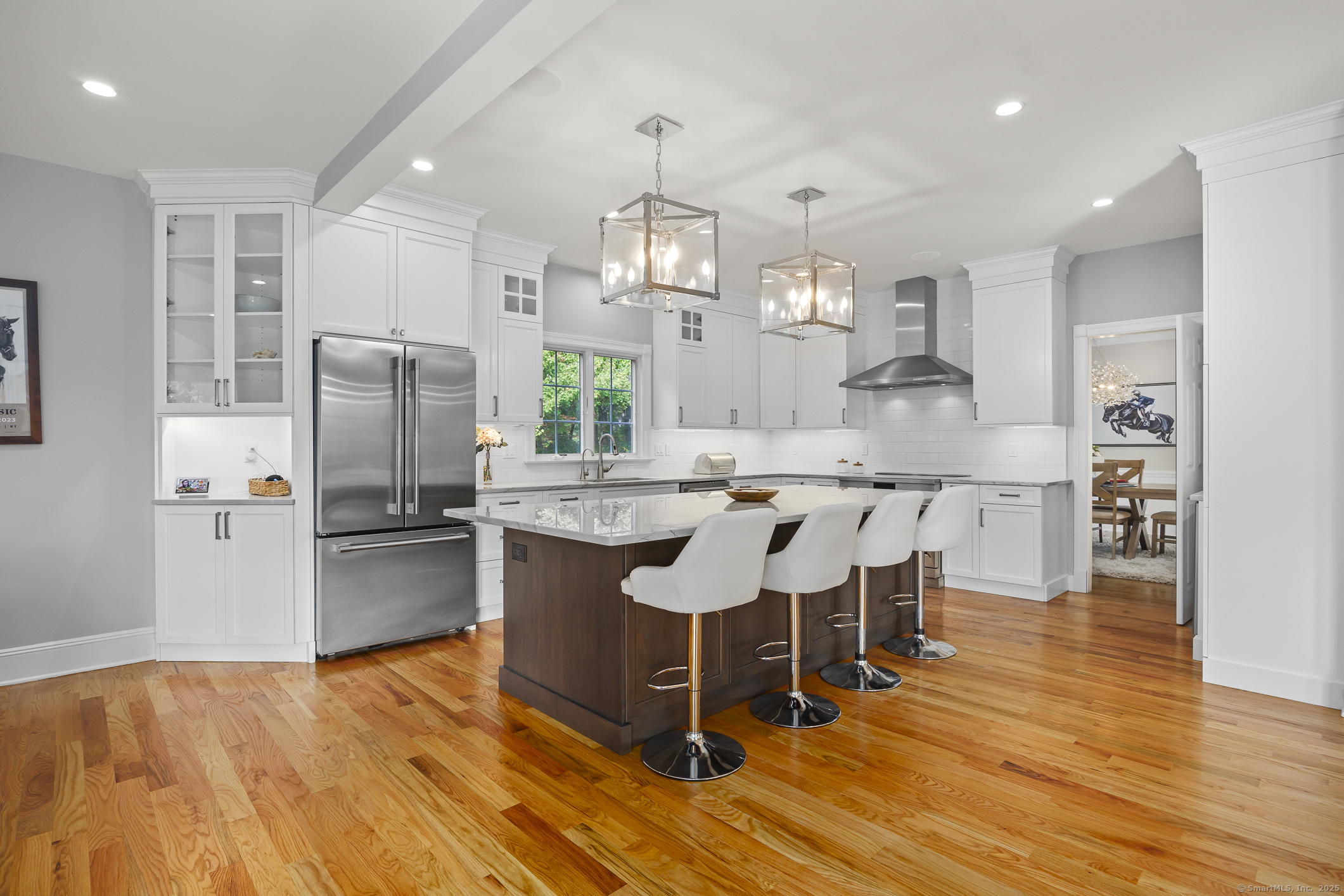 This is the one you've been waiting for! Glorious, perfectly remodeled 5 bedroom colonial that epitomizes refined elegance & expansive 4 level living. Breathtaking Round Lake and NYC skyline views from the back deck. Whimsical stone front porch. Located in a lovely neighborhood just moments to the NY border. Nearly an acre and a half of manicured grounds and gardens. Inside, the home features incredible room scale & flow. The high level of craftsmanship is evident throughout. Phenomenal formal dining room with moldings & custom woodwork. Spectacular chef's kitchen with center island, coffee bar, & top-of-the-line smart appliances. Stunning, light-filled open living room with stone fireplace, large eat-in area & sliders out to deck. Lovely sitting room & designated office - each with their own wood burning fireplace. Upstairs, there is an expansive primary bedroom suite with dual walk in closets & a newly renovated bath with soaking tub and radiant floors. Down the hall, there is a large en-suite guest bedroom, 2 additional bedrooms that share a J & J bath, & custom laundry room. The walk up third floor offers even more add'l living space, cedar closet, & storage. Downstairs, the fully finished lower level features a wood burning fireplace, powder room, walkout, & access to the stunning oversized 3 bay garage with swiss tracks and fully insulated garage doors - a car lover's dream! Minutes to downtown, this home is quintessential Ridgefield living at its best.