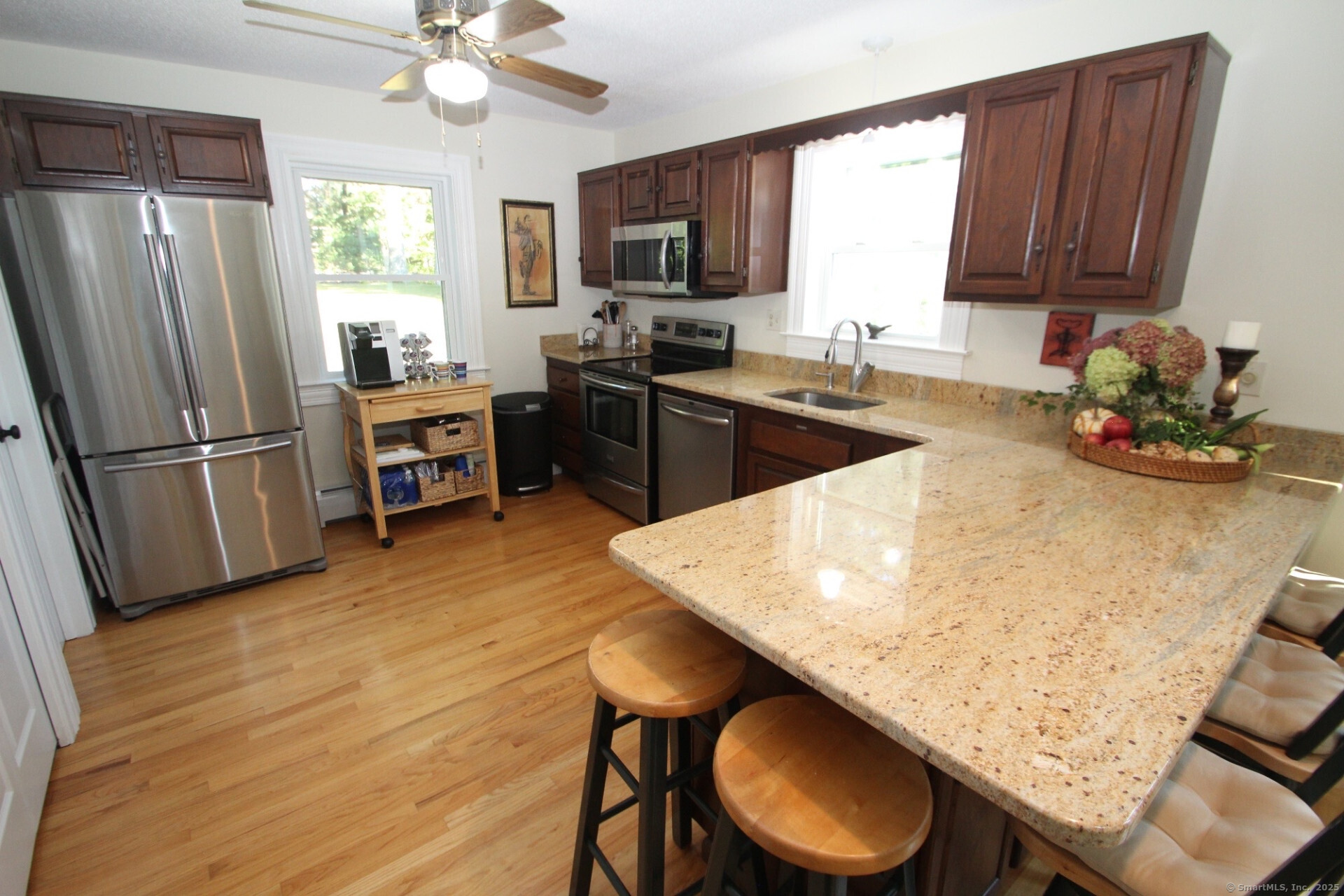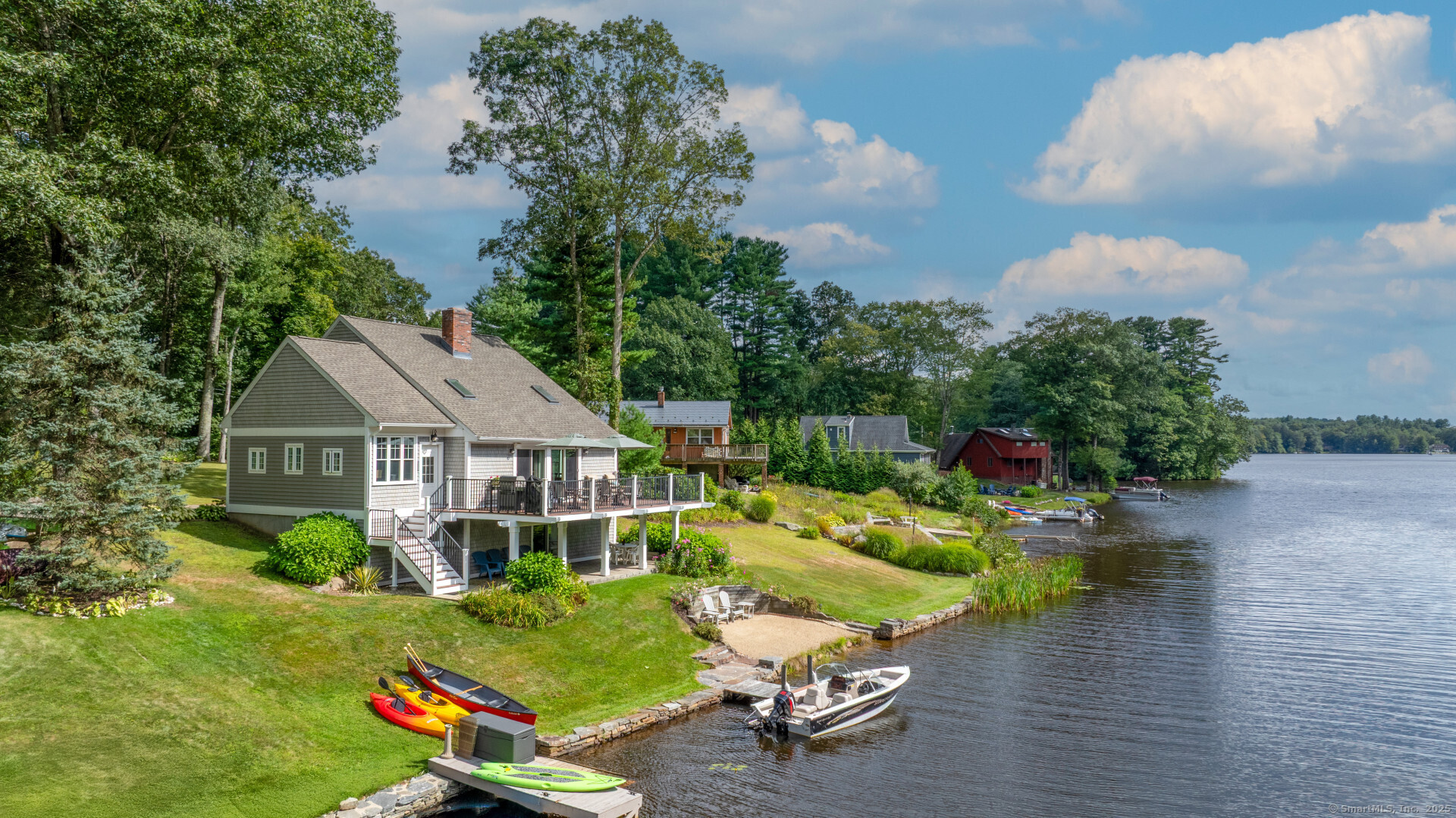 This charming, year-round lake front home located at 115 Crooked Trail Ext in Woodstock, CT was built in 1986 and offers a cozy and inviting atmosphere. Located on the peaceful 70 acre Witches Wood lake in Connecticut's quiet corner offering water activities and lake life culture. With 3 bathrooms, 2 full baths and a total finished area of 1,922 sq. ft., this move in ready, fully furnished home provides ample space for comfortable living to be enjoyed from day one. The lot size of 17,424 sq.ft. with 110 ft. lake frontage offers plenty of outdoor space for recreation and relaxation. This property features a traditional Cape Cod design with breathtaking panoramic window and deck views, creating a warm and welcoming atmosphere. Perfect for a buyer looking for a peaceful retreat, this home is a wonderful opportunity to own a piece of Woodstock's natural beauty. Located just minutes from historic Woodstock Village, restaurants and the Woodstock fair. Don't miss out on this lovely home in a tranquil setting. This sale includes most all furniture as well as all the lake toys pictured to include, 2 kayaks, 1 canoe, 1 16'-60HP Starcraft DC160 Super Sport bow rider boat and all skies, tubes, and life vests.