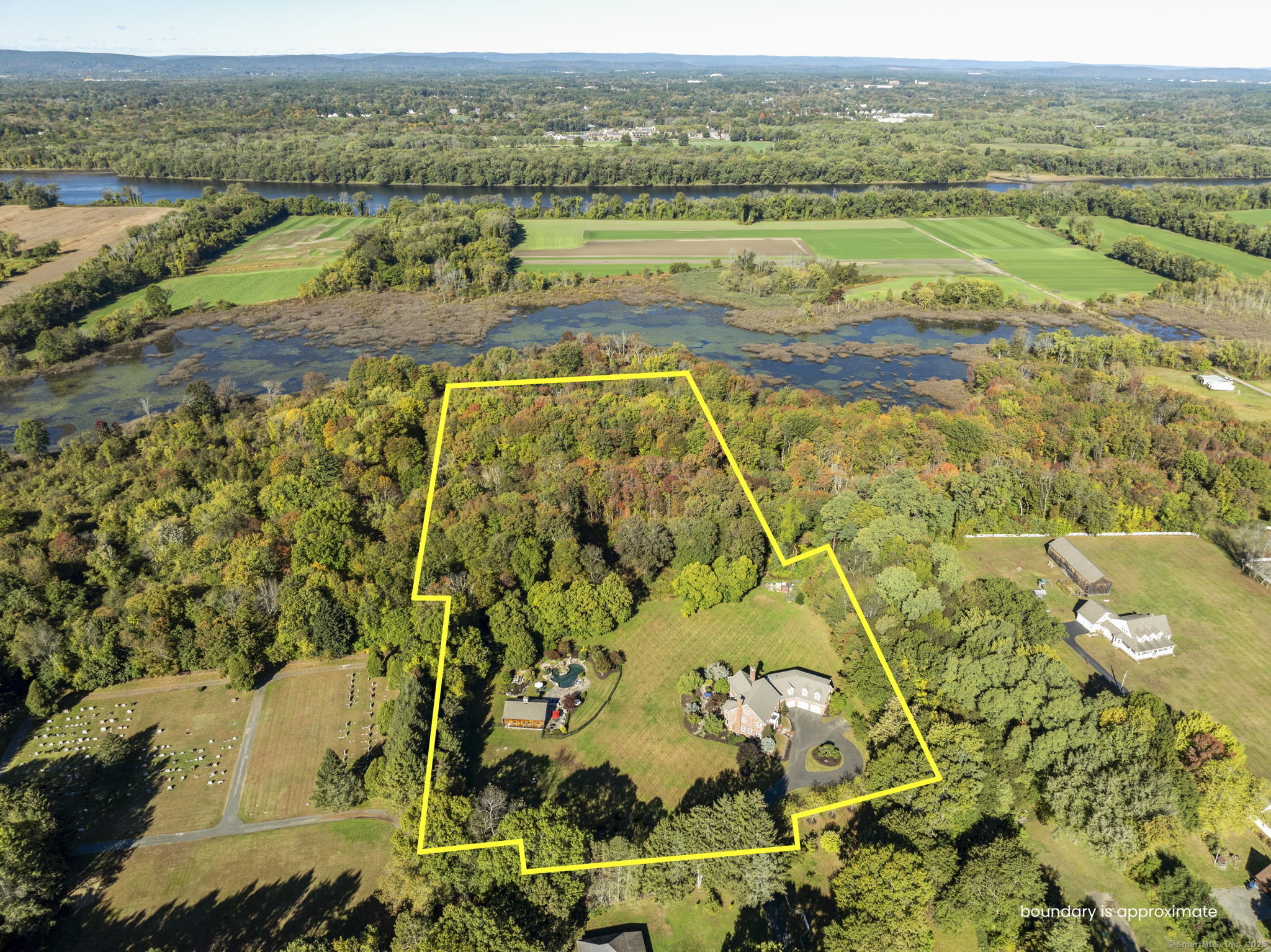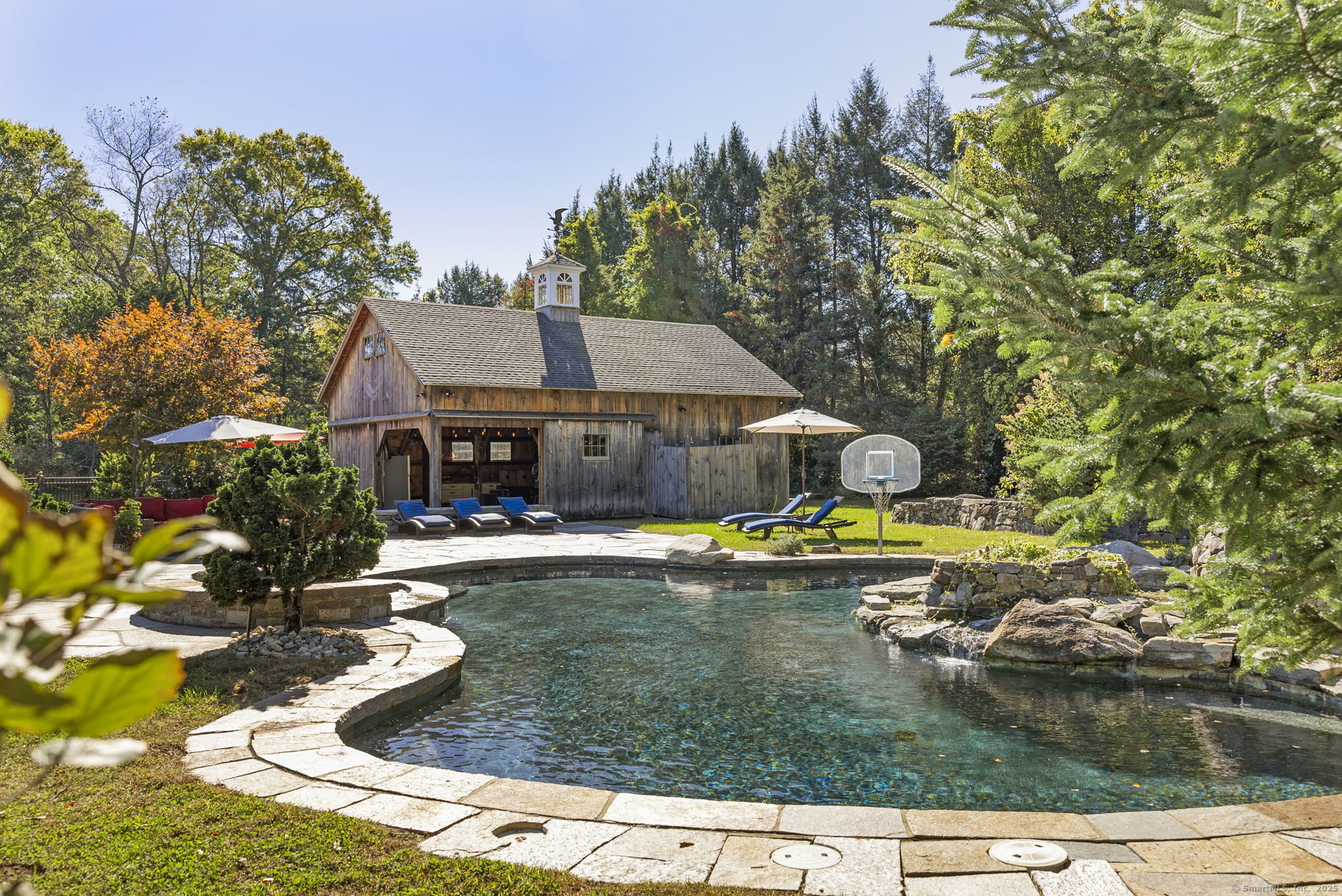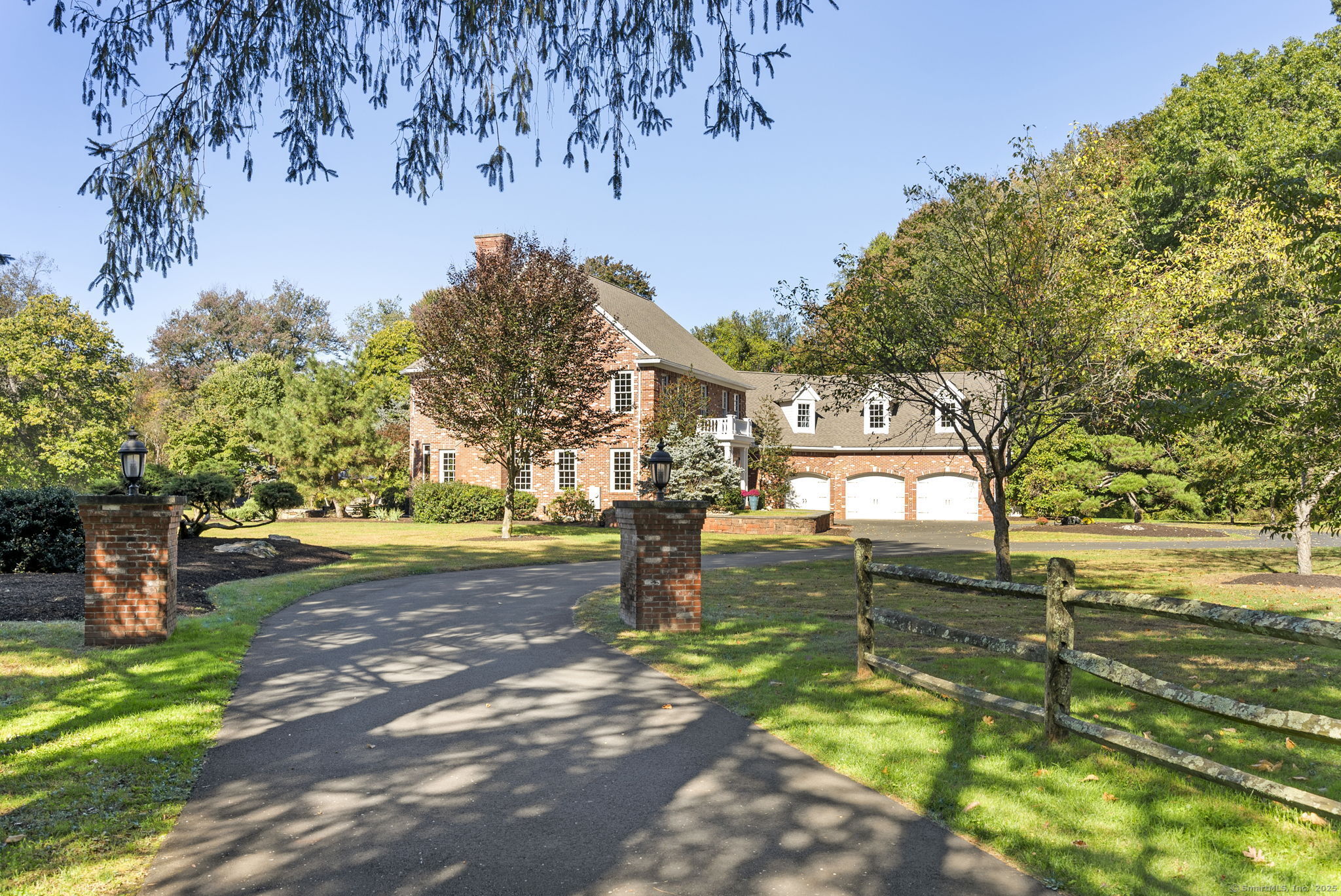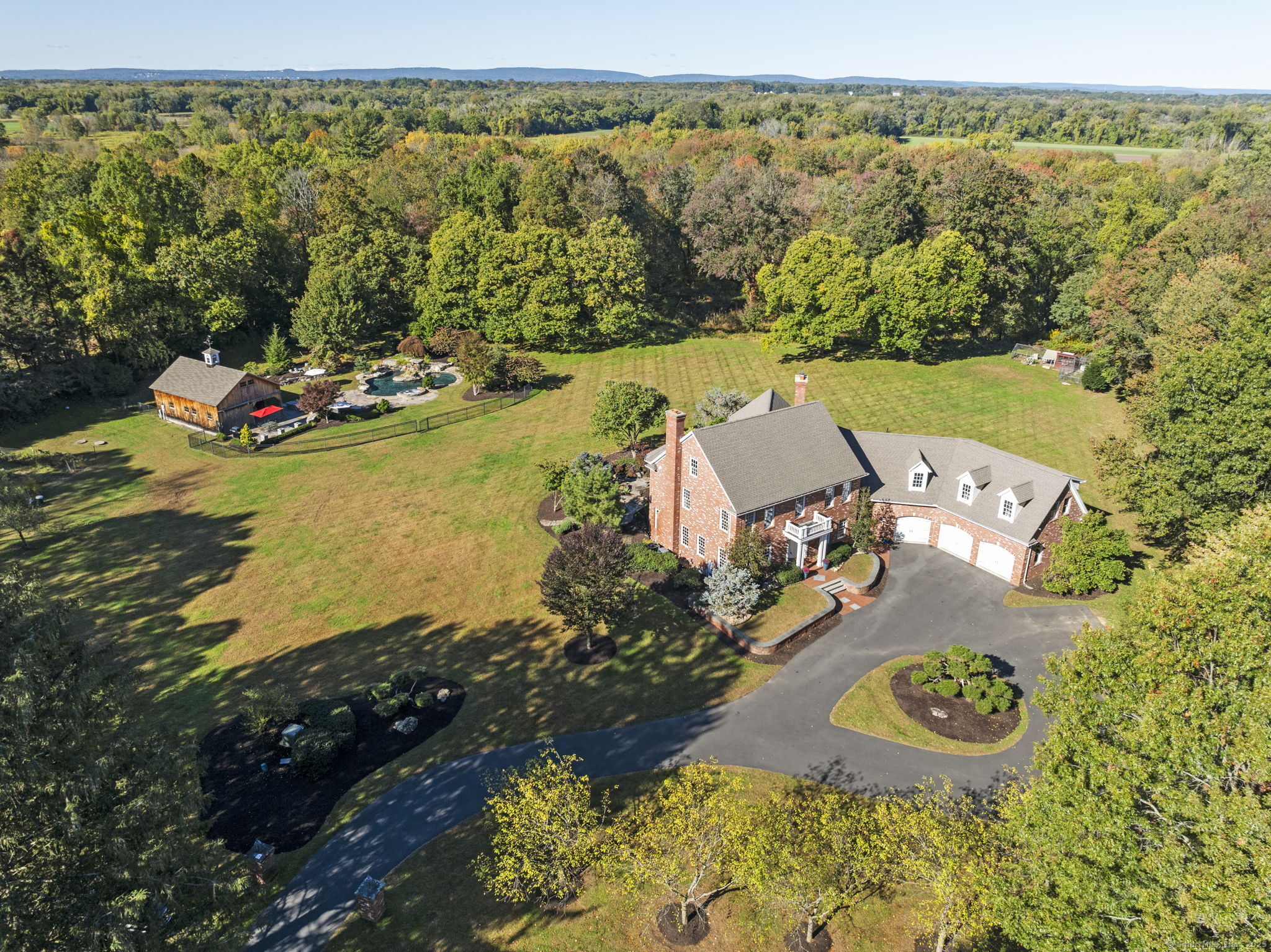 Magnificent Custom Brick Estate nestled on Old Main Street with 11.7 private acres, offering elegant sun-filled living. Designed with extraordinary craftsmanship, this 5,059 sq. ft. residence features four spacious bedrooms, three full baths and 2 half baths, Brazilian cherry floors, and exquisite millwork, fresh paint with every detail thoughtfully curated for comfort and style. An expansive stone patio with a fire pit blends seamlessly with sculpted landscaping, leading to a resort-style, self-cleaning gunite pool with spa and waterfall, custom built by Aqua Pool & Patio. Adding distinction, a remarkable two-story Hand-Hewn barn from the 1800's was meticulously reassembled as a pool house, complete with half bath and outdoor shower, blending historic charm with modern function. This South Windsor masterpiece is a rare opportunity, offering, privacy, history and resort-quality amenities in a setting designed for both grand entertaining and peaceful retreat. This home must be seen to be fully appreciated!! Schedule your private showing today.