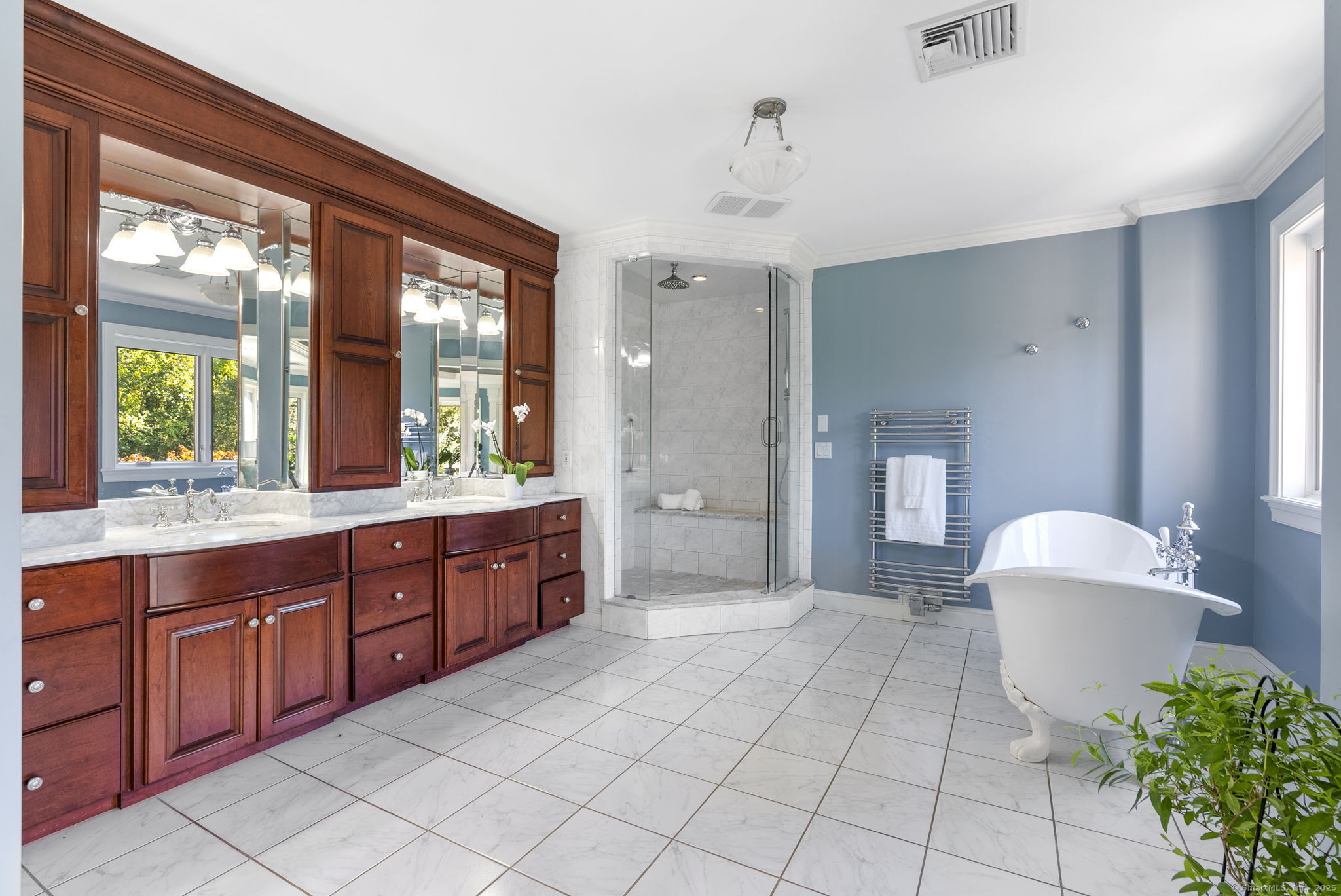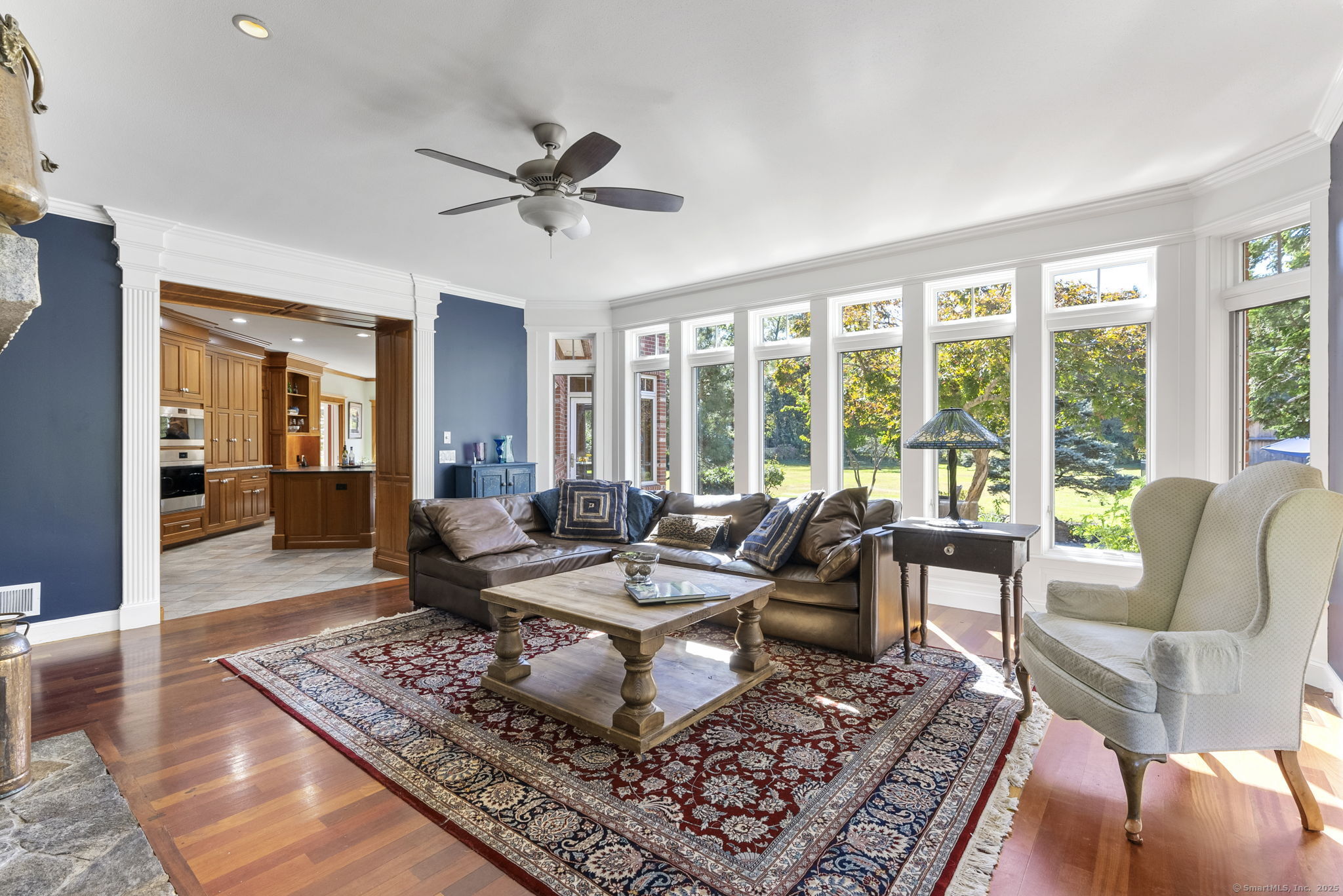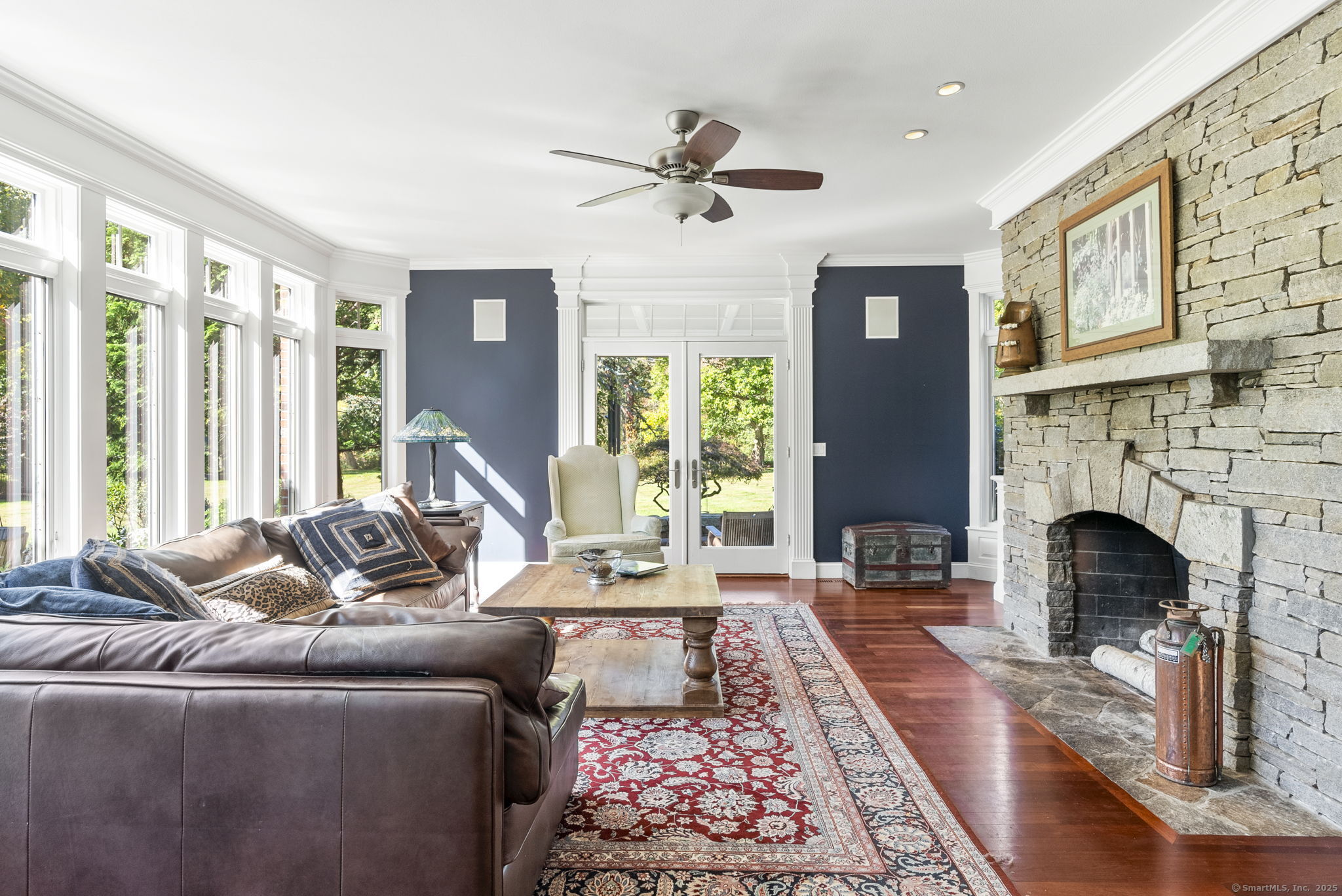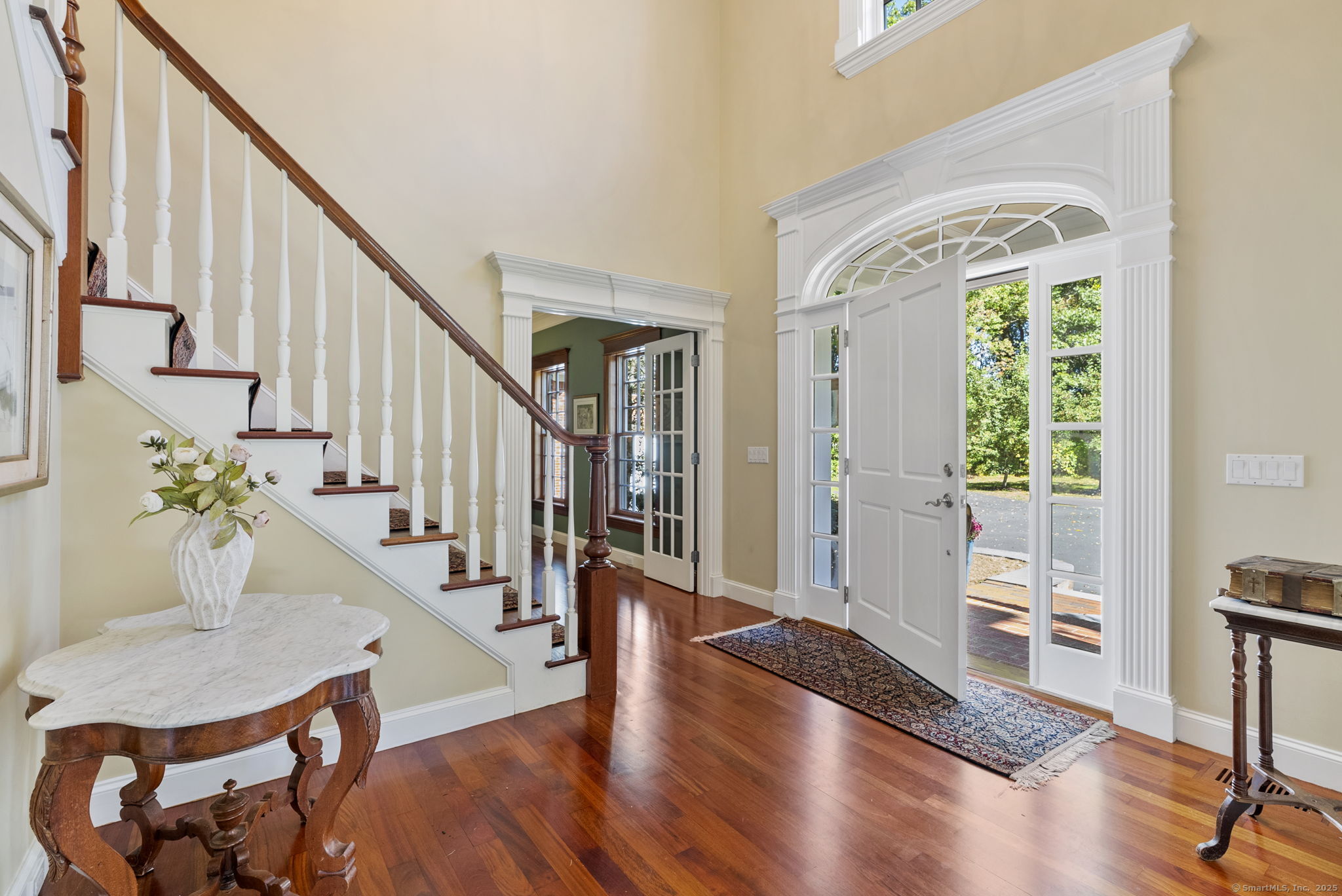Magnificent Custom Brick Estate nestled on Old Main Street with 11.7 private acres, offering elegant sun-filled living. Designed with extraordinary craftsmanship, this 5,059 sq. ft. residence features four spacious bedrooms, three full baths and 2 half baths, Brazilian cherry floors, and exquisite millwork, fresh paint with every detail thoughtfully curated for comfort and style. An expansive stone patio with a fire pit blends seamlessly with sculpted landscaping, leading to a resort-style, self-cleaning gunite pool with spa and waterfall, custom built by Aqua Pool & Patio. Adding distinction, a remarkable two-story Hand-Hewn barn from the 1800's was meticulously reassembled as a pool house, complete with half bath and outdoor shower, blending historic charm with modern function. This South Windsor masterpiece is a rare opportunity, offering, privacy, history and resort-quality amenities in a setting designed for both grand entertaining and peaceful retreat. This home must be seen to be fully appreciated!! Schedule your private showing today.
