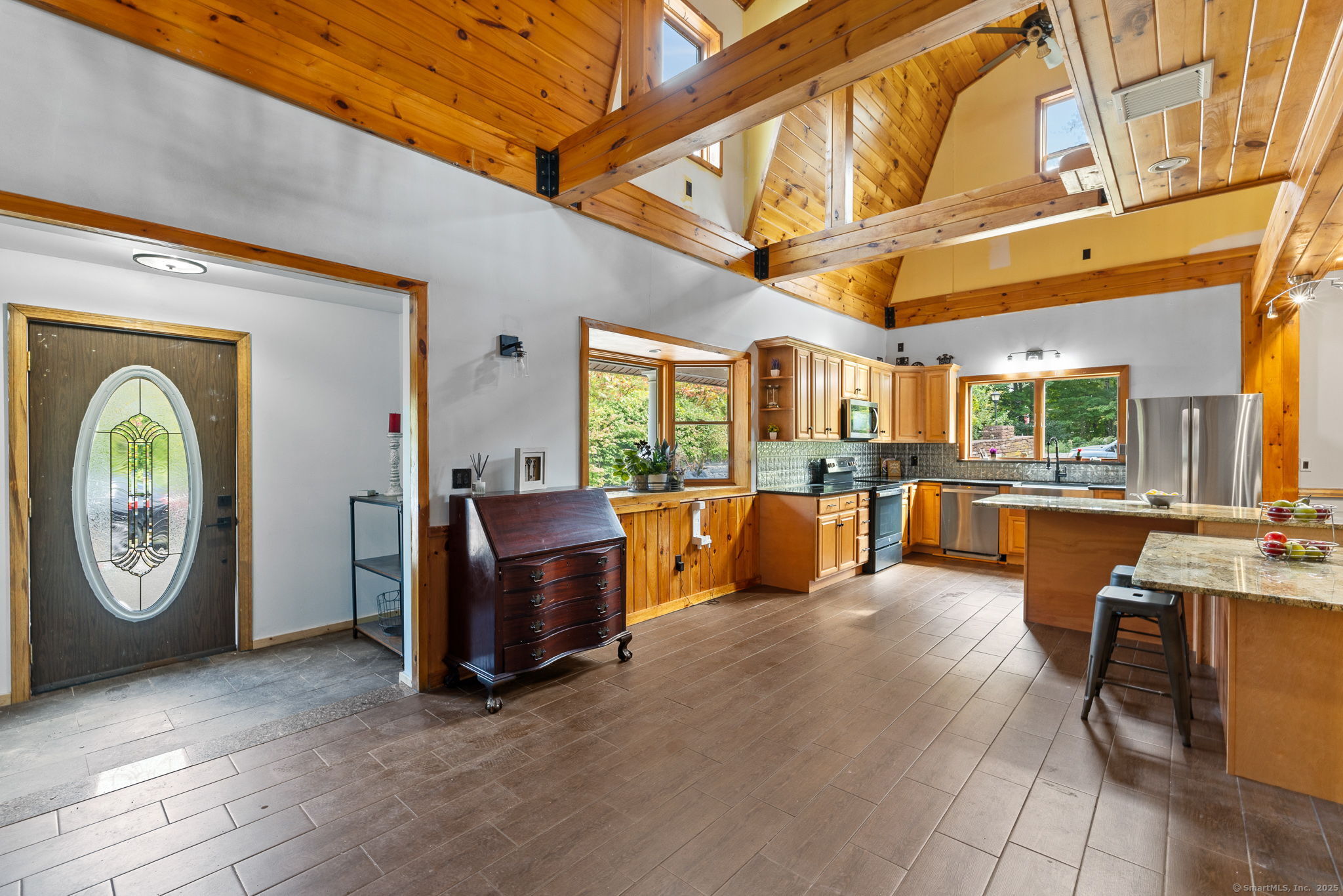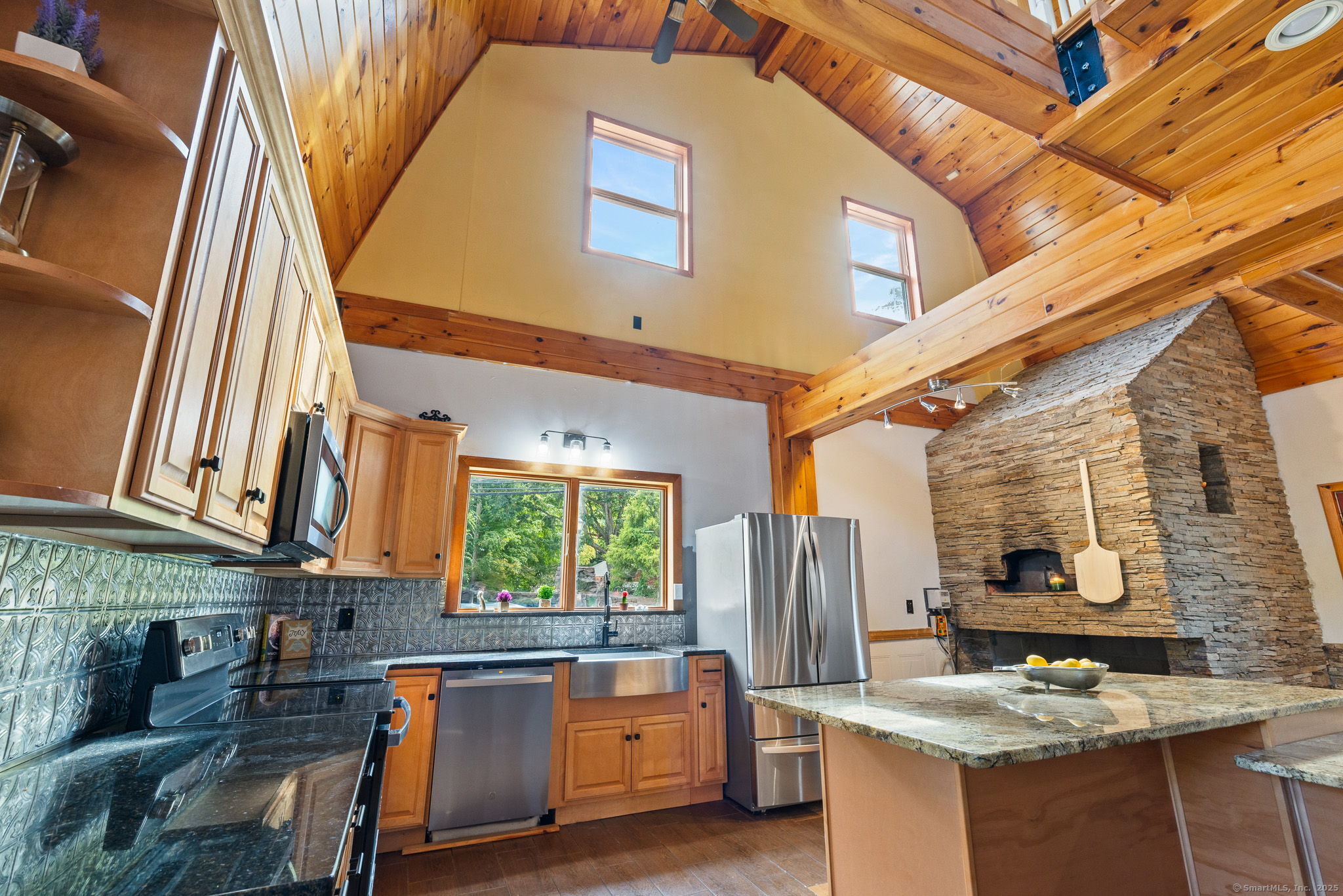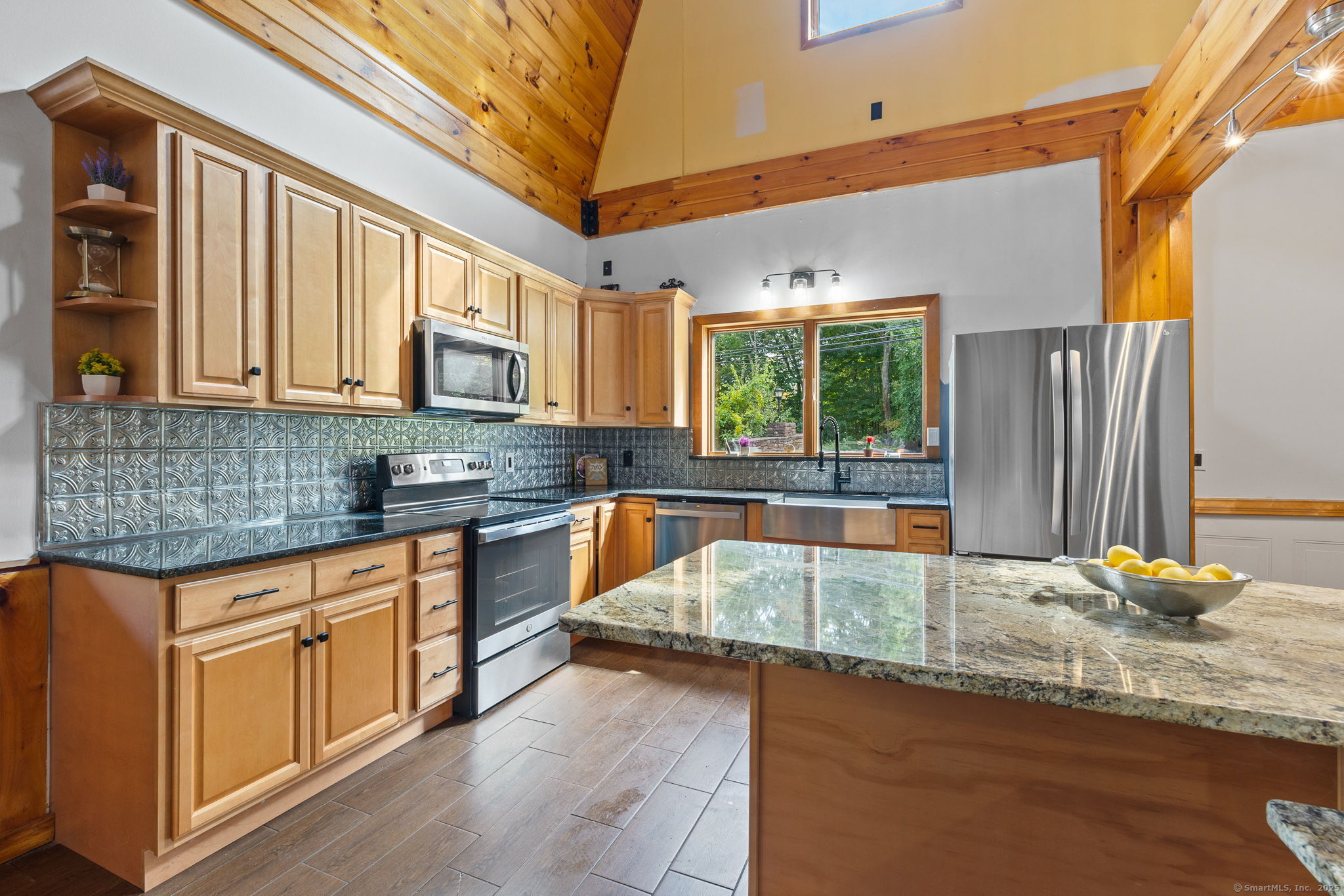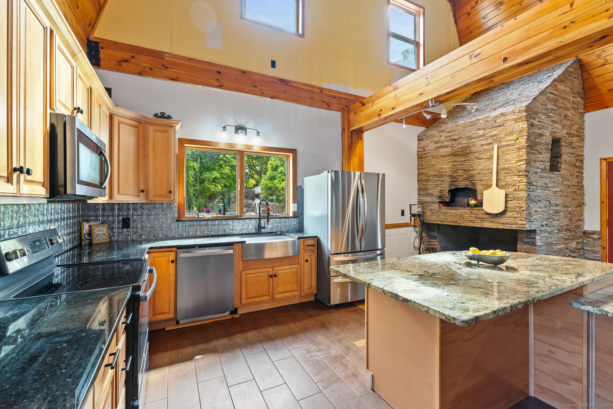 Stunning and light filled custom Colonial built in 2001, offers a unique blend of quality construction, character, and comfortable living in a peaceful Haddam setting. Inside you'll find 3 bedrooms, 2 full bathrooms, and a thoughtful layout featuring vaulted ceilings, hardwood and tile floors throughout, and exceptional attention to detail. The main level includes a spacious living room perfect for entertaining, an updated kitchen with granite countertops, and a charming wood-burning brick oven. A full bathroom with laundry and generously sized bedroom on the first floor create the perfect main-level primary suite. Upstairs, the loft-style second floor offers two additional bedrooms and another full bath, with the option to enclose the loft for added privacy. The full-height basement provides excellent storage potential, featuring 10+ ft ceilings, 200-amp electrical service, propane heating, and central air. Outside, the .83-acre lot offers ample parking and usable space, with low-maintenance grounds. Located just minutes from state forests, hiking trails, local shops, and restaurants, this property is ideal for anyone seeking a quiet lifestyle with easy access to outdoor recreation and amenities. A well-built, thoughtfully designed home in the heart of historic Haddam-schedule your showing today!
