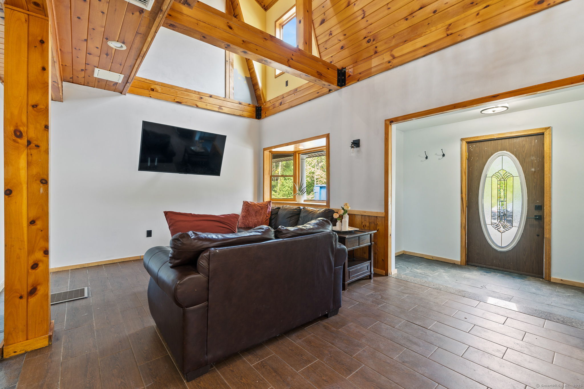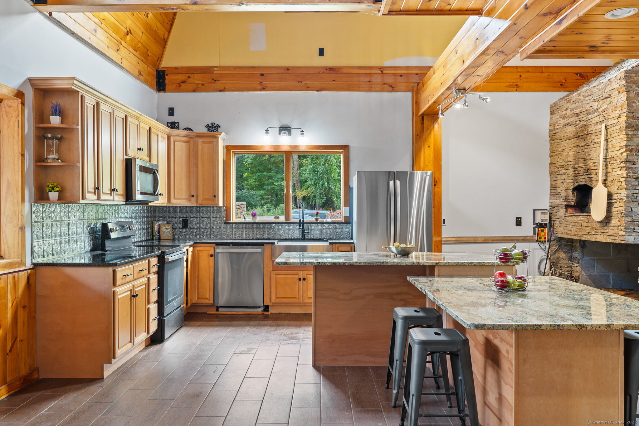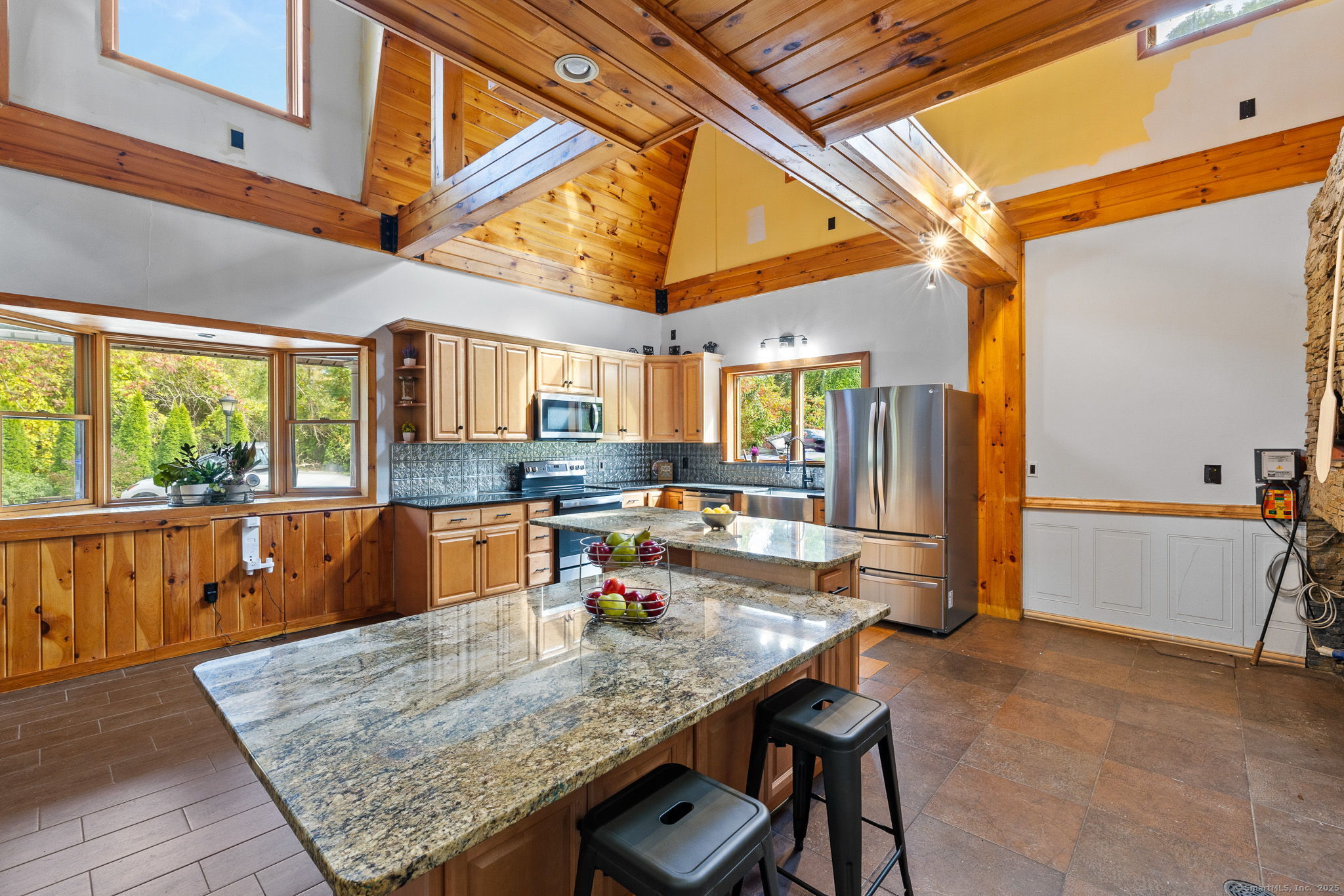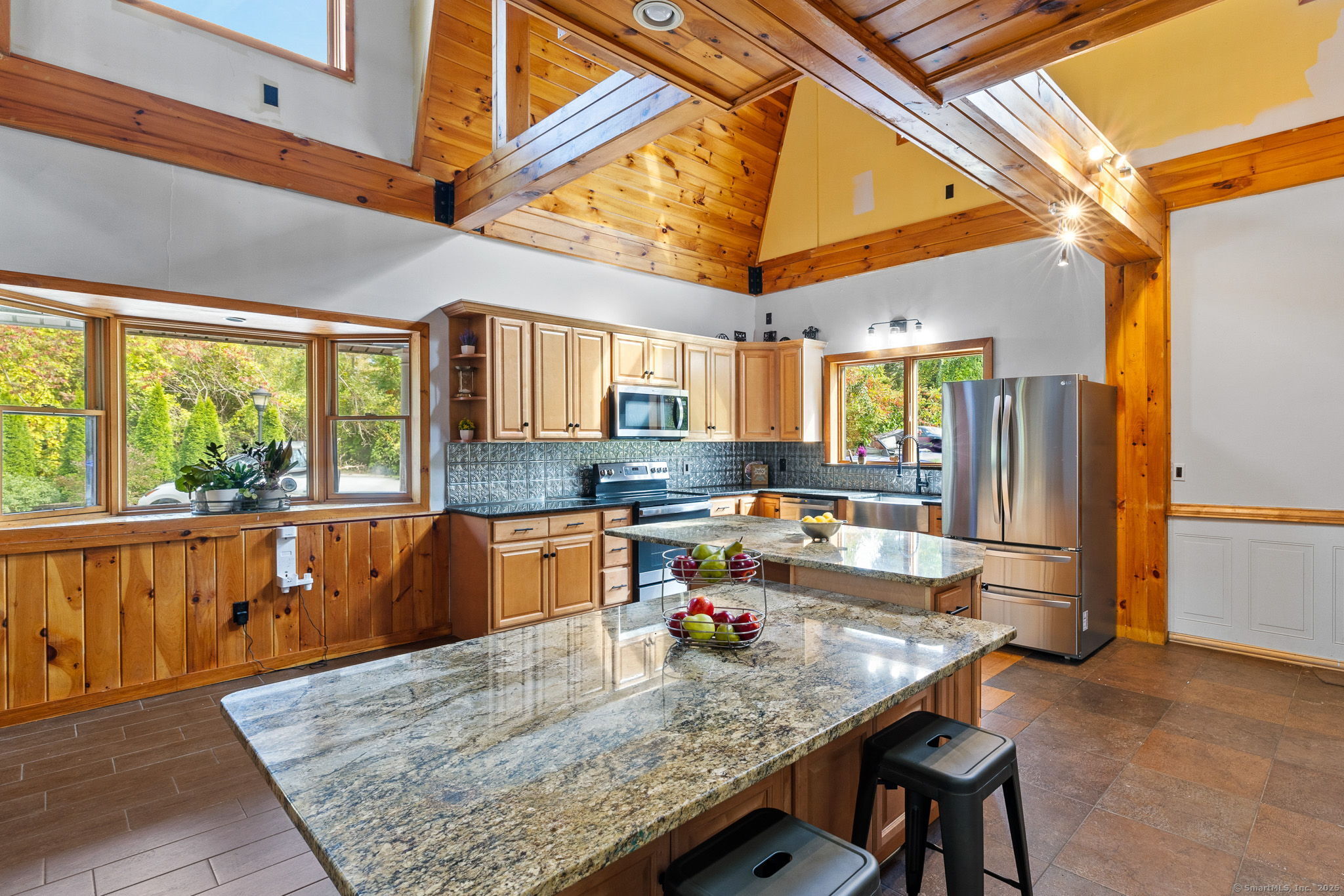 Stunning and light filled custom Colonial built in 2001, offers a unique blend of quality construction, character, and comfortable living in a peaceful Haddam setting. Inside you'll find 3 bedrooms, 2 full bathrooms, and a thoughtful layout featuring vaulted ceilings, hardwood and tile floors throughout, and exceptional attention to detail. The main level includes a spacious living room perfect for entertaining, an updated kitchen with granite countertops, and a charming wood-burning brick oven. A full bathroom with laundry and generously sized bedroom on the first floor create the perfect main-level primary suite. Upstairs, the loft-style second floor offers two additional bedrooms and another full bath, with the option to enclose the loft for added privacy. The full-height basement provides excellent storage potential, featuring 10+ ft ceilings, 200-amp electrical service, propane heating, and central air. Outside, the .83-acre lot offers ample parking and usable space, with low-maintenance grounds. Located just minutes from state forests, hiking trails, local shops, and restaurants, this property is ideal for anyone seeking a quiet lifestyle with easy access to outdoor recreation and amenities. A well-built, thoughtfully designed home in the heart of historic Haddam-schedule your showing today!