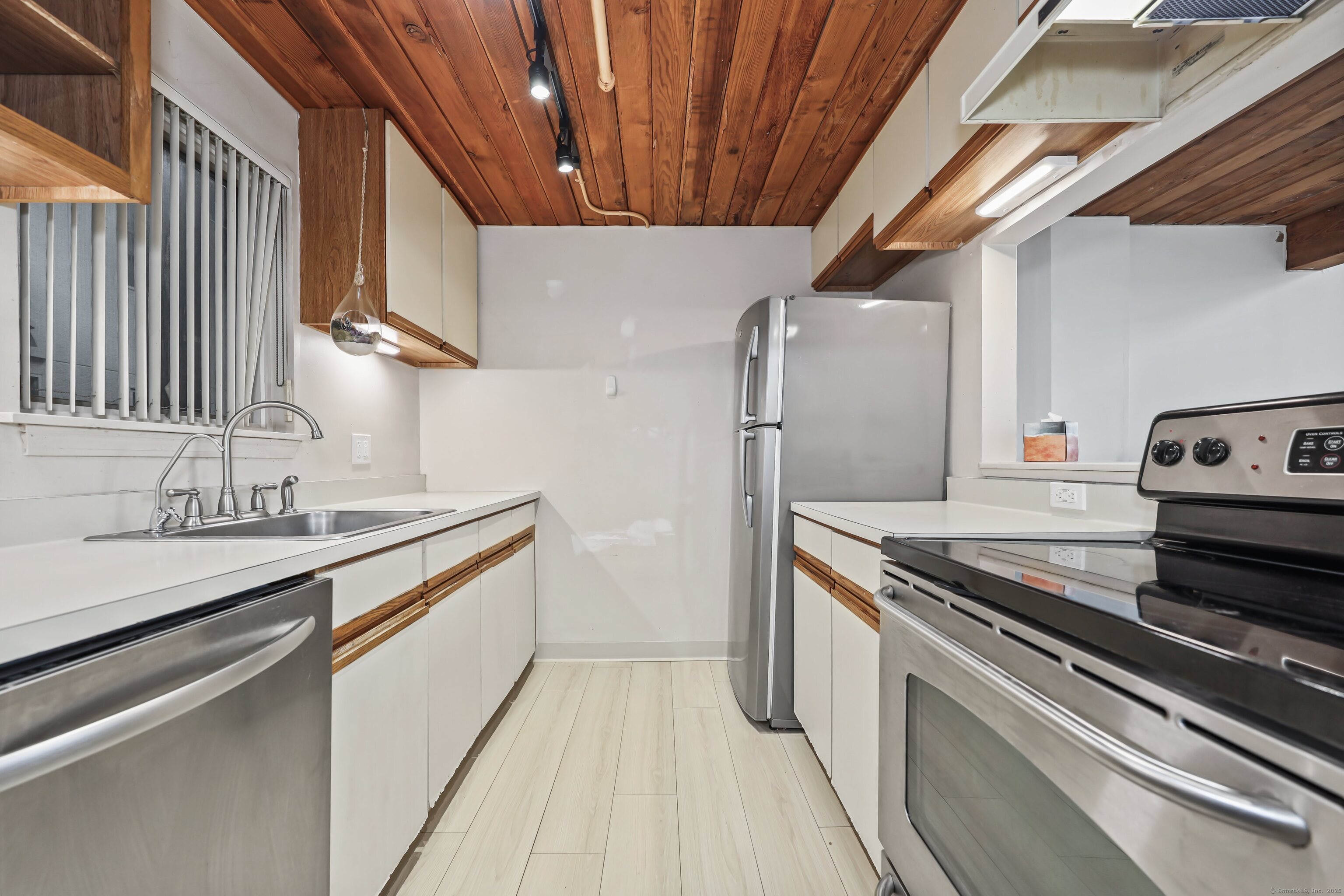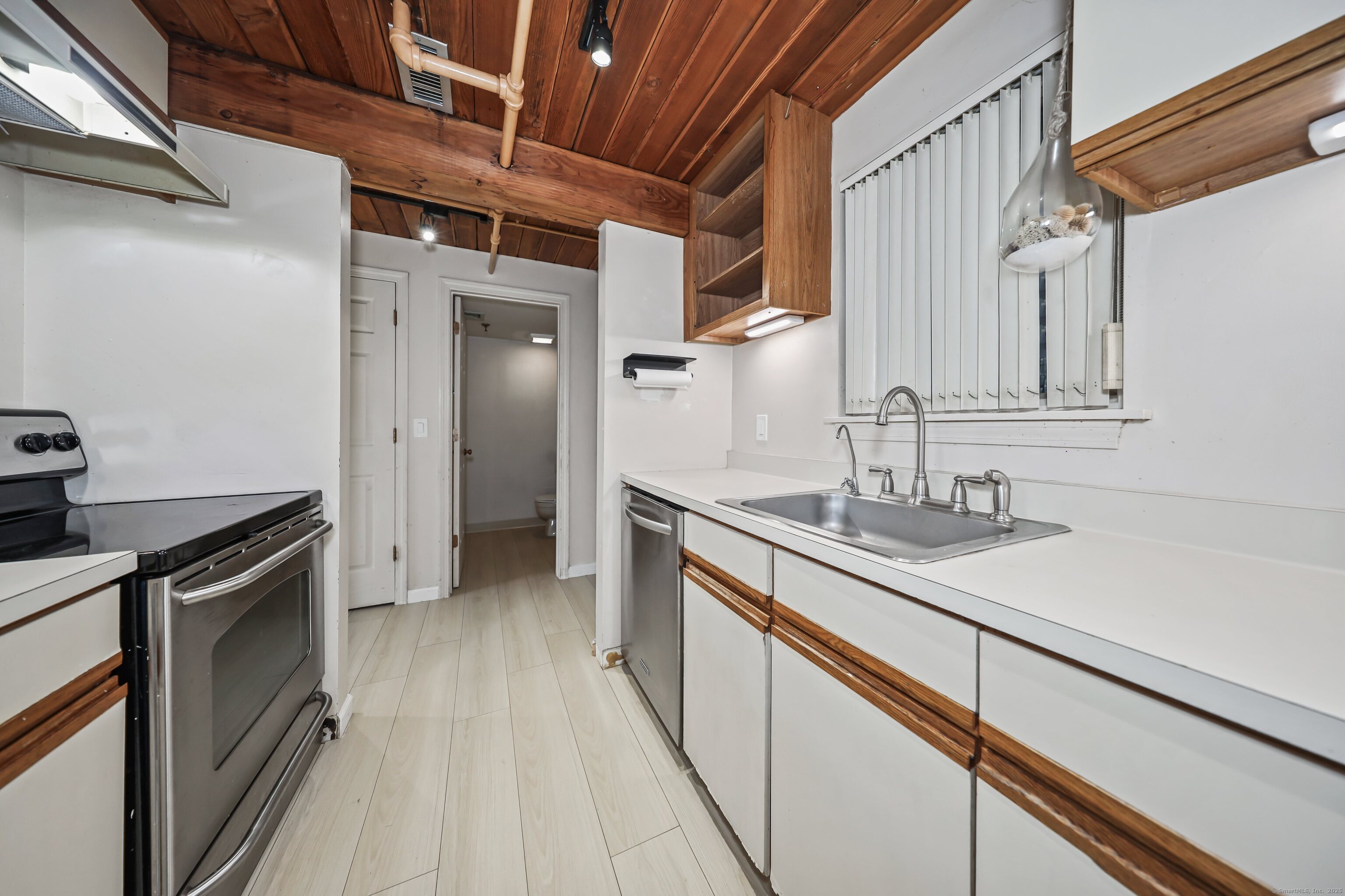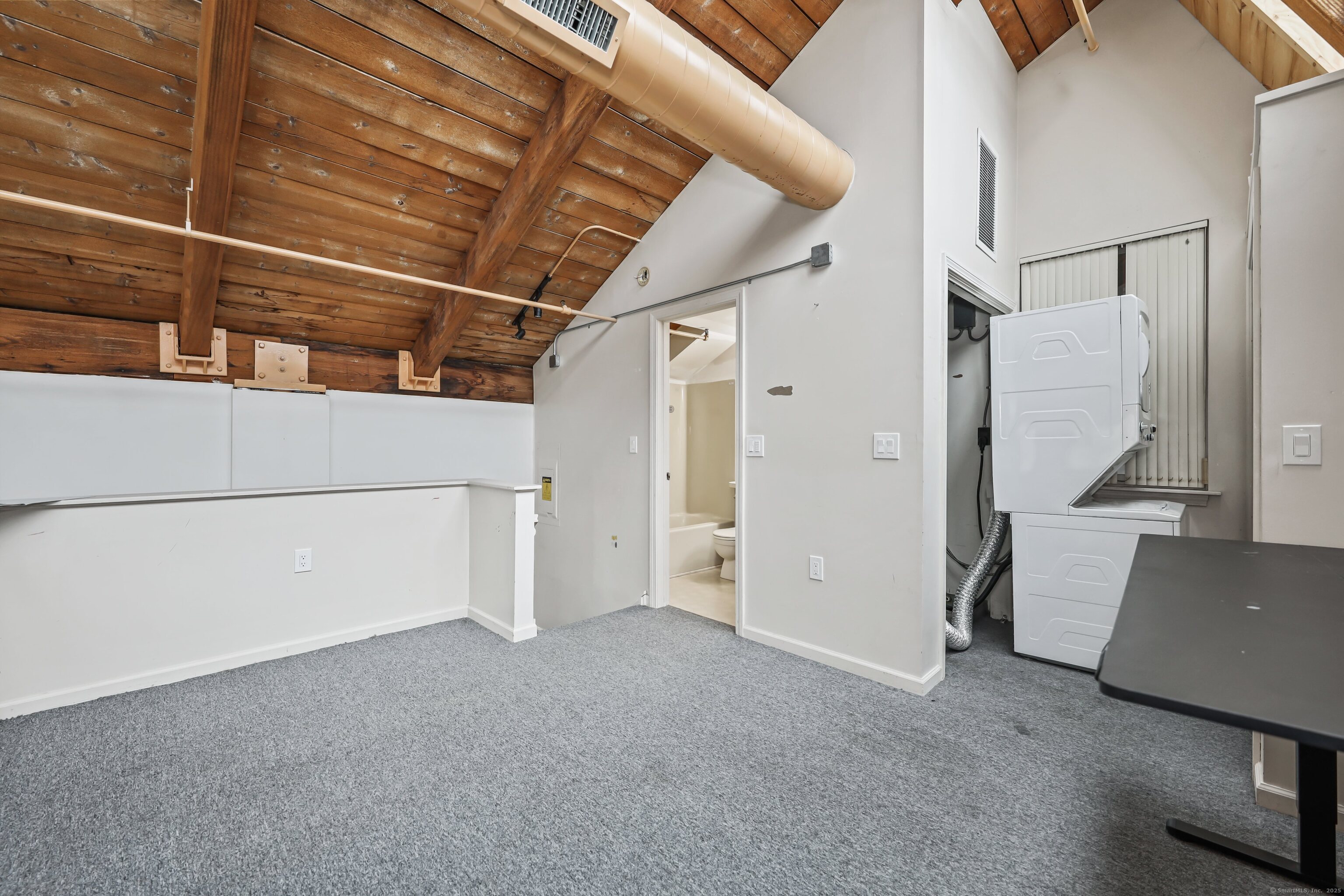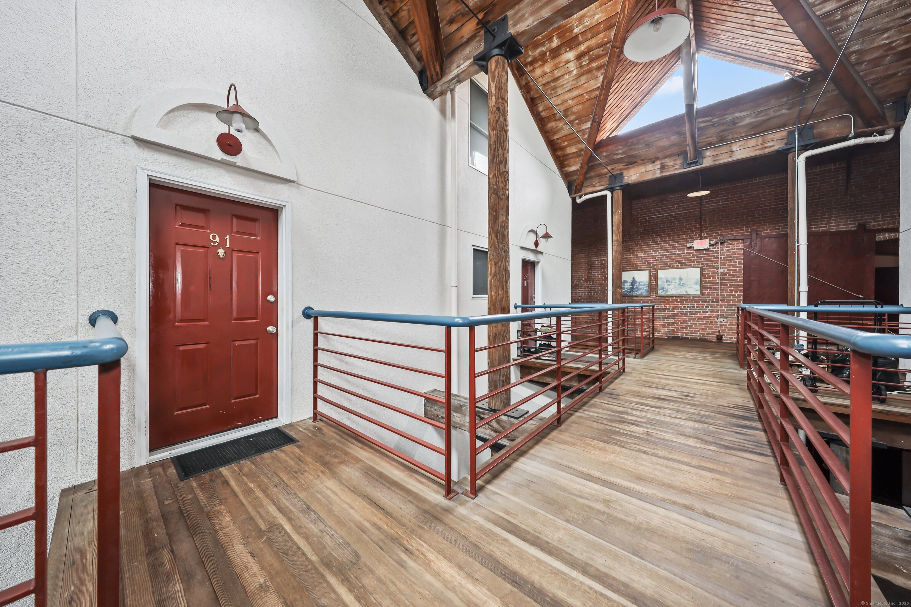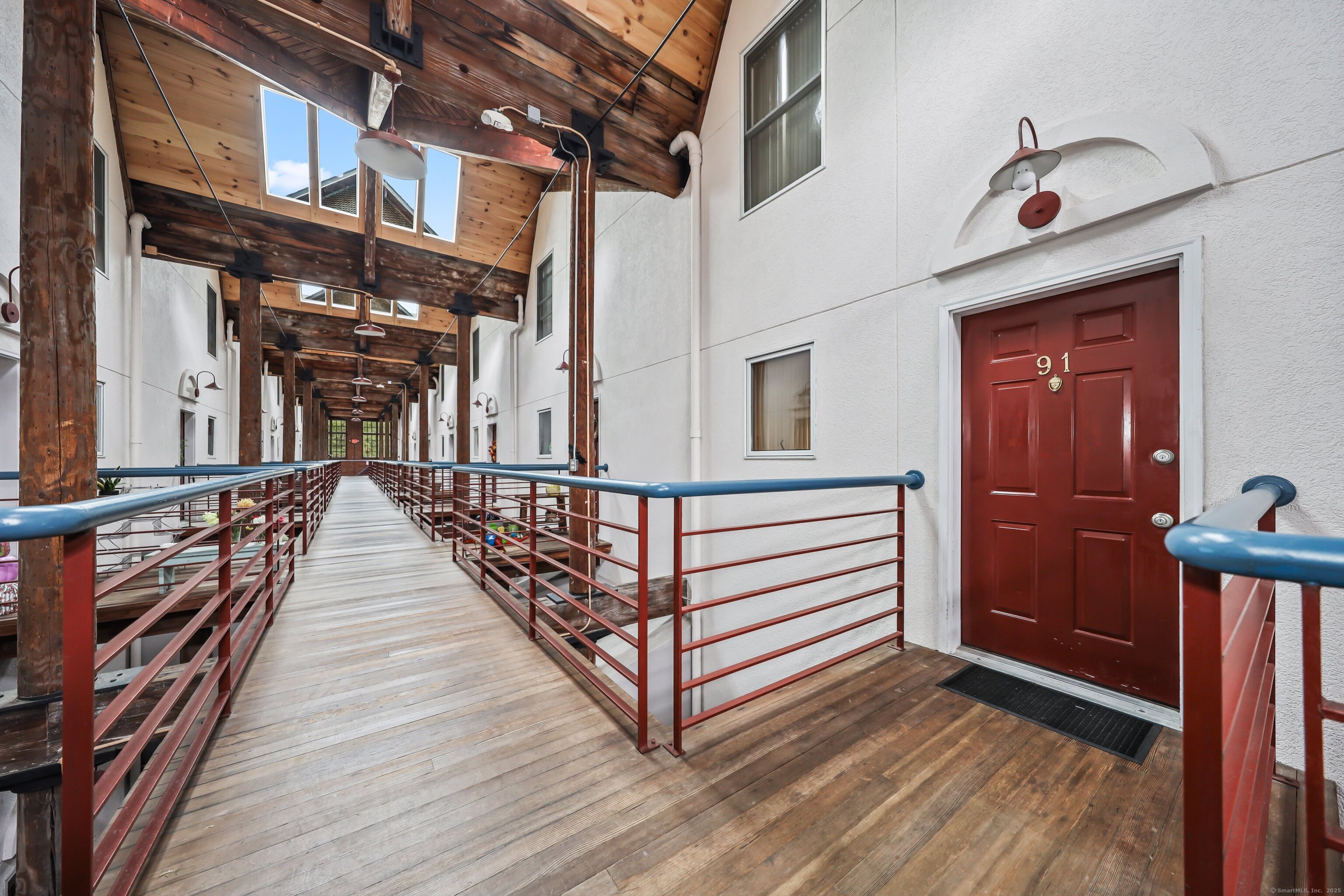 Welcome to this beautifully updated 1-bedroom, 1.5-bath, 800 sq ft, loft-style condo in the historic Warrenton Mill complex in Torrington, CT. This unique residence blends the charm of early 20th-century industrial architecture with modern upgrades for today's lifestyle. With soaring ceilings, exposed brick walls, original wood beams, and oversized factory-style windows, the space is filled with natural light and timeless character. Inside, the main floor features brand-new flooring, providing a fresh, clean look that complements the open-concept living and dining area. The galley kitchen includes stainless steel appliances and ample storage, making it both functional and stylish. The spacious primary bedroom includes a full en-suite bath and generous closet space, while a convenient half bath is located off the main living area-ideal for guests. The unit also benefits from updated mechanicals, offering added comfort and efficiency. Located in a secure, elevator-equipped, professionally managed building, residents enjoy shared laundry facilities, ample parking, and a pet-friendly community. Just minutes from downtown Torrington, Route 8, local parks, and restaurants, this condo offers low-maintenance living with unique industrial flair.