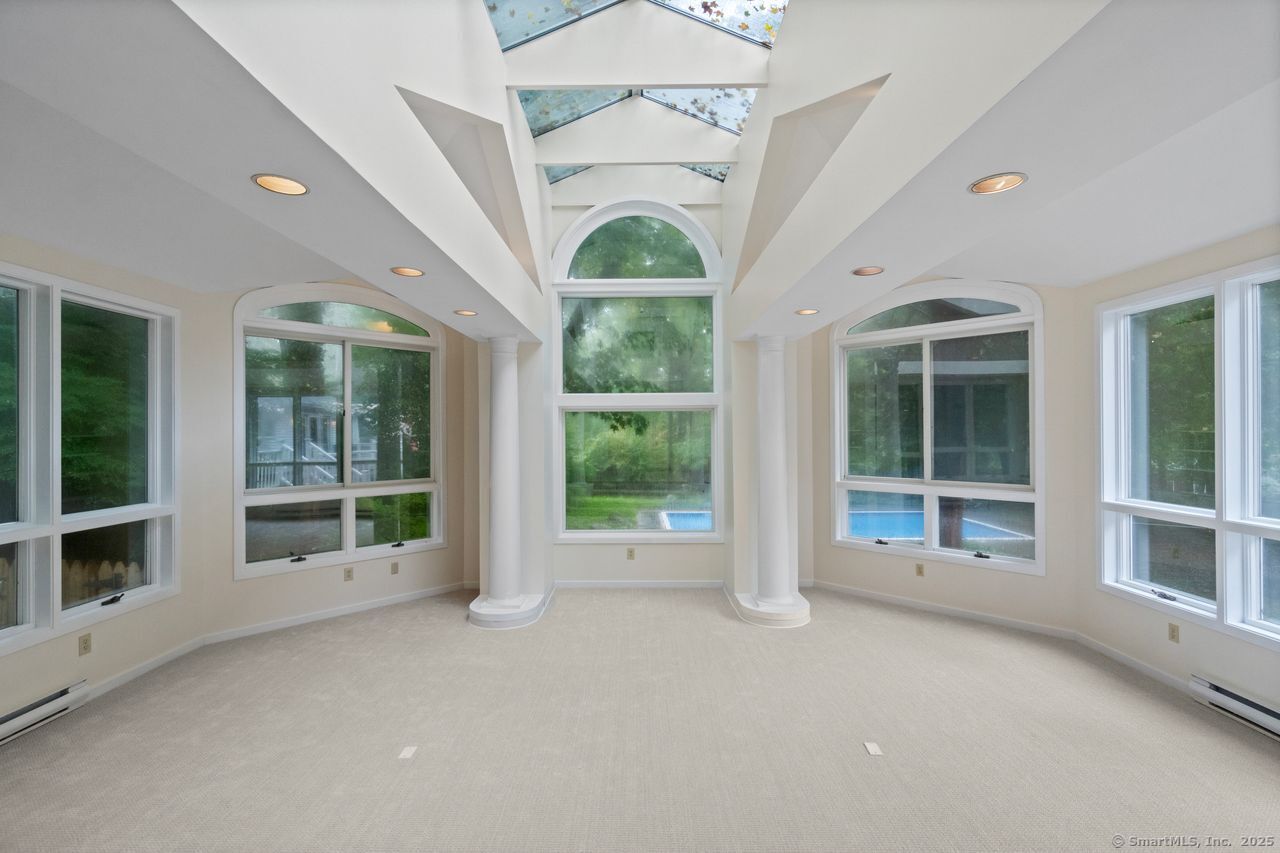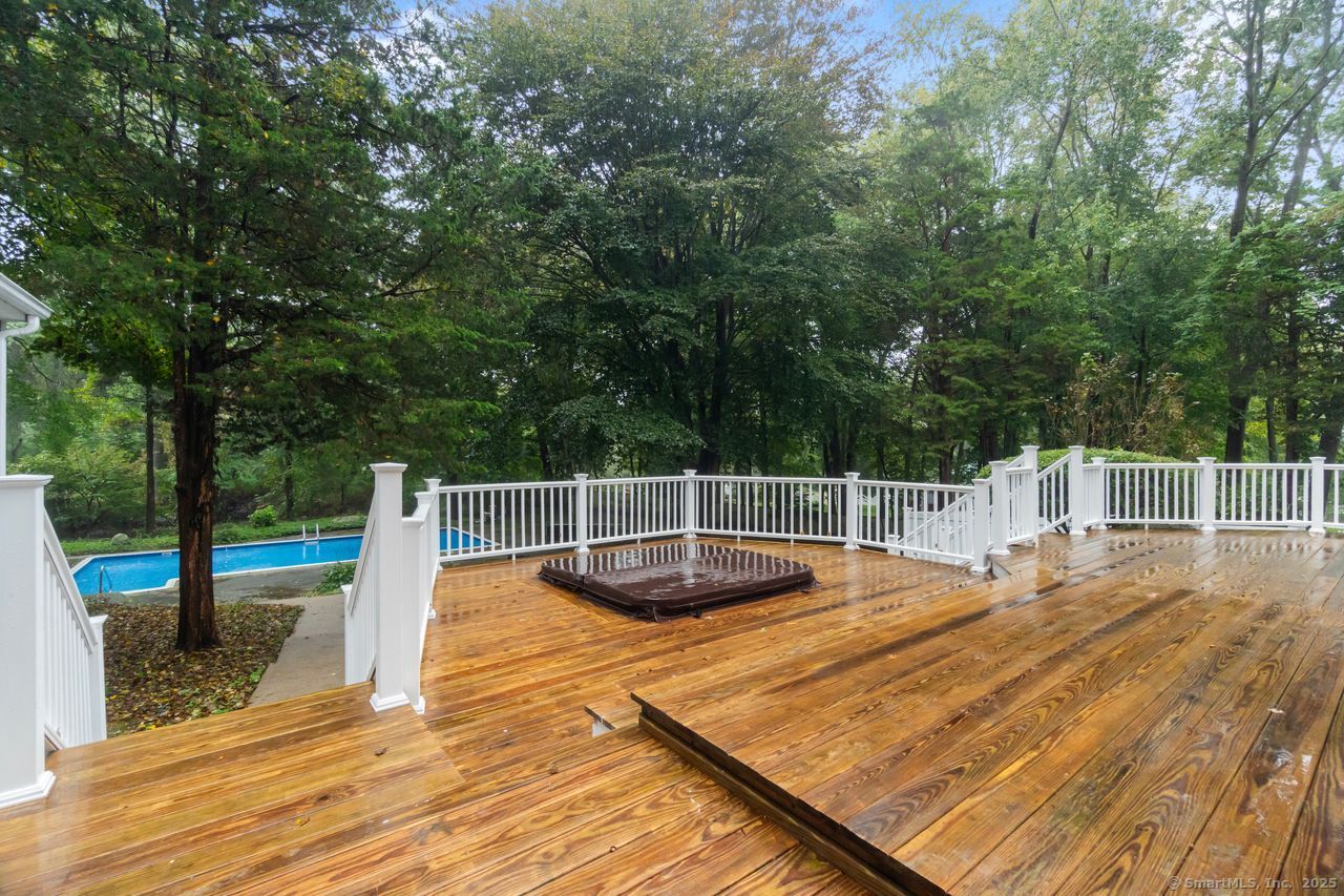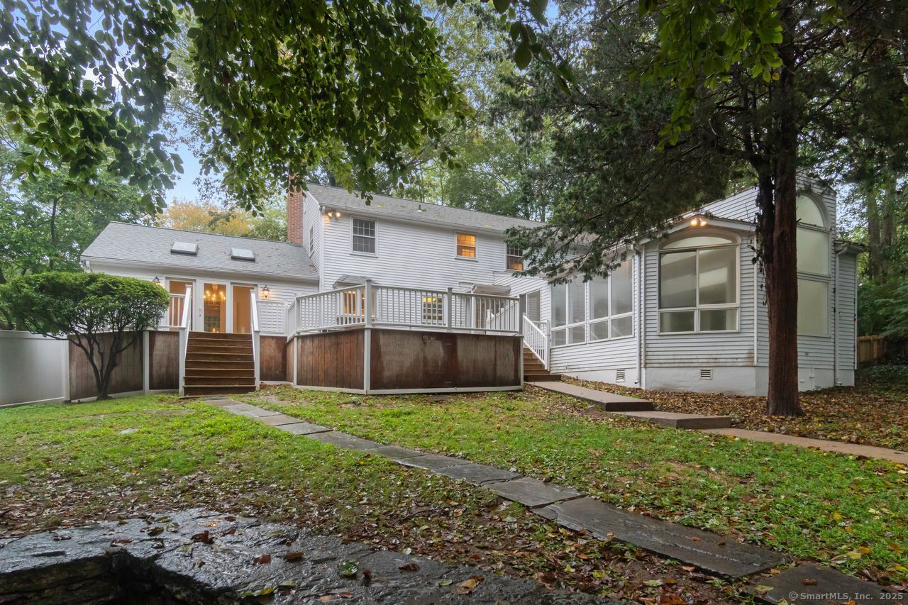 Located in one of Madison's most desirable neighborhoods, 16 Forest Hills Drive offers exceptional space and potential. Just minutes from the town center and beaches. This expansive five-bedroom Colonial features an large eat-in kitchen with a cozy fireplace, a spacious formal living room with its own fireplace, and a versatile den/office with extensive built-in cabinets or family room-also with a fireplace-providing multiple options. A dramatic 24' x 30' sunroom floods the home with natural light and opens to a large deck. Perfect for entertaining or unwinding. The backyard is a private oasis with an in-ground pool surrounded by mature landscaping. While the home requires some updating, significant recent improvements have been added. It has a generous layout, prime location, making it a rare opportunity worth the investment.