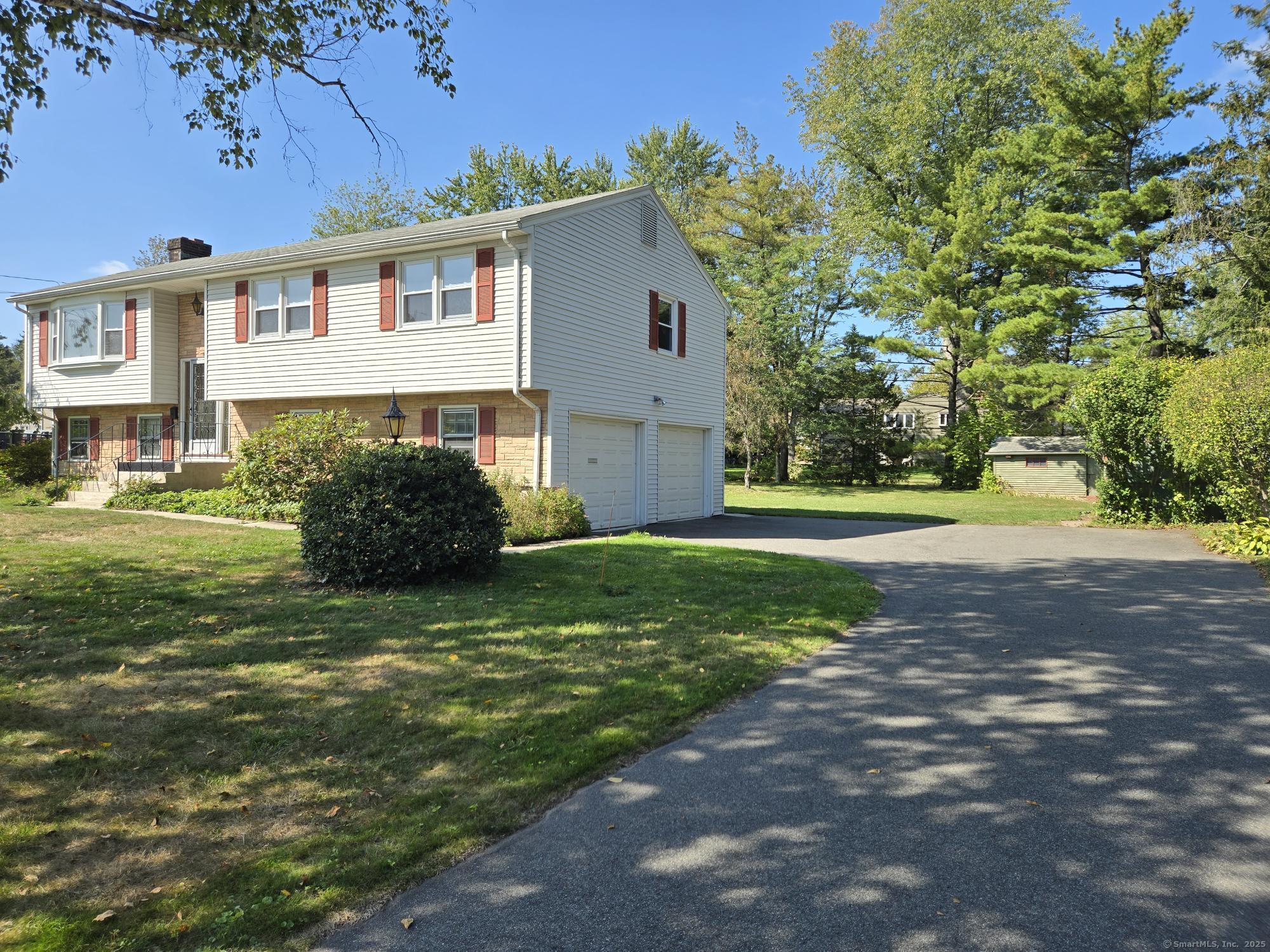Welcome to this charming 3-bedroom Raised Ranch, perfectly situated on a peaceful street. Step inside and discover the inviting warmth of hardwood floors throughout. The lower level is a perfect retreat, offering a cozy family room with a corner fireplace, half bath with laundry room and sliders that lead to a sprawling backyard. The outdoor space is a dream, complete with three sheds. The eat-in kitchen, featuring classic oak cabinets and a pantry, opens to a deck-ideal for your morning coffee or evening gatherings. The living room is bathed in natural light thanks to a large picture window. Finally, the oversized garage offers an abundance of storage with built-in cabinets and a cedar closet, Gas Heat - Updated 200 Amp Electrical - This home is waiting for your personal touch.