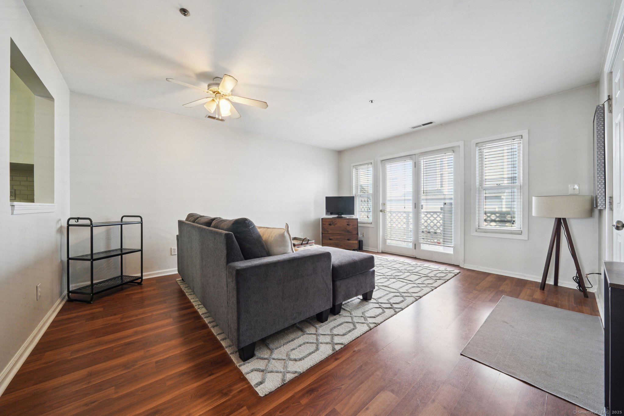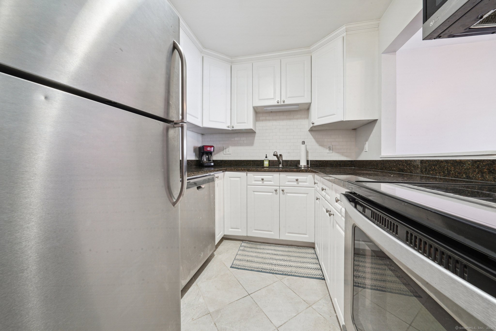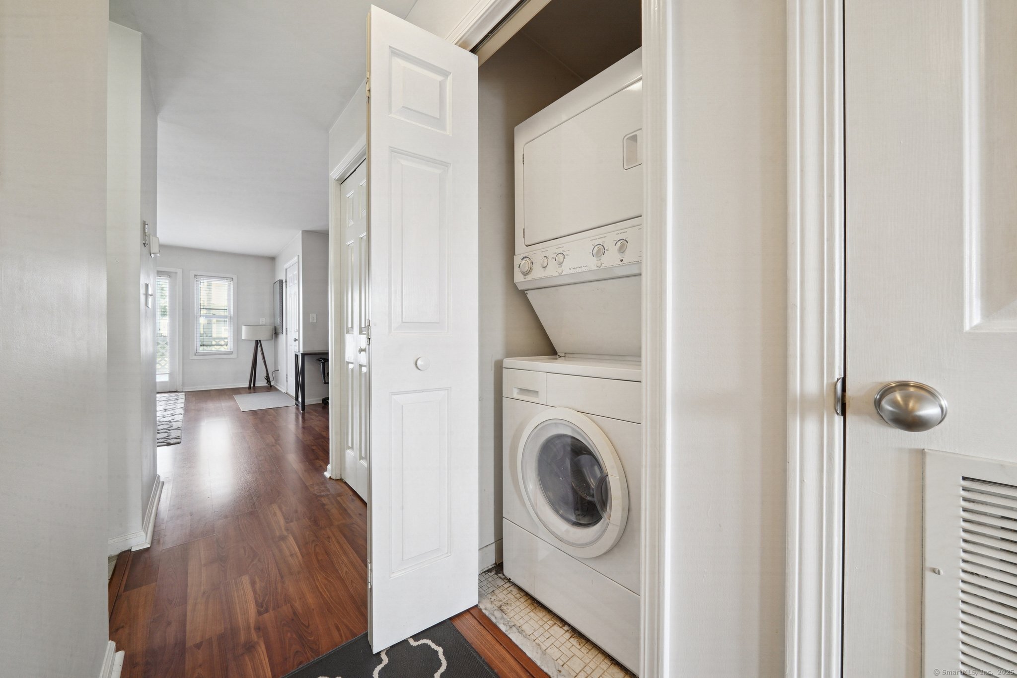 Experience modern living in this move-in-ready one-bedroom condo. It offers unbeatable convenience just minutes from shops, restaurants, and the train station! Enjoy an open-concept living/dining area that leads to your own private balcony through charming french doors. This home features an in-unit washer and dryer, assigned off-street parking, and a renovated kitchen and bathroom. It has low common charges and is a fantastic opportunity for both investors and owner-occupants alike.