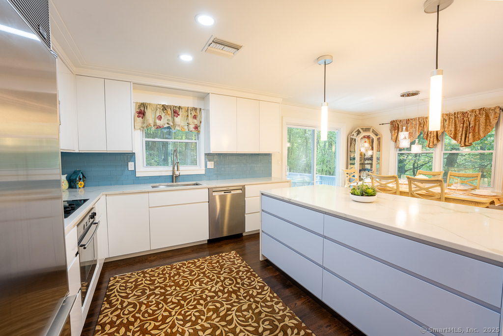 Amazing opportunity to own this beautifully updated and lovingly maintained Raised Ranch, set on 1 acre of private property surrounded by nature where peace and serenity are part of everyday life. The Main floor features a bright and elegant Living room with custom built-in entertainment bookshelf, fireplace and open floor plan. Custom kitchen with Quartz countertops, back splash , Sub-Zero and stainless steel appliances. Dinning area with sliding glass door to a new deck ideal for hosting or relaxing .Master Bedroom with walking closet and full bathroom. Two good size bedrooms with spacious closets. New Hardwood Floors throughout . All cabinets and closets have been designed with excellent quality, storage capacity and weight support. This home has been transformed into a turnkey showpiece with premium finishes, extensive custom millwork throughout, New interior doors , detailed trim/casings baseboards and elegant crown molding. A fully upgrades staircase with refinished steps and modern touches. The three full bathrooms, each tastefully updated with high-end finishes and the two upstairs bathrooms have in-floor radiant heating. Brand new windows and window casing to maximize natural light and energy efficiency. New A/C. Lower level offers a Large Family Room with Fireplace and full new bathroom. Two attached car garage. The lower level also includes a full bath and laundry area. Great Location minutes to the town of New Milford.