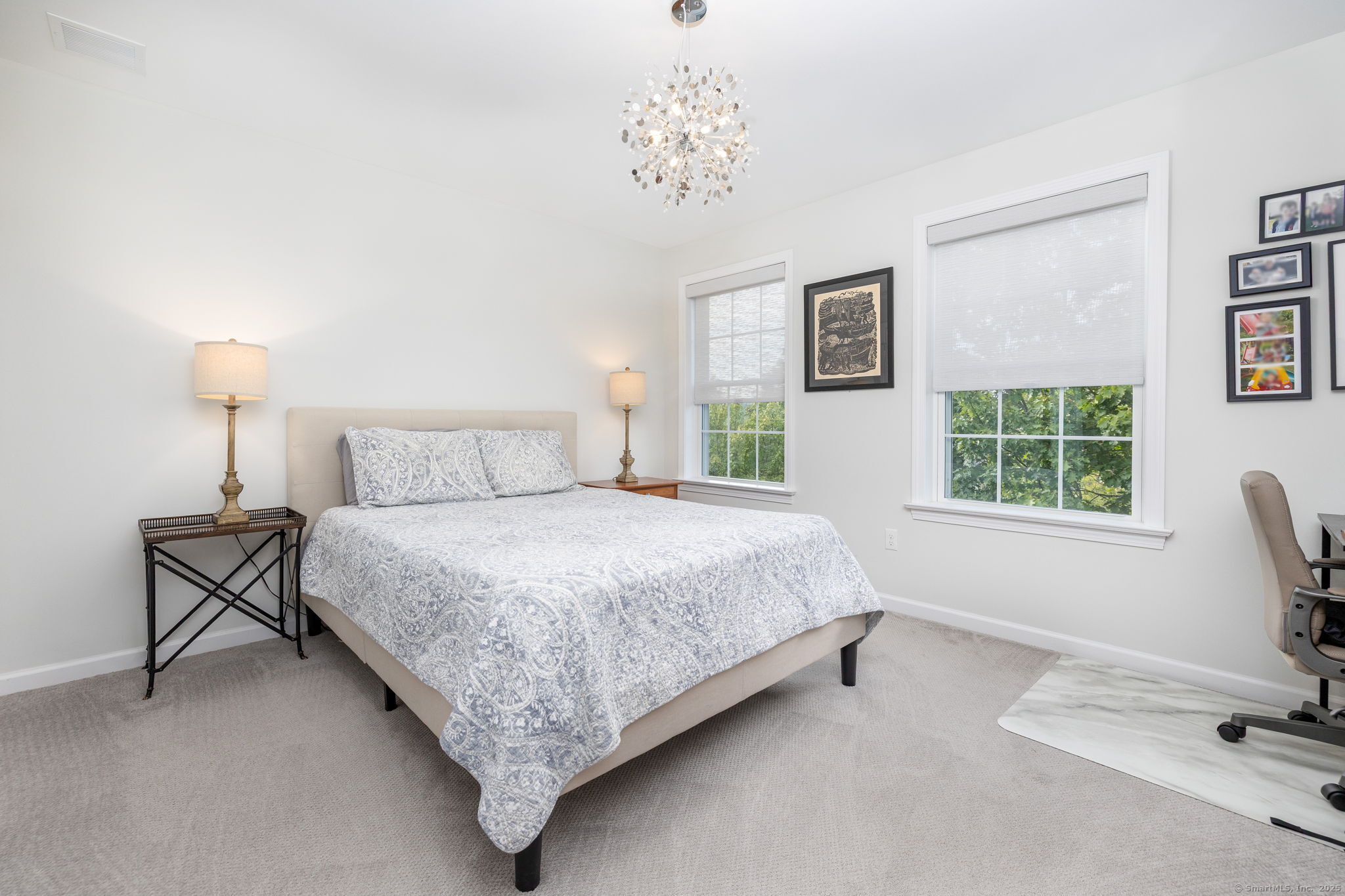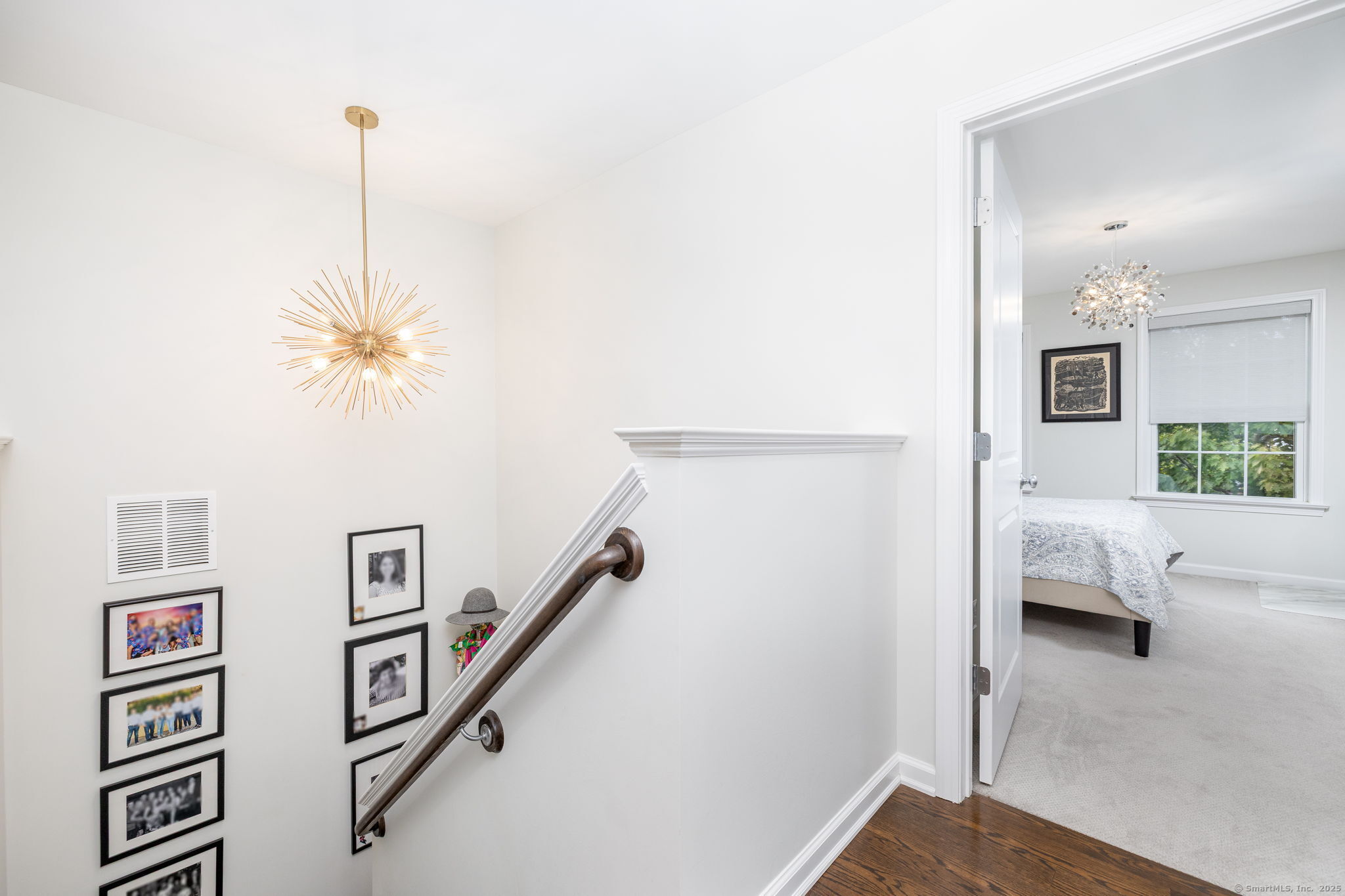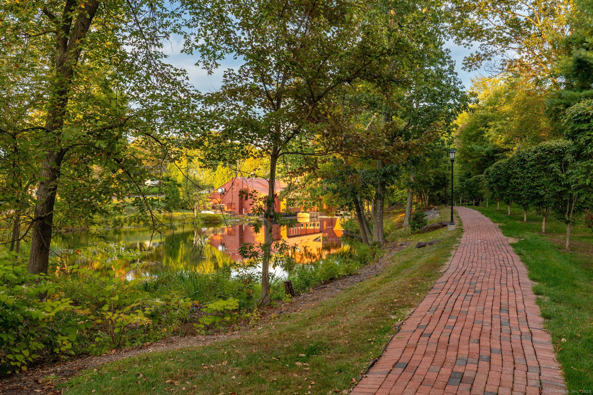 Gorgeous Mill Pond Crossing town home ideally situated within walking distance to Simsbury's vibrant town center. You will fall in love with the attractive architecture and serene setting of this home and community. This beautiful home rich in design detail and quality finishes was built in 2016 by Nelson Construction. Indoors you will enjoy an open floor plan with an abundance of windows overlooking the scenic waterfall and restored gristmill. The main level is open and boasts a large living-dining room with gleaming hardwood floors, gas fireplace, 9-foot ceilings, large slider and private deck. The well appointed kitchen offers ample cabinet space and attractive Cambria counters. Upstairs you will find a private master suite with hardwood flooring, large closet and spa like bath. Also located on the upper level are an additional bedroom, full bath, convenient laundry space and an inviting loft space. Quality and trim detail is apparent throughout this meticulous home including custom bathroom tile, Serena & Lily Wallpaper, elegant light fixtures and more. Discover more living space in the stunning lower level with high ceilings, daylight windows, large full bath, CA Closet Murphy Bed and storage space. A perfect space for relaxing, work at home or guests. Efficient natural gas heating and 3-zone HVAC system. Attached 2-car garage. Walking distance to High School, Greenway Trail, Performing Arts Center, shopping and dining. Don't miss this wonderful home.