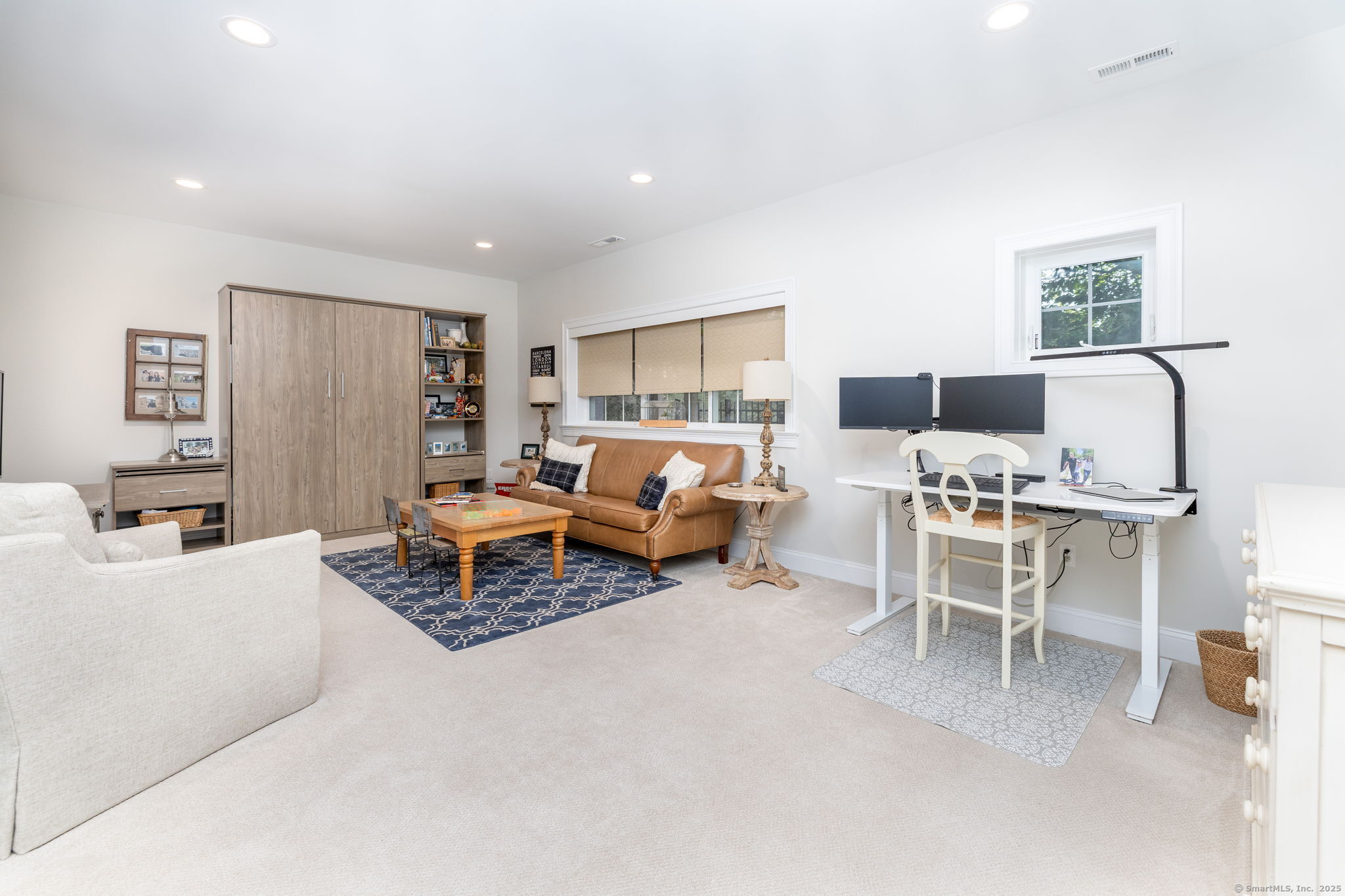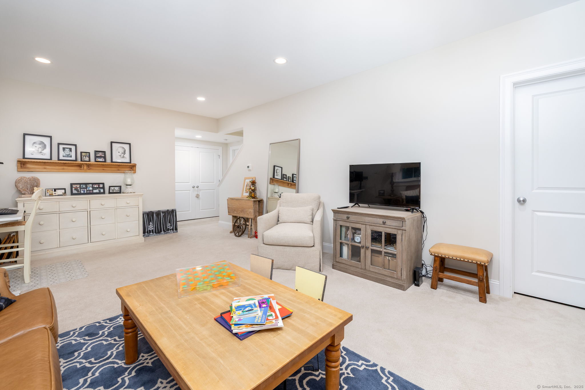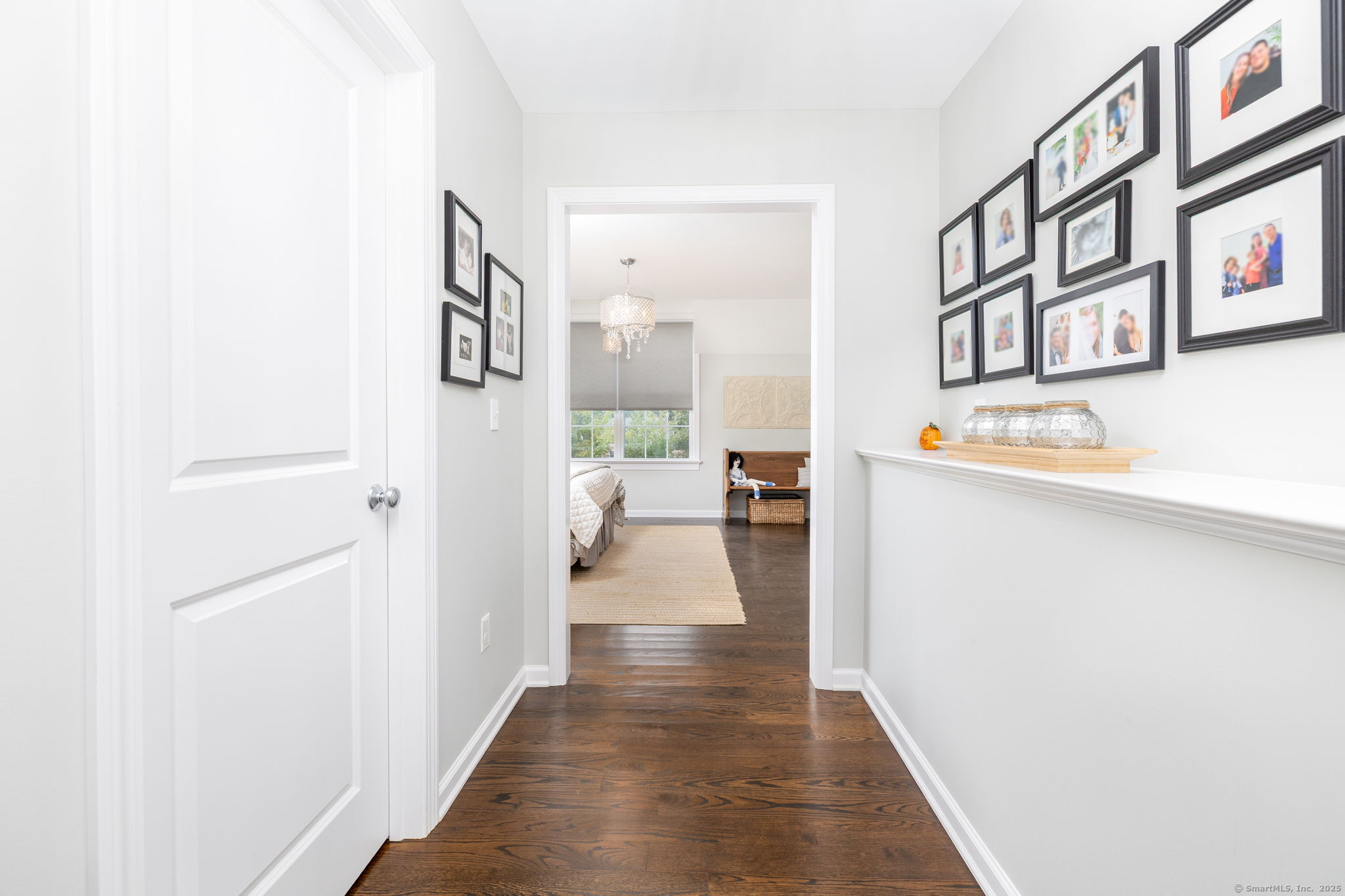 Gorgeous Mill Pond Crossing town home ideally situated within walking distance to Simsbury's vibrant town center. You will fall in love with the attractive architecture and serene setting of this home and community. This beautiful home rich in design detail and quality finishes was built in 2016 by Nelson Construction. Indoors you will enjoy an open floor plan with an abundance of windows overlooking the scenic waterfall and restored gristmill. The main level is open and boasts a large living-dining room with gleaming hardwood floors, gas fireplace, 9-foot ceilings, large slider and private deck. The well appointed kitchen offers ample cabinet space and attractive Cambria counters. Upstairs you will find a private master suite with hardwood flooring, large closet and spa like bath. Also located on the upper level are an additional bedroom, full bath, convenient laundry space and an inviting loft space. Quality and trim detail is apparent throughout this meticulous home including custom bathroom tile, Serena & Lily Wallpaper, elegant light fixtures and more. Discover more living space in the stunning lower level with high ceilings, daylight windows, large full bath, CA Closet Murphy Bed and storage space. A perfect space for relaxing, work at home or guests. Efficient natural gas heating and 3-zone HVAC system. Attached 2-car garage. Walking distance to High School, Greenway Trail, Performing Arts Center, shopping and dining. Don't miss this wonderful home.