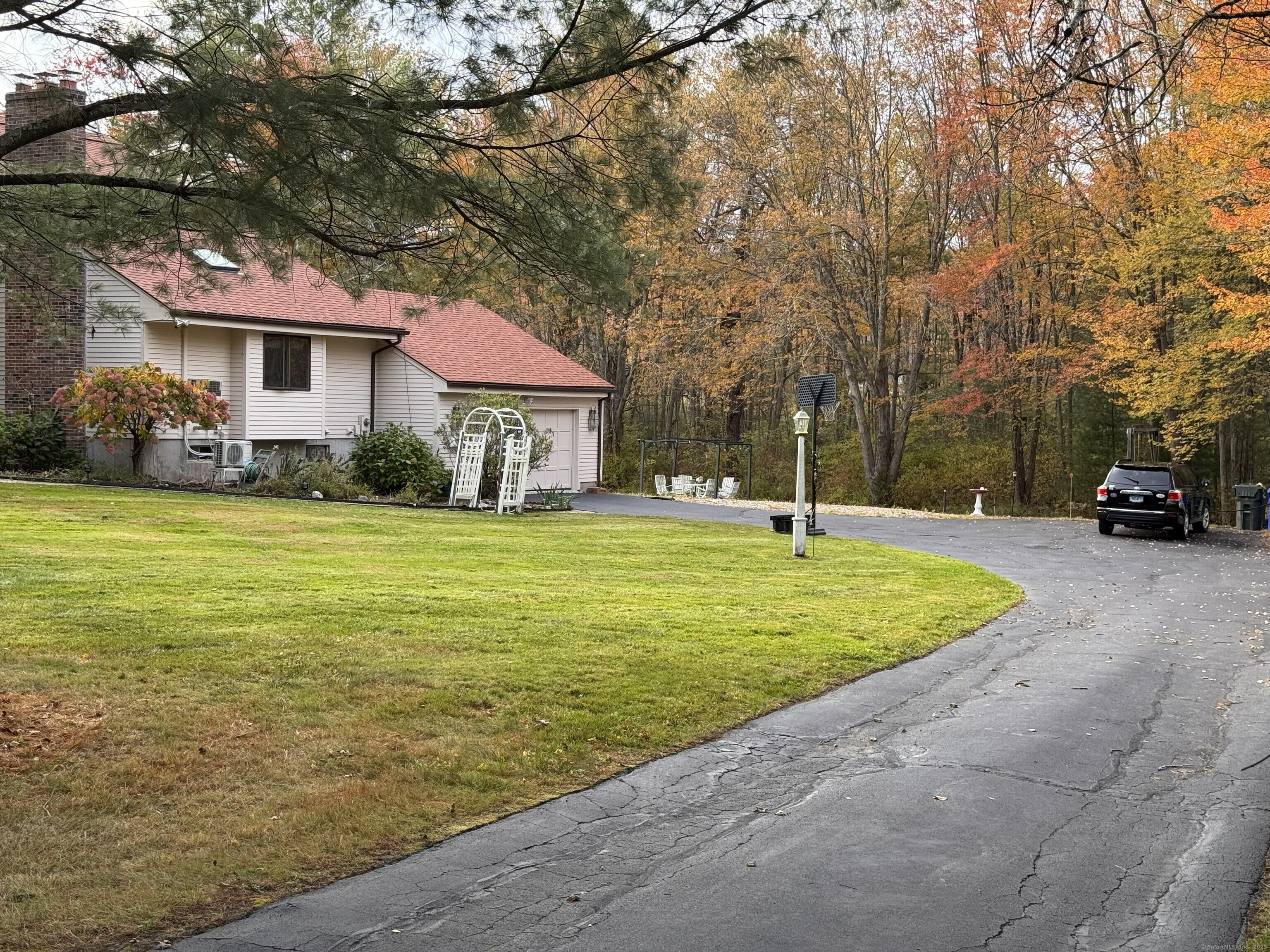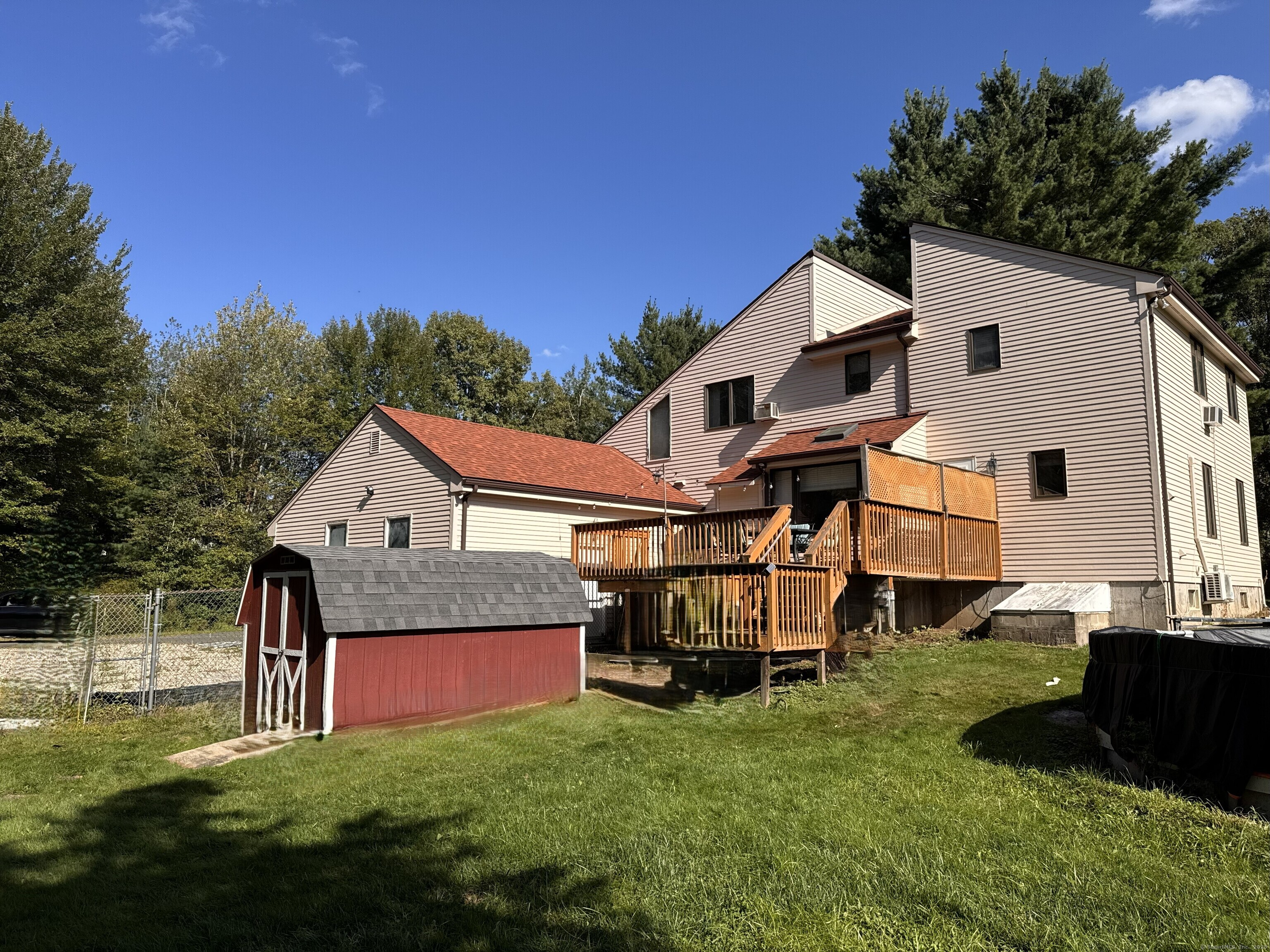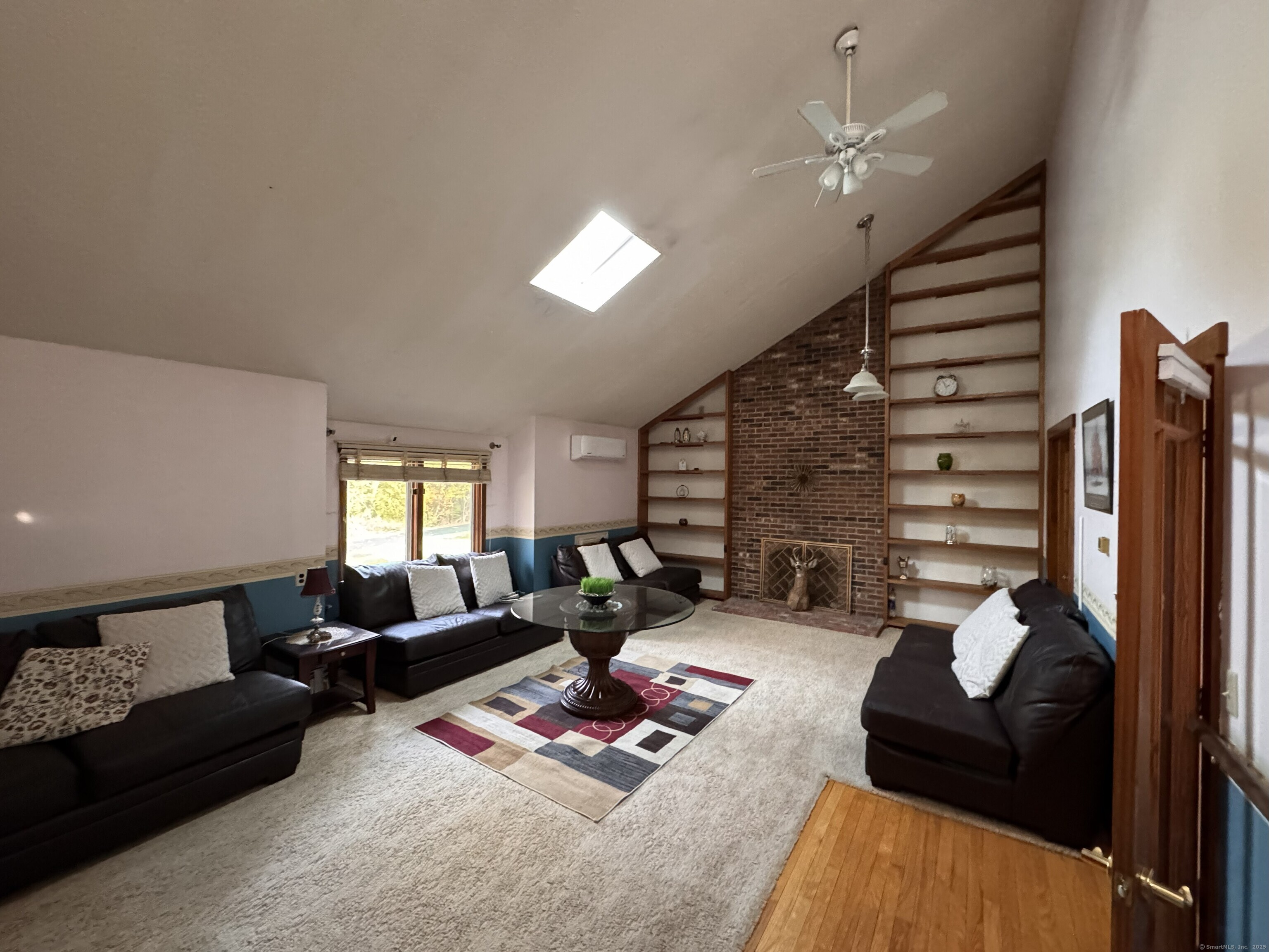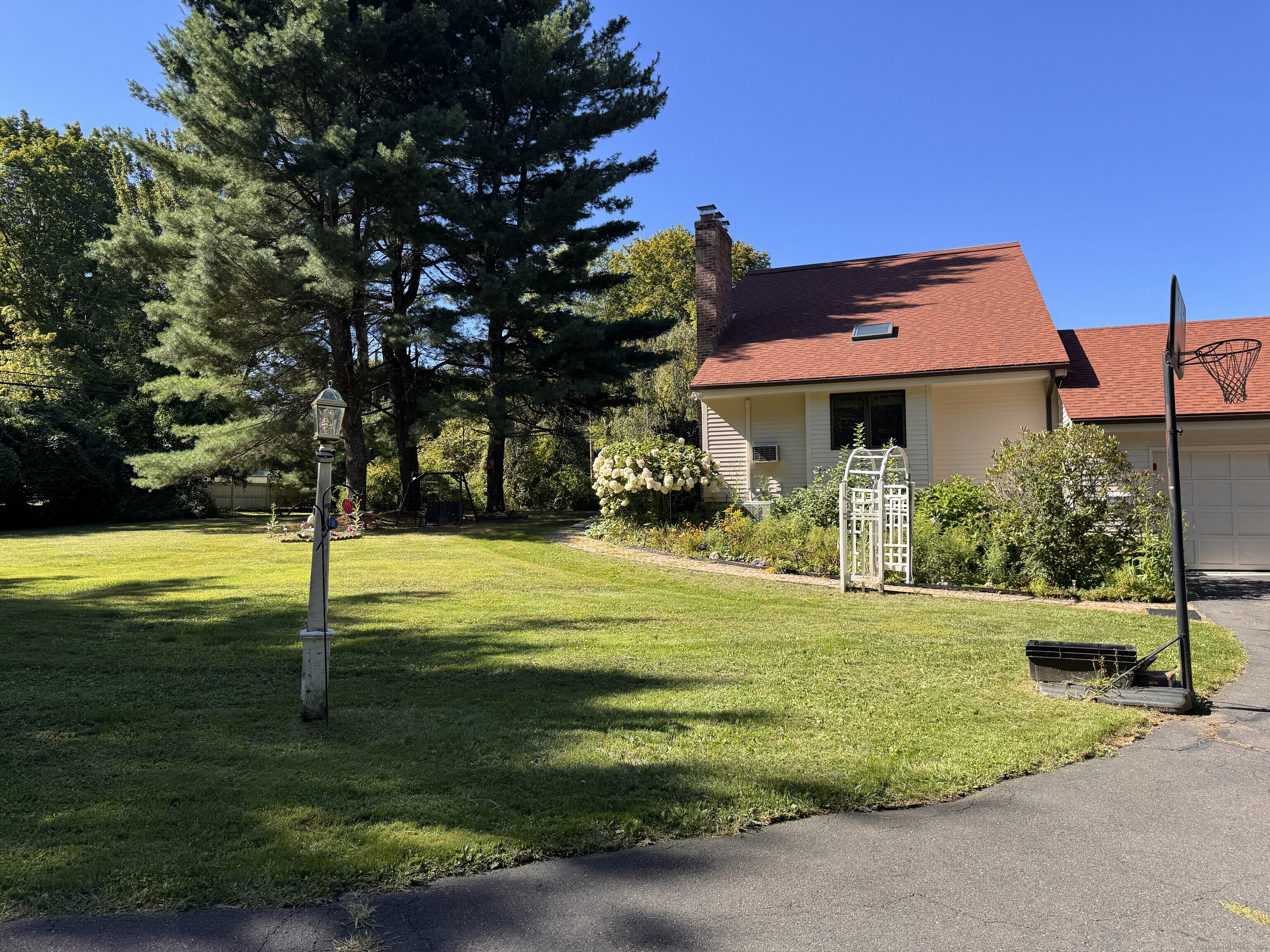 Spacious 6-Bedroom Home with Over 3,100 Sq Ft on nearly an acre in the heart of Simsbury. Discover comfort, character, and convenience in this expansive 6-bedroom, 5-bathroom home offering over 3,100 sq ft of finished living space on a beautifully landscaped .98-acre lot. Nestled in a private, tree-lined setting, this property backs to nearly 5 acres of serene wetlands-a peaceful backdrop for your everyday life. Interior Features You'll Love: Cathedral ceilings, skylights, and gleaming hardwood floors throughout main living areas. Open-concept layout with built-in bookshelves and a cozy wood stove. Large eat-in kitchen with island, stainless steel appliances, well-maintained cabinetry, and direct access to a spacious rear deck. Three oversized bedrooms and two full baths on the main level. Split AC system on the first floor for added comfort. Natural gas heat and hot water, with a new water heater (installed in 2024) and recently replaced gas heating boiler. Lower Level Highlights: Finished lower level with approximately 715 sq ft of additional living space. Includes a spacious great room, two additional bathrooms, a cedar walk-in closet, and extra rooms perfect for guests, home office, or recreation. Outdoor & Additional Features: Expansive rear deck with gas hookup for a natural gas grill-ideal for entertaining. Fenced-in backyard overlooking open space, great for pets or gardening. Extra parking area next to the attached 2-car garage-perfect for a truck or trailer.