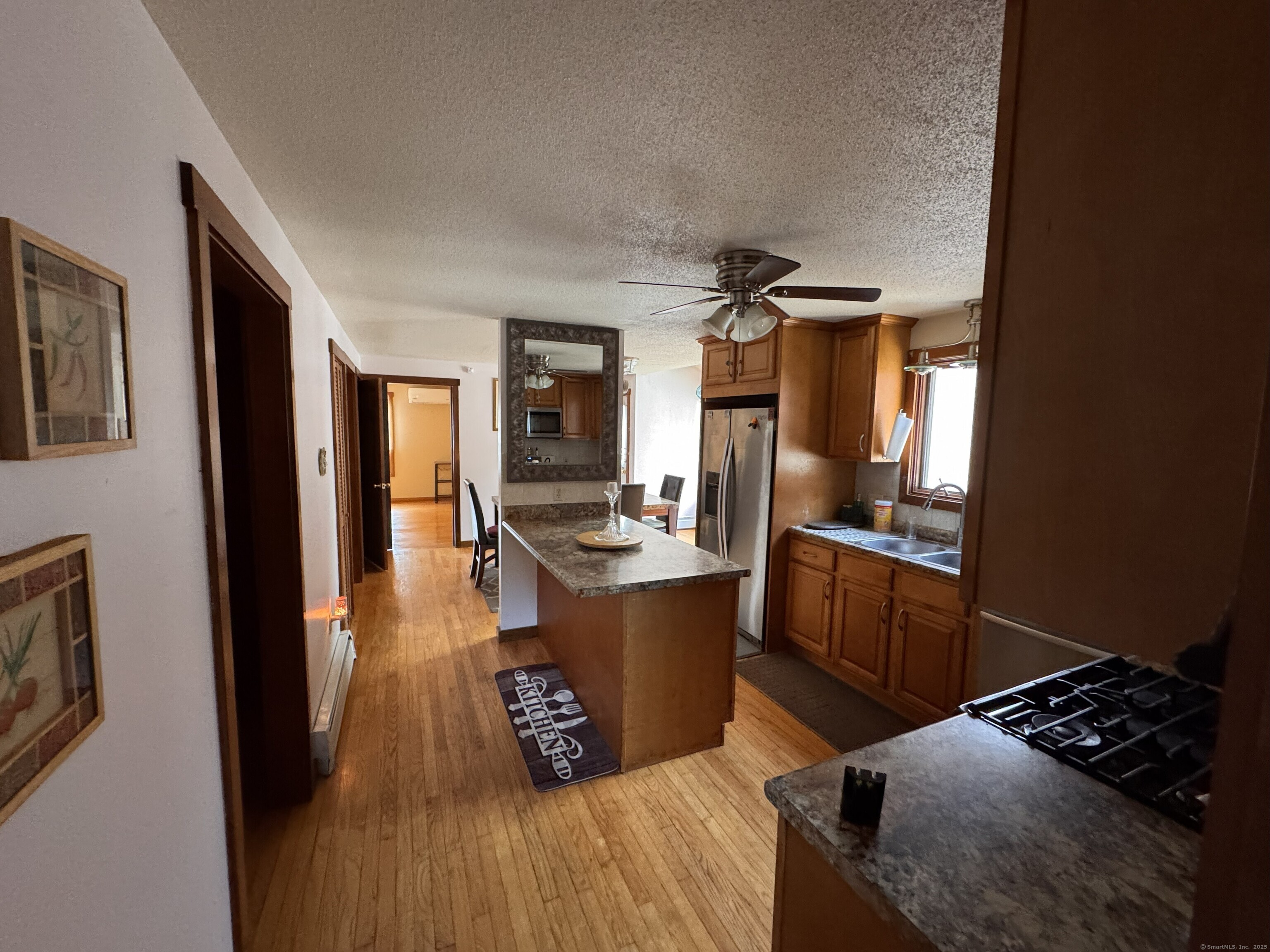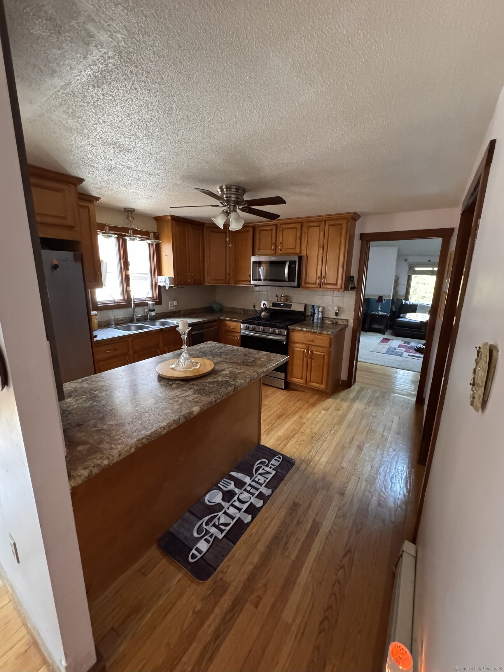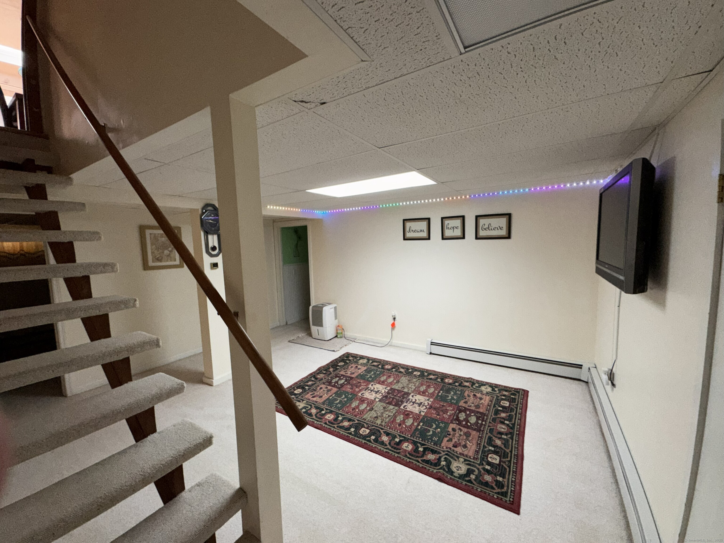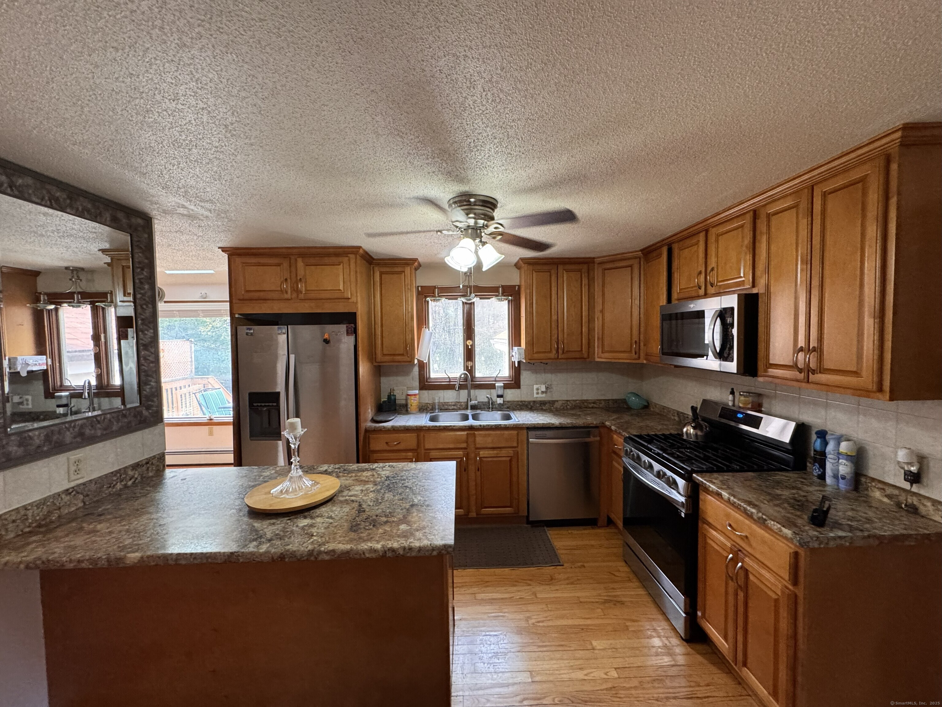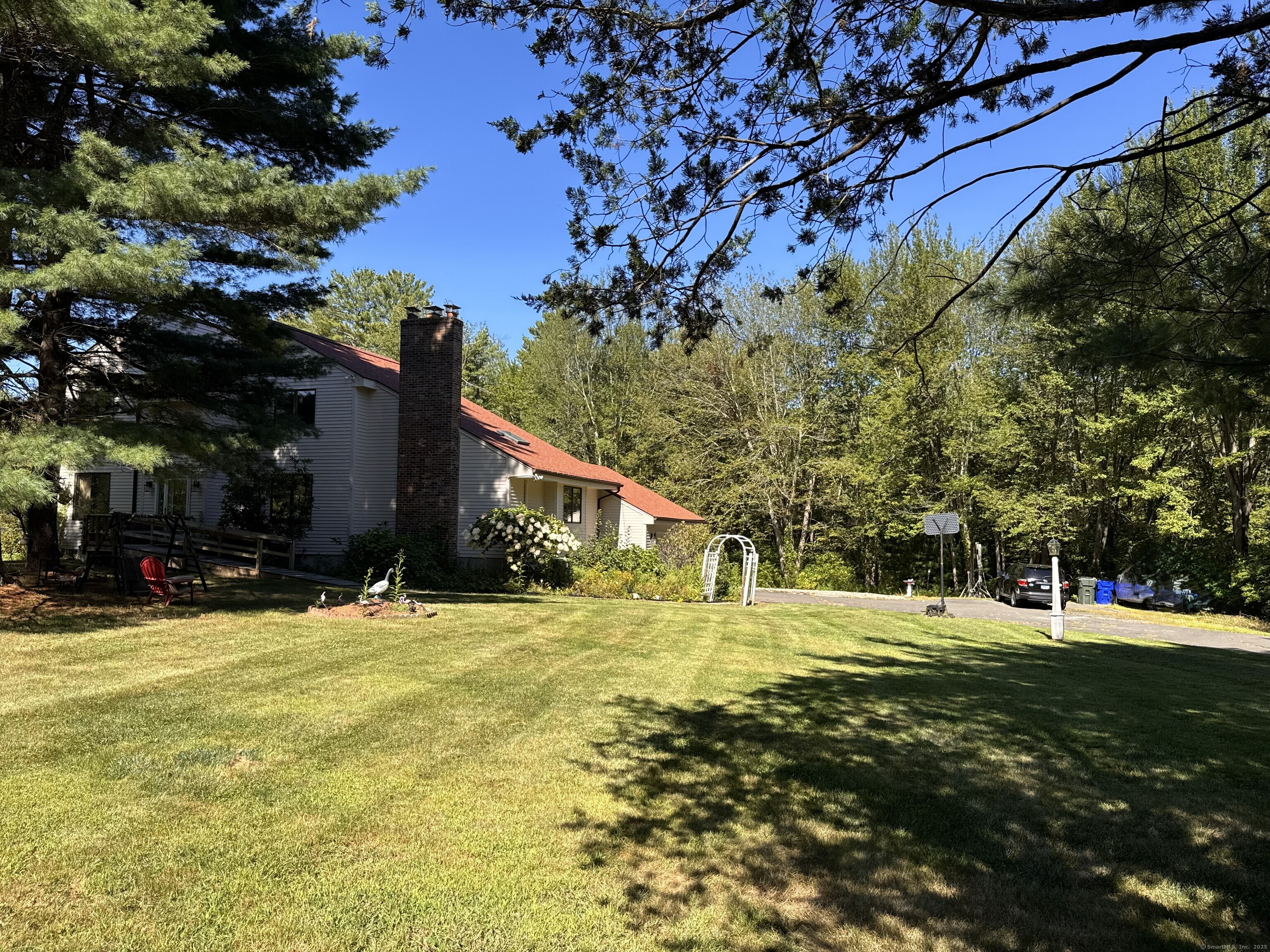 Spacious 6-Bedroom Home with Over 3,100 Sq Ft on nearly an acre in the heart of Simsbury. Discover comfort, character, and convenience in this expansive 6-bedroom, 5-bathroom home offering over 3,100 sq ft of finished living space on a beautifully landscaped .98-acre lot. Nestled in a private, tree-lined setting, this property backs to nearly 5 acres of serene wetlands-a peaceful backdrop for your everyday life. Interior Features You'll Love: Cathedral ceilings, skylights, and gleaming hardwood floors throughout main living areas. Open-concept layout with built-in bookshelves and a cozy wood stove. Large eat-in kitchen with island, stainless steel appliances, well-maintained cabinetry, and direct access to a spacious rear deck. Three oversized bedrooms and two full baths on the main level. Split AC system on the first floor for added comfort. Natural gas heat and hot water, with a new water heater (installed in 2024) and recently replaced gas heating boiler. Lower Level Highlights: Finished lower level with approximately 715 sq ft of additional living space. Includes a spacious great room, two additional bathrooms, a cedar walk-in closet, and extra rooms perfect for guests, home office, or recreation. Outdoor & Additional Features: Expansive rear deck with gas hookup for a natural gas grill-ideal for entertaining. Fenced-in backyard overlooking open space, great for pets or gardening. Extra parking area next to the attached 2-car garage-perfect for a truck or trailer.
