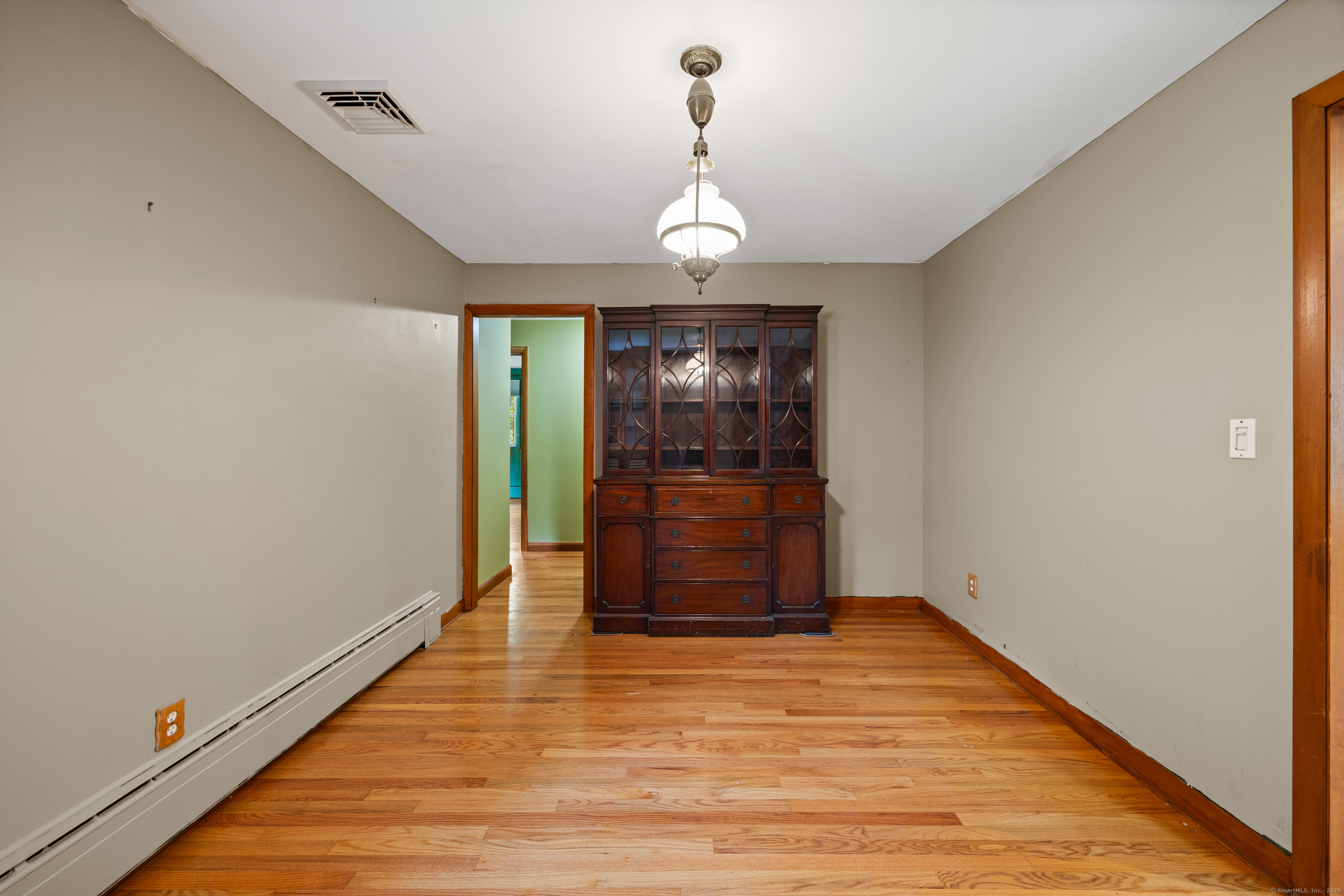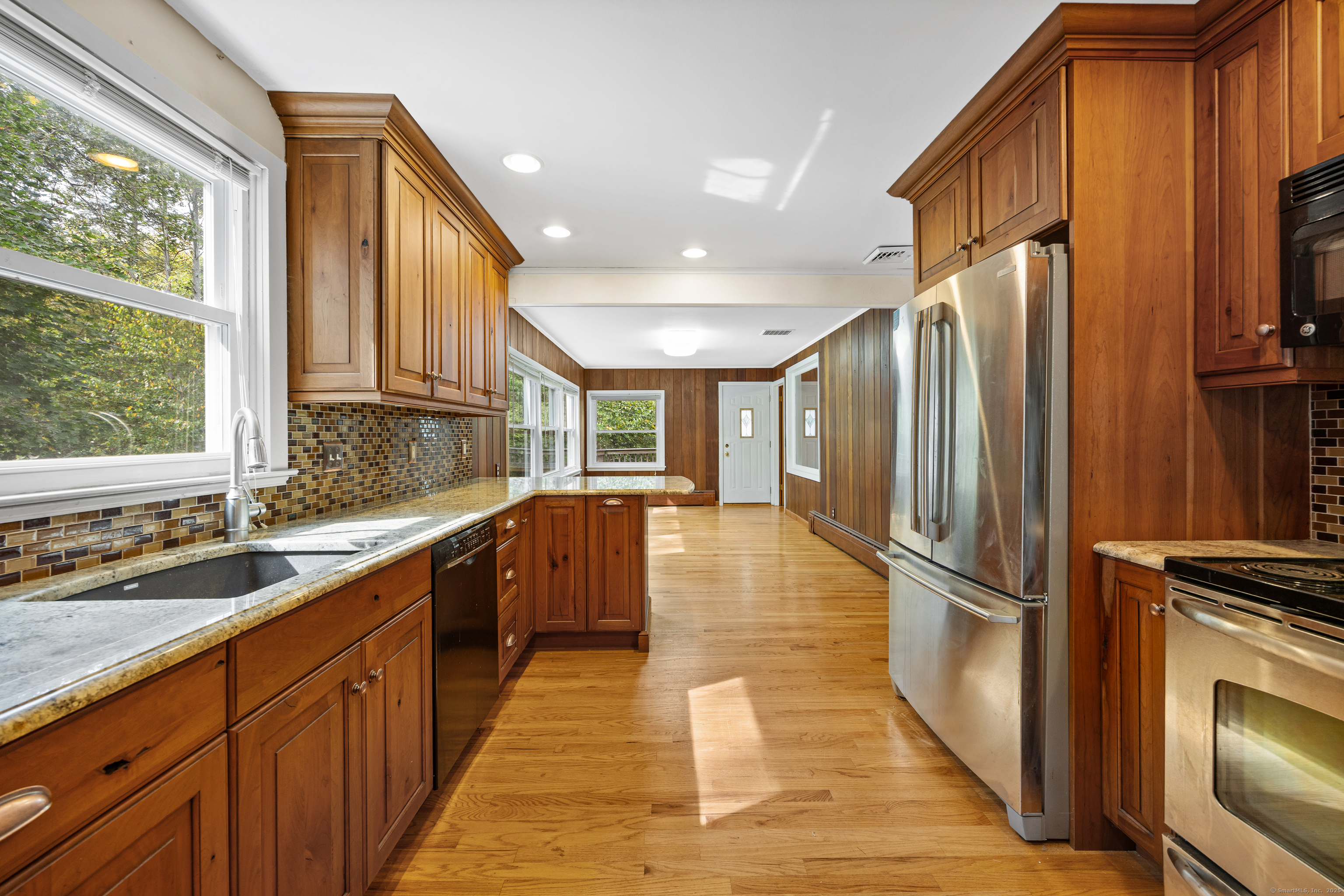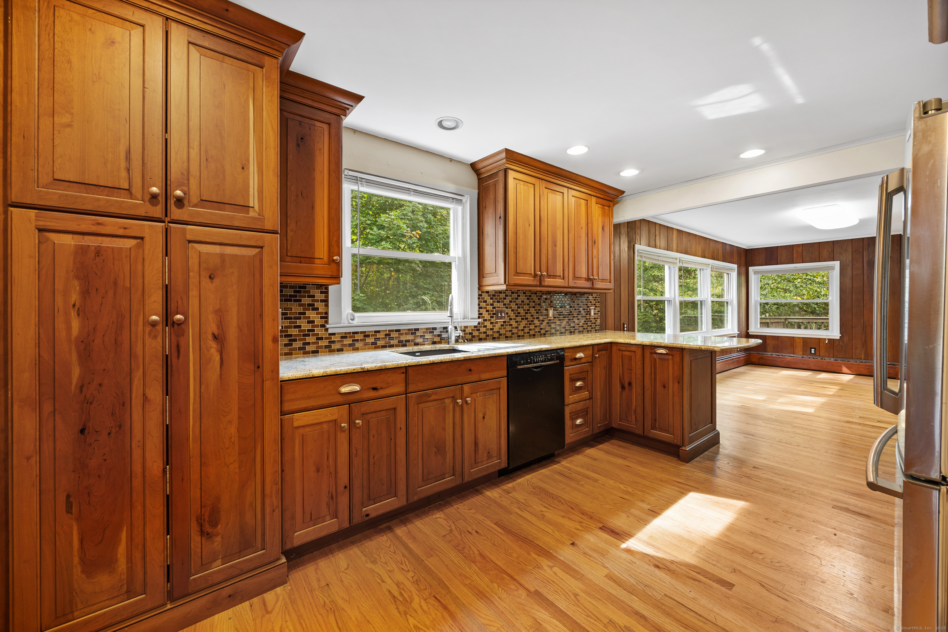 Welcome to this spacious 3-bedroom, 2.5-bath ranch nestled in one of Orange's most desirable neighborhoods. Offering a versatile layout and plenty of natural light, this home combines comfort and functionality in every detail. The main level features a bright and inviting family room with gleaming hardwood floors, a cozy fireplace, and a large picture window. The generously sized eat-in kitchen is beautifully updated with granite countertops, stainless steel appliances, ample cabinet storage, and hardwood flooring throughout. Off the kitchen, is a small deck overlooking a private backyard. The dining room showcases charming built-in hutches, perfect for entertaining. The primary bedroom offers a private half bath, while two additional bedrooms share a full bath with a shower. The lower level presents fantastic potential for additional living space-whether a playroom, office, or den-and already includes a full bath with shower. Additional highlights include a two-car garage (with A/C in one bay), a brand-new oil tank (October 2025), central air, and a roof that's just 13 years young. Enjoy the spacious and private backyard, ideal for outdoor gatherings or peaceful relaxation. Conveniently located with easy access to top-rated schools, shopping, restaurants, and major highways. Home is being sold "AS IS".