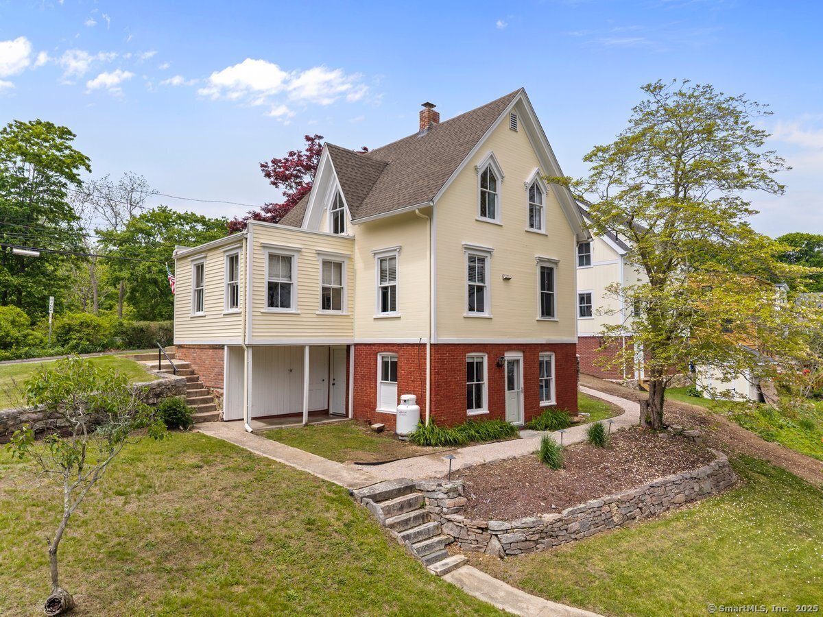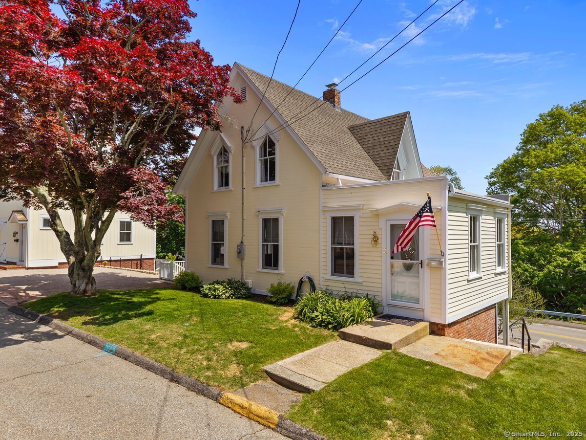 For Rent in the Heart of Downtown Mystic - Enjoy sweeping Mystic River views just steps from shops, dining, and the waterfront. The main home boasts an open floor plan, refinished hardwood floors, a new roof, rebuilt chimney with liner, new gutters, fresh paint, upgraded 200-amp electrical service, and a 350+ sq. ft. walkout lower level with laundry and flexible office/guest space. The landscaped grounds feature granite steps, stone retaining walls, and a private stairway leading directly to downtown Mystic. Move-in ready with timeless historic charm.