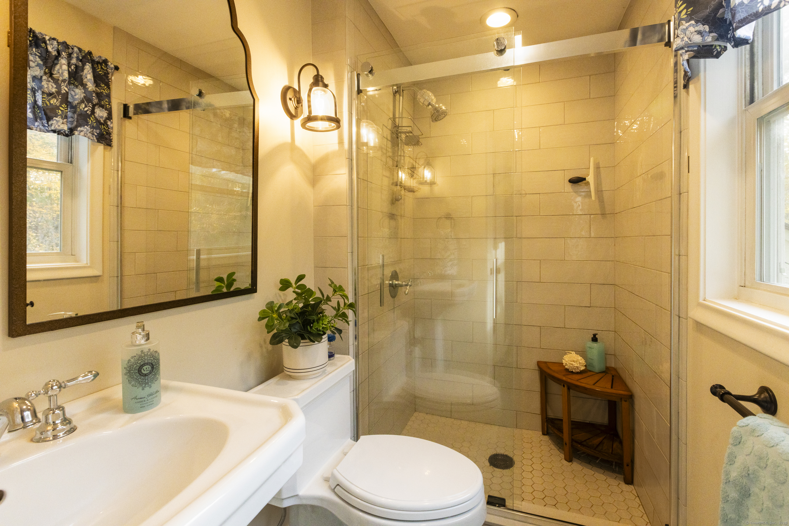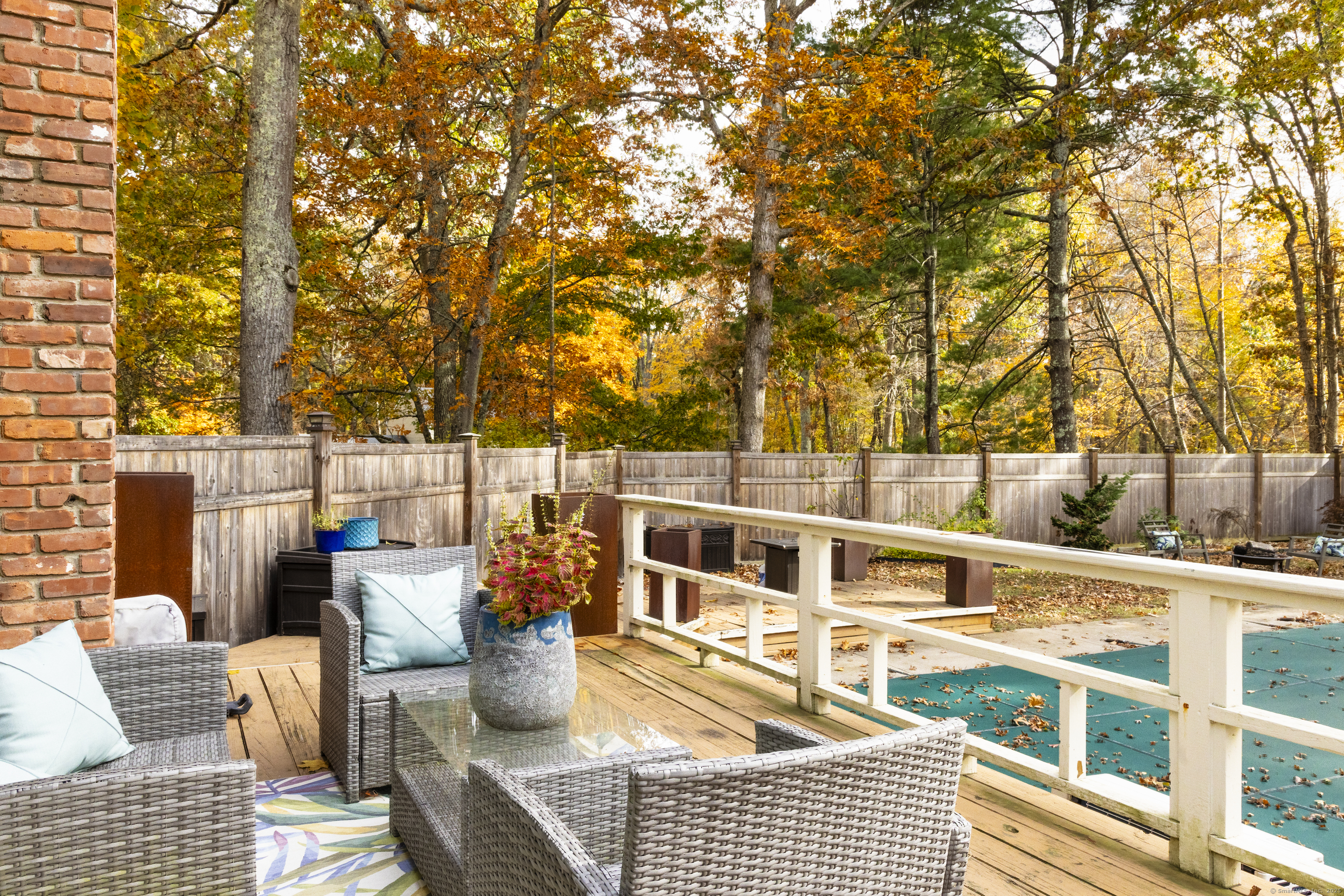 A nature lover's retreat. The Kenilworth subdivision is unique. It is a cul-de-sac neighborhood with access to 85 acres of hiking trails. This location bestows the affiliation of a neighborhood while affording one the solitude and peacefulness of nature. 5 Kings Grant rests on a gentle knoll providing a front lawn view of the neighbors passing by. The side yard offers a professionally landscaped in ground pool with new privacy fencing. The backyard extends beyond the fenced area encompassing 1.83 acres. This sprawling split level home has room for everyone from a finished lower level for games and movies, to an expansive family room with new pellet insert. The living room contains a woodburning fireplace which opens into the remodeled kitchen enabling a comfortable setting for entertaining. The kitchen was fully renovated with beautiful stone counters, new modern appliances and cabinetry. A spacious center island and sliding door open to the deck and pool area extending the space for al fresco dining during warmer months. Three bedrooms, all with hardwood flooring are located on a separate wing of the home. Two full size bathrooms have been remodeled. A half bath for guests is conveniently located off of the family room and laundry area. Solar panels assist with electric costs. Two heat pumps have been added to increase efficiency. Come tour this lovely home and find your solitude in nature. "A walk in nature, walks the soul back home