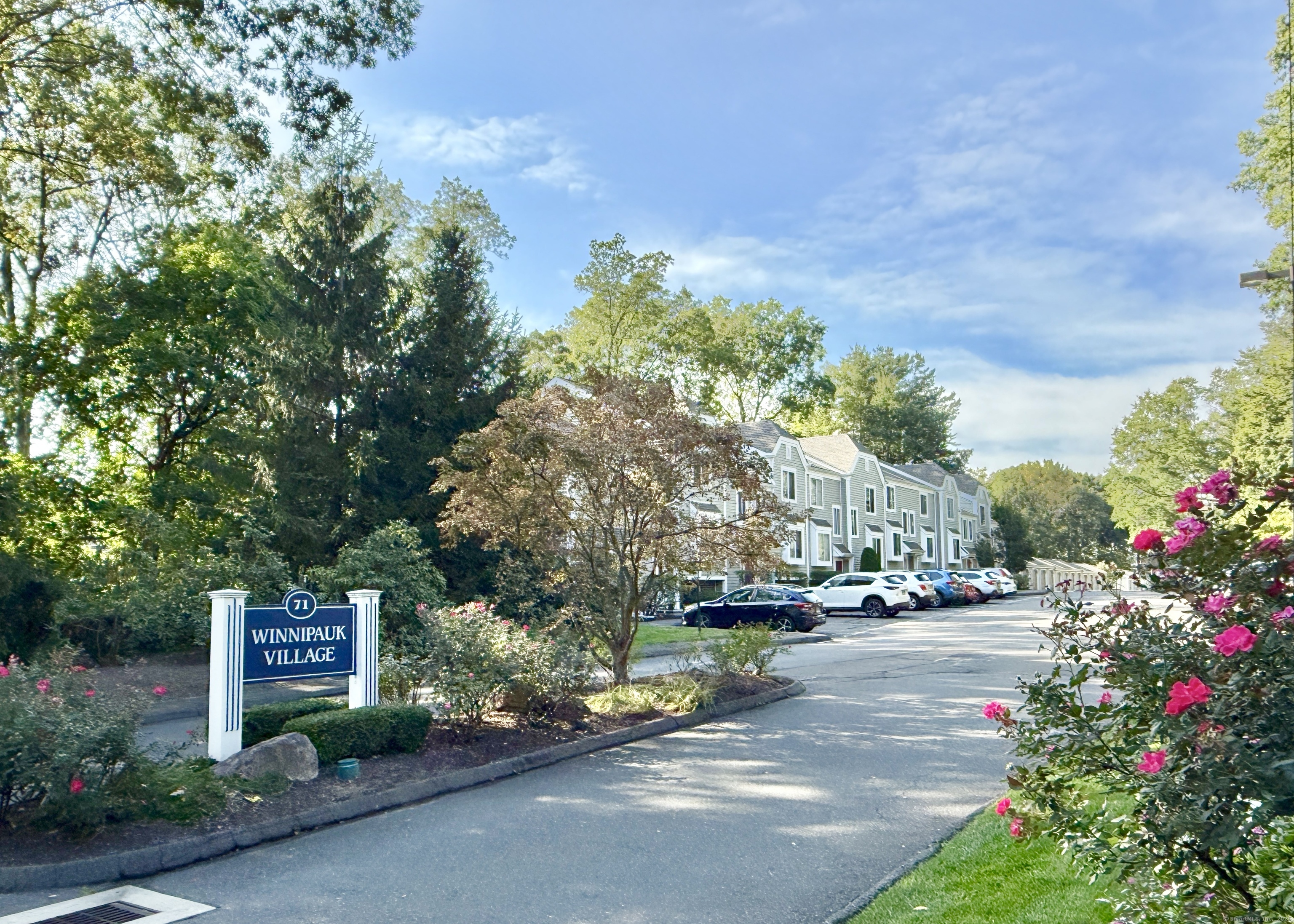 Spacious 2 bedroom, 2.5 bath townhouse with garage features gleaming hardwood floors, brand new carpeting on the upper level and freshly painted throughout. Large bright eat-in kitchen with window seat. Living room with fireplace and sliders to private deck overlooking nature. Beautifully landscaped and well maintained Winnipauk Village offers wonderful amenities including tennis courts, in-ground pool, club house and exercise room. Walking distance to schools and only minutes to shopping and restaurants.