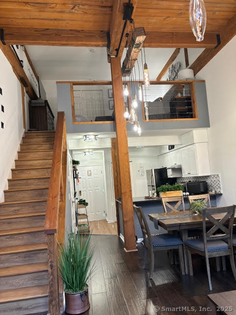 Gorgeous unit one bedroom loft in the historic Clocktower Close. The townhome offers a 16-foot wooden rafter ceiling, a very bright unit with 10-foot windows that fills this unit with natural sunlight with exposed brick walls and beams. This building is very charm and has lot of character and so much to offer to residents. It includes a fitness center with rooms/saunas, same floor laundry room, dog walk area, covered outdoor garage library area, community room and pool table. There is 2 parking available with this unit and. parking garage available for a monthly fee ( subject to availability). This unit is in pristine condition., move in ready. It is located in a very convenient location close to train station, shopping, restaurants. A must see. Unit is actually rented for 2,500.