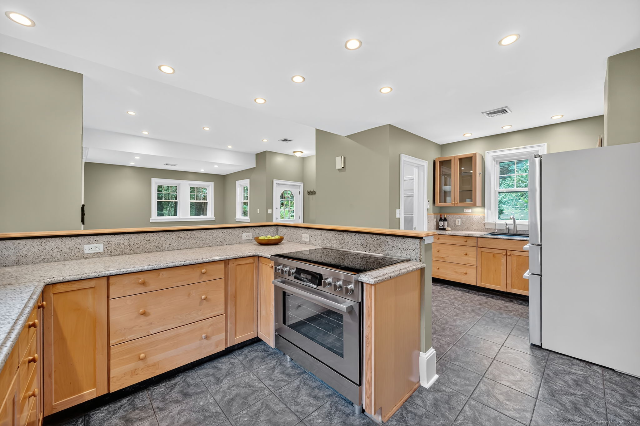 Step into this stunning 4-bedroom, 3.5-bath custom contemporary masterpiece, where architectural charm meets modern comfort. With over 3,600 square feet of beautifully remodeled living space (transformed from a classic ranch in 2004), this home offers room to breathe, grow, and entertain. The first floor welcomes you with an open-concept layout centered around a chef's kitchen-complete with granite countertops, double sinks, a large pantry, and updated appliances. Enjoy seamless flow into the dining room with built-ins, a cozy family room, and a sunlit living room featuring a wood-burning fireplace. French doors lead to a slate patio, perfect for outdoor gatherings. Two bedrooms share a large full bath, while the primary suite enjoys its own private wing for ultimate tranquility. Need a home office? You've got one on the main level. Upstairs, discover a versatile nook and a spacious fourth bedroom with a walk-in closet and full bath-ideal as a second primary suite or guest retreat. Park in the attached garage and enter through a practical mudroom with double closets. The expansive 1.5-acre yard is flat and usable and includes an invisible fence for pets. Bonus features include a whole-house propane generator, a 2016 architectural roof, and newly refinished hardwood floors. Nestled on a peaceful cul-de-sac near the Avon line, this home offers privacy, style, and convenience. Minutes to schools, shopping ( 3 min to Whole Foods! ) and upscale dining.
