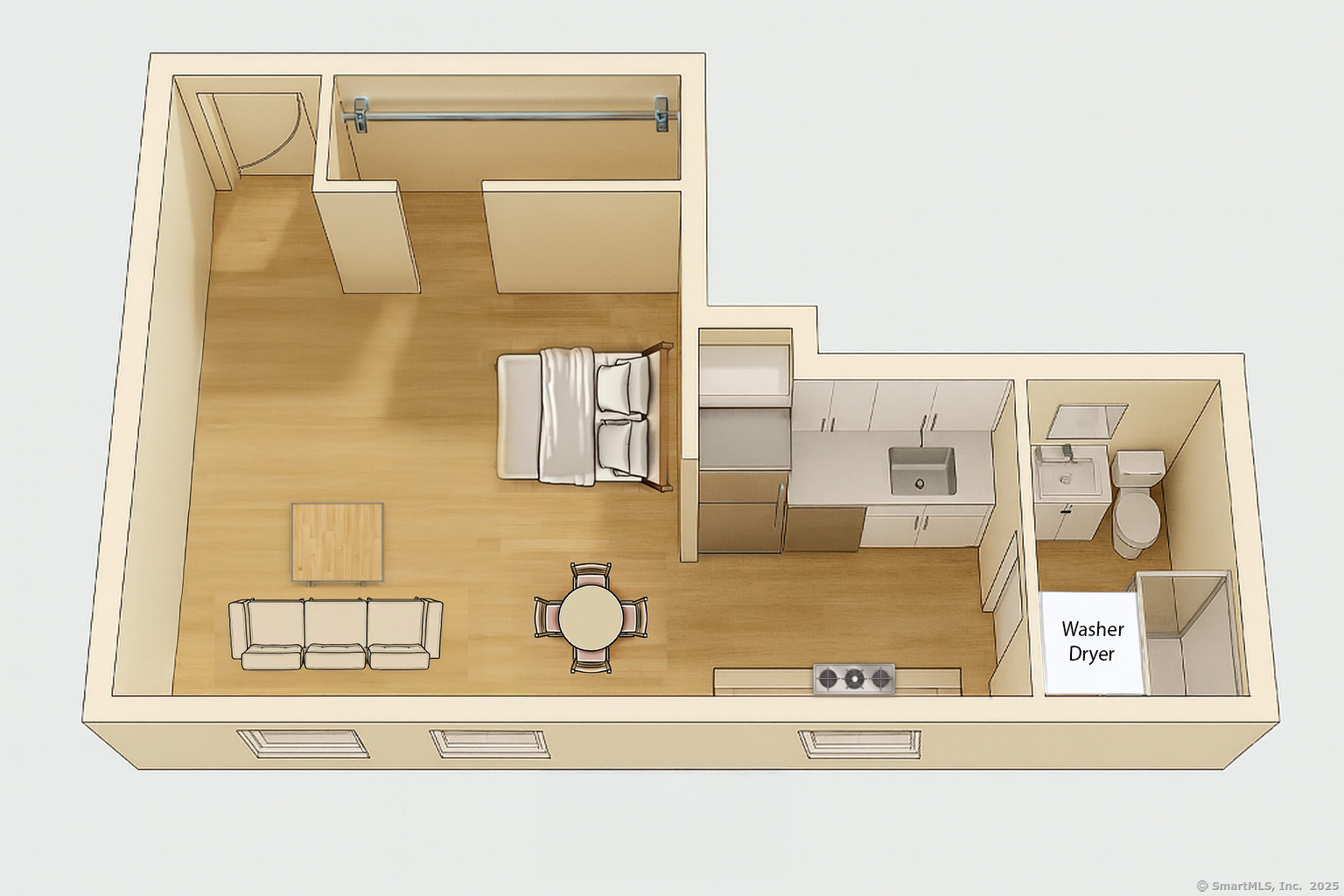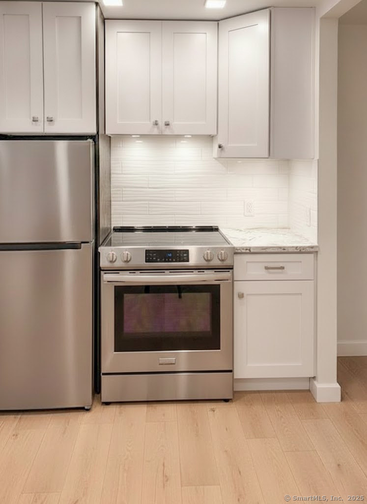 Completely renovated studio in central Norwalk. This residence has been rebuilt from top to bottom, offering a rare opportunity to live in a brand-new space with finishes typically found in larger homes. The kitchen features all-new appliances, modern cabinetry, and a built-in dishwasher. The bathroom has been fully updated with contemporary fixtures and tile. Additional improvements include new flooring, walls, lighting, and a new heating and cooling system for year-round comfort. A walk-in closet and entry foyer with custom cubbies provide excellent storage an uncommon feature in a studio. Highlights: In-unit washer and dryer Brand-new kitchen and bath Bright, open layout with modern design Convenient location near shops, dining, and transit Studios of this quality are rarely available. Strong credit required; small pets considered.