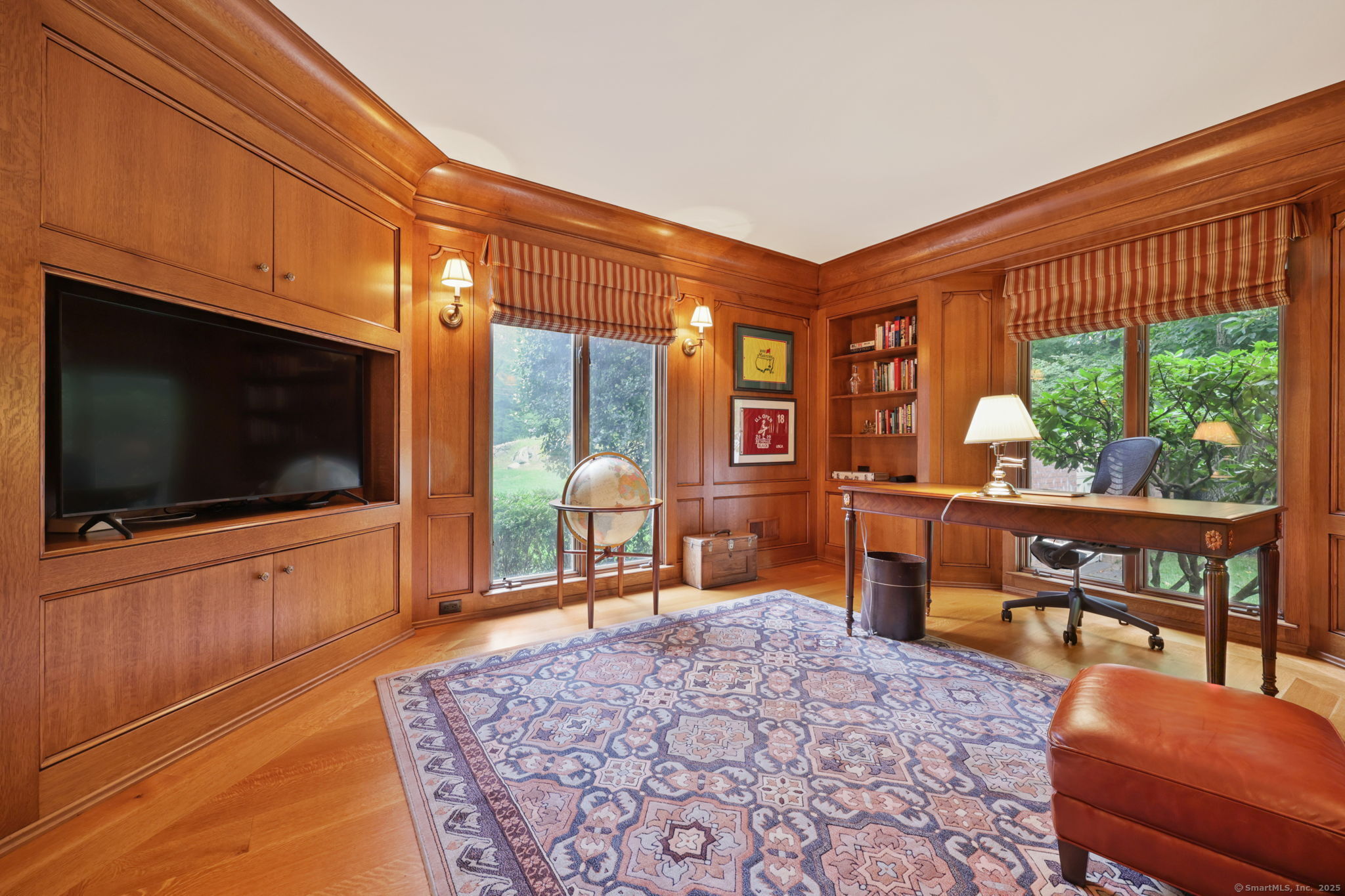 Discover this remarkable private retreat nestled amid mature trees and stunning walled gardens. This meticulously maintained home offers a serene escape on a private, landscaped property. Inside, enjoy beautiful wide plank oak flooring and an open plan layout that seamlessly connects the gourmet kitchen, equipped with top-of- the-line Sub-Zero and Thermador appliances, with the dining and living areas, creating a warm and comfortable flow. French doors open to a spectacular outdoor entertainment area featuring a pool, separate spa and built in gas bbq. Additional highlights include a spacious wood-paneled first-floor office, a 2nd floor TV room with sauna and a spacious finished lower level ideal for play room or home gym. Compelling expansion or renovation possibilities