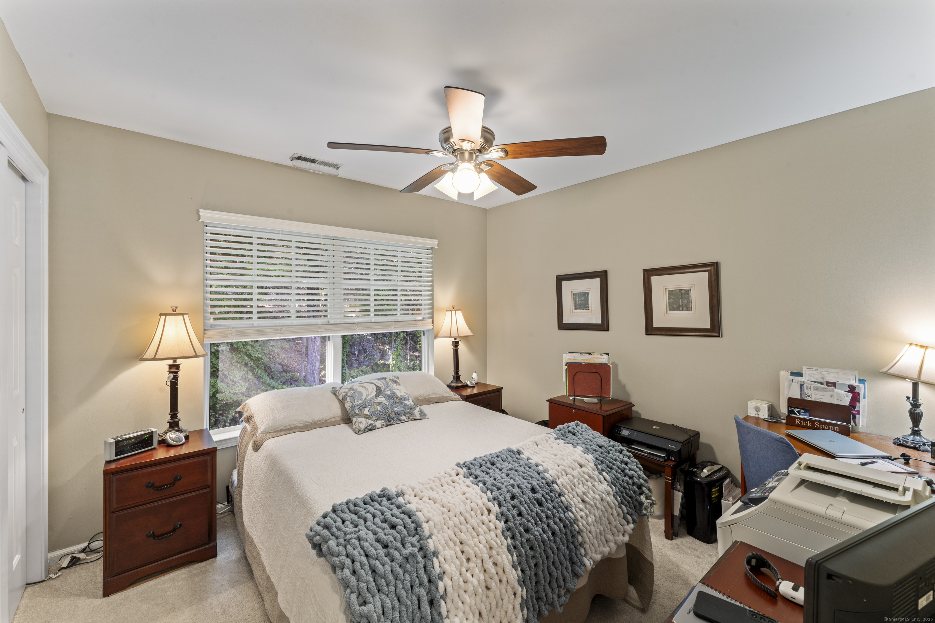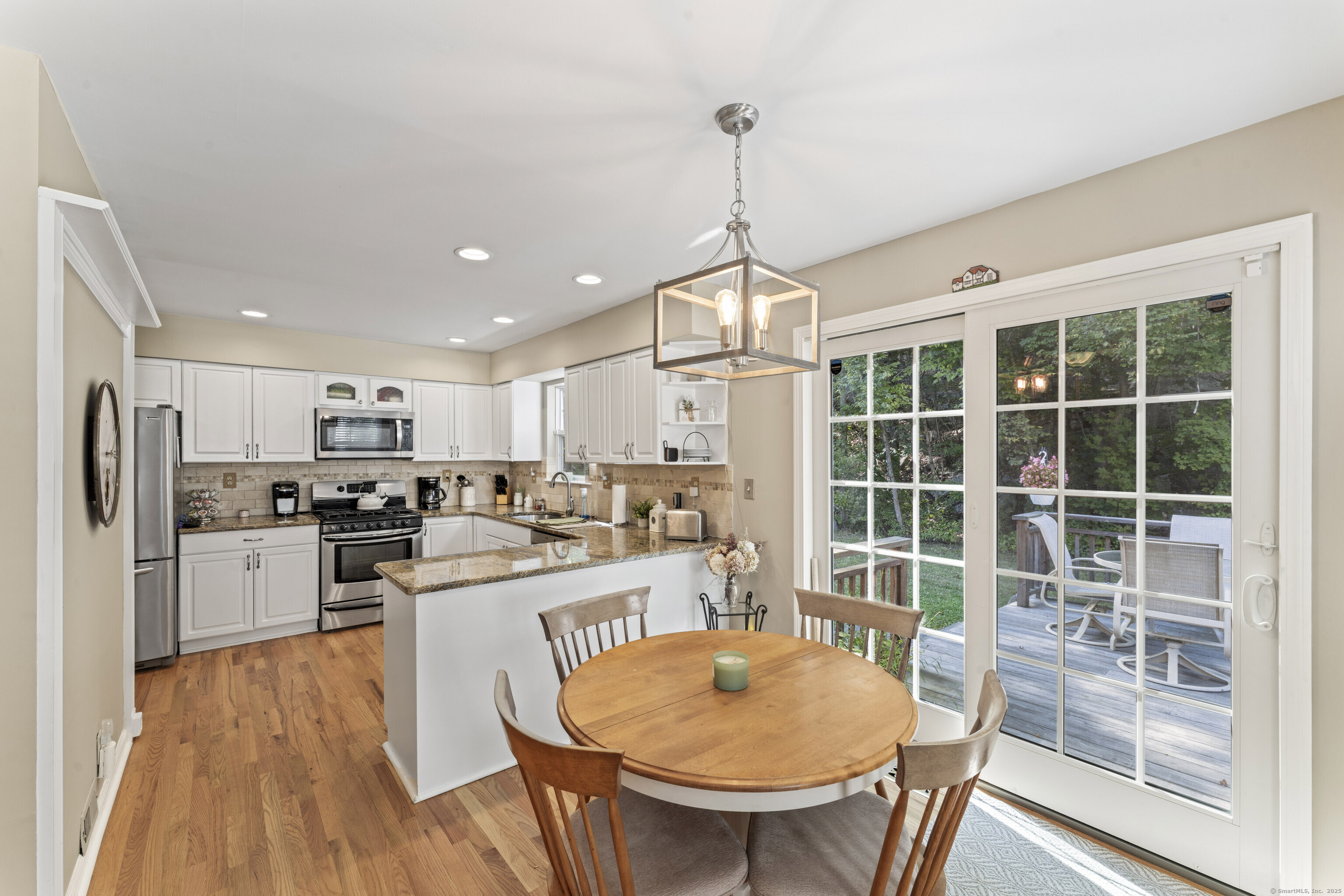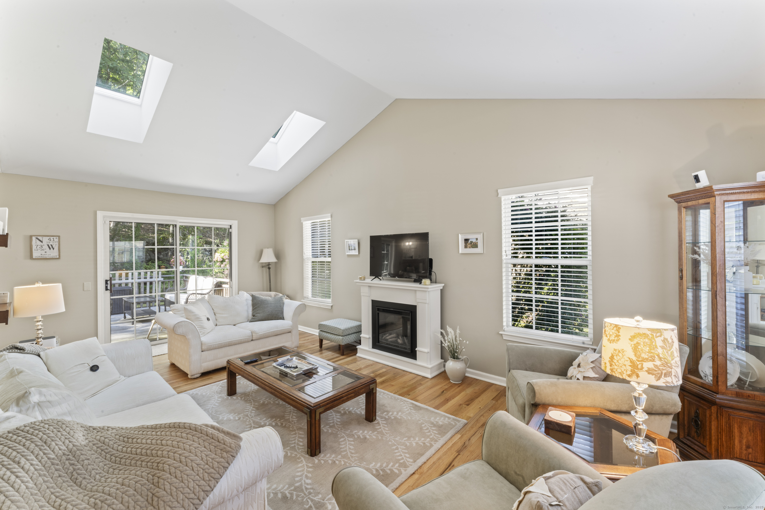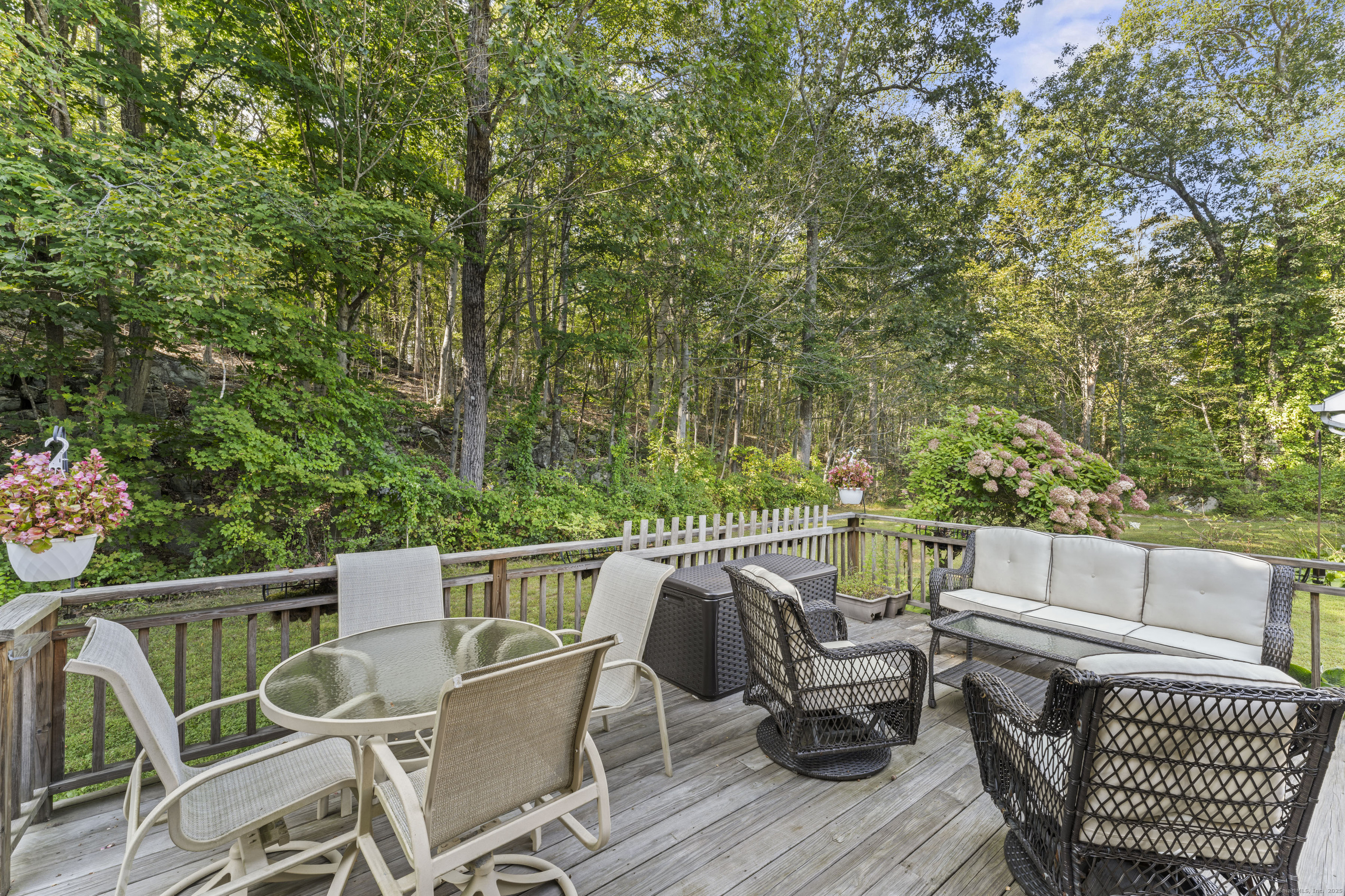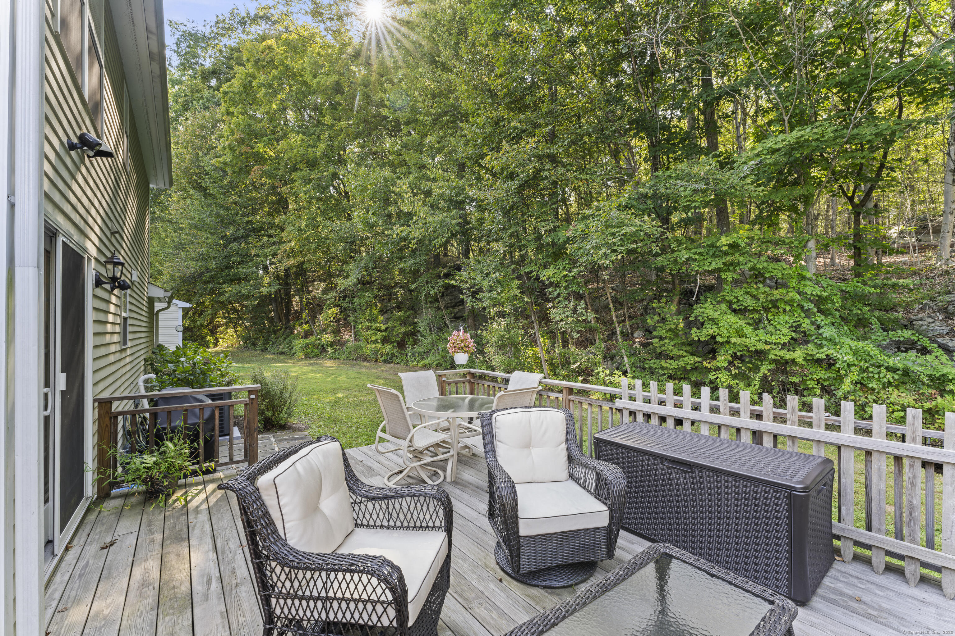 A fantastic opportunity for interim housing while you sell your home, search for your next purchase, undergo a major renovation or perhaps job relocation. Available as a mid term rental November 1st until end of April 2026. This gorgeous New England Colonial is maintenance free living at it's best, nestled within The Hills condo complex on a private cul de sac. The home offers a mostly open floorplan on the first level w/ beautifully laid out kitchen featuring a peninsula, stainless steel appliances and sparkling granite countertops. Gleaming hardwood flows throughout leading into a spacious living w/ vaulted ceilings dual sliders off of eat-in kitchen dining area flanked by a dedicated dining room for entertaining. Enjoy the convenience of a powder room half bath just off of the kitchen. An expansive wood deck is steps away off of the back and a grill accessible for cooking throughout the fall & winter months. The rear is backed up against dense woods & lends itself to privacy. Upstairs is a large den perfect for working from home or another space to relax after a long day. A beautifully updated full bath w/ shower tub combination is shared both w/ the hallway and separate primary Suite. The primary features a king bed & a walk-in closet. A sizable 2nd bedroom is just down the hall. The home is delivered furnished and move-in ready for a lucky new tenant. Convenient to endless restaurants, family owned shops, gyms & a short drive to the Merritt Parkway or Rt25 Connector.