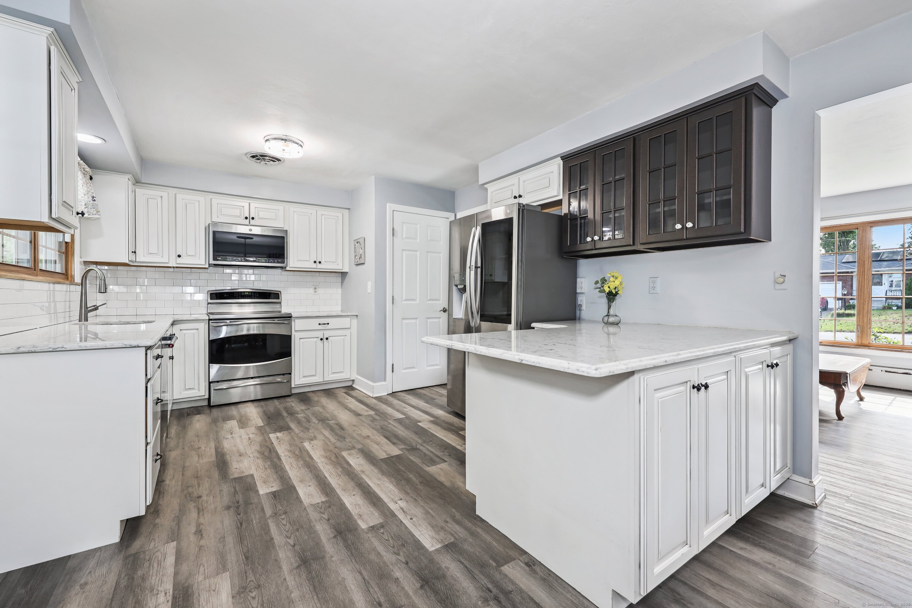 Step into 352 Highland Drive, a stunning 1956 split-level gem in the vibrant West End, steps from local parks and dining. Offering 1,404 sq ft of move-in-ready living, this home blends mid-century charm with modern upgrades. Enter the airy living room, warmed by a cozy fireplace and cooled by a two-year-old mini split, with gleaming laminate vinyl plank flooring flowing throughout, creating an inviting ambiance.The newly renovated kitchen, boasting granite countertops and premium stainless steel appliances, opens to a versatile sunroom behind a charming Dutch door-perfect for serene retreats or lively gatherings. Adjacent, the dining room features another mini split for year-round comfort. Upstairs, three spacious bedrooms, each with ceiling fans, include two with efficient mini splits for optimal climate control. A luxurious full bathroom elevates daily living with modern sophistication.Descend to the partially finished basement, where a second fireplace adds cozy elegance to a customizable flex space, joined by a practical utility area and a unique "wine cellar"-inspired storage section, ideal for collectors or hobbyists. Ample storage includes a large walk-up attic and a centrally located cedar closet.Convenience shines with an attached two-car garage with automatic openers, paired with public water and sewer for hassle-free living. Step outside to a meticulously landscaped backyard, a botanical haven with vibrant gardens that invites relaxation or entertaining