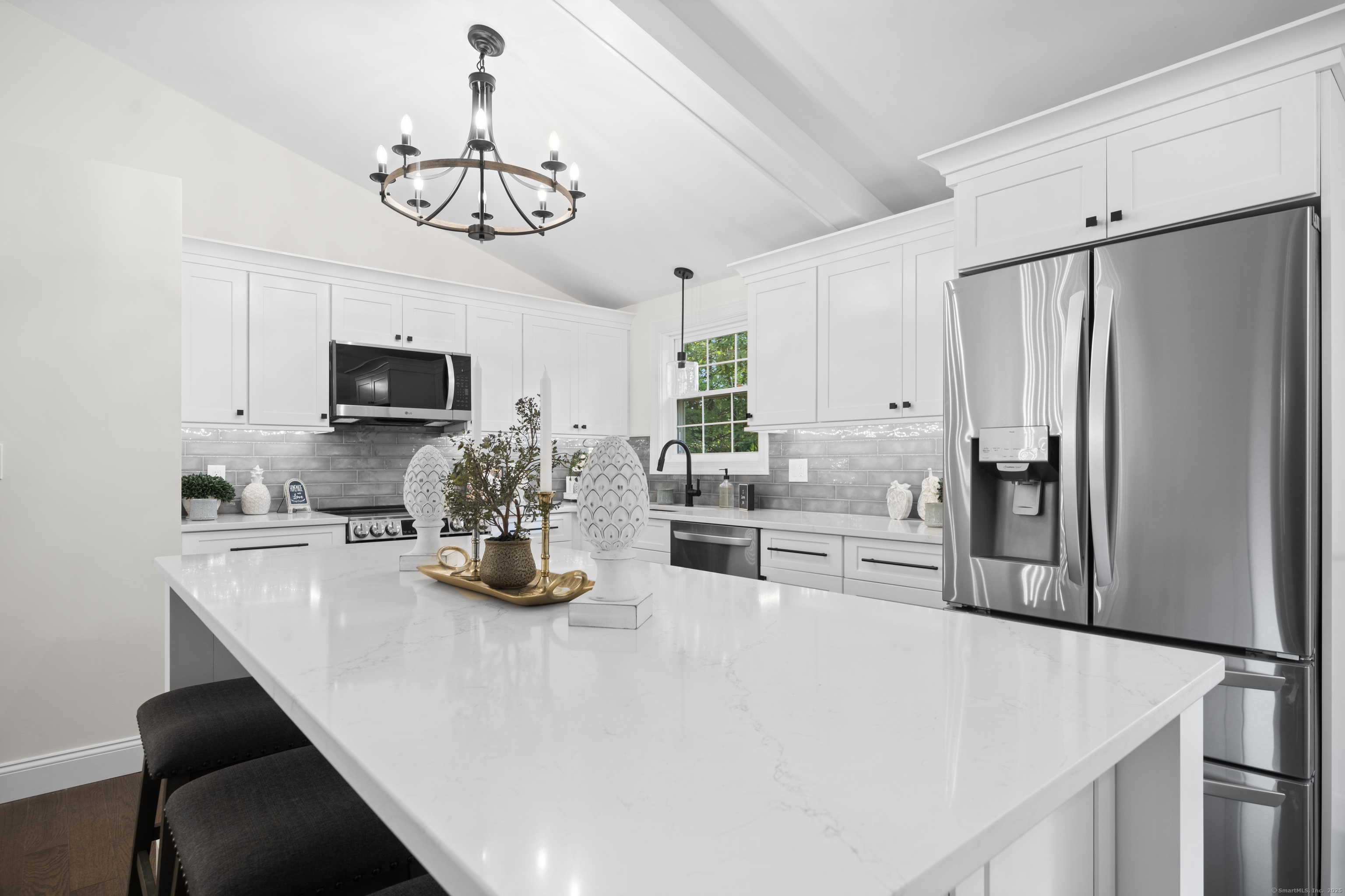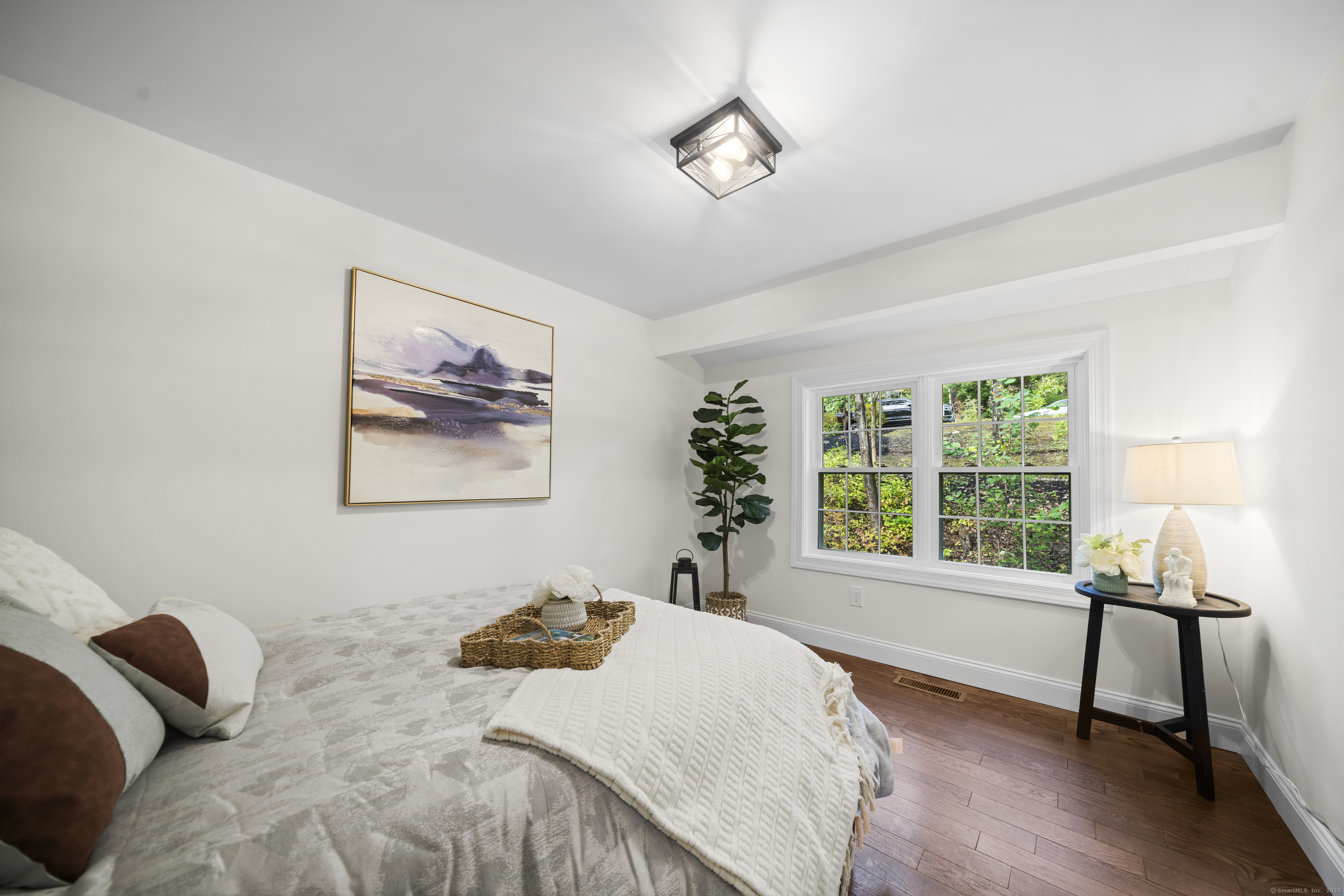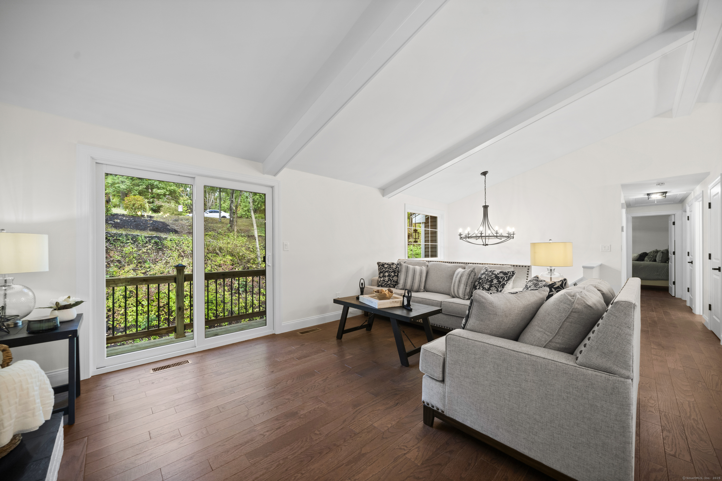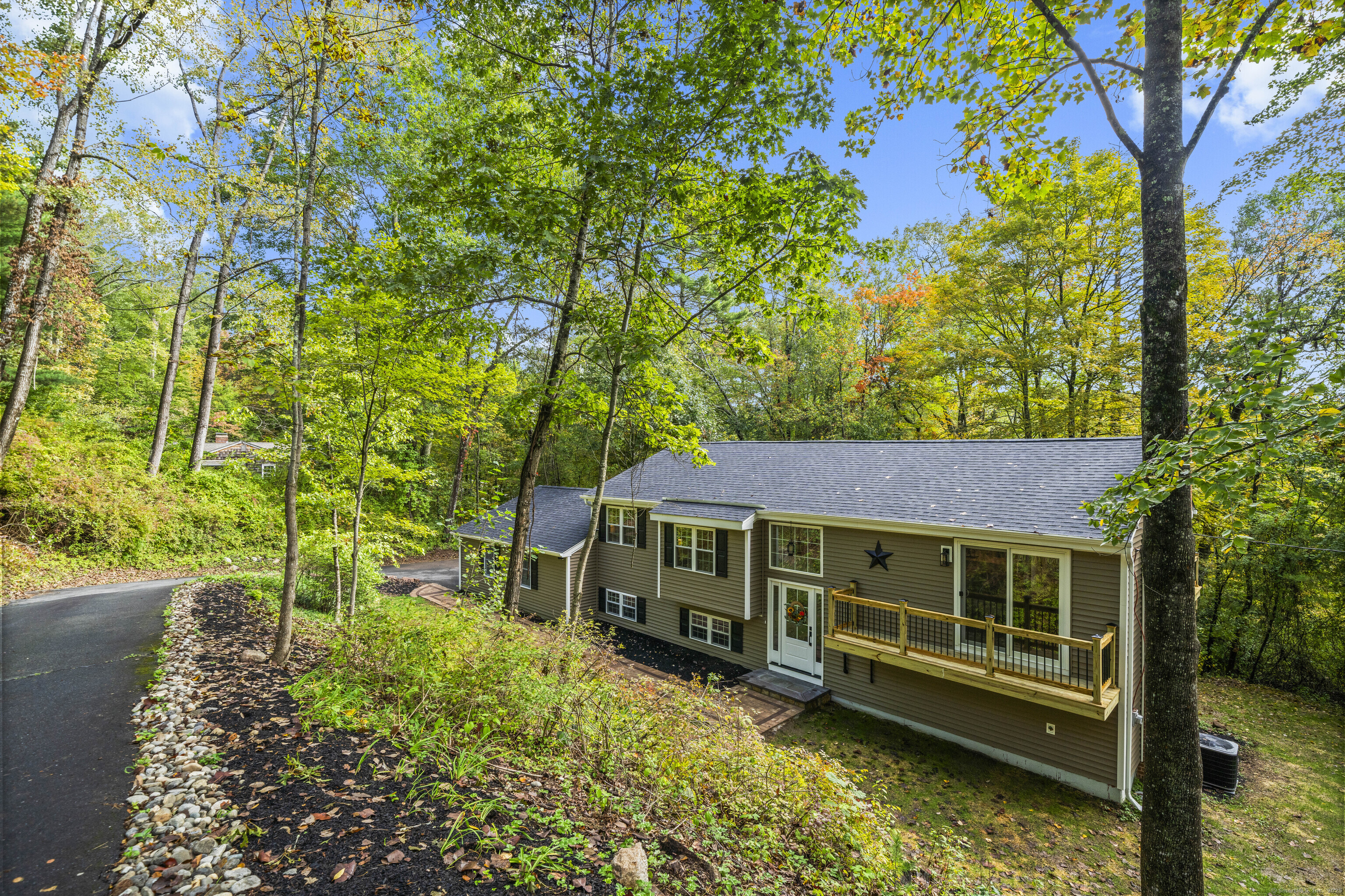 Welcome to 8 Crane Place, a beautiful home tucked away on a private cul-de-sac in Simsbury. This move-in ready property blends modern style with everyday comfort, offering the clean, fresh design you'd expect from an HGTV showcase. Step inside to find gleaming hardwood floors, soaring vaulted ceilings, and a bright, open layout filled with natural light. The kitchen features stylish finishes, sleek cabinetry, and updated appliances, making it both beautiful and functional. The main level offers three spacious bedrooms, including a primary suite with a private bath, plus the flexibility for a fourth bedroom to suit your needs. A versatile finished lower level adds even more options for a home office, playroom, or guest space. With 2.5 bathrooms throughout, every detail has been thoughtfully finished. Enjoy the outdoors with two decks, perfect for entertaining or relaxing in a private setting. Added peace of mind comes with city sewer service-no septic to worry about-and a newer HVAC system with central air, providing comfort and efficiency year-round. Set on a private lot surrounded by mature trees, this home offers peace and seclusion while still being close to Simsbury's award-winning schools, charming town center, shopping, dining, and outdoor recreation. Truly turnkey, this home has it all-modern updates, functional spaces, and timeless style-ready for you to move right in and enjoy.