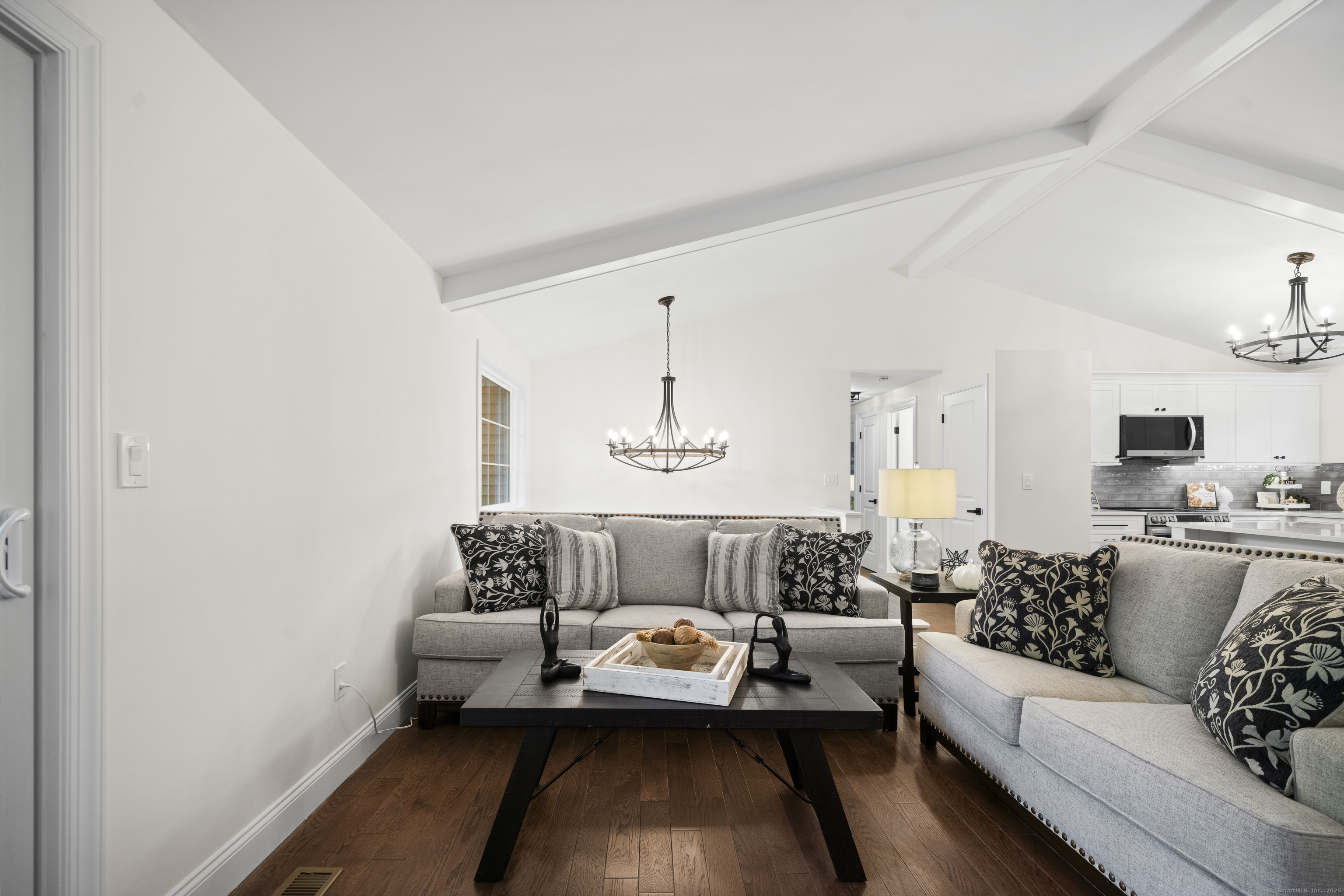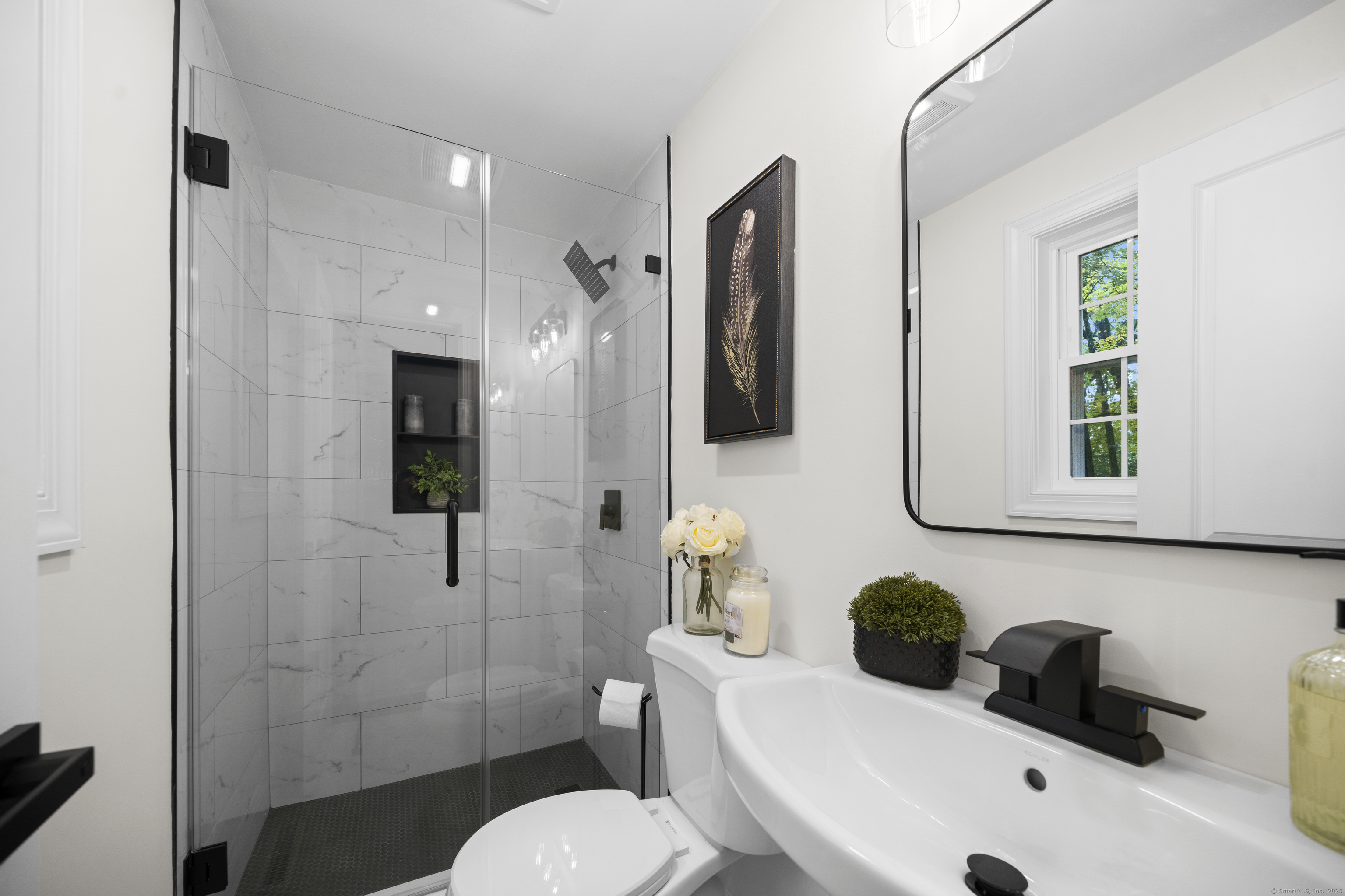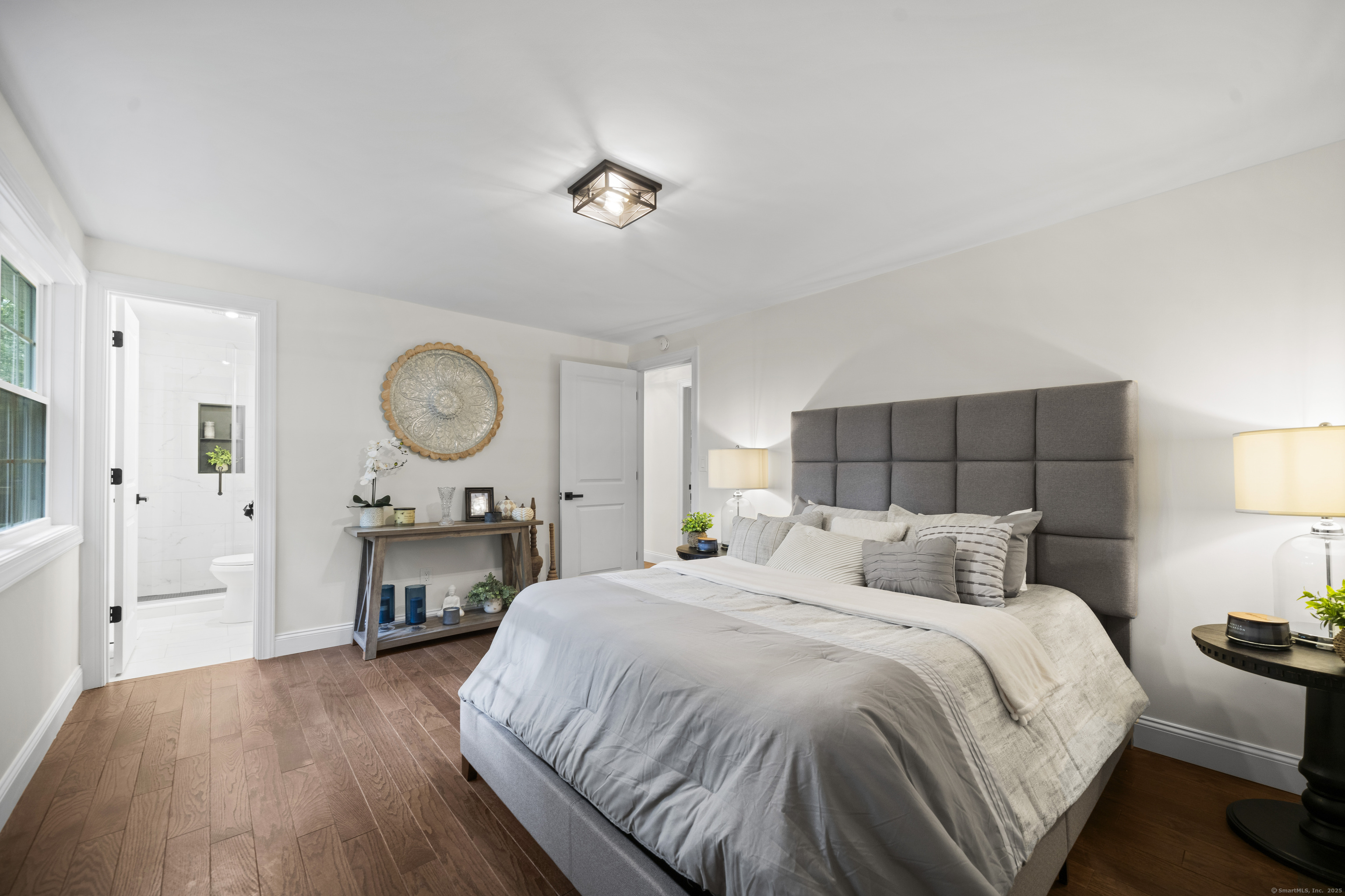 Welcome to 8 Crane Place, a beautiful home tucked away on a private cul-de-sac in Simsbury. This move-in ready property blends modern style with everyday comfort, offering the clean, fresh design you'd expect from an HGTV showcase. Step inside to find gleaming hardwood floors, soaring vaulted ceilings, and a bright, open layout filled with natural light. The kitchen features stylish finishes, sleek cabinetry, and updated appliances, making it both beautiful and functional. The main level offers three spacious bedrooms, including a primary suite with a private bath, plus the flexibility for a fourth bedroom to suit your needs. A versatile finished lower level adds even more options for a home office, playroom, or guest space. With 2.5 bathrooms throughout, every detail has been thoughtfully finished. Enjoy the outdoors with two decks, perfect for entertaining or relaxing in a private setting. Added peace of mind comes with city sewer service-no septic to worry about-and a newer HVAC system with central air, providing comfort and efficiency year-round. Set on a private lot surrounded by mature trees, this home offers peace and seclusion while still being close to Simsbury's award-winning schools, charming town center, shopping, dining, and outdoor recreation. Truly turnkey, this home has it all-modern updates, functional spaces, and timeless style-ready for you to move right in and enjoy.