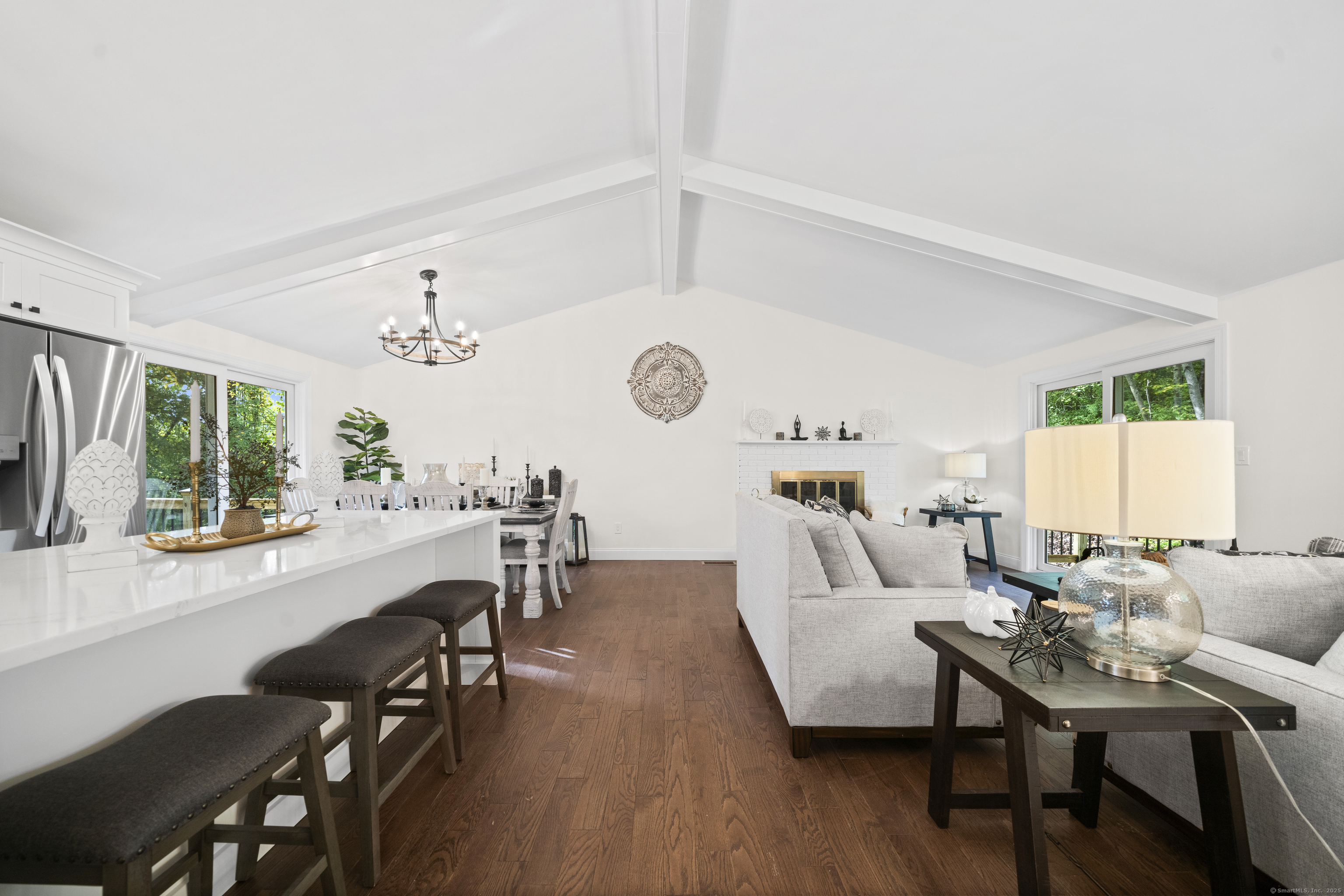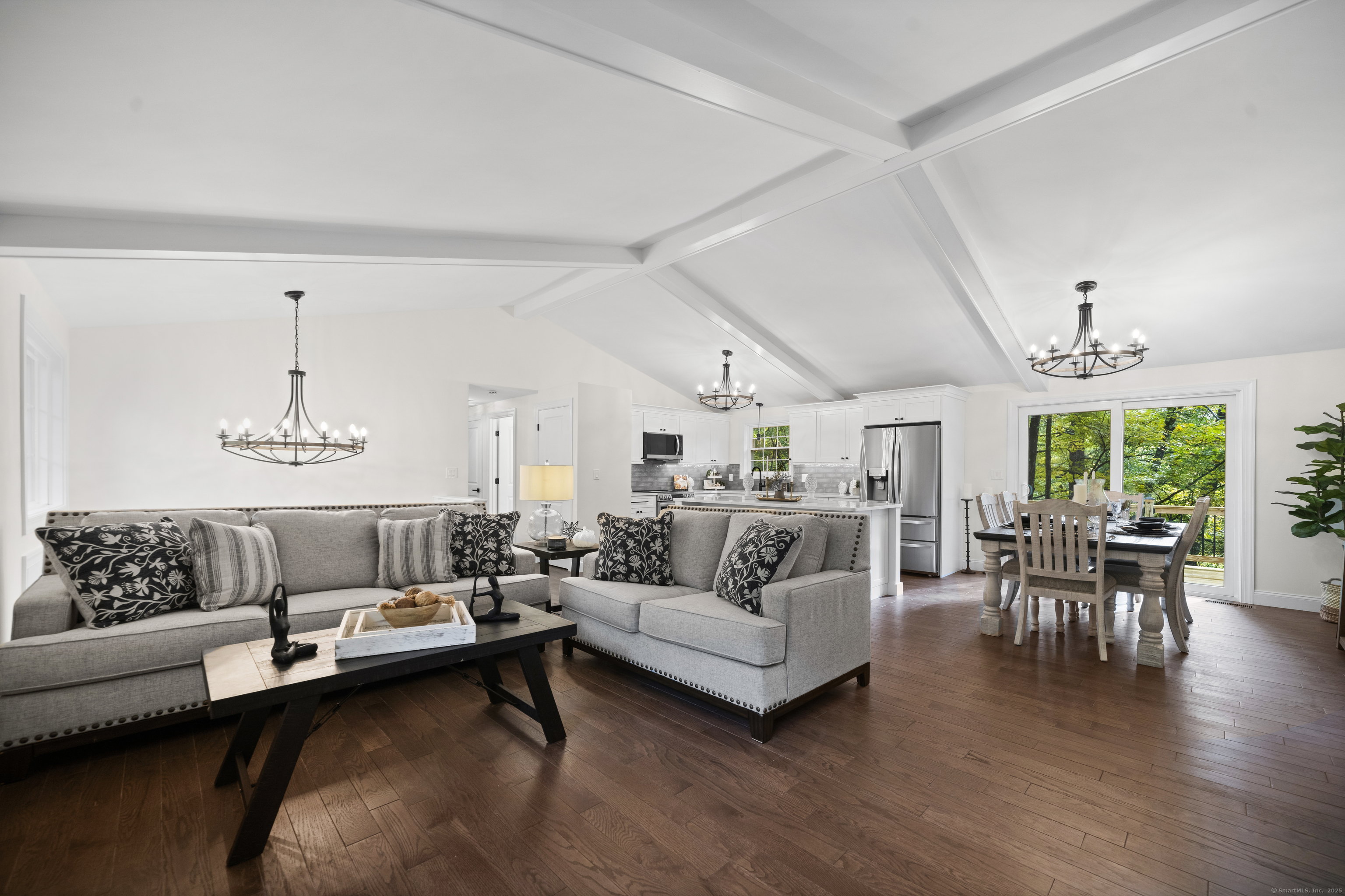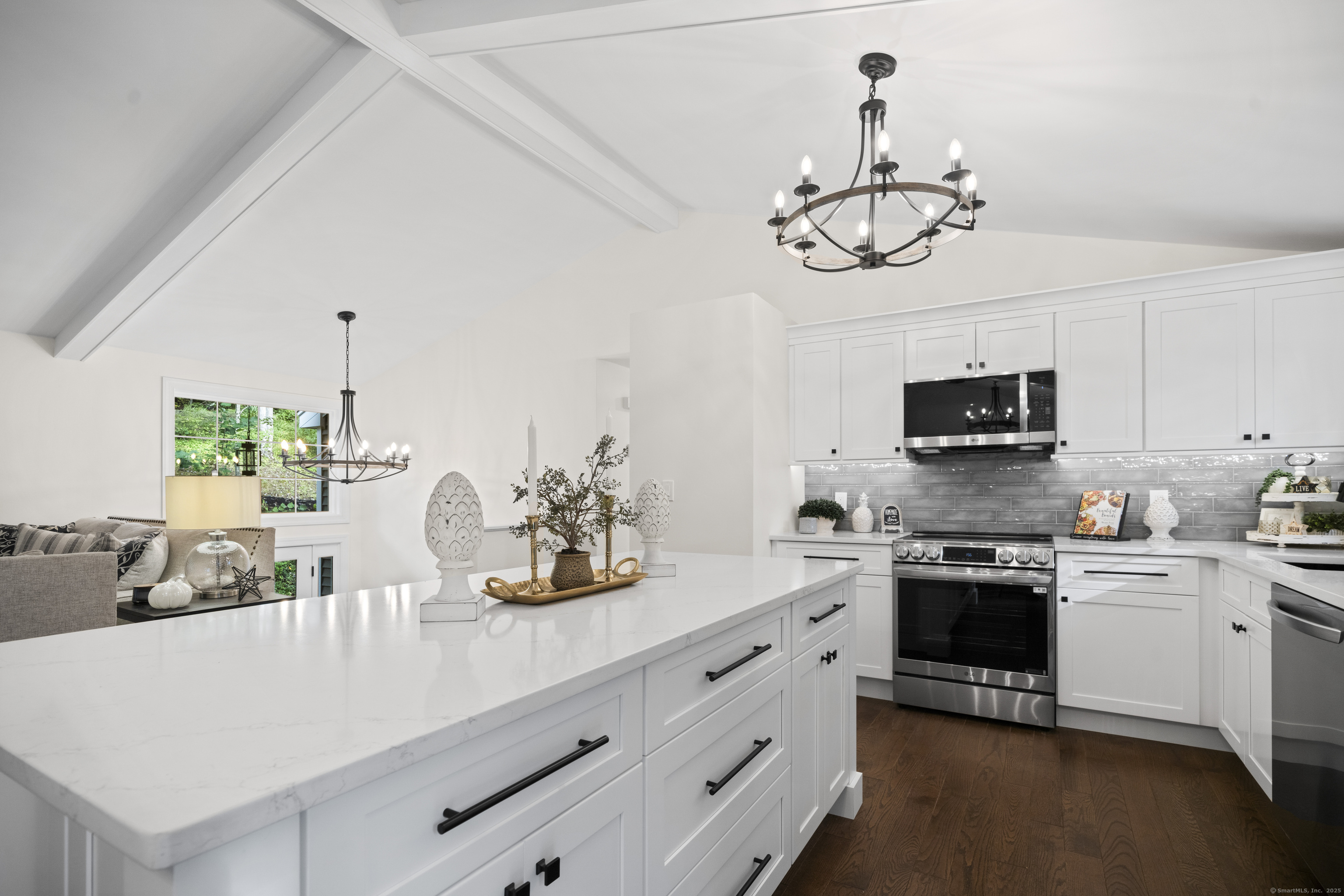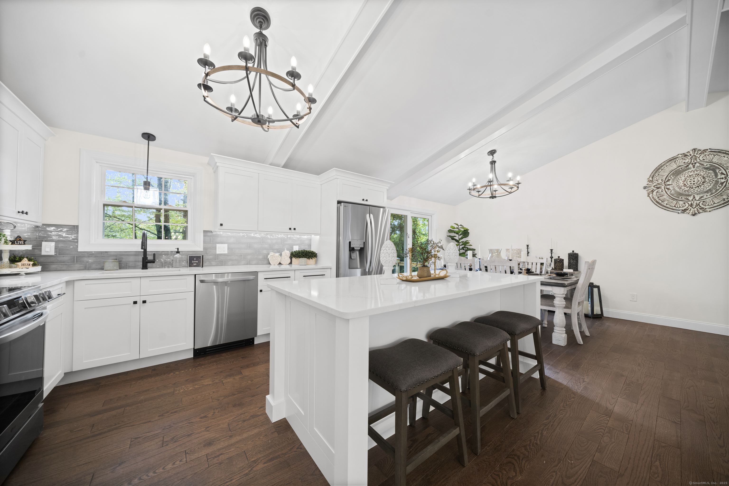 Welcome to 8 Crane Place, a beautiful home tucked away on a private cul-de-sac in Simsbury. This move-in ready property blends modern style with everyday comfort, offering the clean, fresh design you'd expect from an HGTV showcase. Step inside to find gleaming hardwood floors, soaring vaulted ceilings, and a bright, open layout filled with natural light. The kitchen features stylish finishes, sleek cabinetry, and updated appliances, making it both beautiful and functional. The main level offers three spacious bedrooms, including a primary suite with a private bath, plus the flexibility for a fourth bedroom to suit your needs. A versatile finished lower level adds even more options for a home office, playroom, or guest space. With 2.5 bathrooms throughout, every detail has been thoughtfully finished. Enjoy the outdoors with two decks, perfect for entertaining or relaxing in a private setting. Added peace of mind comes with city sewer service-no septic to worry about-and a newer HVAC system with central air, providing comfort and efficiency year-round. Set on a private lot surrounded by mature trees, this home offers peace and seclusion while still being close to Simsbury's award-winning schools, charming town center, shopping, dining, and outdoor recreation. Truly turnkey, this home has it all-modern updates, functional spaces, and timeless style-ready for you to move right in and enjoy.