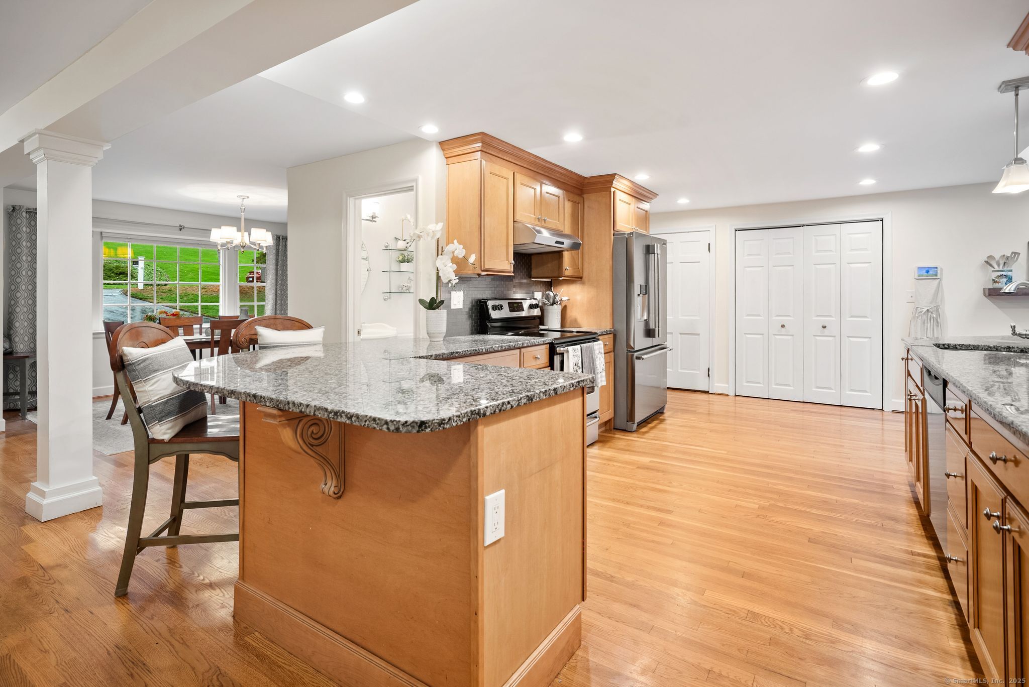 Nestled in one of West Hartford's most desirable neighborhoods, this beautifully maintained colonial offers the perfect blend of timeless character & thoughtful updates. This home has received numerous improvements, including remodeled kitchen and bathrooms, replacement windows, a high-efficiency natural gas furnace, central air, hot water heater, exterior freshly painted and more. The current owner converted the home from oil to natural gas for added convenience and efficiency. The 15'x25' living room is a true showstopper featuring a floor-to-ceiling stone fireplace, beamed ceilings, and rich hardwood floors. On the first floor you'll also find four additional rooms: A bedroom with custom built-ins and direct access to a delightful screened porch; a den, office or flexible space, which also opens to the porch, offering a perfect retreat; formal dining room and kitchen ideal for hosting large gatherings. Upstairs, three generously sized bedrooms with gleaming hardwood floors await. The owner's suite includes a private bath & dual closets. The heart of the home is the expansive kitchen, complete with a wine bar & prep sink, sliding glass doors to the rear deck and a laundry closet with washer & dryer (original laundry hookup available in the basement). From the screened porch to the sunlit deck this home provides multiple spaces for indoor-outdoor living. Lovingly maintained & thoughtfully updated, it's ready to impress even the most discerning buye