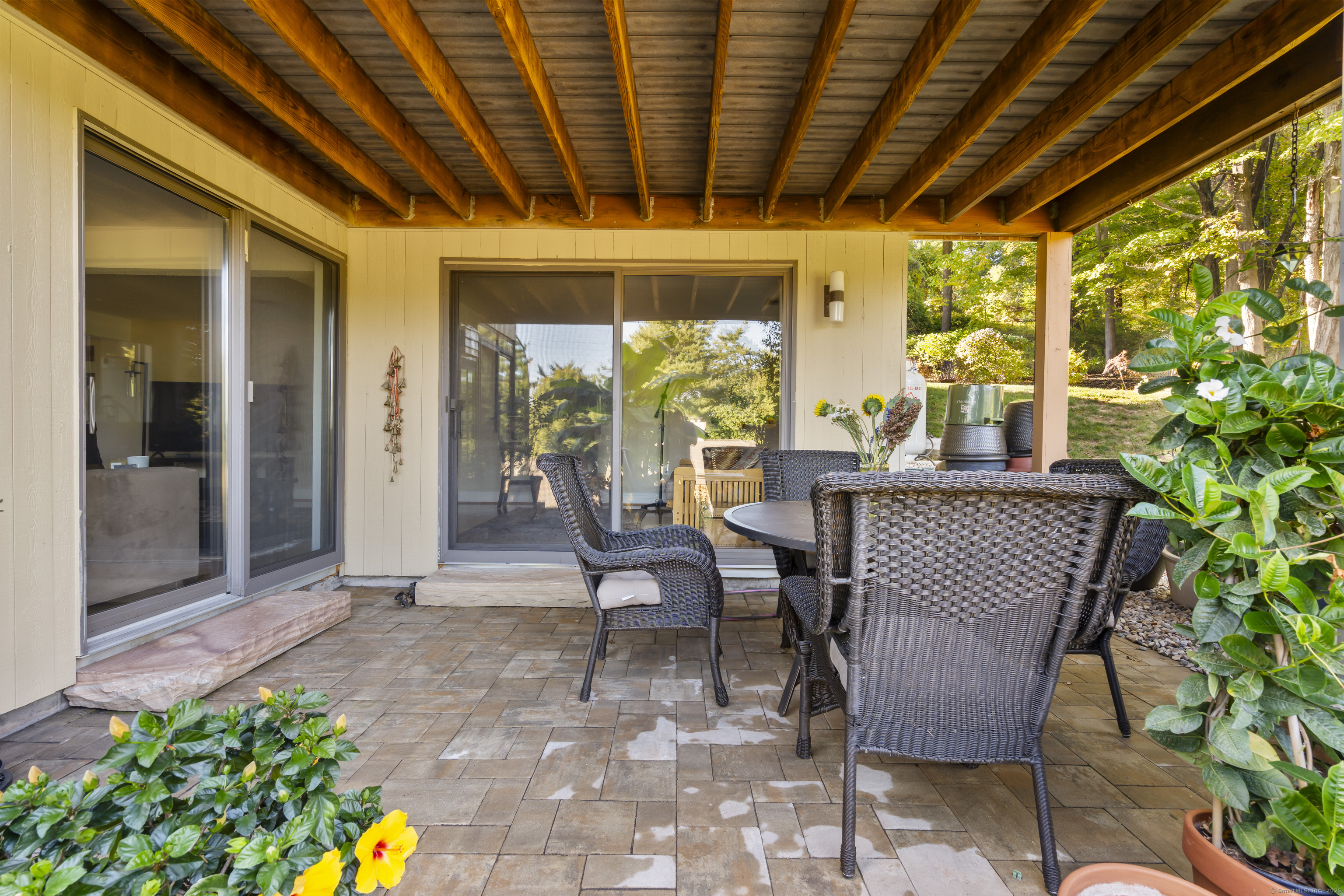 This unique and stunning end unit located in the picturesque Balbrae complex epitomizes luxury living! This unit boasts spectacular views and is flooded with natural light! The main level offers a gorgeous eat-in kitchen, formal dining room, large fireplaced living room, two bedrooms, two full bathrooms and a laundry room. The gourmet kitchen has a tremendous amount of beautiful cabinets, granite countertops, stainless steel appliances, a wall oven, a gas cooktop and hood. The first full bathroom was recently added and is of spa like quality and layout. The primary bedroom and primary bathroom are both very chic and very generous in size. The hardwood floors are truly gleaming and you will find beyond generous closet space throughout the unit. The rear deck offers fabulous views and is accessible through the dining and living rooms. The lower level features an exquisite wine cellar, an exceptional greenhouse, a second kitchen, a third bedroom, one and a half bathrooms, and an enormous family room that exits out to the lovely patio. Move right on into this truly one of a kind gem!