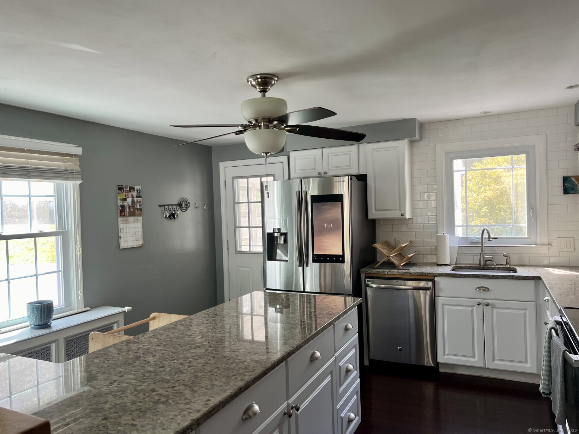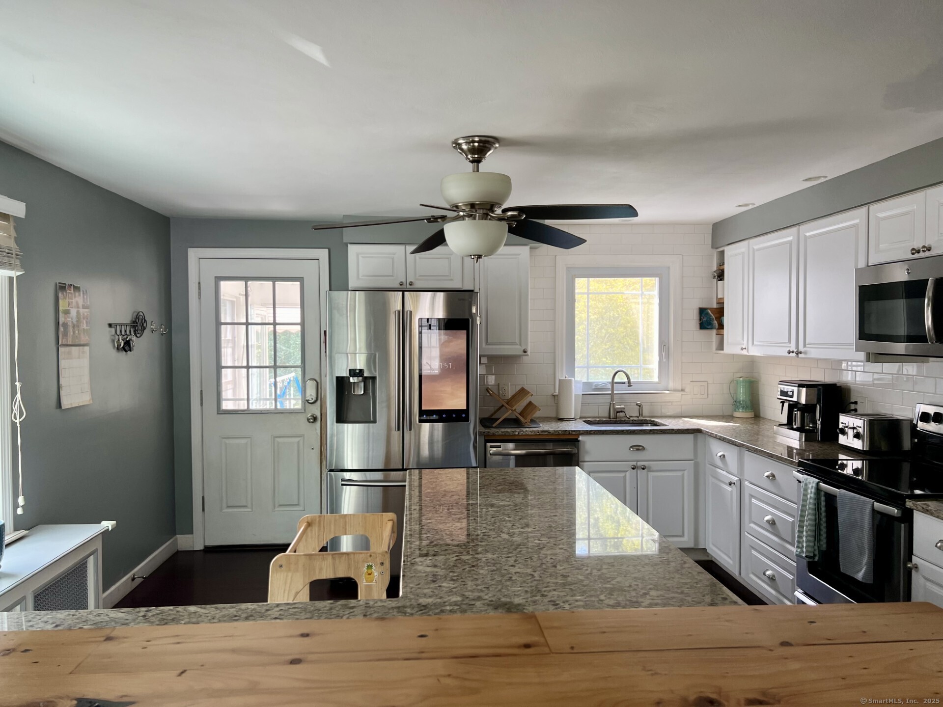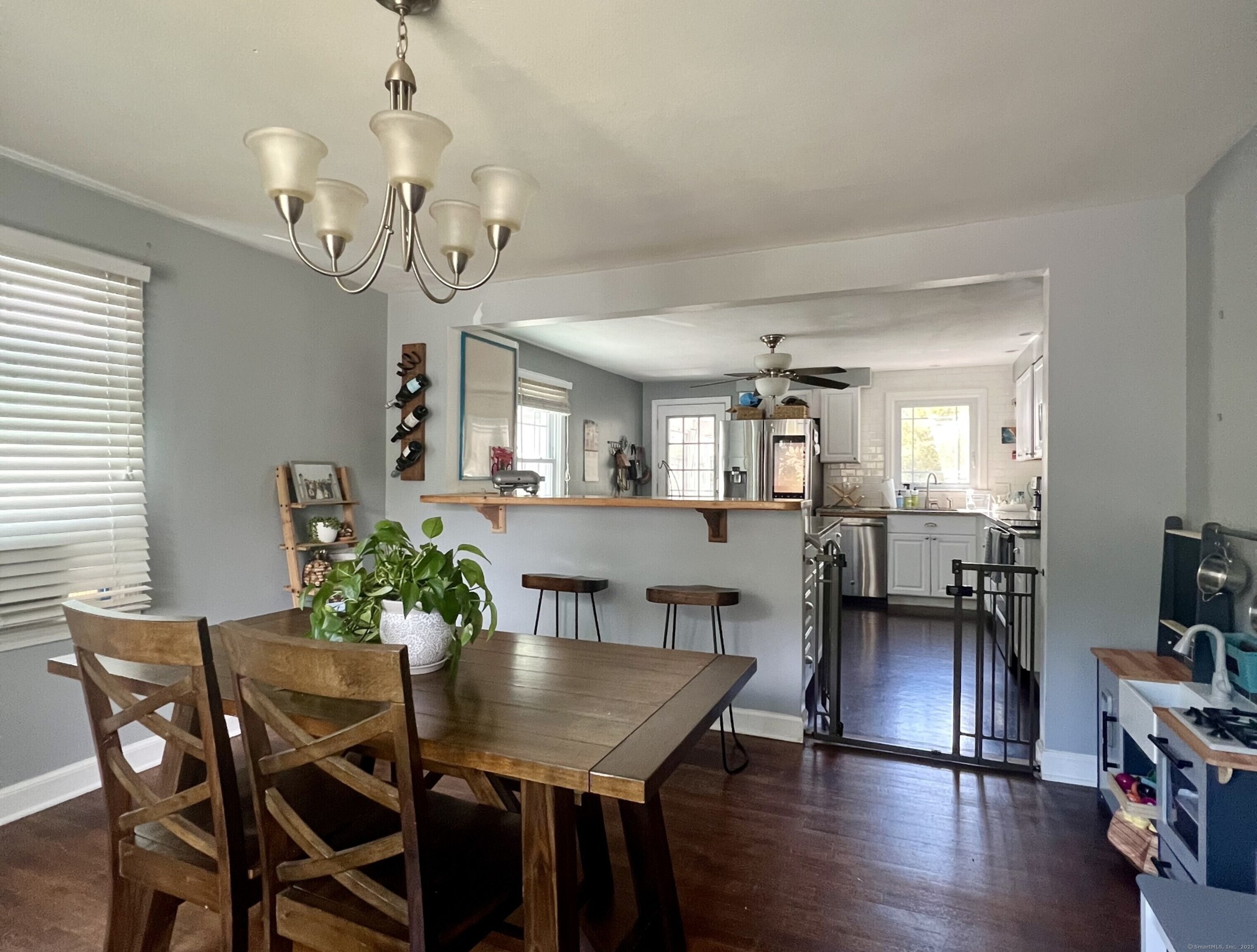 This charming and thoughtfully updated 3 bedroom cape is located close to the center of Wallingford, within walking distance to schools, shopping, restaurants, the library, and Choate Rosemary Hall. The main floor features an open and bright kitchen and dining room with stainless steel appliances, a breakfast bar, and plenty of cabinet space. A large living room, a mudroom leading to the back yard, one bedroom and a full bathroom complete this level. Upstairs are two spacious bedrooms and a half bath. Recent updates include new front steps and walkway, new chimney, remodeled 1st floor bathroom, and new flooring in the upstairs bedrooms. The backyard is also fully fenced in and perfect for dogs or pets.