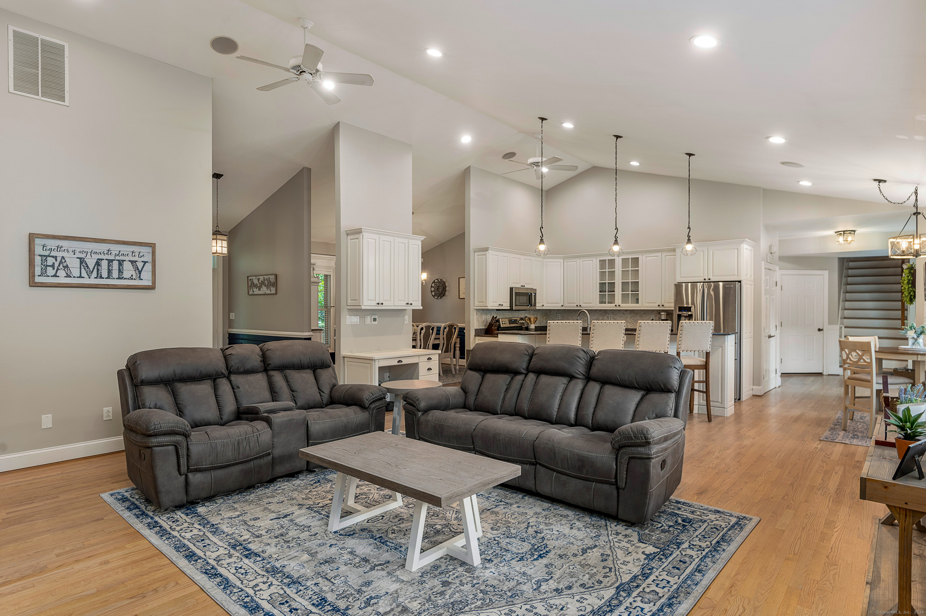 This custom built 4,500+ sq. ft. Ranch/Contemporary home on a 1.93-acre lot offers a truly unique blend of luxury & comfort in a private setting. Designed with an open floor plan, it features hardwood floors, soaring cathedral ceilings, & impressive architectural details throughout. The gourmet kitchen finished w/tile, granite, SSl appliances, & a breakfast bar, opens seamlessly to a 30' x 20' light-filled living room-an extraordinary space for both relaxing & entertaining. Step outside to a large rear deck overlooking an in-ground pool w/multiple seating areas. The extended paver-&-fieldstone patio includes a spacious gazebo, creating the perfect outdoor retreat. Inside, you'll find 4 bedrooms, including a primary suite w/tranquil view, plus 3 full granite-&-tile baths & a half baths. The finished basement expands the living space w/a second kitchen, office/bedroom, full bath, recreation room, & a pool bar. Additional highlights include Detached 2-bay garage w/oversized door & 2nd-floor storage; Private baseball field w/backstop; fresh interior paint, fended-in backyard, upgraded HVAC sys, new carpeting in bedrooms & basement, rear deck remodel, hardwood flooring refinished, solar system, furnace/tankless hot water heater, newer pool pump/heater/filtration system, kitchen cabinetry refinished, primary bedroom flooring, etc. Exceptionally maintained inside & out. This home is one-of-a-kind-don't miss the opportunity to make it yours!