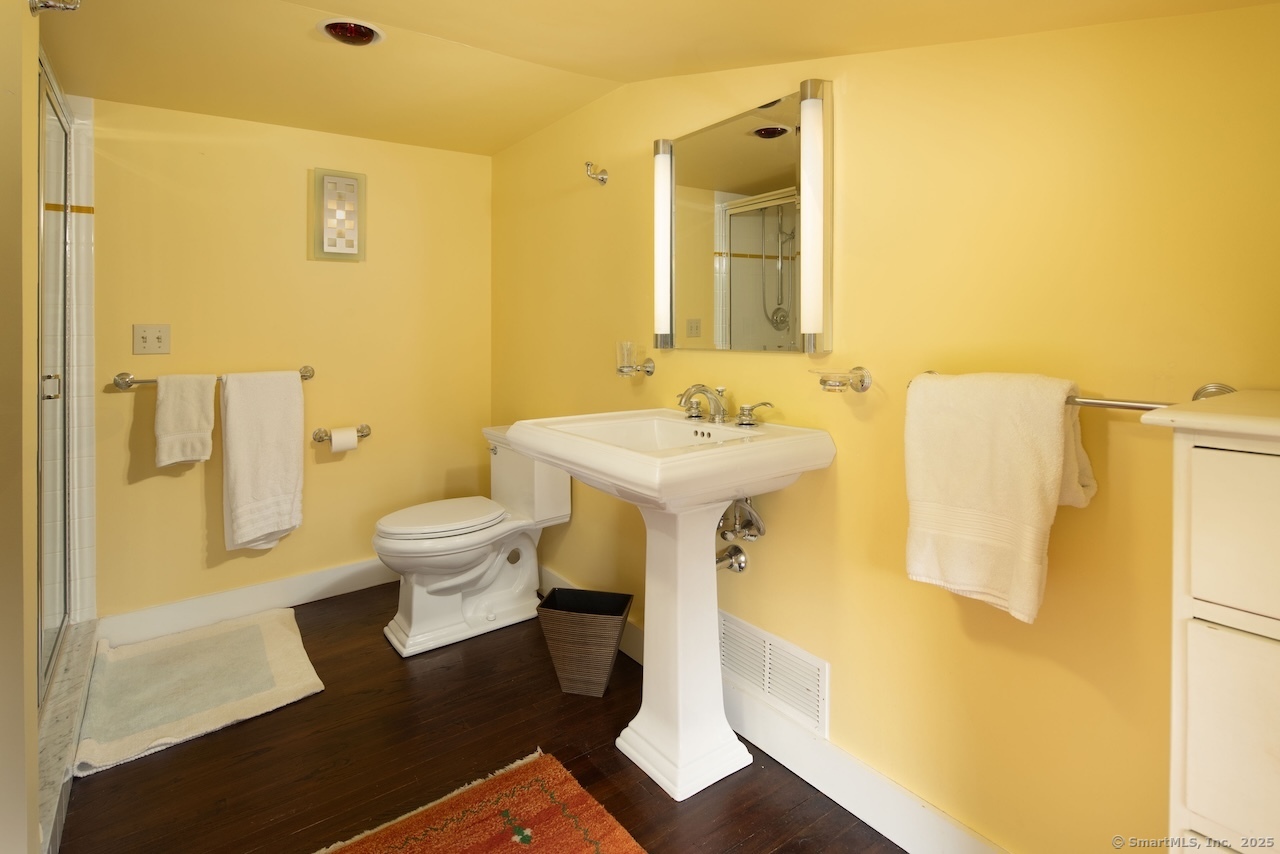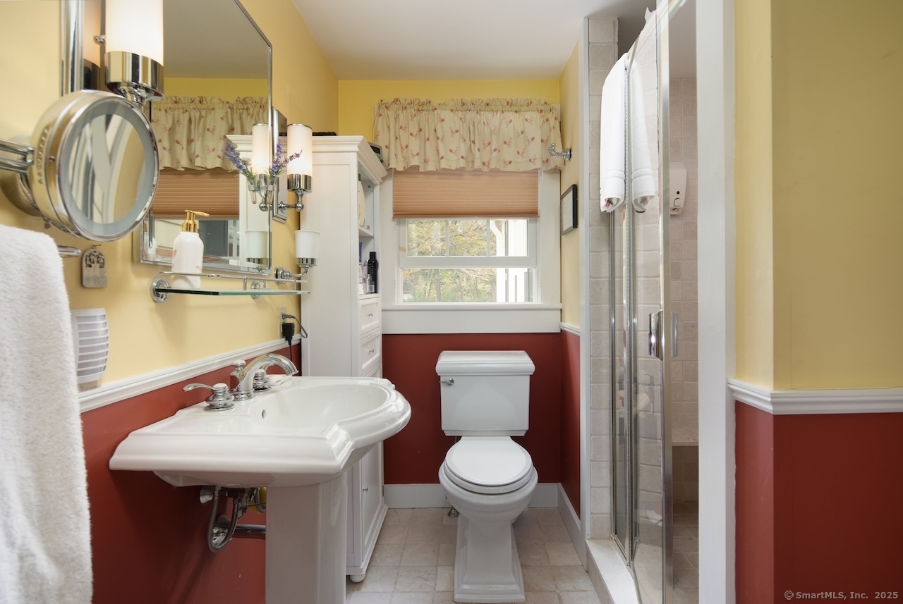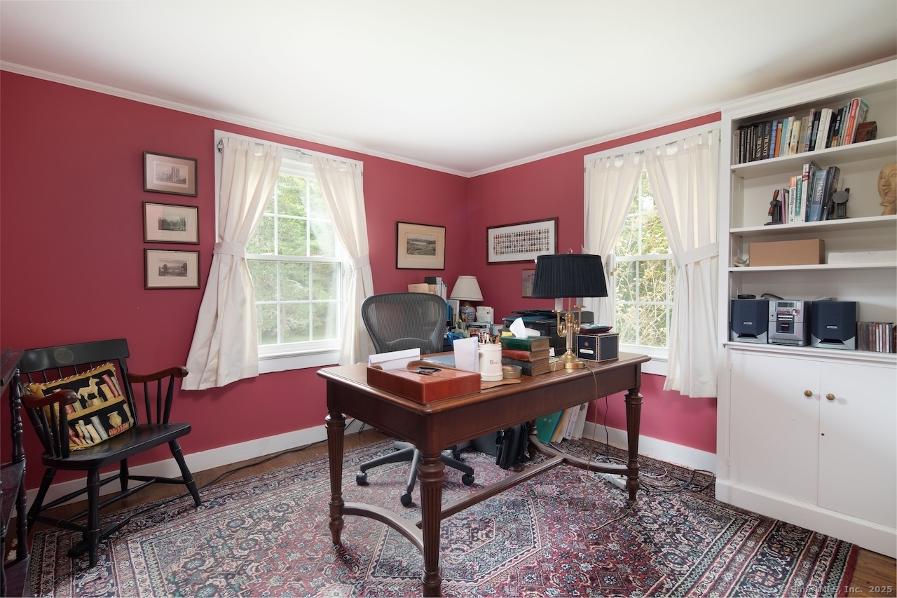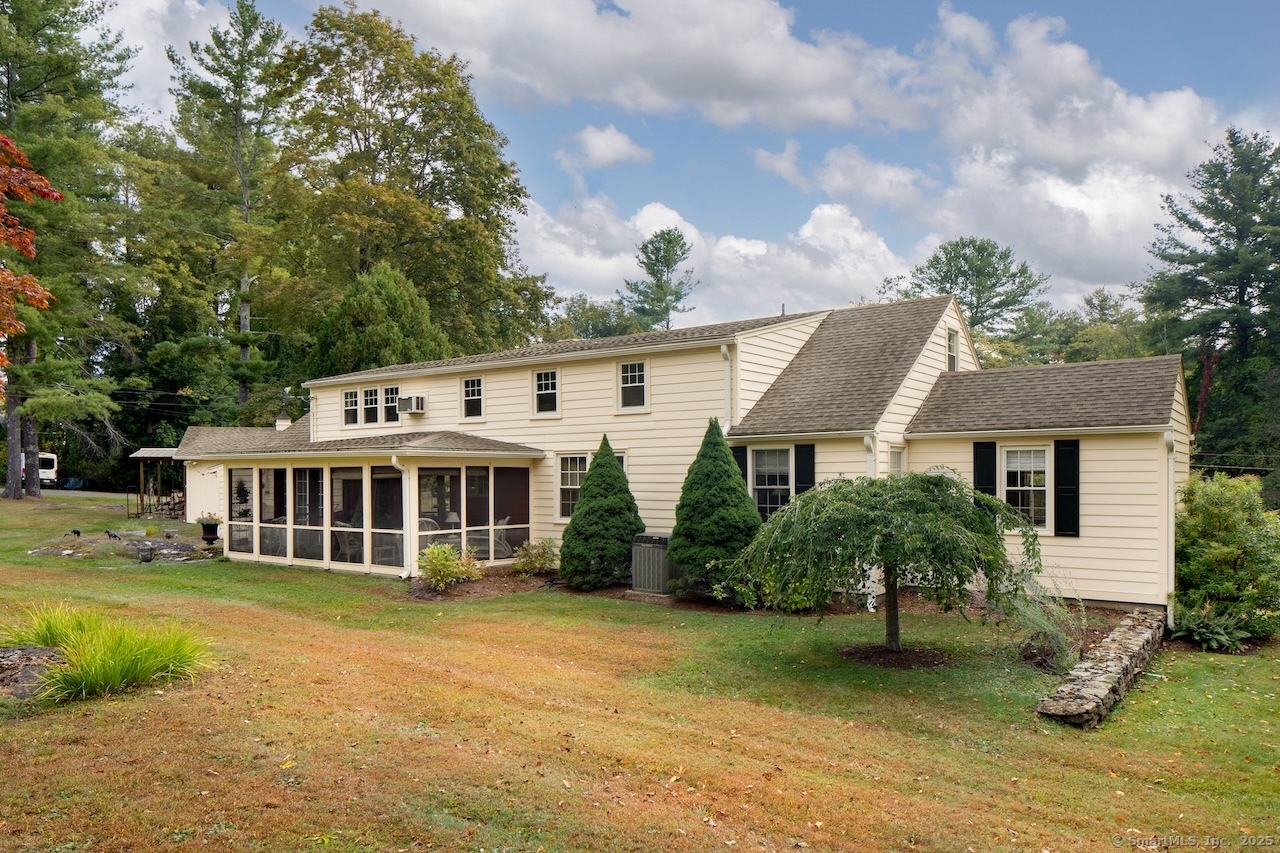This attractive residence, positioned on 1.3 verdant acres off Wells Hill Road, creates an idyllic corner setting distinguished by its exquisite gardens and abundant natural light. The property exemplifies gracious Lakeville living with its thoughtful blend of indoor and outdoor spaces. A dramatic vaulted ceiling crowns the light-filled living room, where a wood-burning fireplace serves as the heart of the home. The second-floor open balcony overlooks this magnificent space, while the well-appointed kitchen flows seamlessly between a cozy breakfast room and formal dining room. A screened porch extends the living area into the natural surroundings. The primary bedroom suite occupies the first floor, accompanied by a full bathroom and flexible office space - perfect for single-level living. Upstairs, two additional bedrooms share a full bathroom and are complemented by an inviting sitting room, creating an ideal private retreat. Meticulously maintained gardens embrace this Northwest Connecticut haven, while a detached garage and shed provide practical storage solutions. Positioned in a sought-after Lakeville neighborhood, this property offers the perfect balance of privacy and accessibility in the heart of Litchfield County.