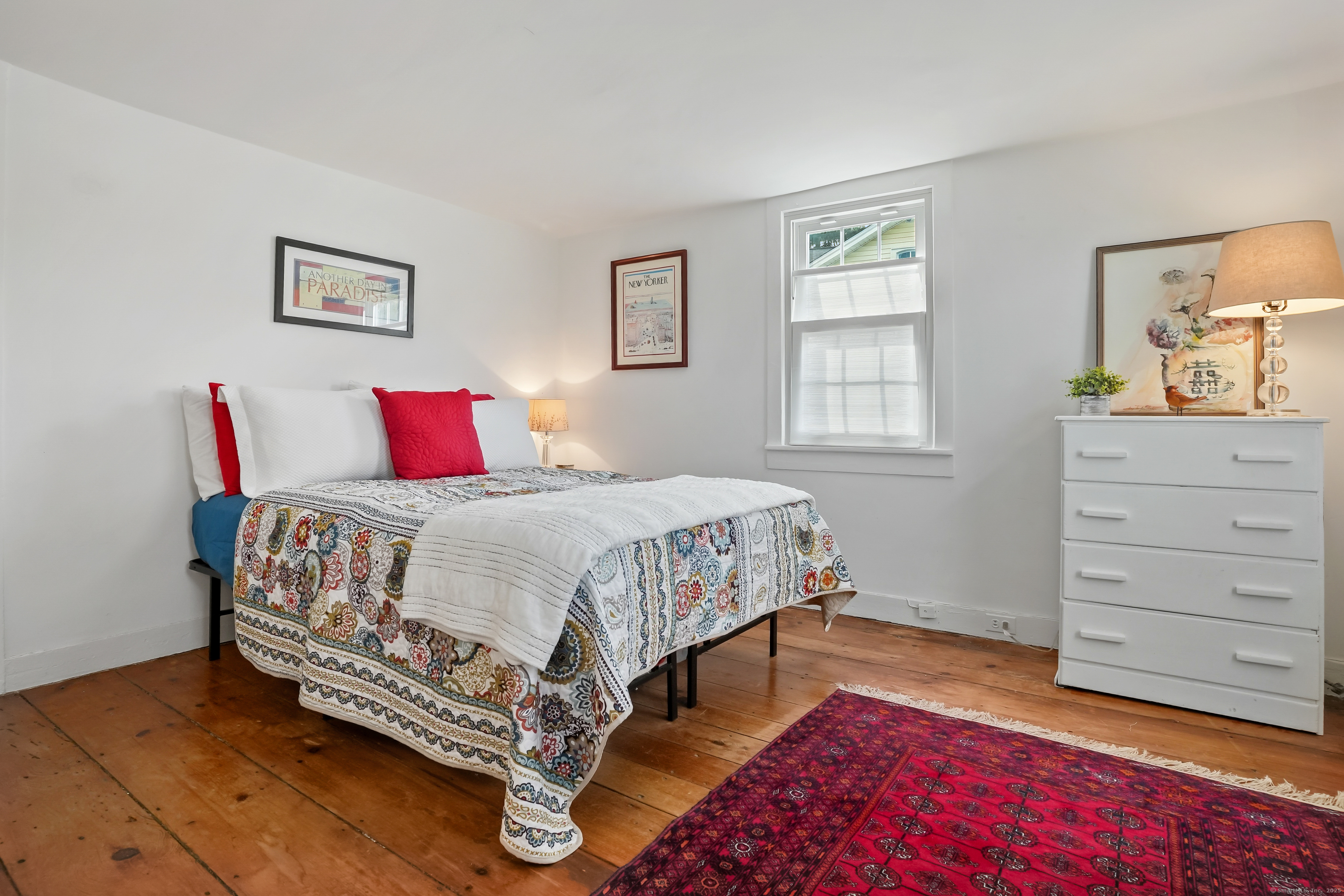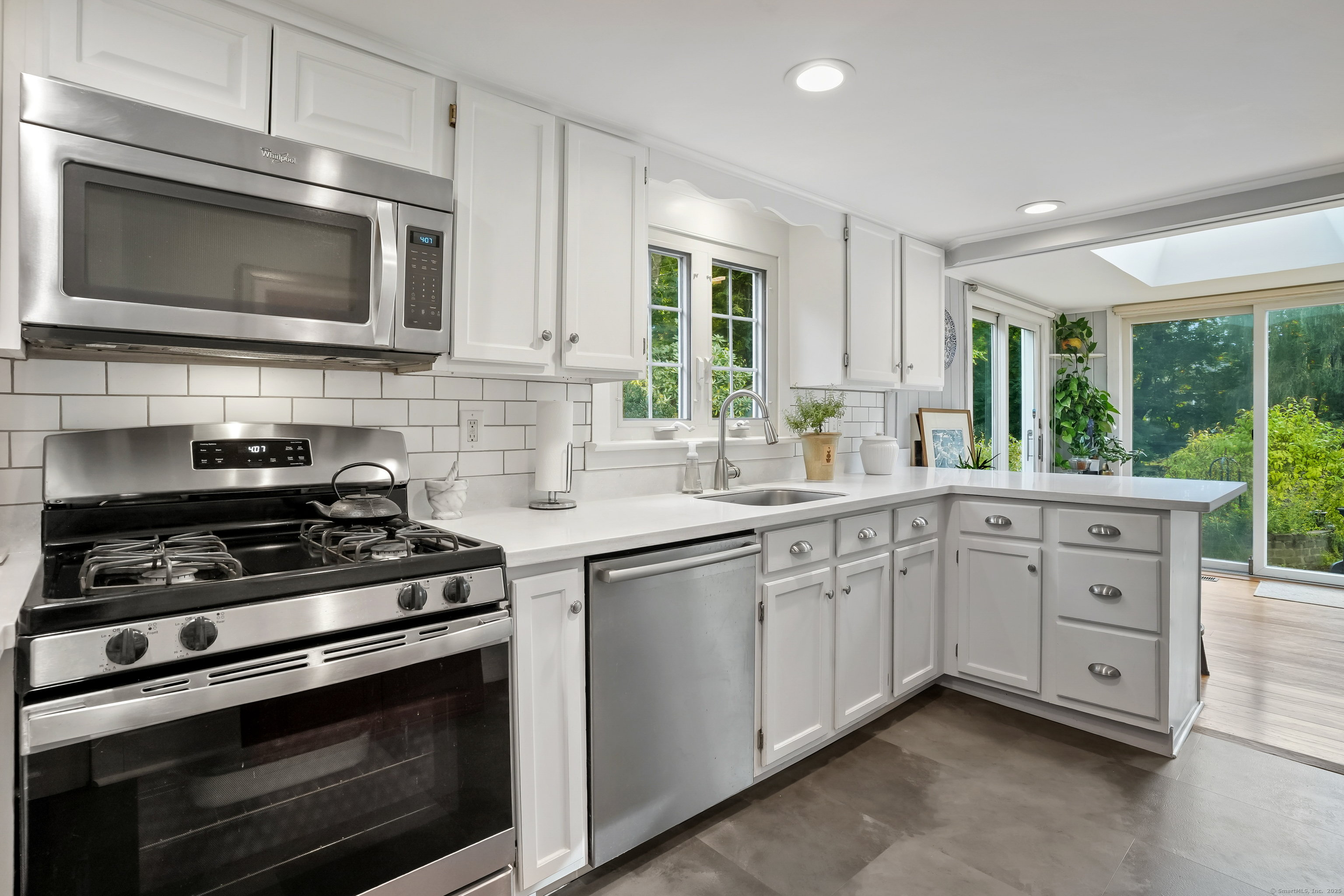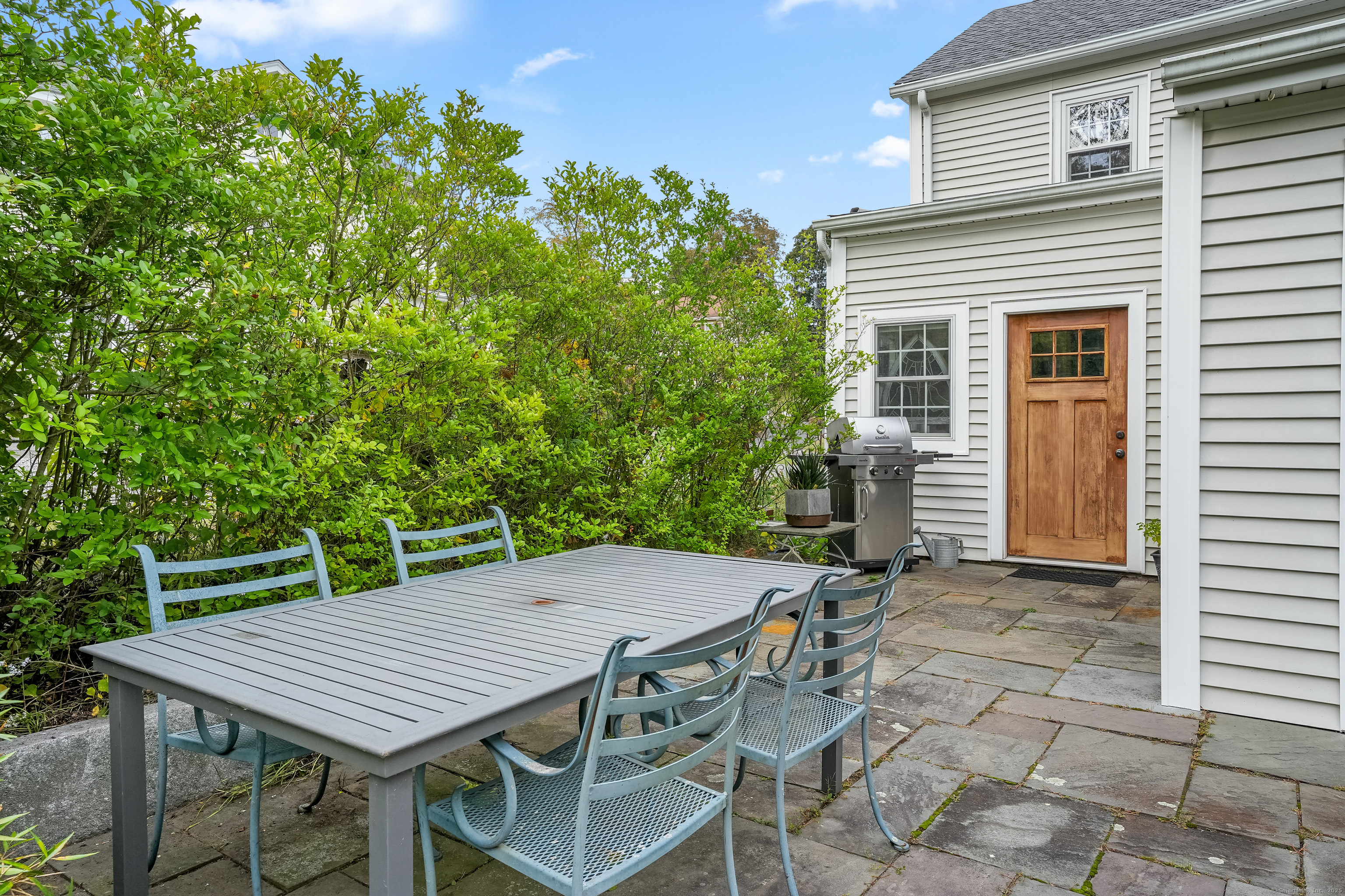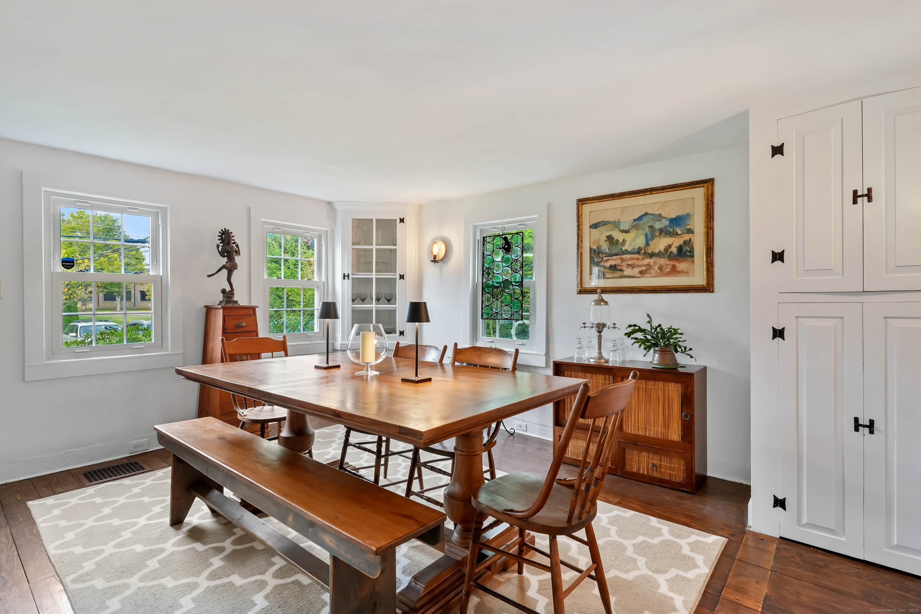 Charming in-town Bethel colonial with city water, gas and sewer. Large .42-acre lot with private backyard and lush gardens. The living room has a brick fireplace and built in bookcases with a main floor laundry/mudroom combo accessed through French doors. A separate dining room for hosting holiday feasts also has wide-board floors and built-ins. There is an updated kitchen with stainless appliances, solid surface countertops and a breakfast bar. The adjacent sunroom has skylights and sliding doors on 3 sides framing the view of the private backyard. Upstairs are 3 bedrooms and a full bathroom featuring a clawfoot soaking tub, as well as a separate tile shower. Storage is abundant in the walk-up attic. You will appreciate the large bluestone patio for hosting BBQ's and fall firepit gatherings. This private back yard has a large shed and gardens bursting with colorful perennials, shrubs, herb, fruit trees as well as a flowing brook. This home has vinyl siding, Central AC and an updated furnace, as well as extra insulation. Off-street parking for 4 cars. Short walk to downtown Bethel with restaurants, grocery, movie theatre and Metro-North train to NYC. Local bus stop is around the corner. Owner/Agent.