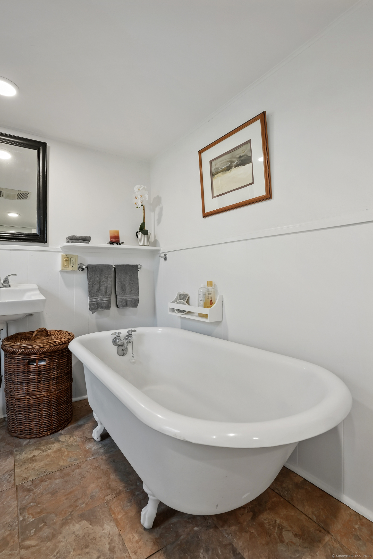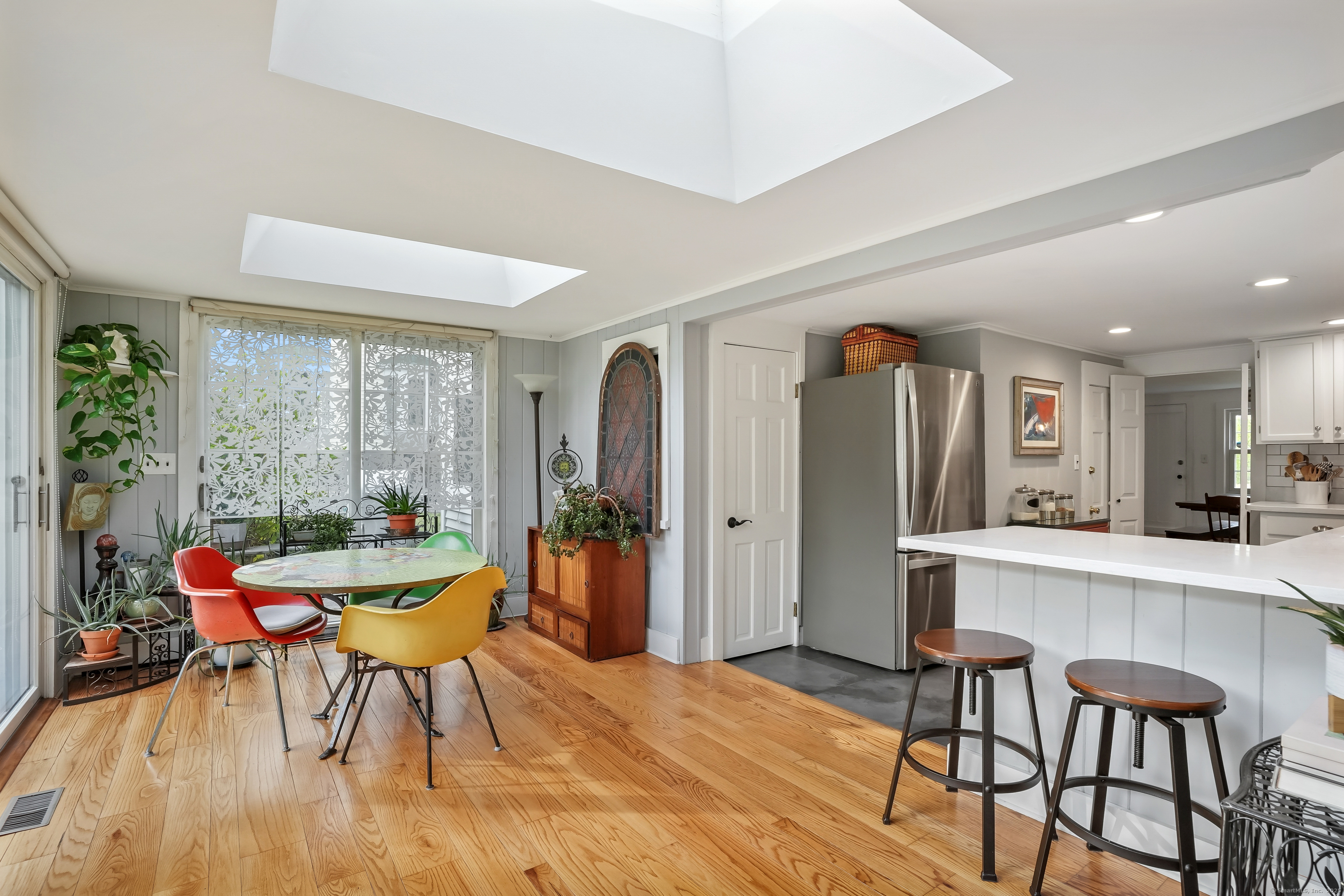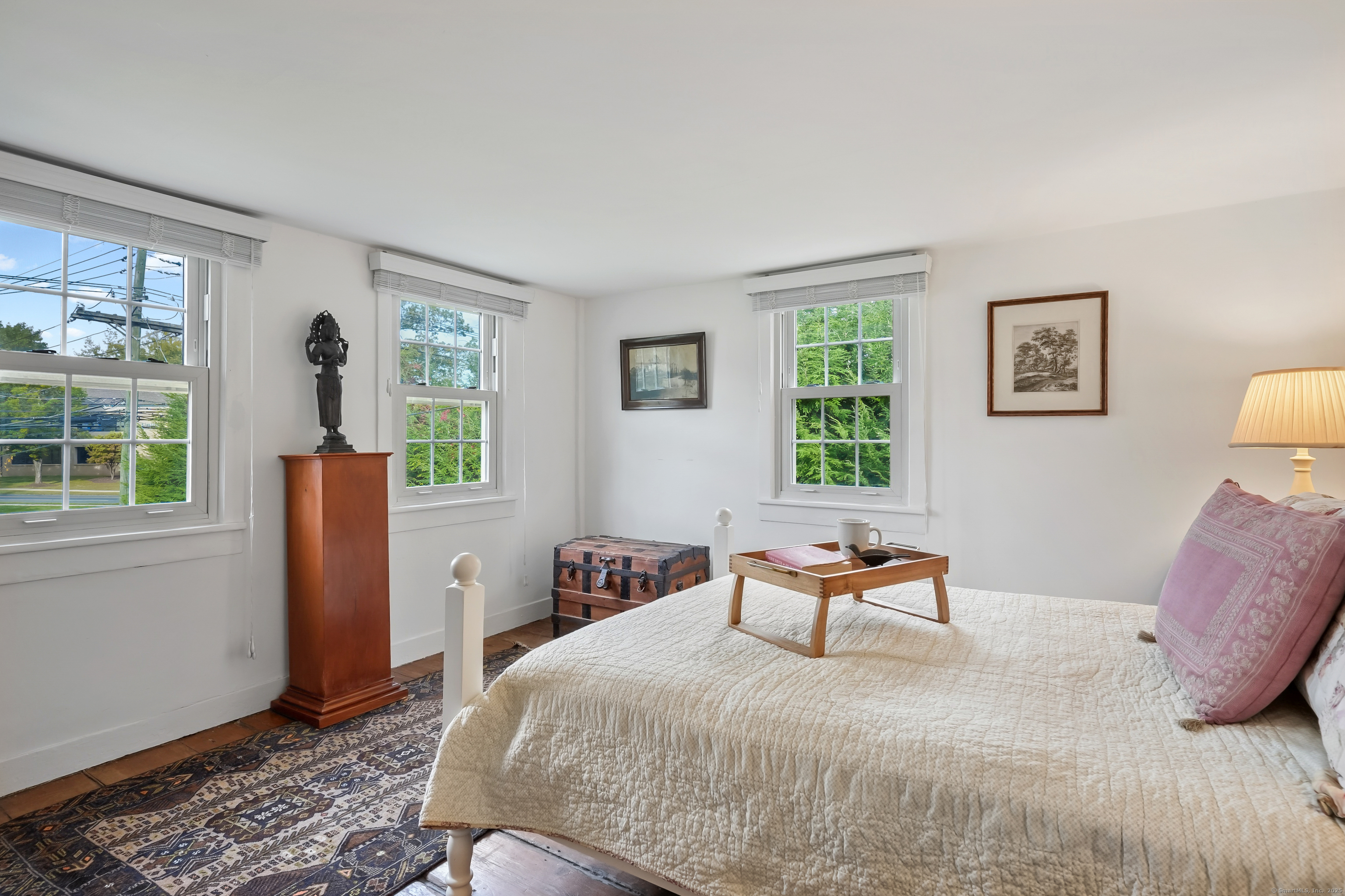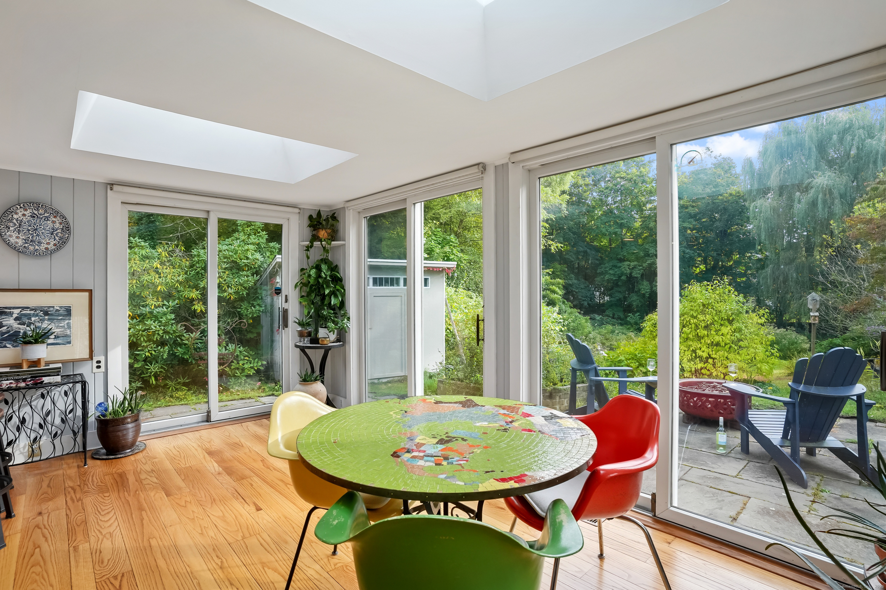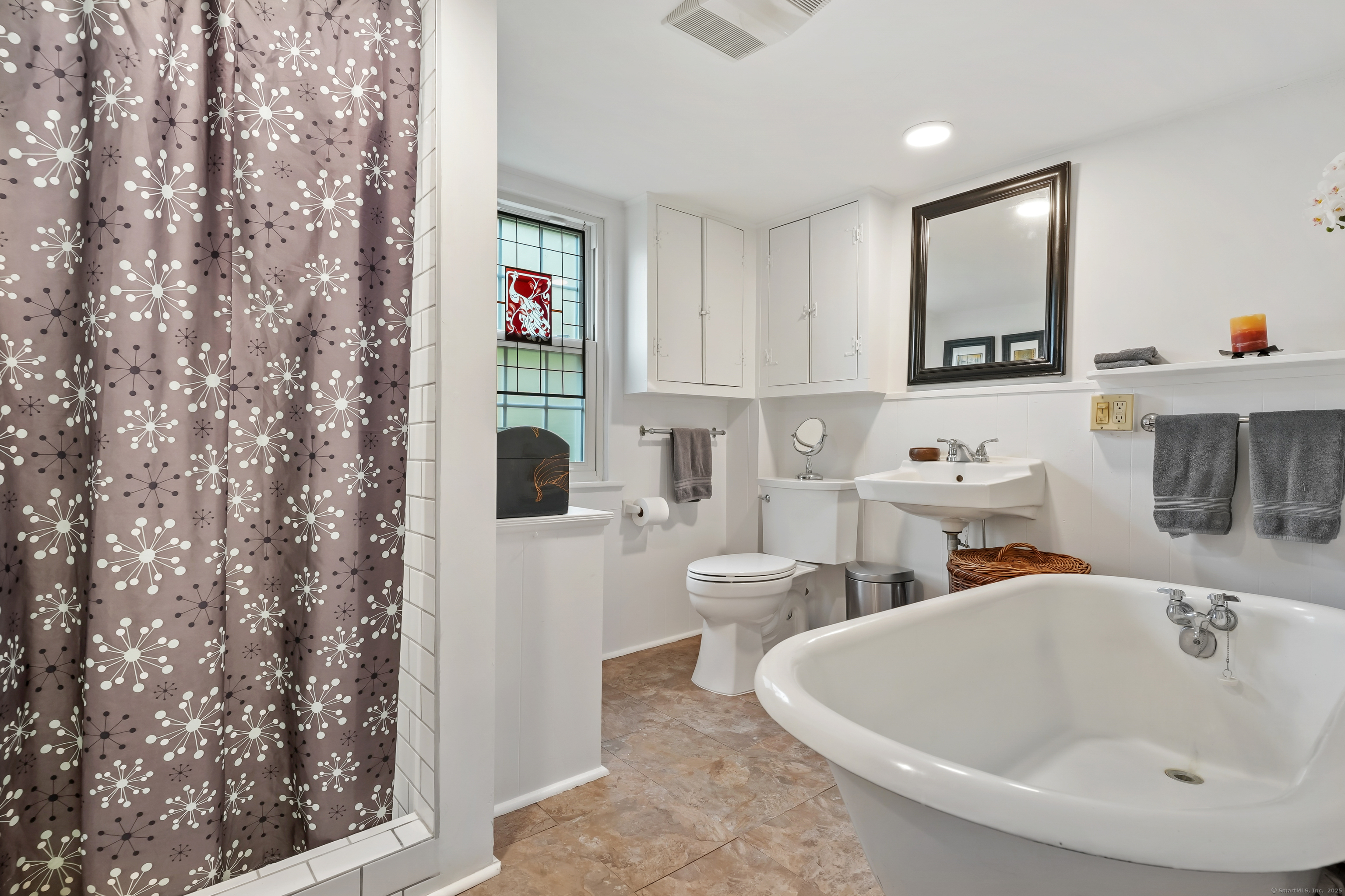 Charming in-town Bethel colonial with city water, gas and sewer. Large .42-acre lot with private backyard and lush gardens. The living room has a brick fireplace and built in bookcases with a main floor laundry/mudroom combo accessed through French doors. A separate dining room for hosting holiday feasts also has wide-board floors and built-ins. There is an updated kitchen with stainless appliances, solid surface countertops and a breakfast bar. The adjacent sunroom has skylights and sliding doors on 3 sides framing the view of the private backyard. Upstairs are 3 bedrooms and a full bathroom featuring a clawfoot soaking tub, as well as a separate tile shower. Storage is abundant in the walk-up attic. You will appreciate the large bluestone patio for hosting BBQ's and fall firepit gatherings. This private back yard has a large shed and gardens bursting with colorful perennials, shrubs, herb, fruit trees as well as a flowing brook. This home has vinyl siding, Central AC and an updated furnace, as well as extra insulation. Off-street parking for 4 cars. Short walk to downtown Bethel with restaurants, grocery, movie theatre and Metro-North train to NYC. Local bus stop is around the corner. Owner/Agent.