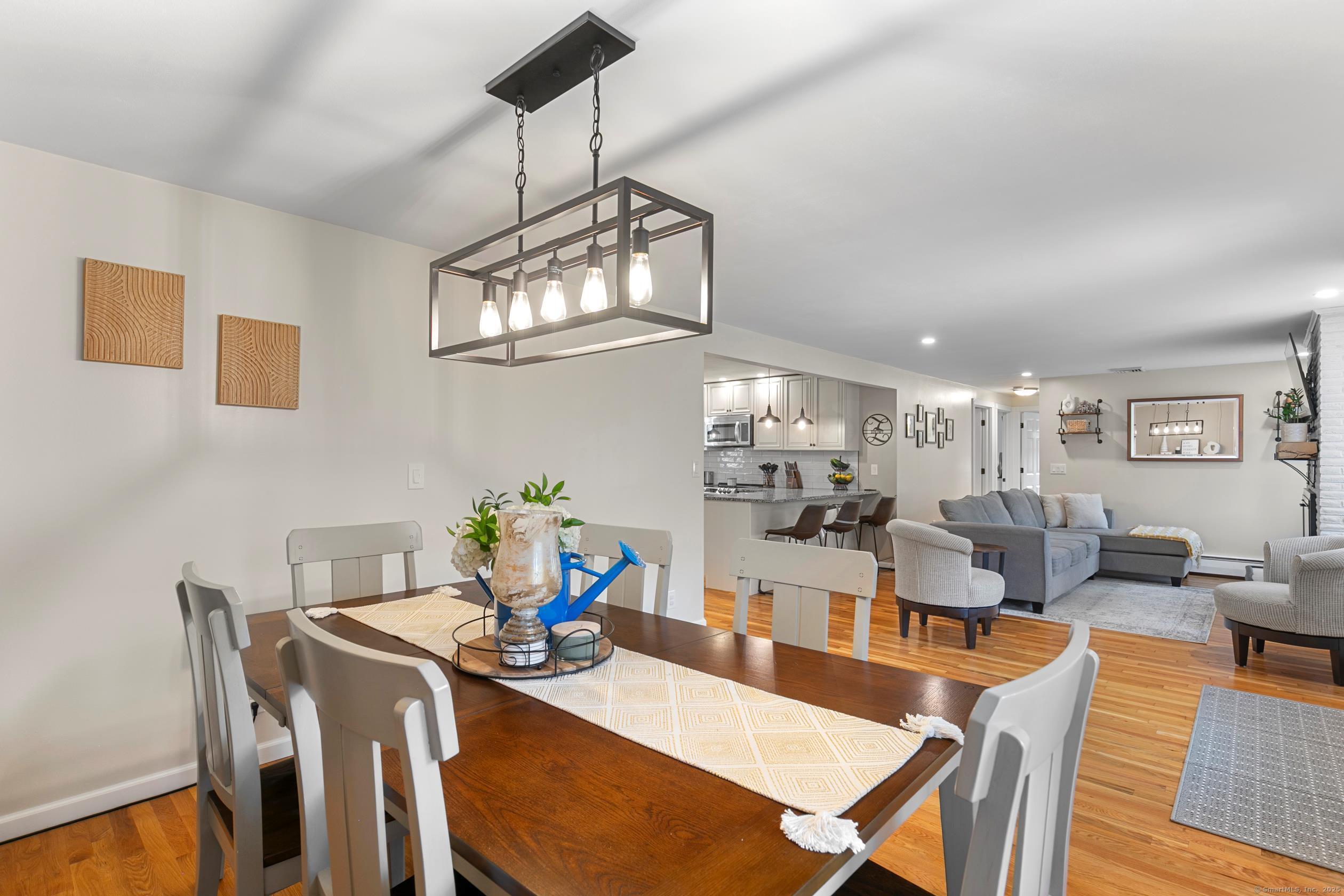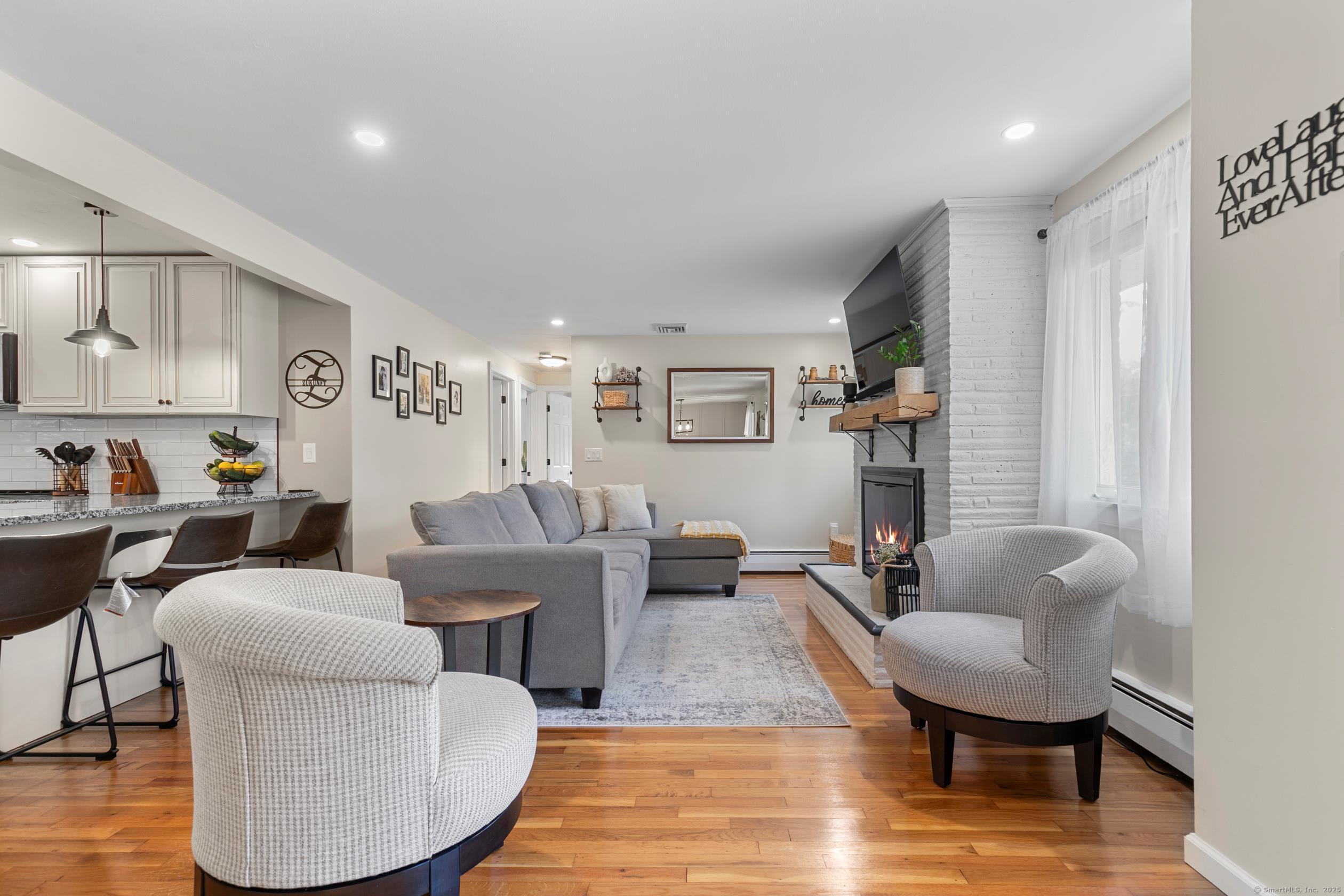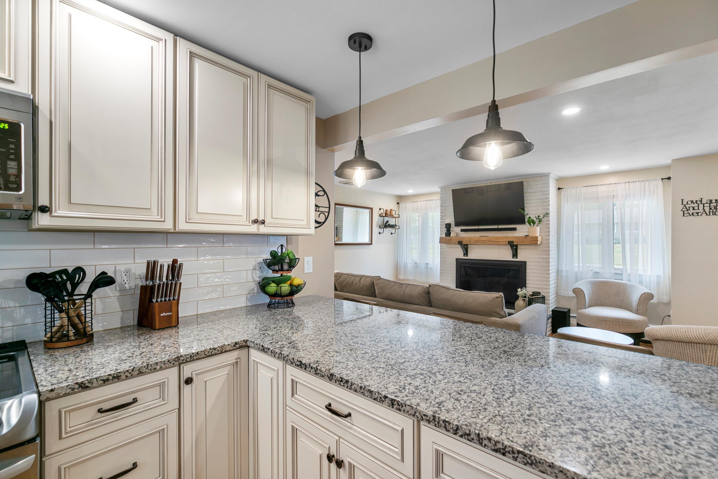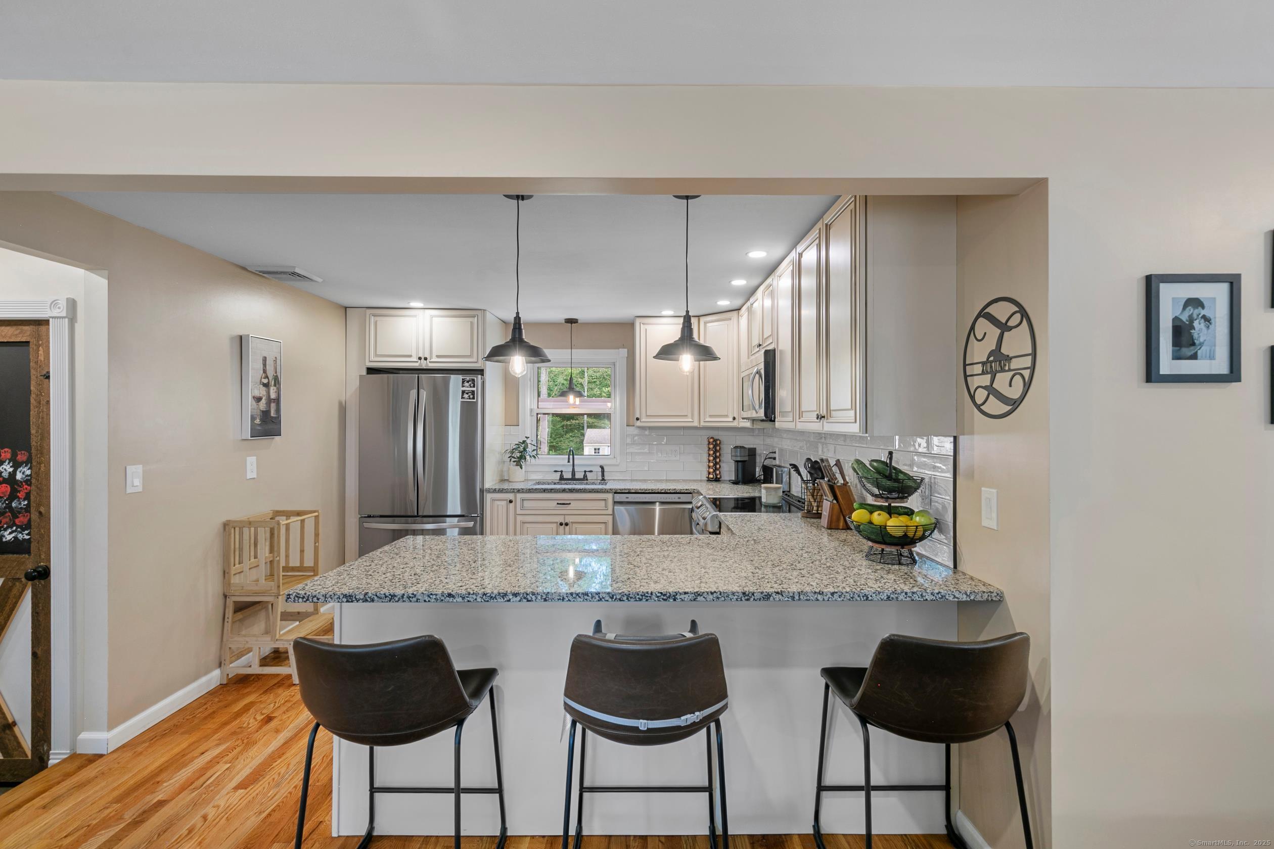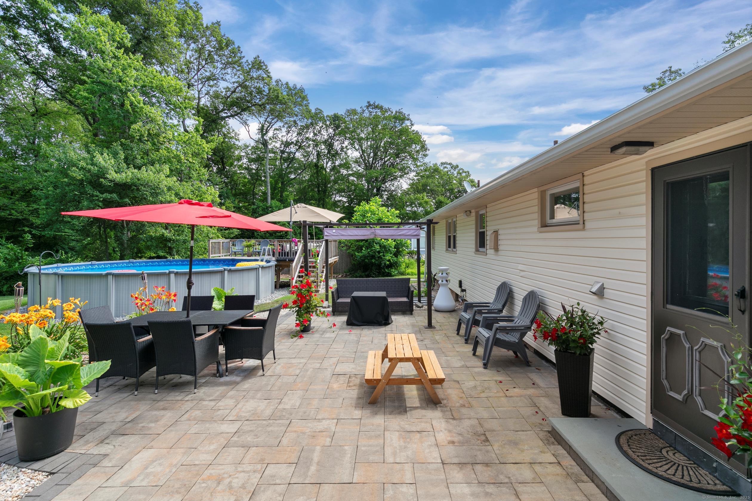 Welcome to this completely remodeled, meticulously maintained ranch offering true one-level living! Step inside to a gorgeous custom kitchen with granite countertops, beautiful cabinetry, brand-new stainless steel appliances, and a breakfast bar that flows seamlessly into the open floor plan. The spacious living room with a cozy fireplace and the large dining area make this home perfect for entertaining. The main level features 3 generously sized bedrooms, an updated full bathroom, and the convenience of a completely remodeled guest bath along with gorgeous hardwood floors throughout. Let's not forget the fabulous mudroom with a custom bench and storage cabinet that leads to the attached one-car garage. Outside, enjoy the beautiful backyard with a generous sized paver patio, a new above-ground pool with deck and professionally landscaping throughout with plenty of space for outdoor fun. Additional highlights include a brand-new driveway, New oil tank, hot water holding tank and added insulation in the basement & attic. This move-in ready home combines comfort, style, and convenience-don't miss it! Highest and best due October 5 by 6 PM