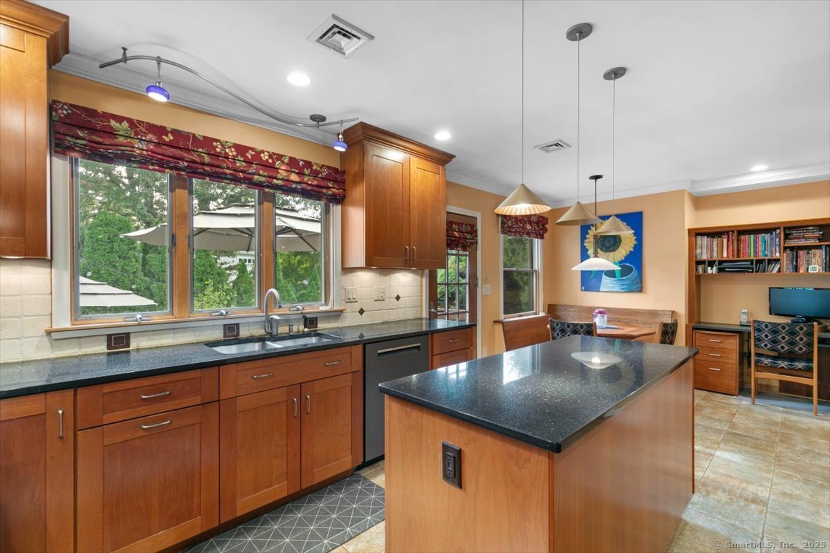 Spring Glen! Quality constructed by Maselli in a prime quiet location is this spacious updated four level, four-bedroom 3 bath steel beam constructed split level home. The entrance foyer leads into the Living Room with fireplace and large picture window. South facing Dining Room gets flooded with light. Remodeled fully equipped eat in kitchen with granite counters and built in desk. Fantastic large main level family room with fireplace and has walls of windows that overlook the landscaped lot. Three upper-level bedrooms includes the primary bedroom with updated stall shower bath. Lower level features the fourth bedroom, full bath, den and second kitchen area. This area would make a perfect in law arrangement. Central air. Cast iron baseboard multi-zone heat. Two car garage. Hot Tub and more.