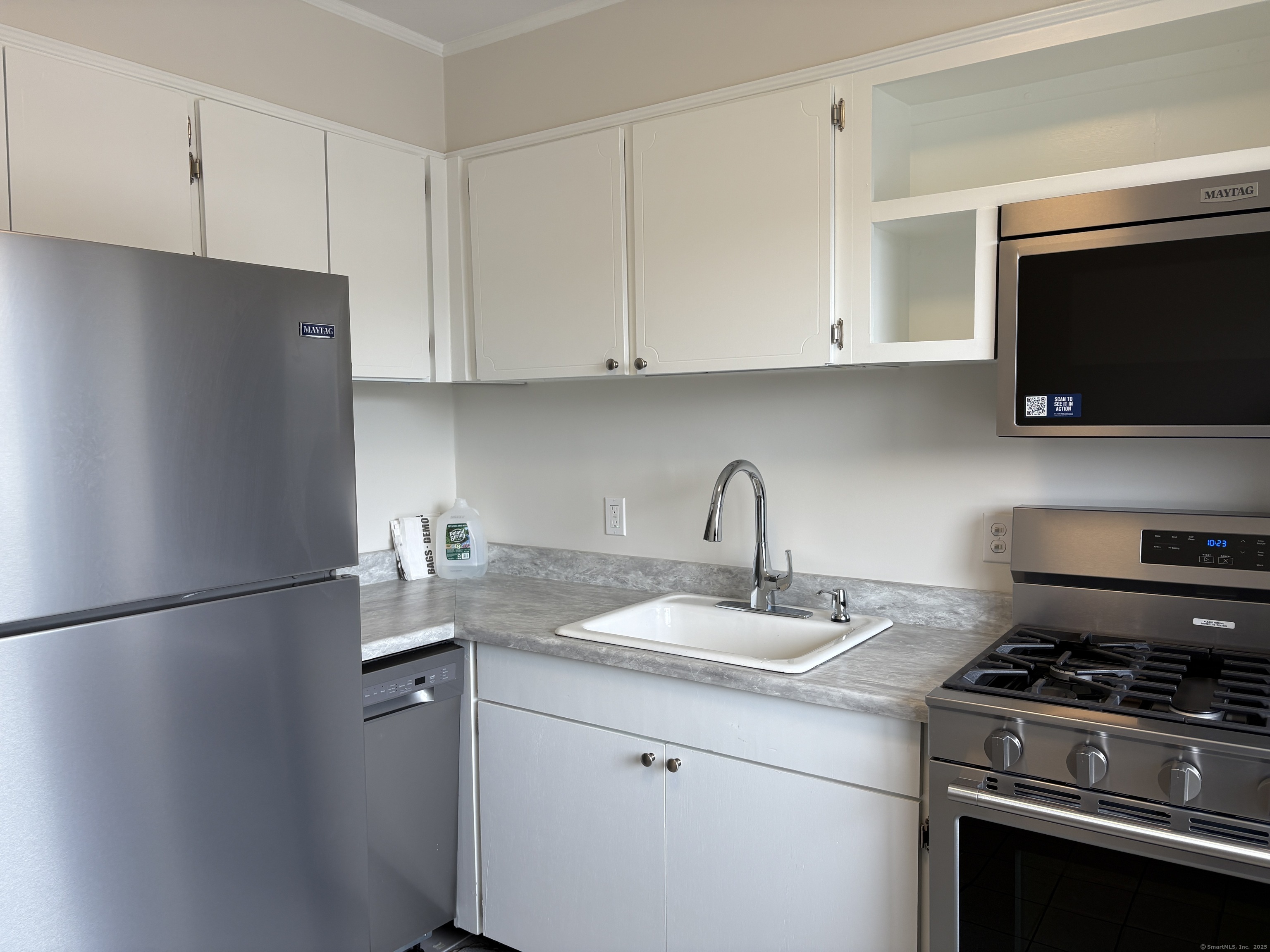 Welcome to 80 County Street, Unit 2H! This inviting rental is all about modern comfort and convenience. Step into a clean, bright, and airy space that's ready for immediate occupancy. The kitchen is a chef's delight, boasting brand-new stainless steel appliances, including a sleek Maytag refrigerator, microwave, gas stove, and dishwasher. You'll enjoy the convenience of a full-sized, in-unit stackable washer and dryer. The bathroom features elegant updated tiles on both the floor and in the shower, adding a touch of sophistication. And step outside through your sliding doors onto a generous balcony overlooking a park-like setting-perfect for relaxing with a cup of coffee. The complex itself offers lush green grounds and an on-site pool for those sunny Norwalk days. Plus, **your rent includes heat and hot water** for added convenience. Location-wise, you're perfectly positioned near the Westport border and just moments from Connecticut Avenue's shopping and entertainment. This well-maintained community combines tranquility with modern upgrades. Don't miss out on making this bright, welcoming space your new home!